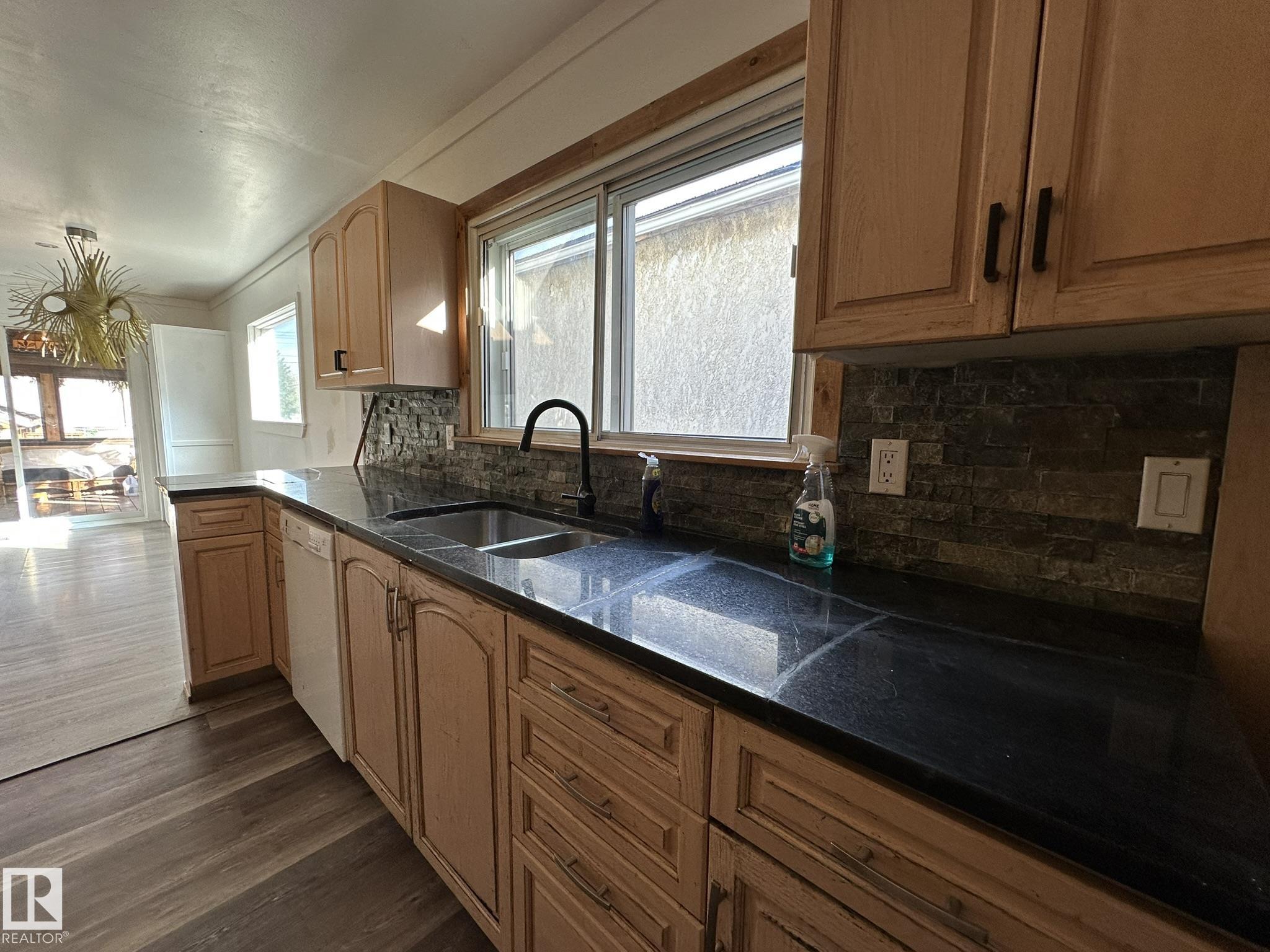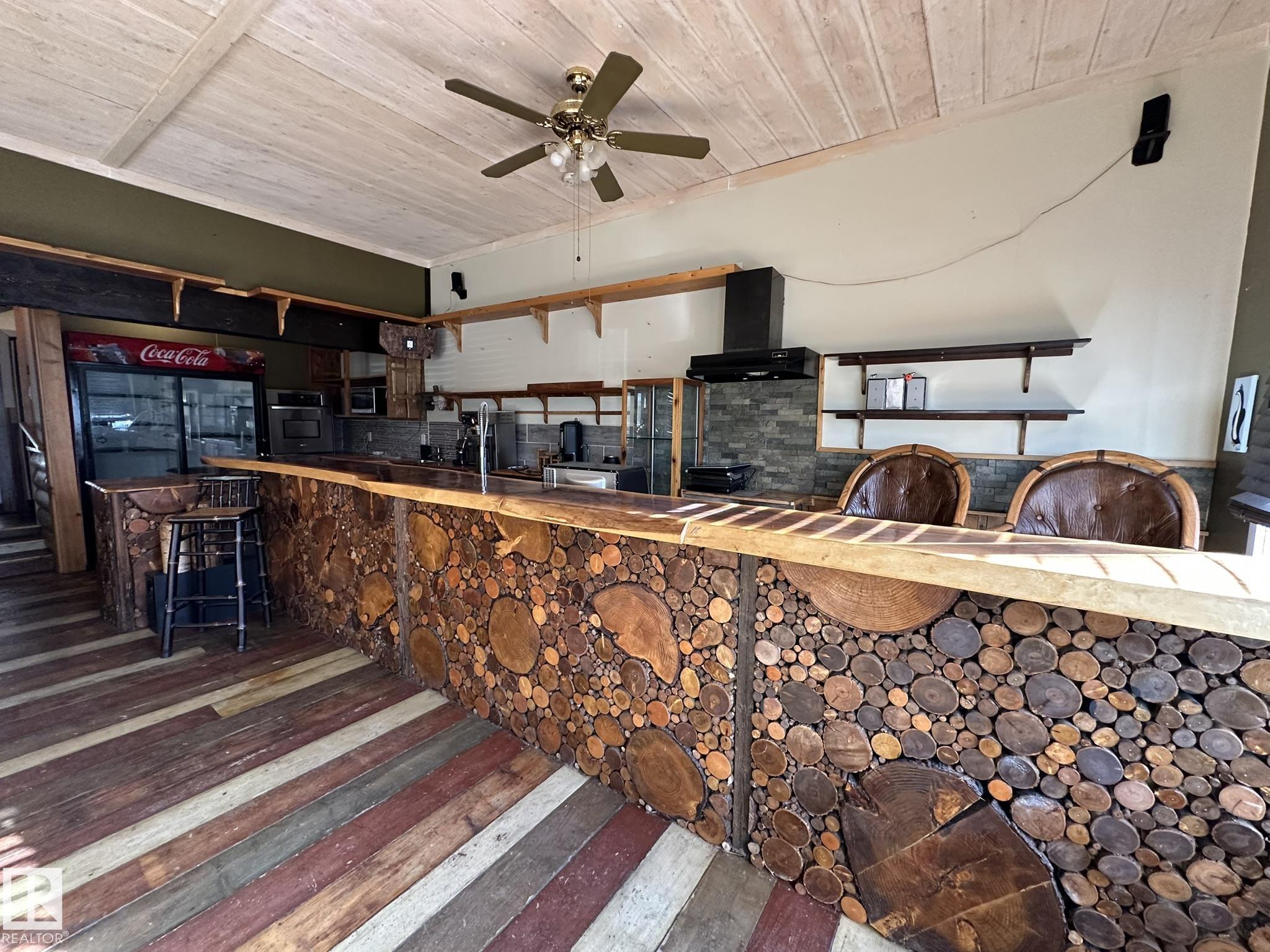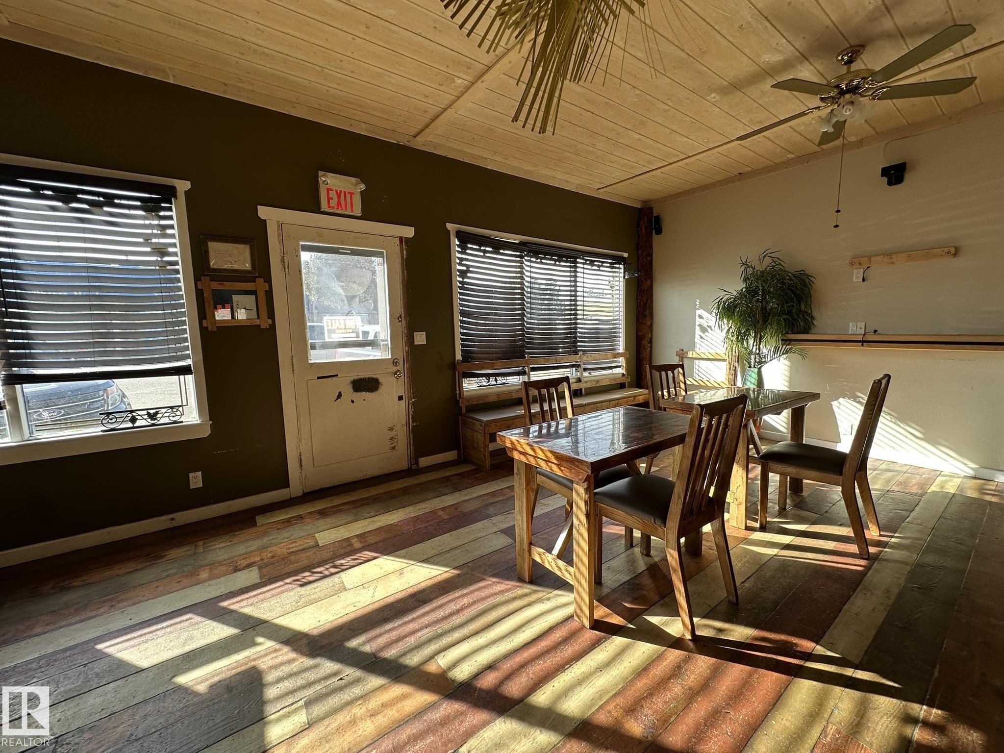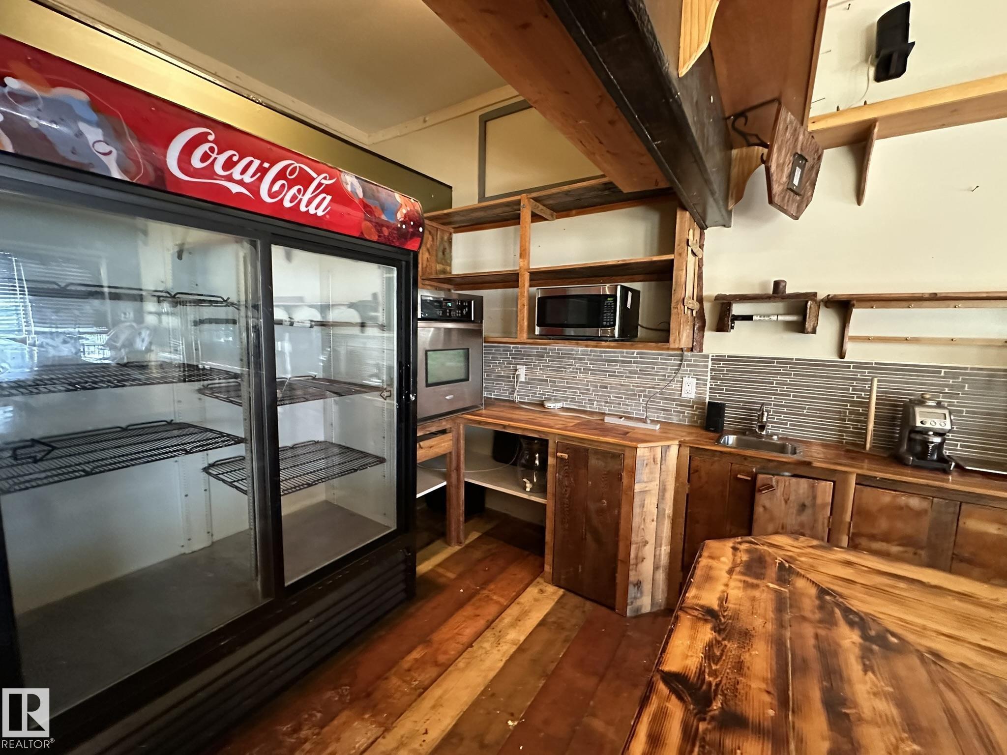 Here is your chance to live your dream.. Perfect property for a small business such as a cafe, resto, bring your ideas. And live right behind your workplace in a nicely appointed 2 + 1 bedroom smack in the middle of downtown Smoky Lake. The front of the property boats a wide-open concept with bar and lots of seating, you'll love how cozy and warm the room is, a cute bathroom is there for your potential customers. The owner's quarters offers a functional kitchen, a large living room with patio door to the rear covered porch, backyard and single garage. 2 good size bedrooms and full bath complete this floor. Downstair you'll find another bedroom, tons of storage space, laundry and utilities. Best location in town, busiest street, located between well-established businesses. You won't find a better opportunity.
