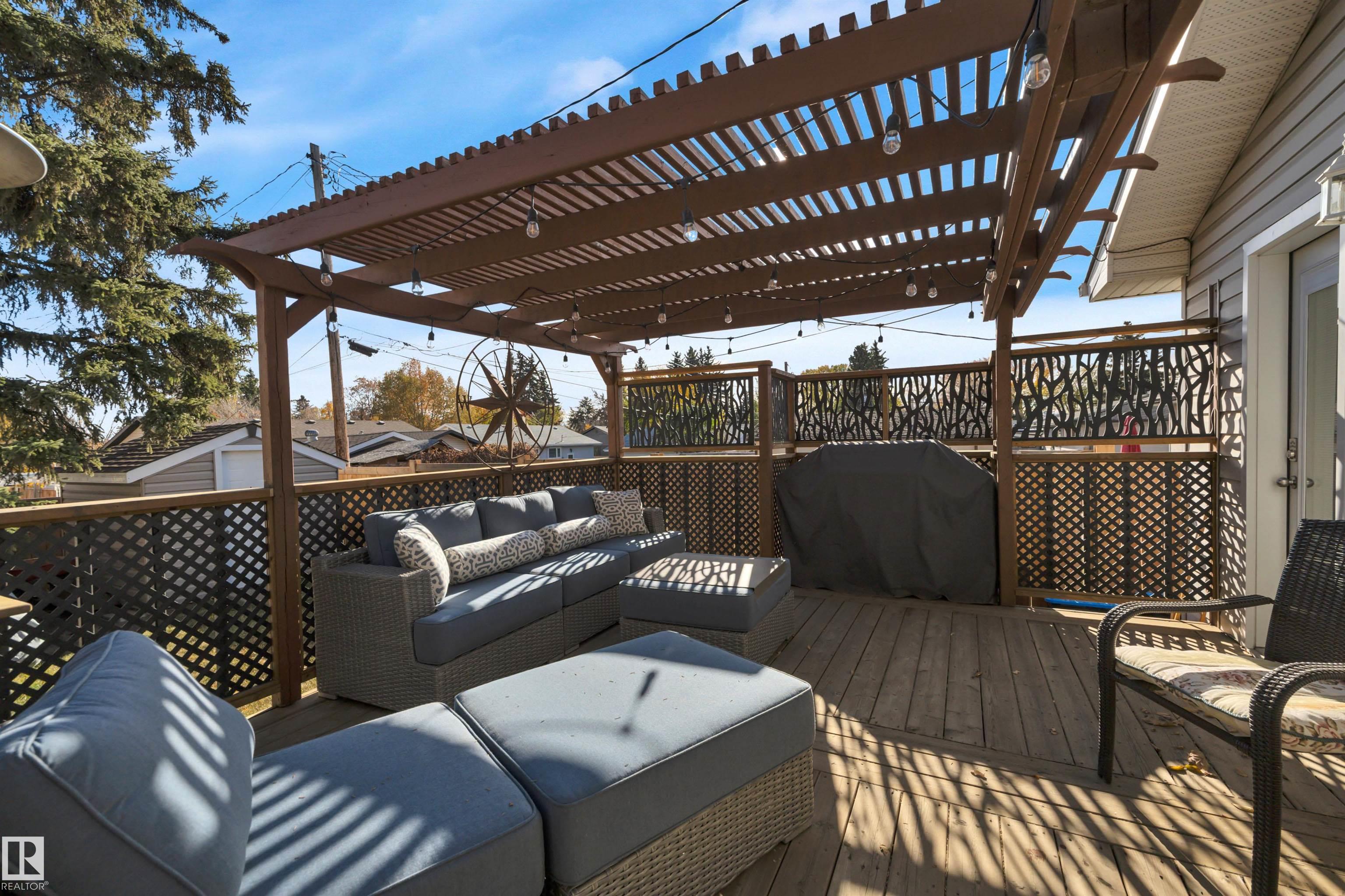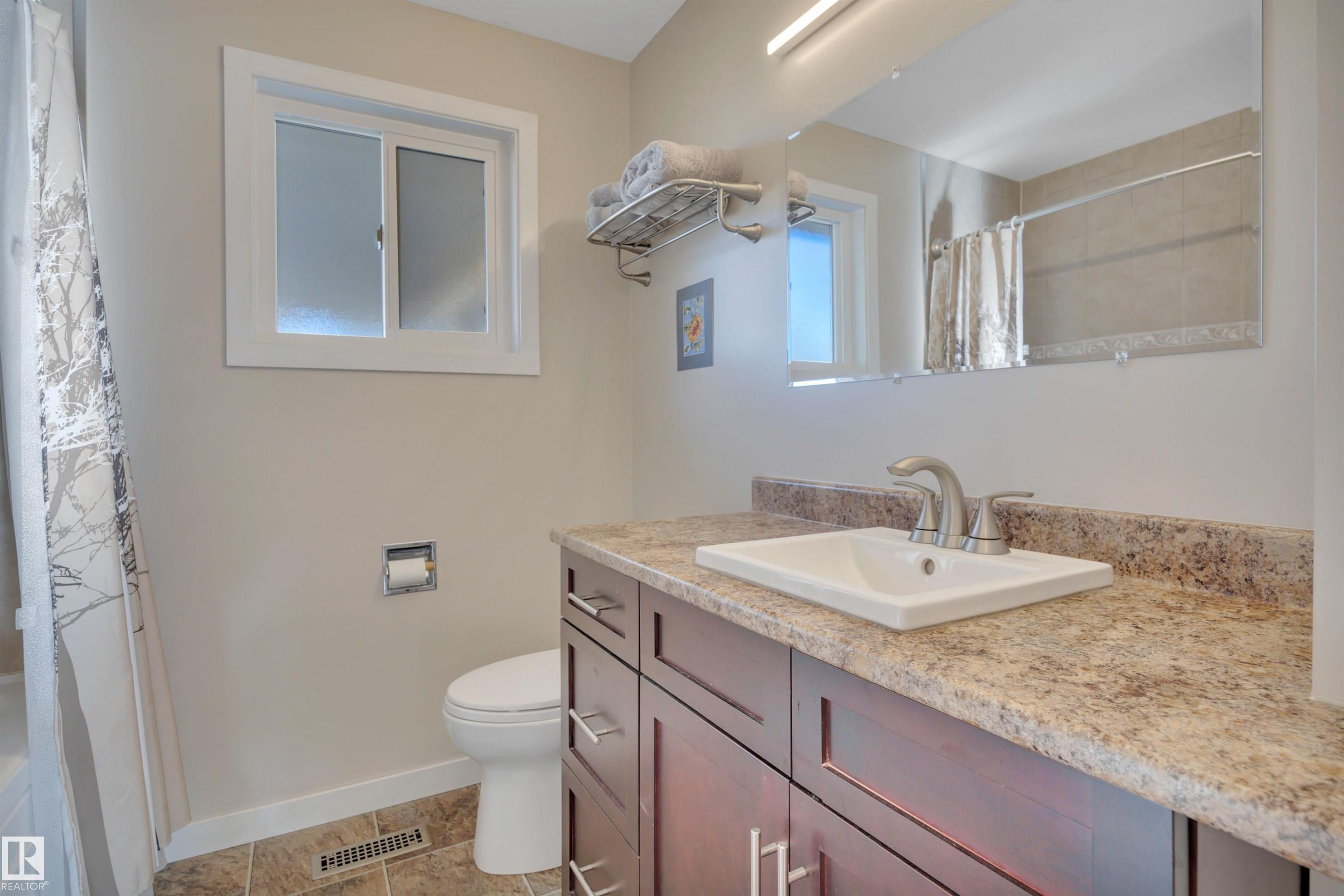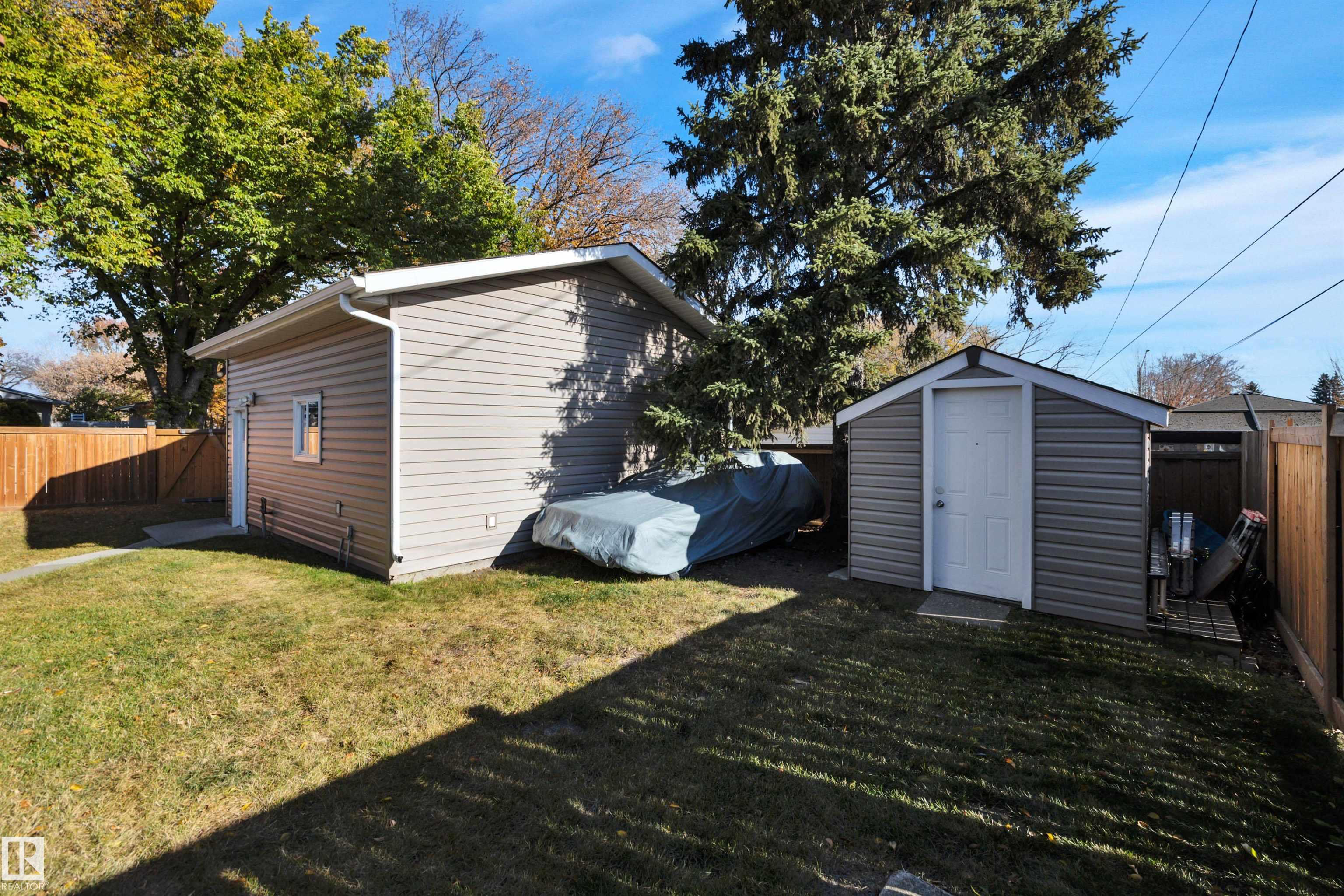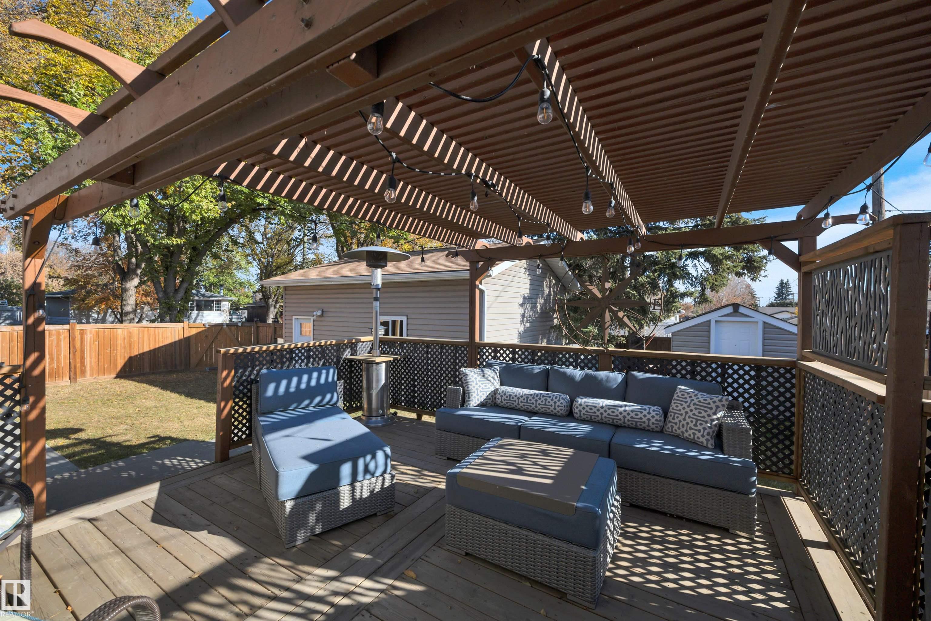 Welcome home to this stunningly renovated 4-bedroom, 3-bathroom bungalow on a massive corner lot in the desirable community of Sturgeon Heights! Step inside to an open-concept floor plan featuring stylish wood slat accents, sleek glass railings, hardwood floors, and a custom built-in eating nook. The fully renovated kitchen impresses with modern cabinetry, stainless steel appliances, granite countertops, and ample storage. The spacious primary bedroom offers a walk-in closet and a luxurious ensuite, while a second main-floor bedroom and full bathroom provide comfort for family or guests. Downstairs, enjoy a large rec room, two bright bedrooms with egress windows, and a beautifully updated full bathroom. Outside, relax in your sunny south-facing yard with a newer deck and pergola. The heated SUPER SINGLE garage built in 2017 is 18x21 ft with an oversized door perfect for the garage enthusiast! Upgrades include triple-pane windows, newer furnace and hot water tank, new fence, and sewer line. Move in ready!