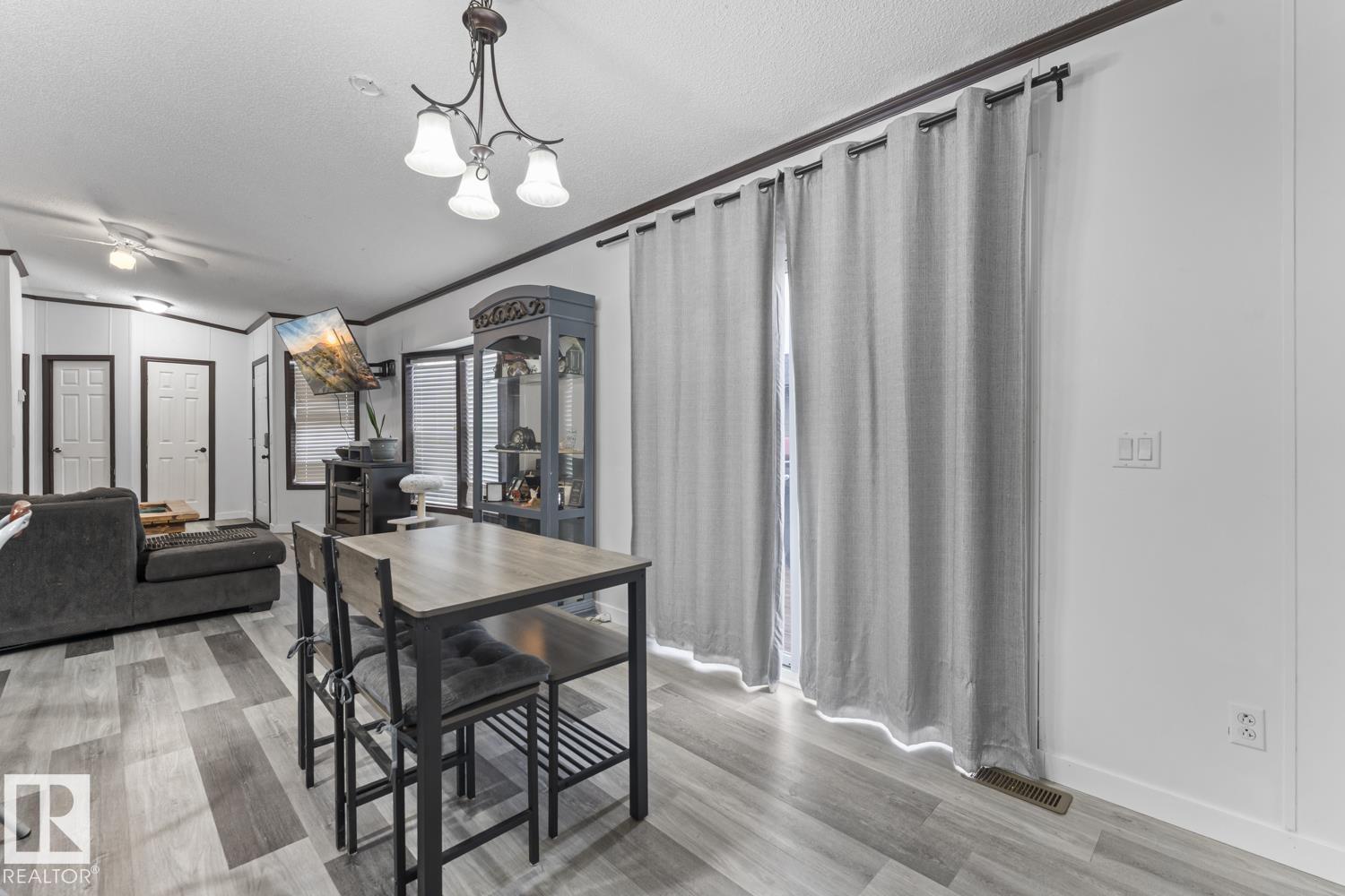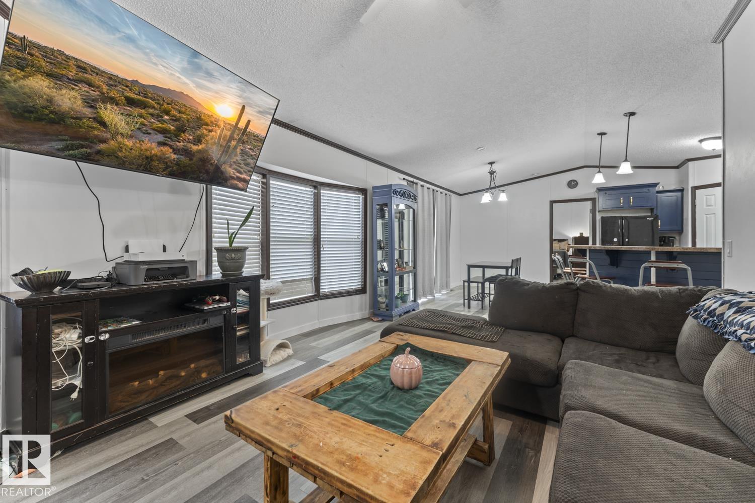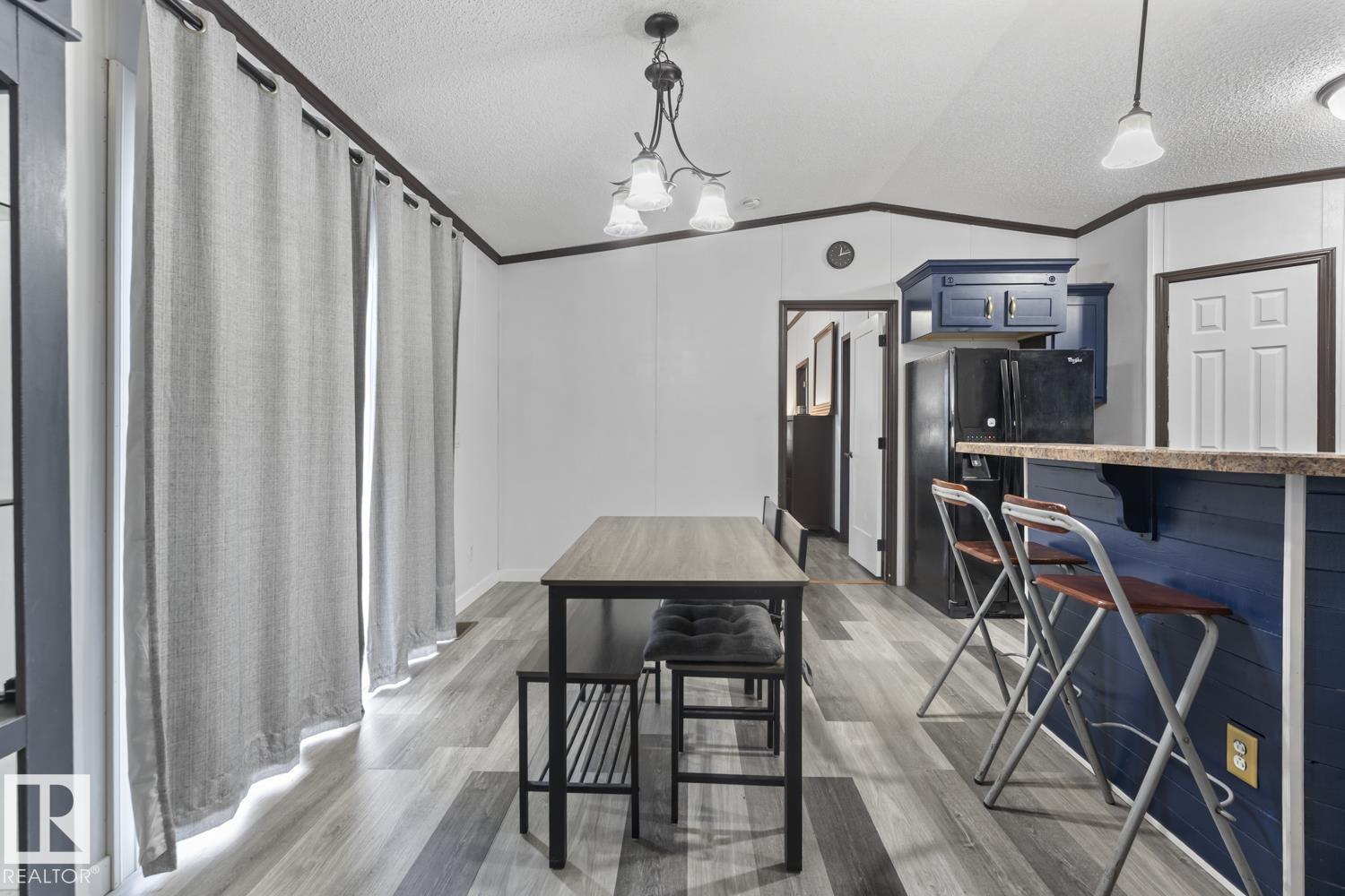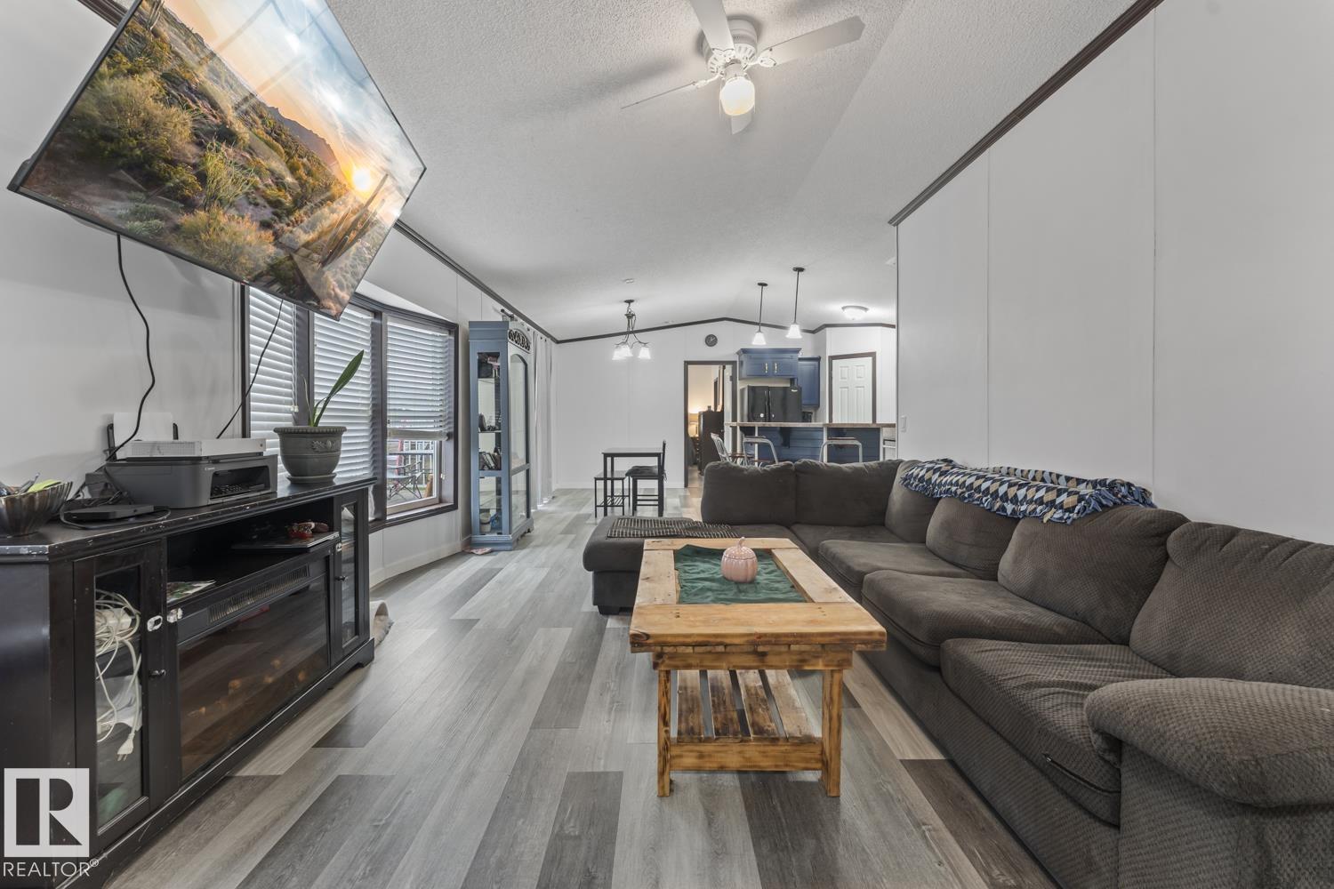 Affordable Home Ownership Starts Here! Step inside this beautifully renovated 3-bedroom, 2-bath mobile home, where comfort meets style in an open concept design. Home features a spacious kitchen, with freshly painted cupboards, a corner pantry, and a raised two-tier island?perfect for entertaining?plus the convenience of the laundry room just off the kitchen. The primary bedroom is truly a retreat, offering a massive layout, walk-in closet, and luxurious 5-piece ensuite complete with a corner soaker tub, separate shower, and double vanities. Fresh touches throughout the home include some new vinyl plank flooring, paint, patio door, giving the space a clean and modern feel. Whether you?re a first-time buyer or looking to downsize, this move-in-ready home offers incredible value. Stop renting and take the first step toward affordable home ownership!