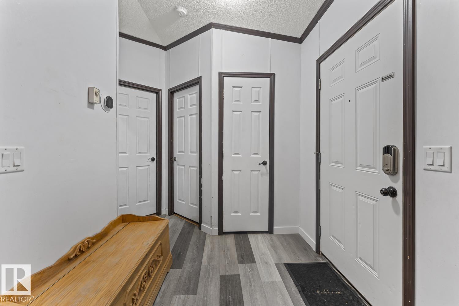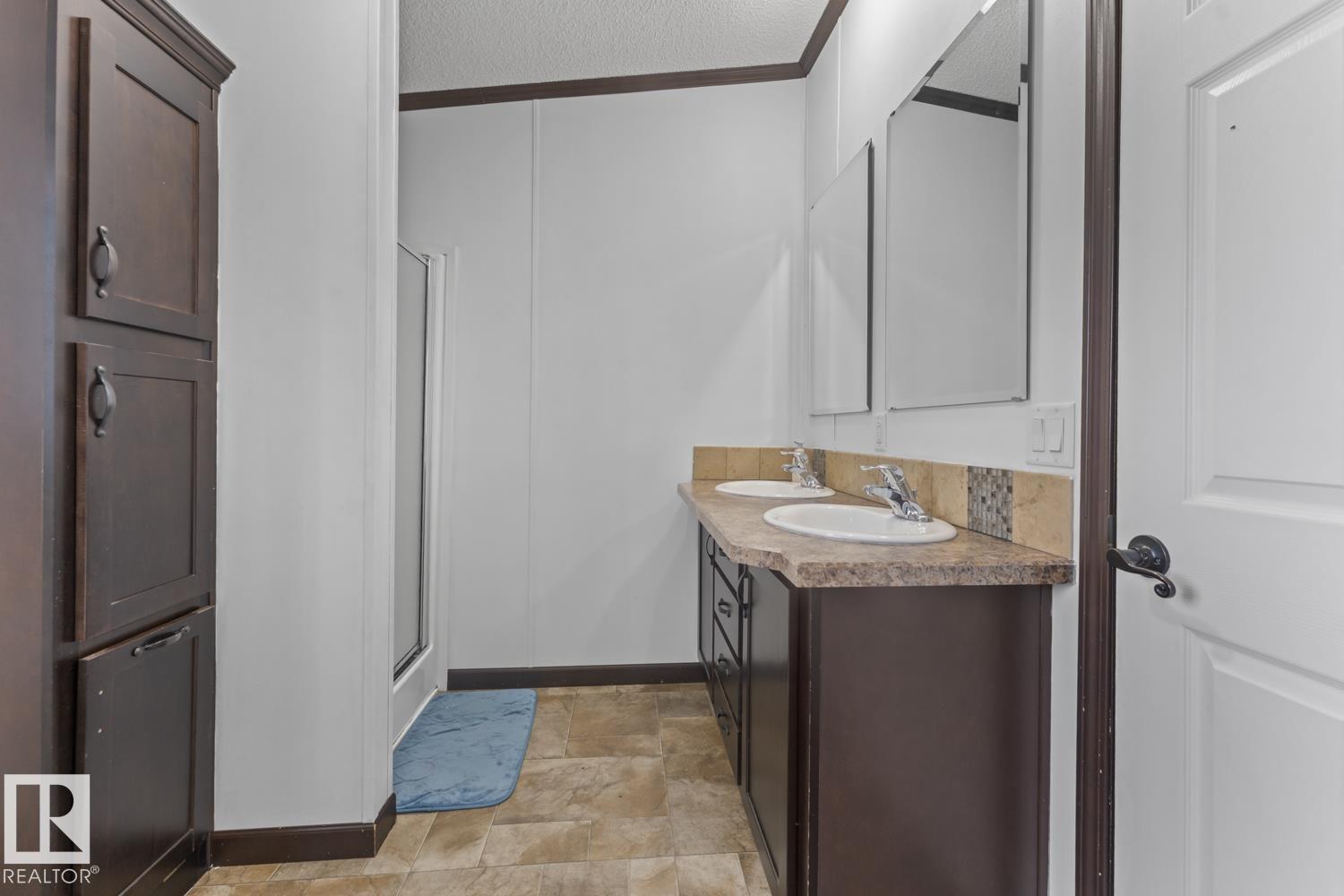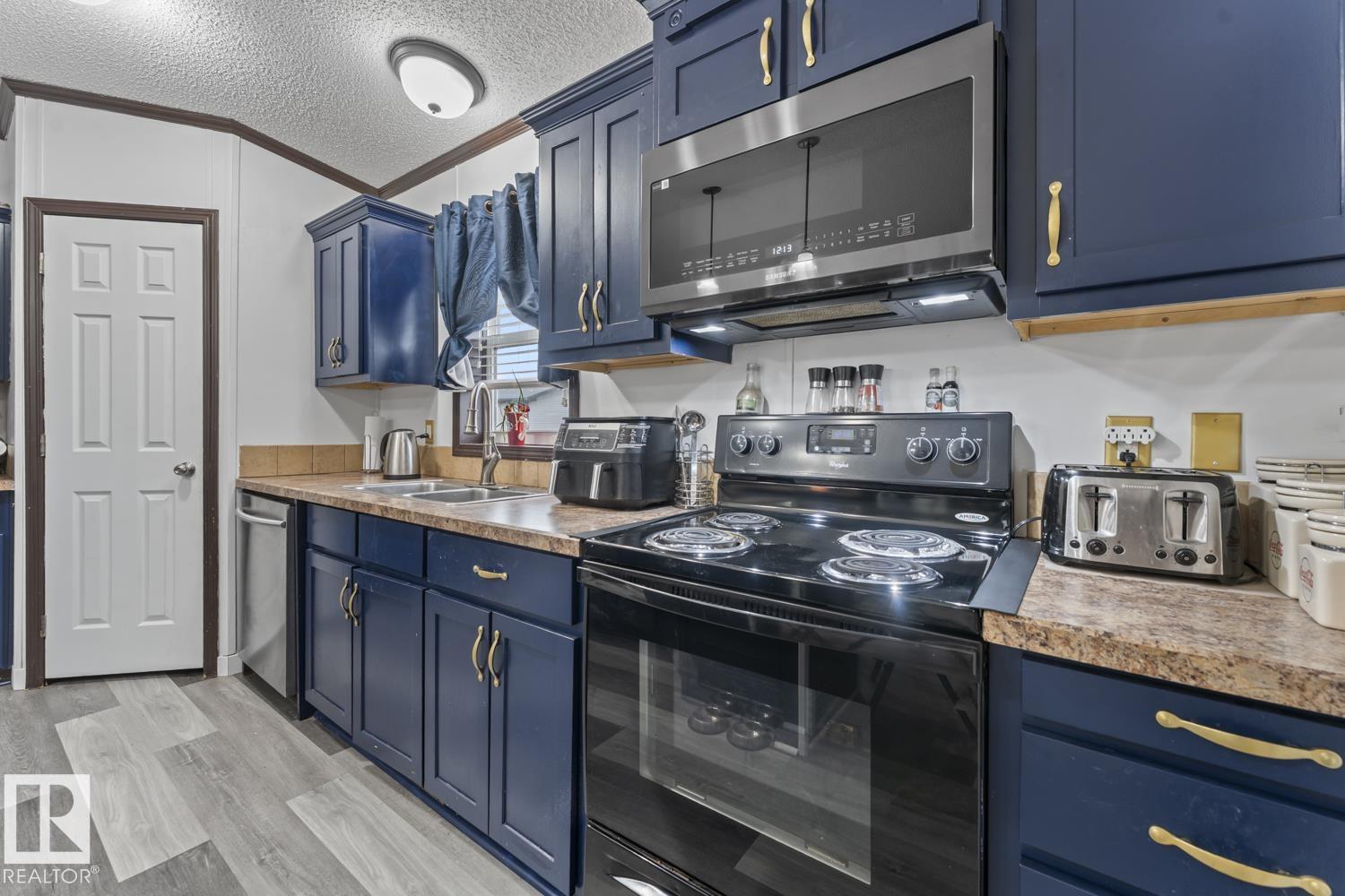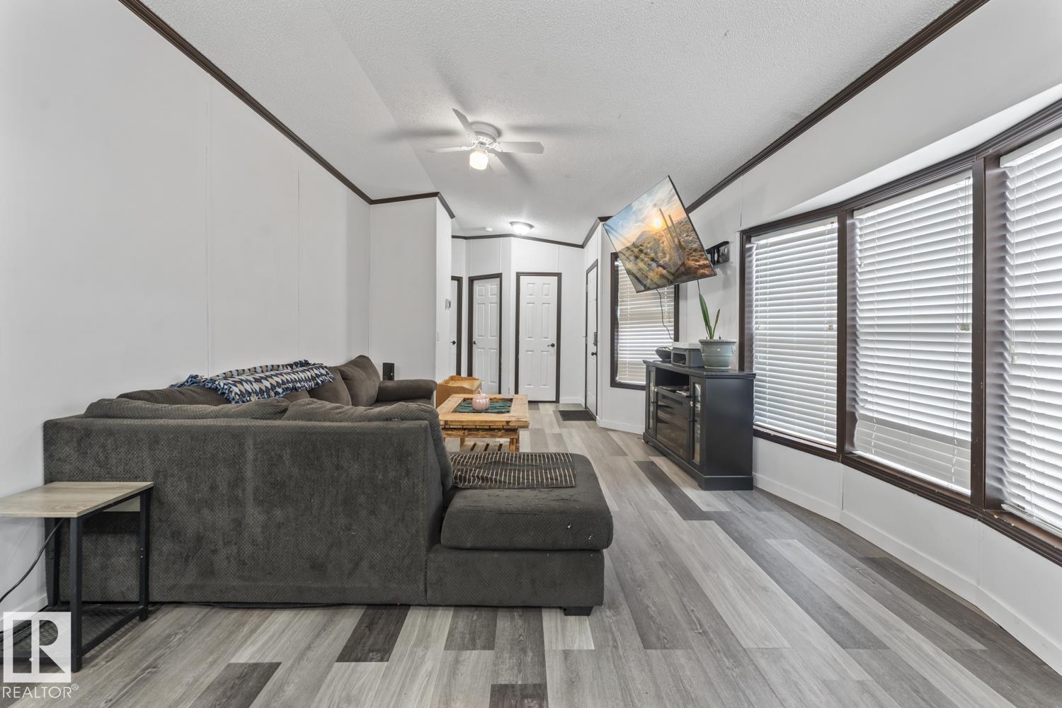 Affordable Home Ownership Starts Here! Step inside this beautifully renovated 3-bedroom, 2-bath mobile home, where comfort meets style in an open concept design. Home features a spacious kitchen, with freshly painted cupboards, a corner pantry, and a raised two-tier island?perfect for entertaining?plus the convenience of the laundry room just off the kitchen. The primary bedroom is truly a retreat, offering a massive layout, walk-in closet, and luxurious 5-piece ensuite complete with a corner soaker tub, separate shower, and double vanities. Fresh touches throughout the home include some new vinyl plank flooring, paint, patio door, giving the space a clean and modern feel. Whether you?re a first-time buyer or looking to downsize, this move-in-ready home offers incredible value. Stop renting and take the first step toward affordable home ownership!
