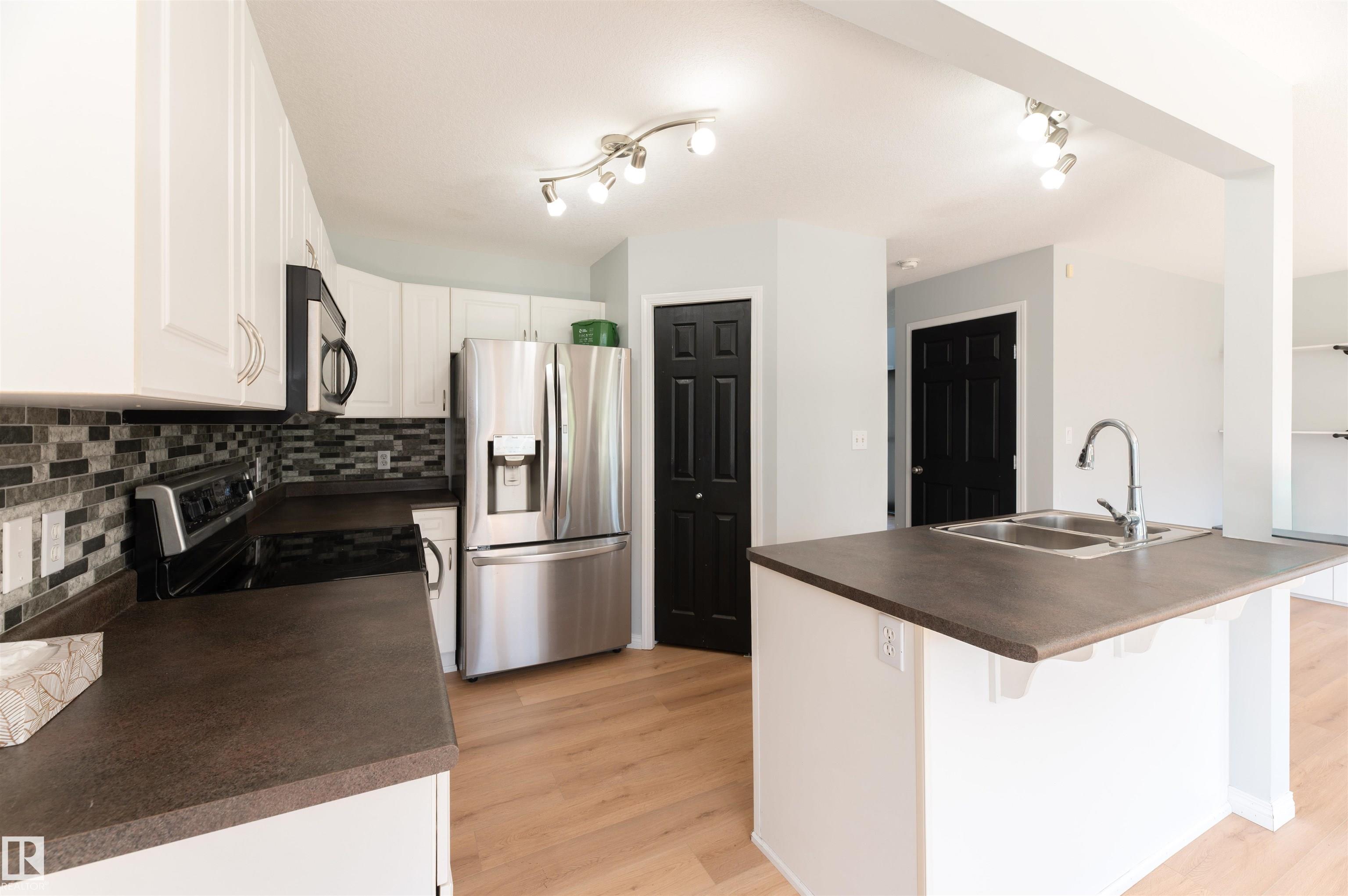 Welcome to this wonderful home in Clareview Town Center! This 3 bed, 2 bathroom, 1300 Sqft has an amazing backyard oasis. $30k was spent on the landscaping over the years.Gas line for BBQ, Gazebo & custom cedar bench that is staying with the purchase. House has cold AC, heated & insulated 20 x 20 garage with overhead storage. New flooring on main just done, and a custom built in TV wall unit. Remote controlled power blinds main floor & primary and north bedroom. And the natural south facing windows allow wonderful light that just brightens the whole main floor. Just spectacular. Basement is ready to develop to suit the new owner.