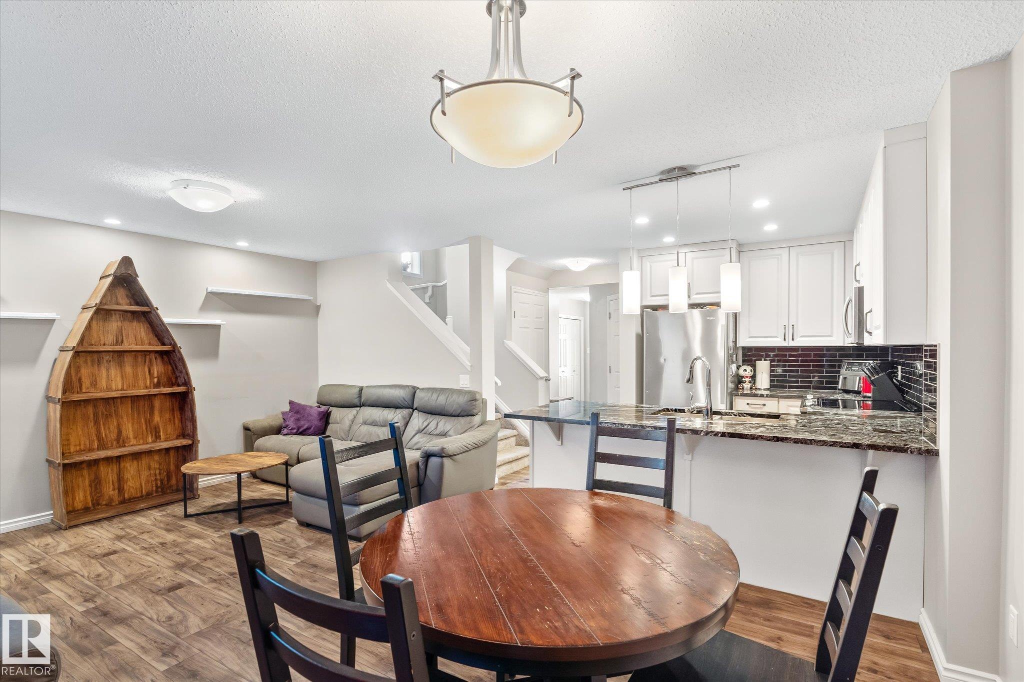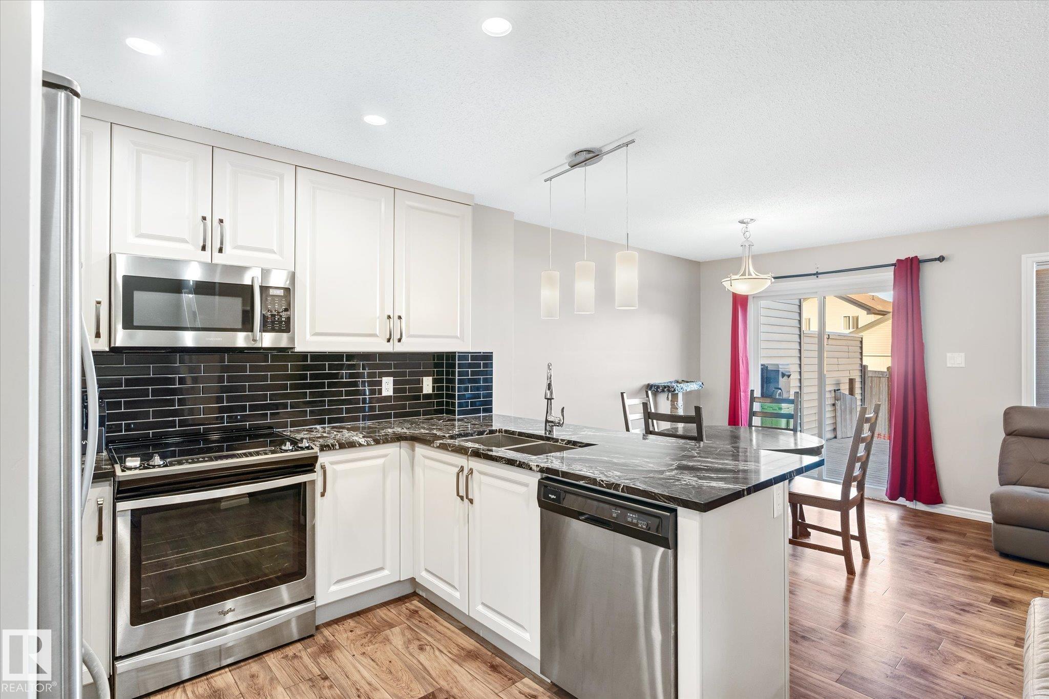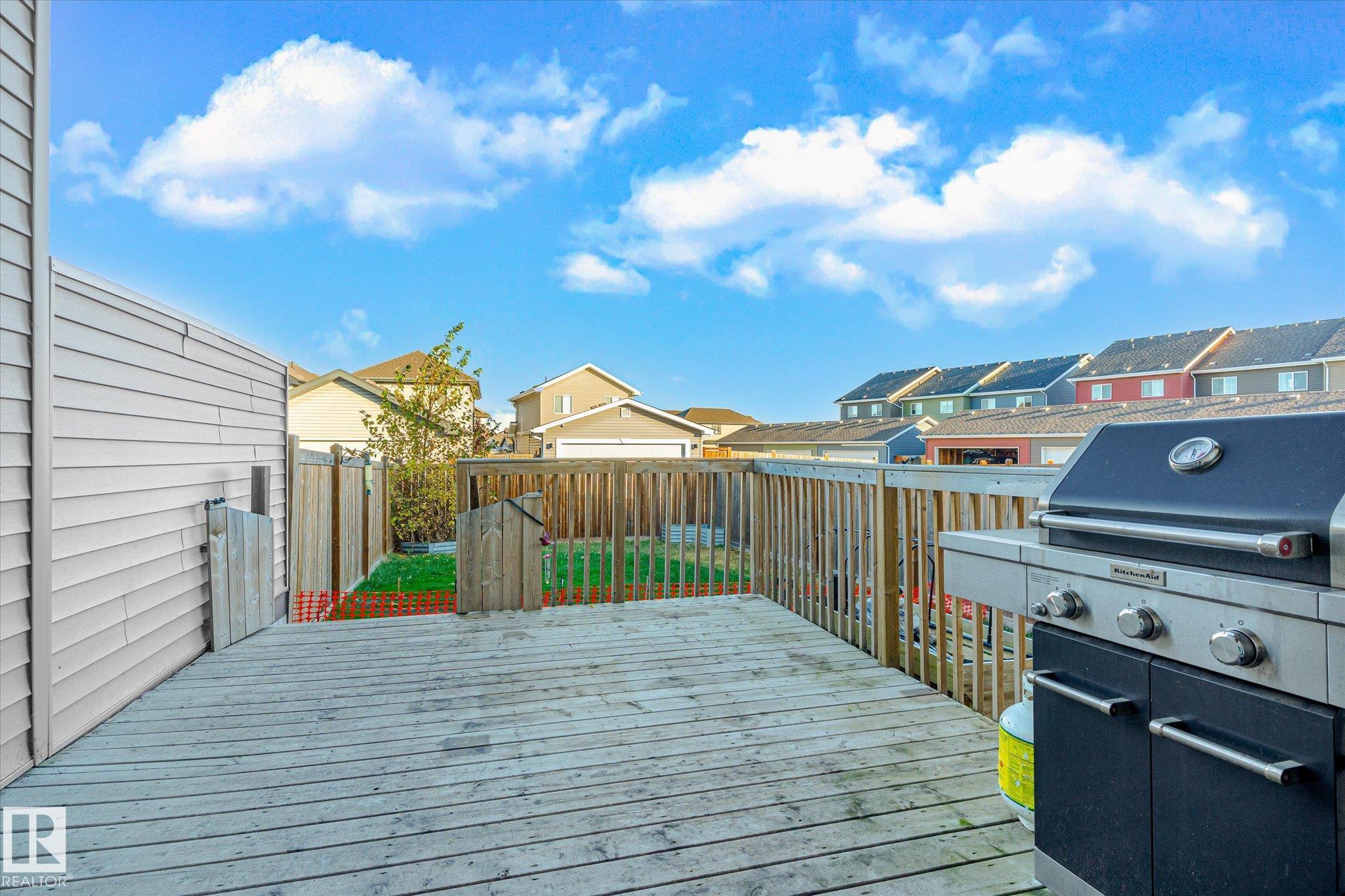 This quality built half duplex features a very functional floor plan that offers 1403 sqft of living space, 2 Bedrooms, 3 bathrooms, and a single car attached garage. The feature of this home is the updated kitchen.The modern chef package includes: granite counter tops, stainless steel appliances, cabinets extended over the fridge and full height to the ceiling and an extended eating bar. The main floor also includes a living room with large windows, an eating nook just off the kitchen, and access to the oversized backyard deck with a 2 pc. bathrm conveniently located close to the foyer and garage access. You'll love retreating to the upper loft that can be a tv rm or office then the cozy master suite complete with an ensuite and a walk-in closet with an additional bedroom and another ensiute bathroom complete the upper level. All the luxury with a fenced backyard, single attached garage and a concrete single drive way. The basement is ready for completion with a rough in bathroom and one large window