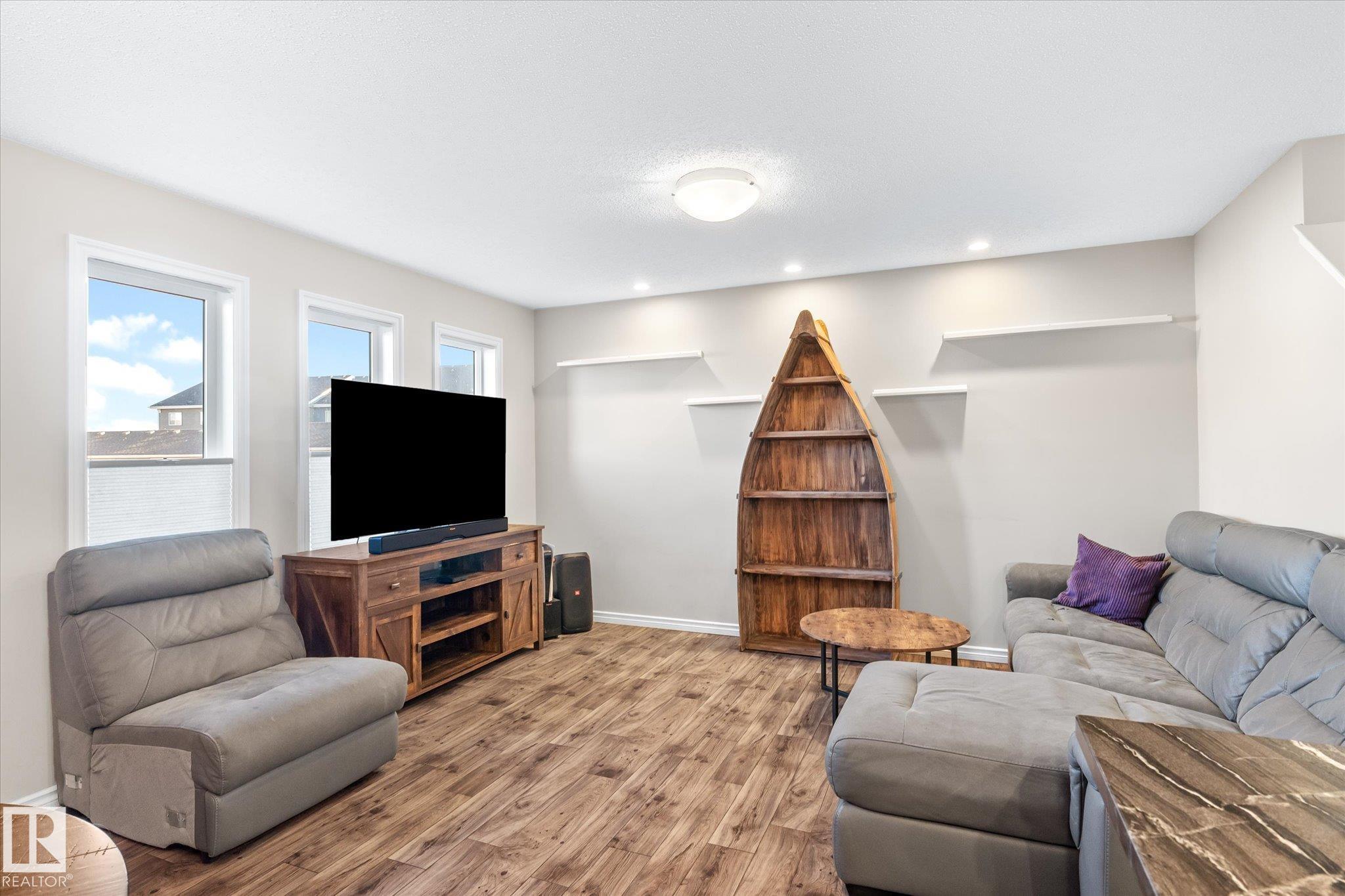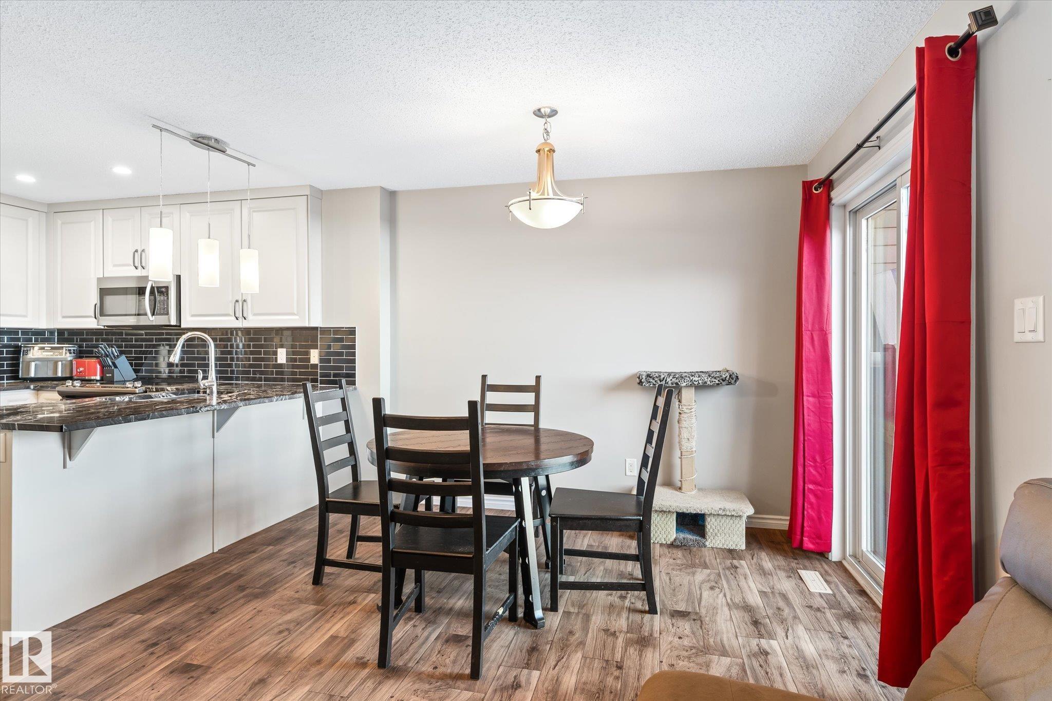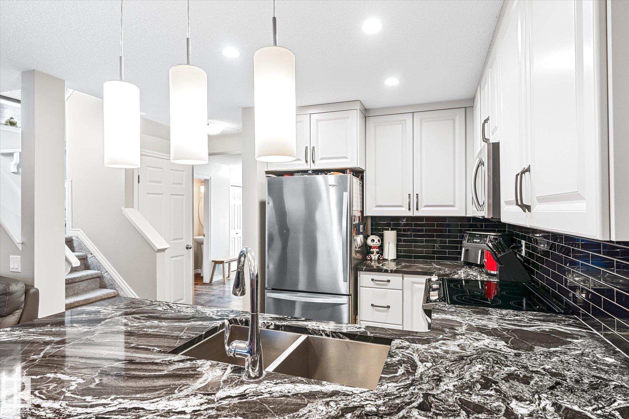 This quality built half duplex features a very functional floor plan that offers 1403 sqft of living space, 2 Bedrooms, 3 bathrooms, and a single car attached garage. The feature of this home is the updated kitchen.The modern chef package includes: granite counter tops, stainless steel appliances, cabinets extended over the fridge and full height to the ceiling and an extended eating bar. The main floor also includes a living room with large windows, an eating nook just off the kitchen, and access to the oversized backyard deck with a 2 pc. bathrm conveniently located close to the foyer and garage access. You'll love retreating to the upper loft that can be a tv rm or office then the cozy master suite complete with an ensuite and a walk-in closet with an additional bedroom and another ensiute bathroom complete the upper level. All the luxury with a fenced backyard, single attached garage and a concrete single drive way. The basement is ready for completion with a rough in bathroom and one large window