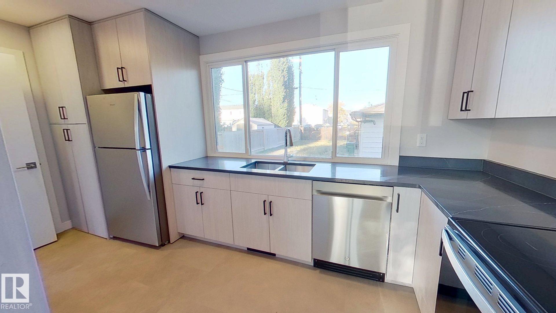 Unlock the potential of this charming home in sought-after Britannia Youngstown! Fully renovated , this 812sq.ft. home with over sized double detached garage. Nestled on a generous 50' x 125' lot along a beautiful tree-lined street, it offers a warm and friendly neighborhood. Enjoy quick access to Henday, Yellowhead Tr., schools, local parks, shopping, transit and all the amenities you need. Fully renovated basement featuring a full kitchen, private laundry room, and a separate entrance. Main floor also includes its own separate laundry for added convenience.