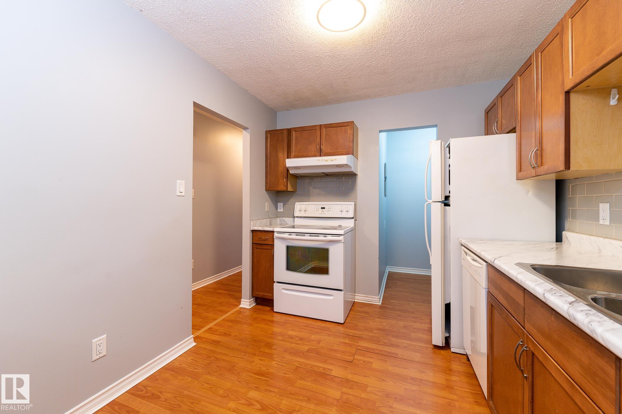 Attention 1st time home buyers! Welcome to this 2 Bed, 1 Bath Carriage style condo on the top level in Tamarack South. Neutral colors, laminate flooring, new lighting and low condo fees! This unit boasts a large living room with a wood burning fireplace, spacious dining room that is open to the generous sized kitchen. The kitchen has new countertops, white appliances and Ginger Cabinets. You'll enjoy the walk in pantry! Down the hall is your Washer and Dryer and 2 good sized bedrooms. The primary suite has a walk in closet and direct access to the 4 piece main bath with new vanity. The deck is spacious and private for warm evenings. An outdoor storage room will come in handy. The hot water tank is newer as well as the furnace. Tamarack South is close to all amenities including transit right out your font door! Welcome Home!