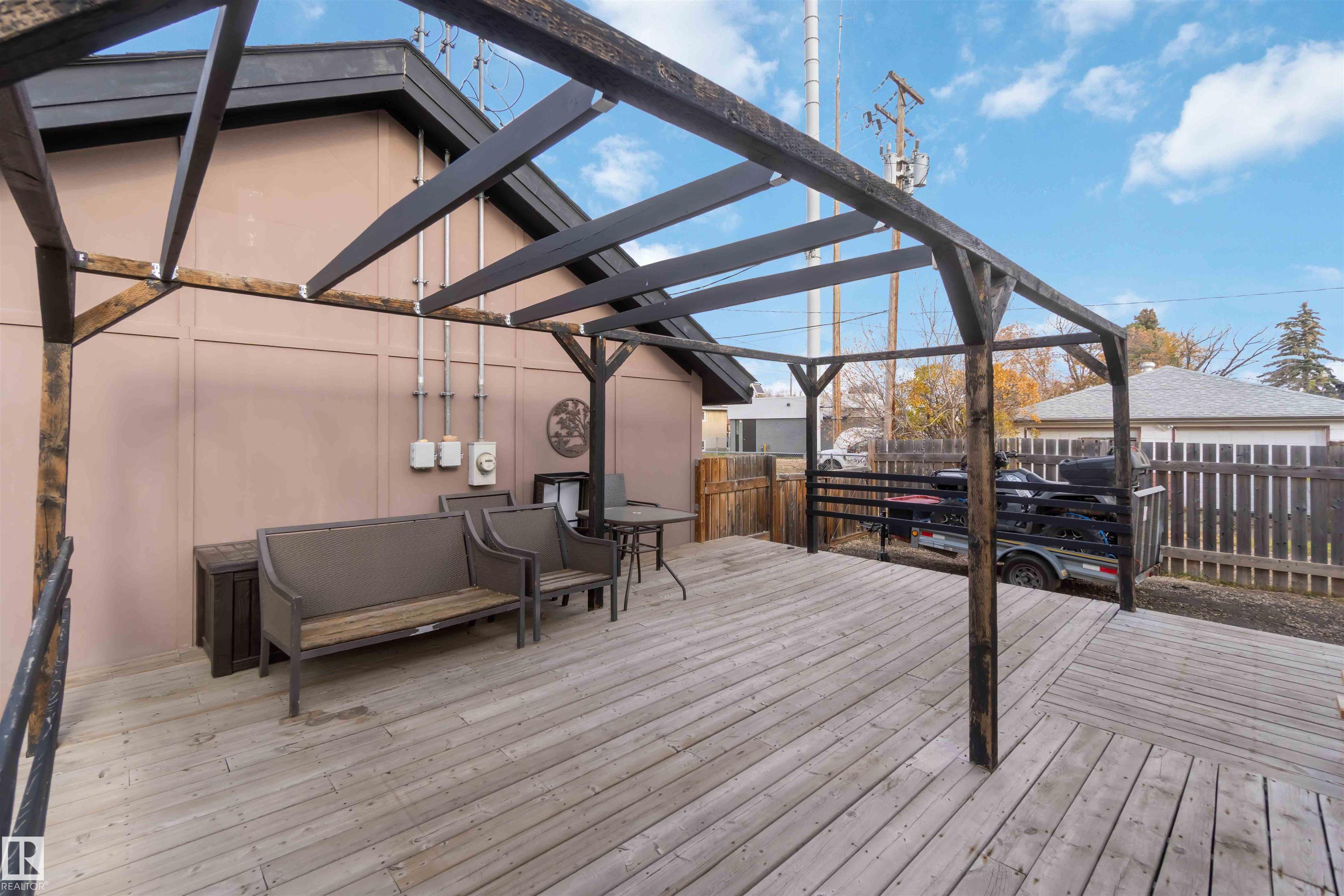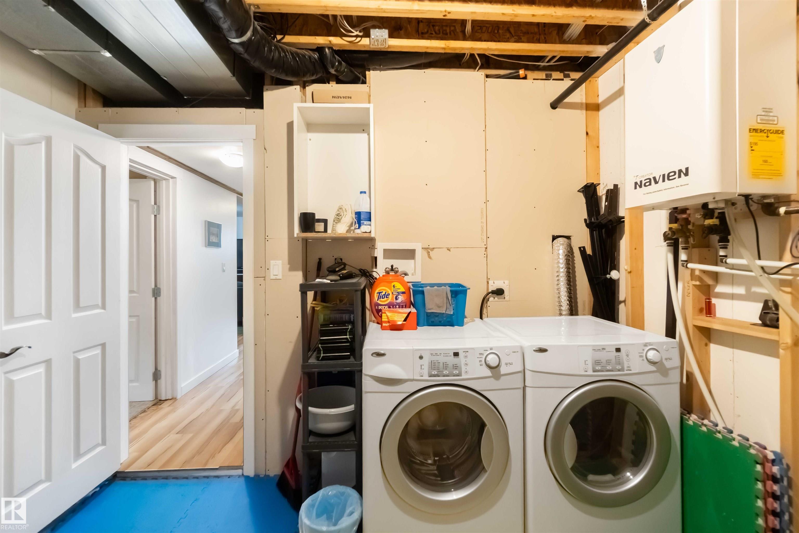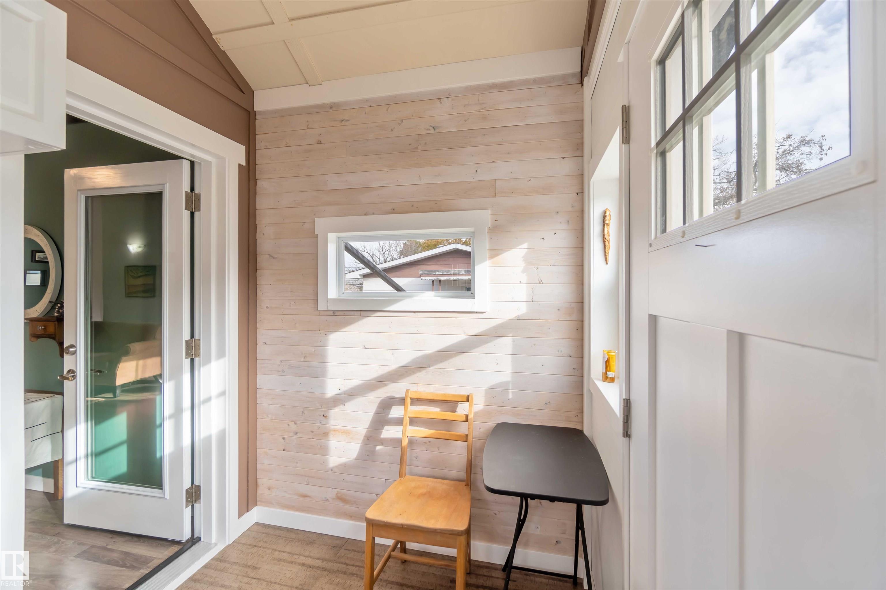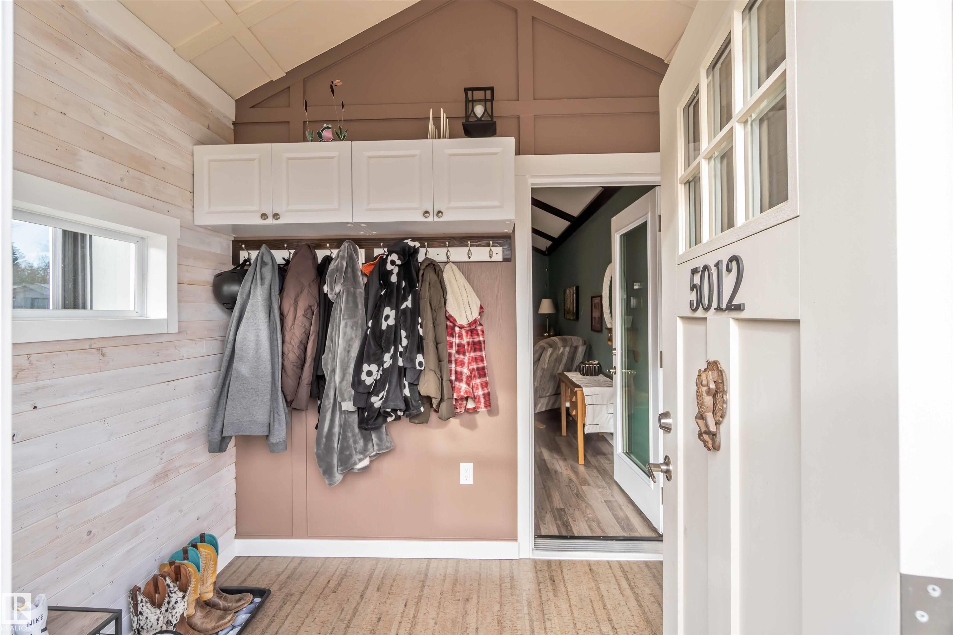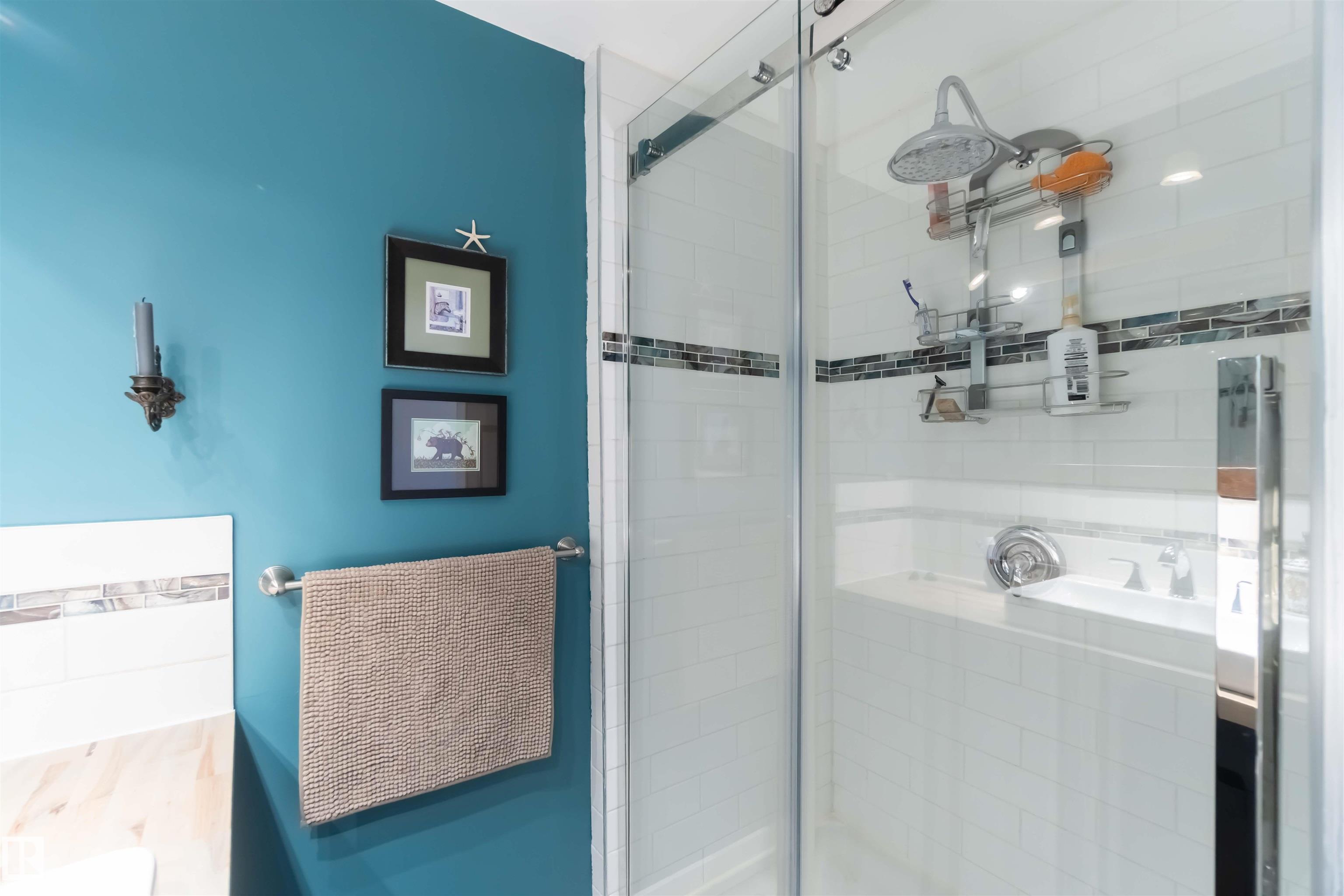 Great curb appeal and stunning modern features throughout this energy efficient home. This 990 sq ft 3-brm bungalow shows so well. Enter in from the insulated porch into the living space with vaulted ceilings, giving the home a first impression of roomy & comfortable. The kitchen has butcher block countertops & dining area with b/i bench seating. The main floor bathroom has a w/i shower & across the hall is the primary bedroom with b/i closet space. The basement is finished with a family room, 2 more bedrooms, a renovated 4 pc bathroom with soaker tub & new vinyl plank flooring. 9 ft ceilings, H/E furnace & hot water on demand, plus newer shingles (2021) on house and garage. All interior lighting updated & exterior painted. Deck off the back door for outdoor living space & a double detached garage 23x23. Fenced yard & a gravel pad for RV parking or firepit area. Walking distance to amenities (grocery store/drug store etc). Enjoy the quaint small town feeling in the Town of Bon Accord.