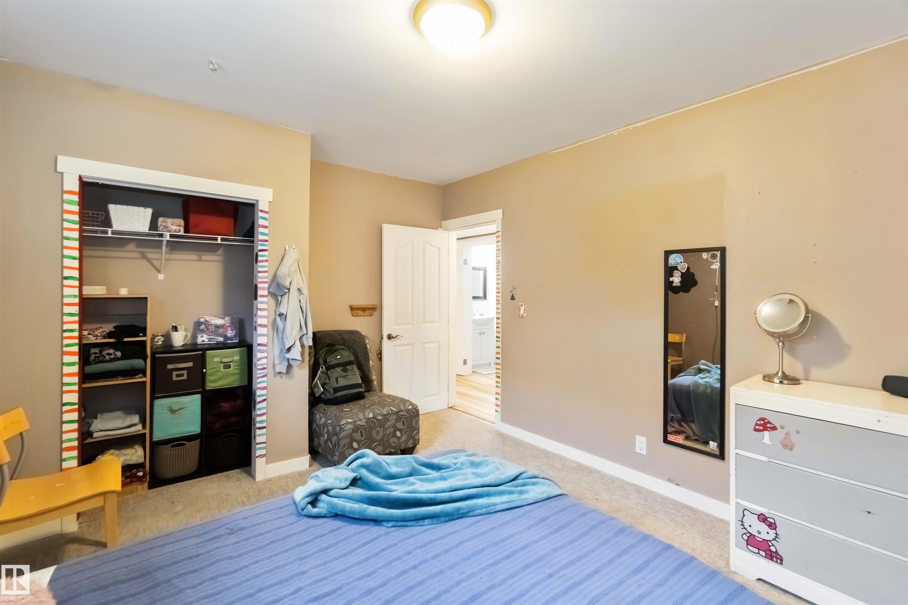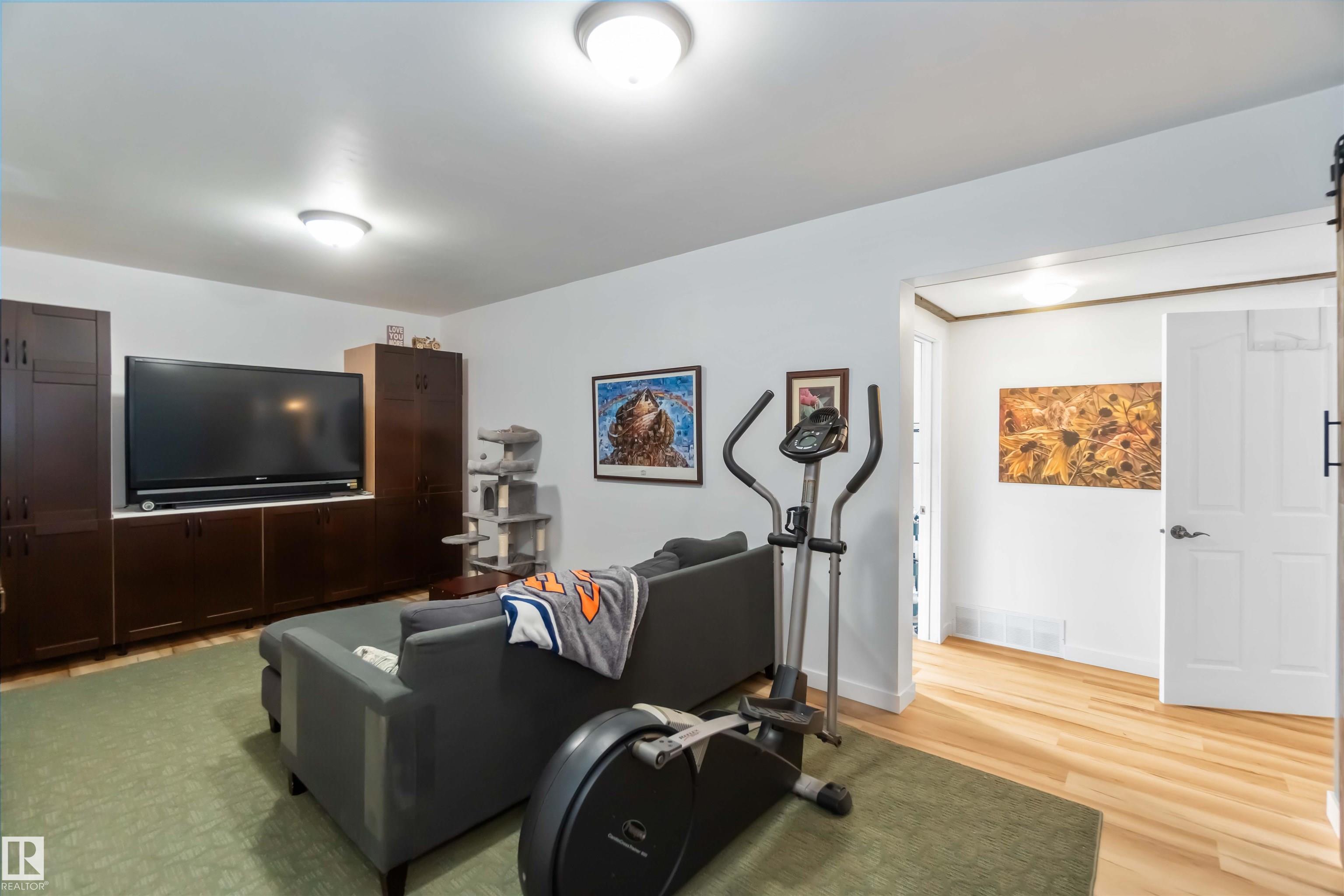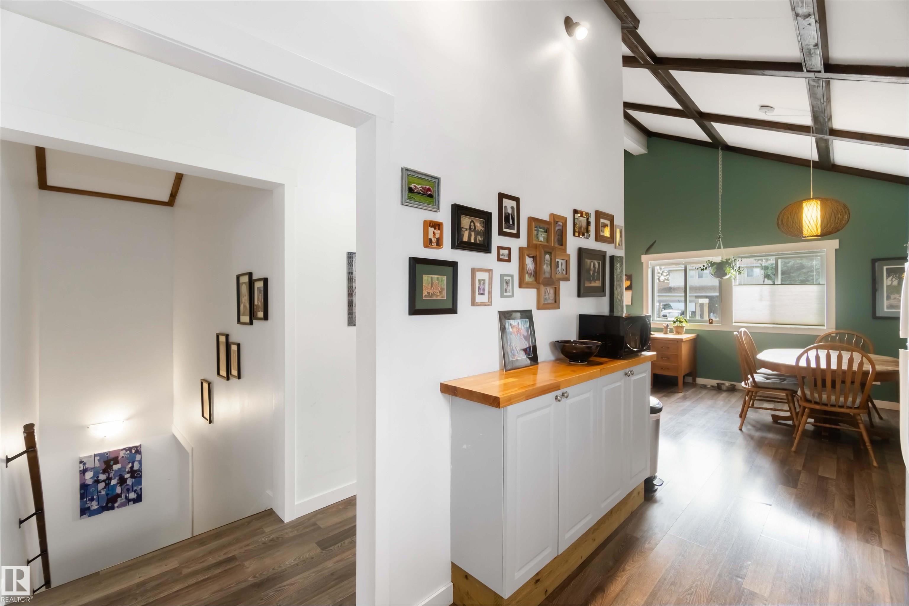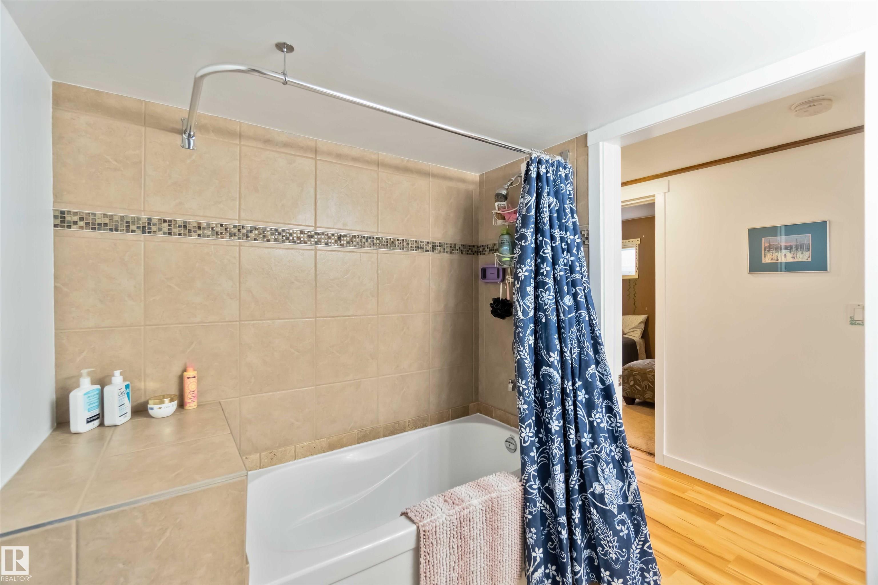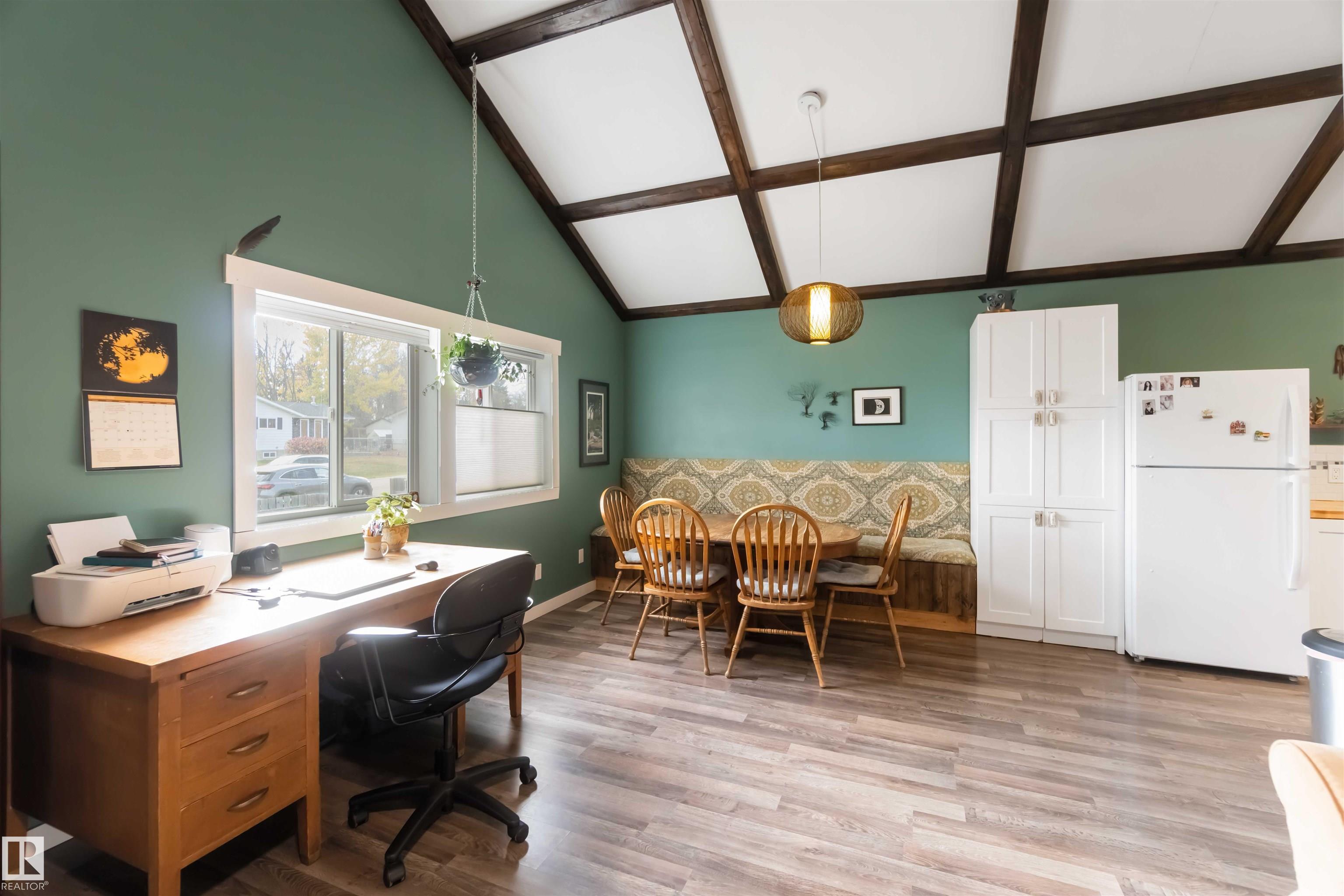 Great curb appeal and stunning modern features throughout this energy efficient home. This 990 sq ft 3-brm bungalow shows so well. Enter in from the insulated porch into the living space with vaulted ceilings, giving the home a first impression of roomy & comfortable. The kitchen has butcher block countertops & dining area with b/i bench seating. The main floor bathroom has a w/i shower & across the hall is the primary bedroom with b/i closet space. The basement is finished with a family room, 2 more bedrooms, a renovated 4 pc bathroom with soaker tub & new vinyl plank flooring. 9 ft ceilings, H/E furnace & hot water on demand, plus newer shingles (2021) on house and garage. All interior lighting updated & exterior painted. Deck off the back door for outdoor living space & a double detached garage 23x23. Fenced yard & a gravel pad for RV parking or firepit area. Walking distance to amenities (grocery store/drug store etc). Enjoy the quaint small town feeling in the Town of Bon Accord.