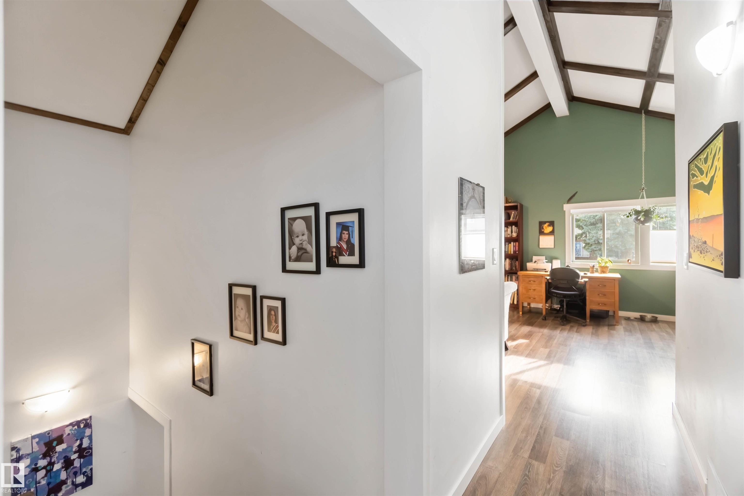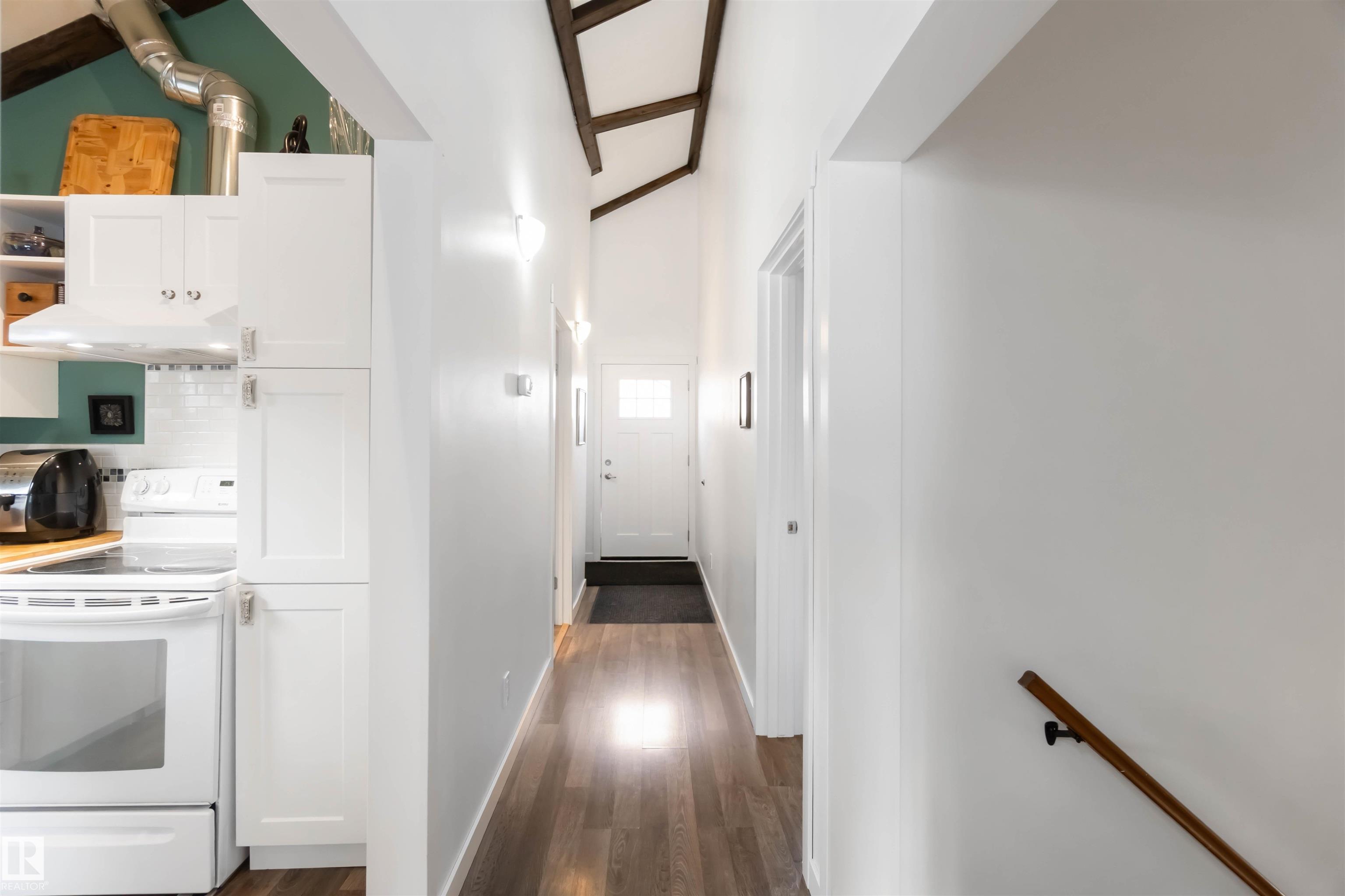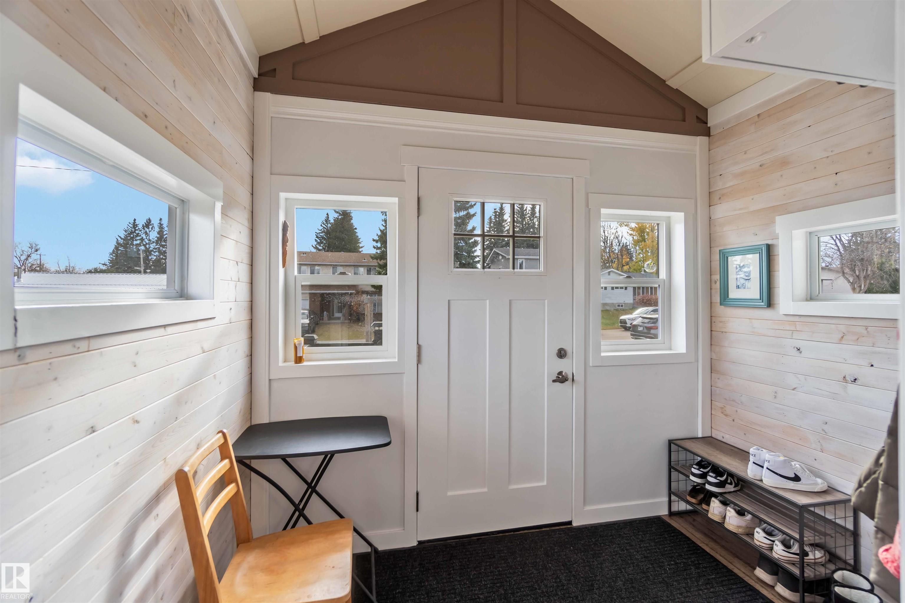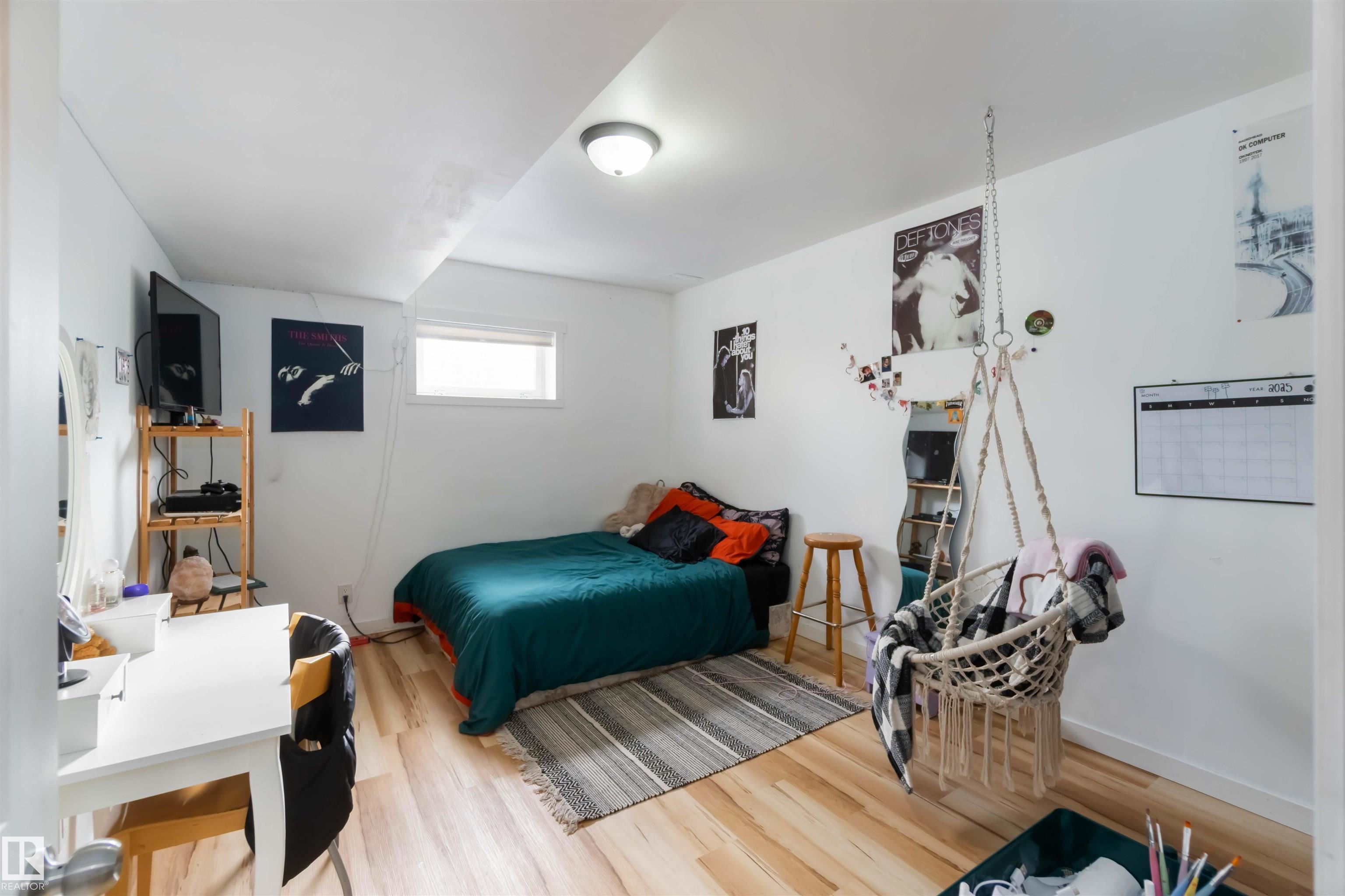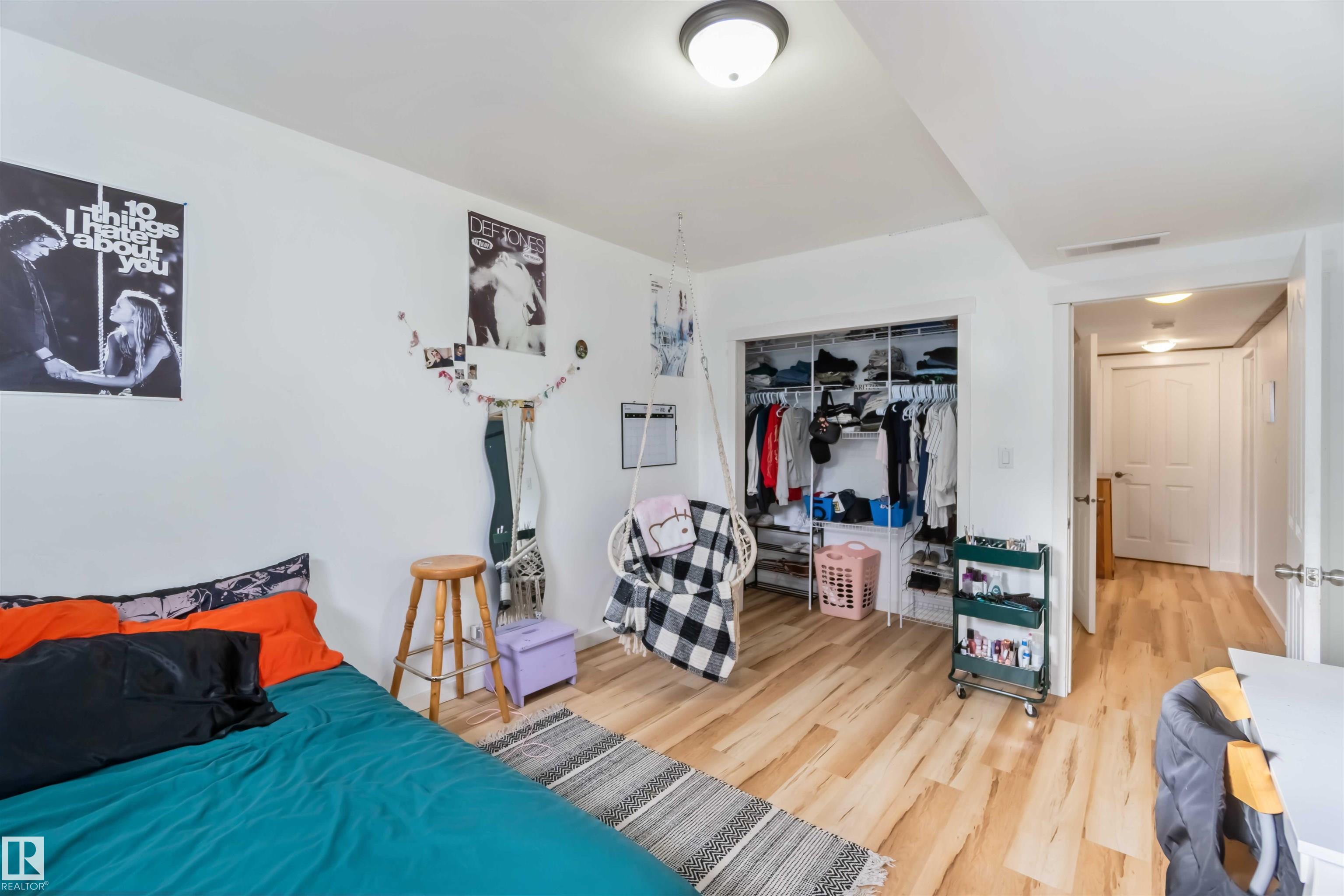 Great curb appeal and stunning modern features throughout this energy efficient home. This 990 sq ft 3-brm bungalow shows so well. Enter in from the insulated porch into the living space with vaulted ceilings, giving the home a first impression of roomy & comfortable. The kitchen has butcher block countertops & dining area with b/i bench seating. The main floor bathroom has a w/i shower & across the hall is the primary bedroom with b/i closet space. The basement is finished with a family room, 2 more bedrooms, a renovated 4 pc bathroom with soaker tub & new vinyl plank flooring. 9 ft ceilings, H/E furnace & hot water on demand, plus newer shingles (2021) on house and garage. All interior lighting updated & exterior painted. Deck off the back door for outdoor living space & a double detached garage 23x23. Fenced yard & a gravel pad for RV parking or firepit area. Walking distance to amenities (grocery store/drug store etc). Enjoy the quaint small town feeling in the Town of Bon Accord.