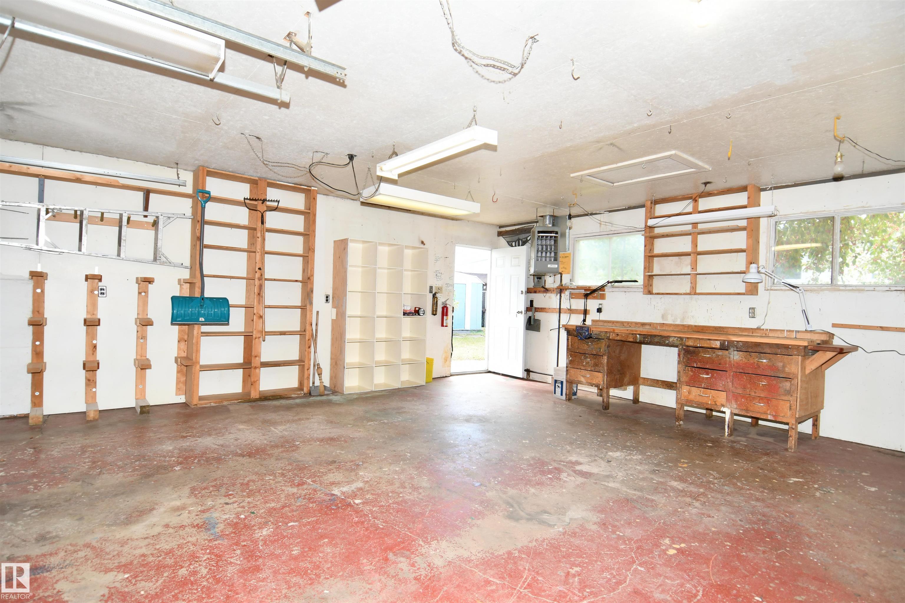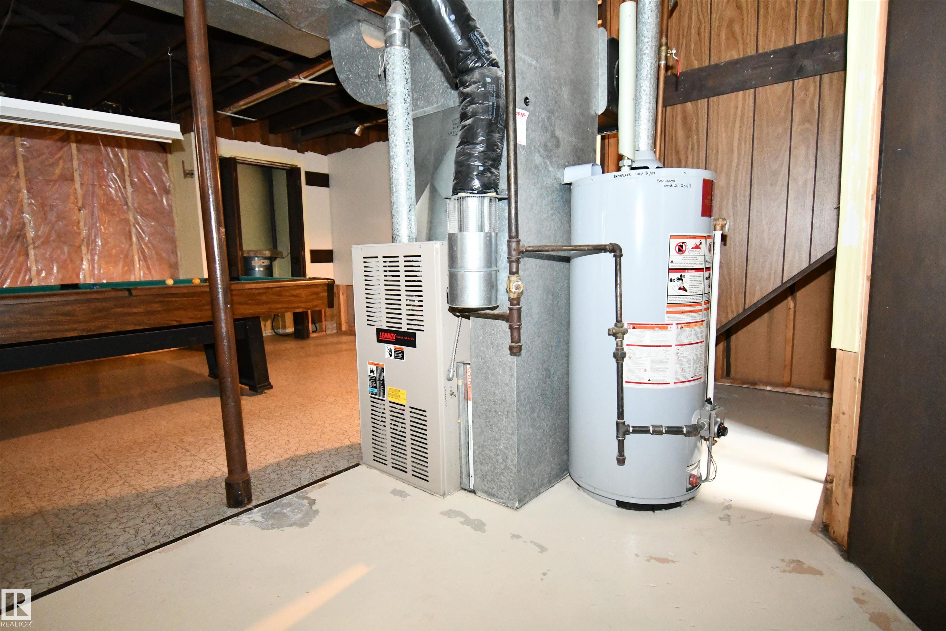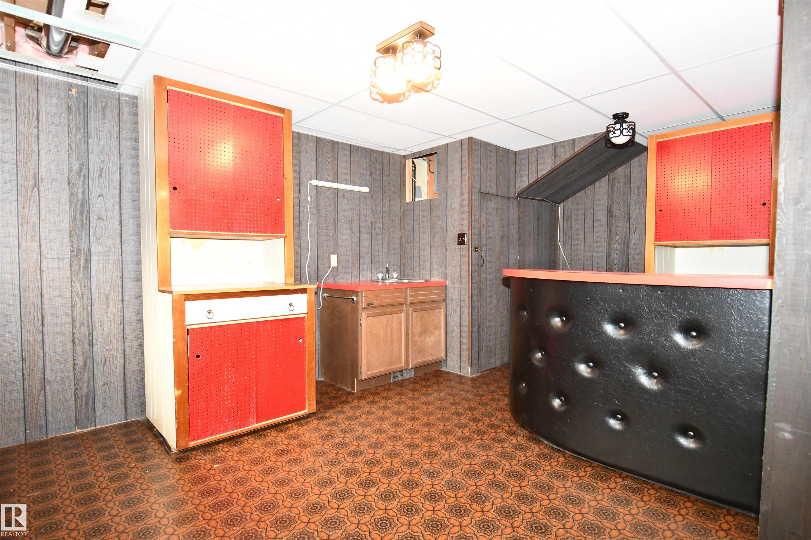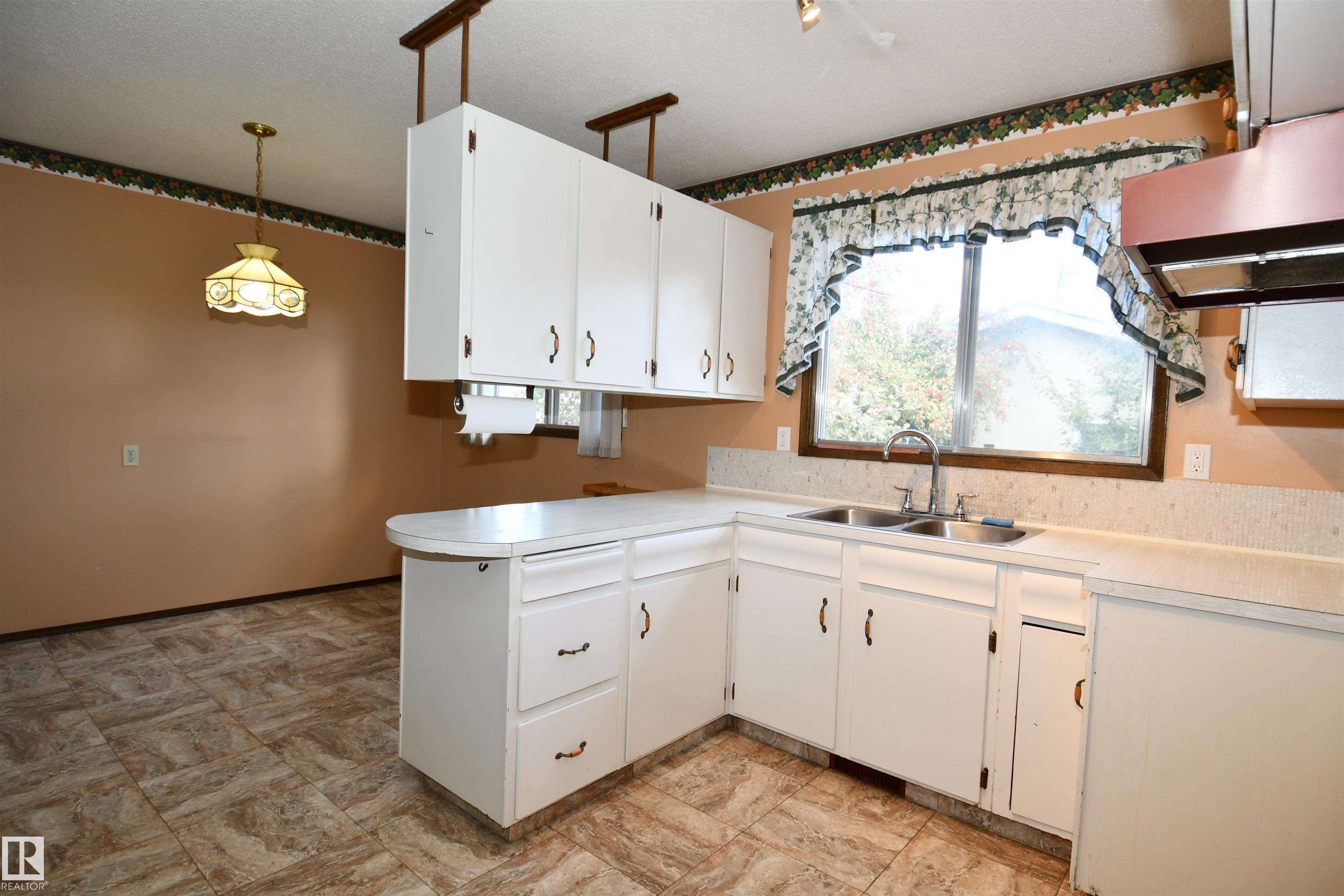 This charming 1015 sq. ft. bungalow is in a fantastic location, backing onto Kinsmen Park and playground, and near Leduc Comp High School. It features a cozy brick fireplace in the bayed-out living room and a convenient U-shaped kitchen that overlooks a fenced backyard adorned with an apple tree. The main level offers three bedrooms and a 4-piece bathroom with a walk-in tub. The basement has had some water issues that have been addressed but still requires finishing. A 22 x 24 heated garage completes the package all with back alley access. Needs a little TLC to bring back to its potential again. Pool table is included in price.