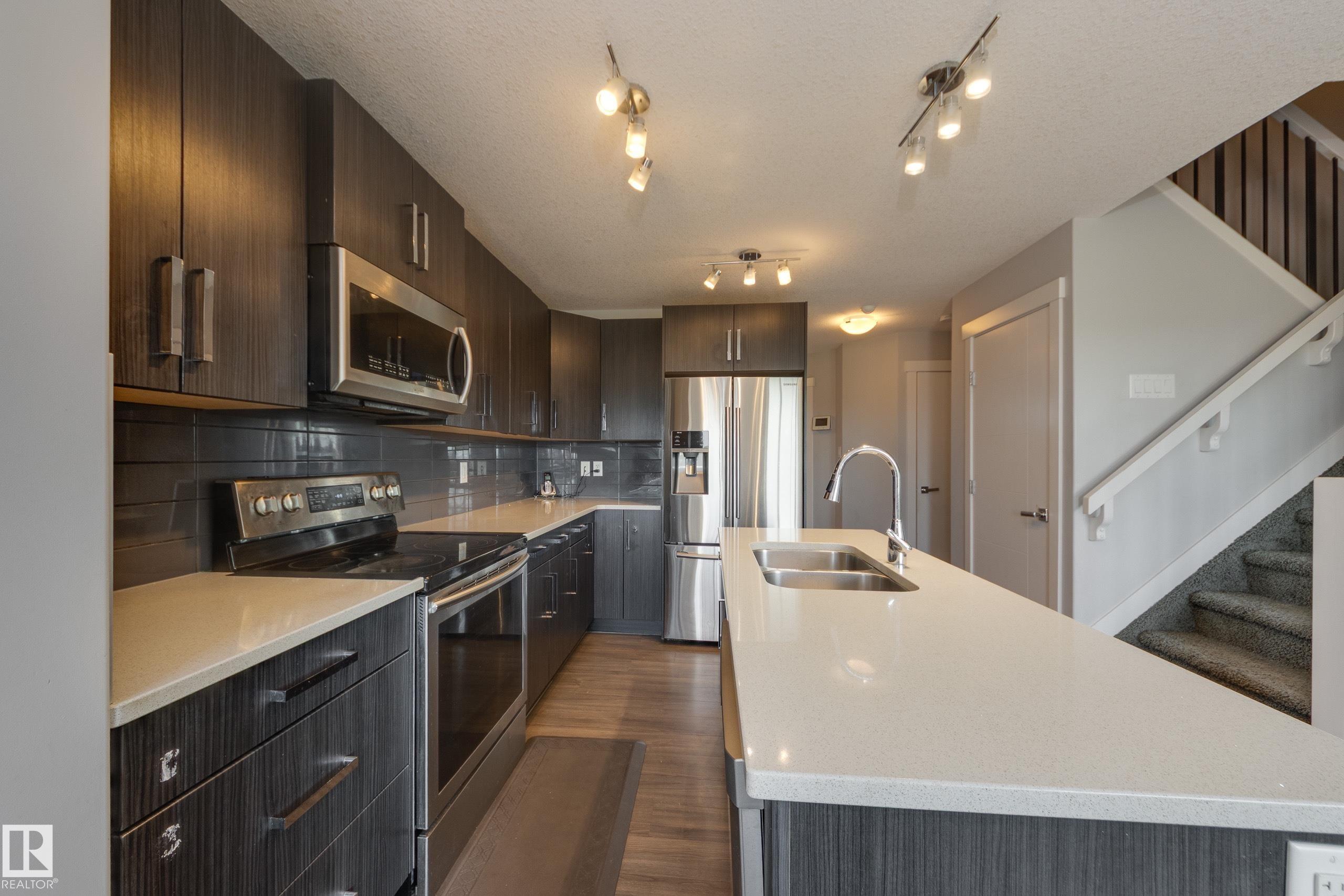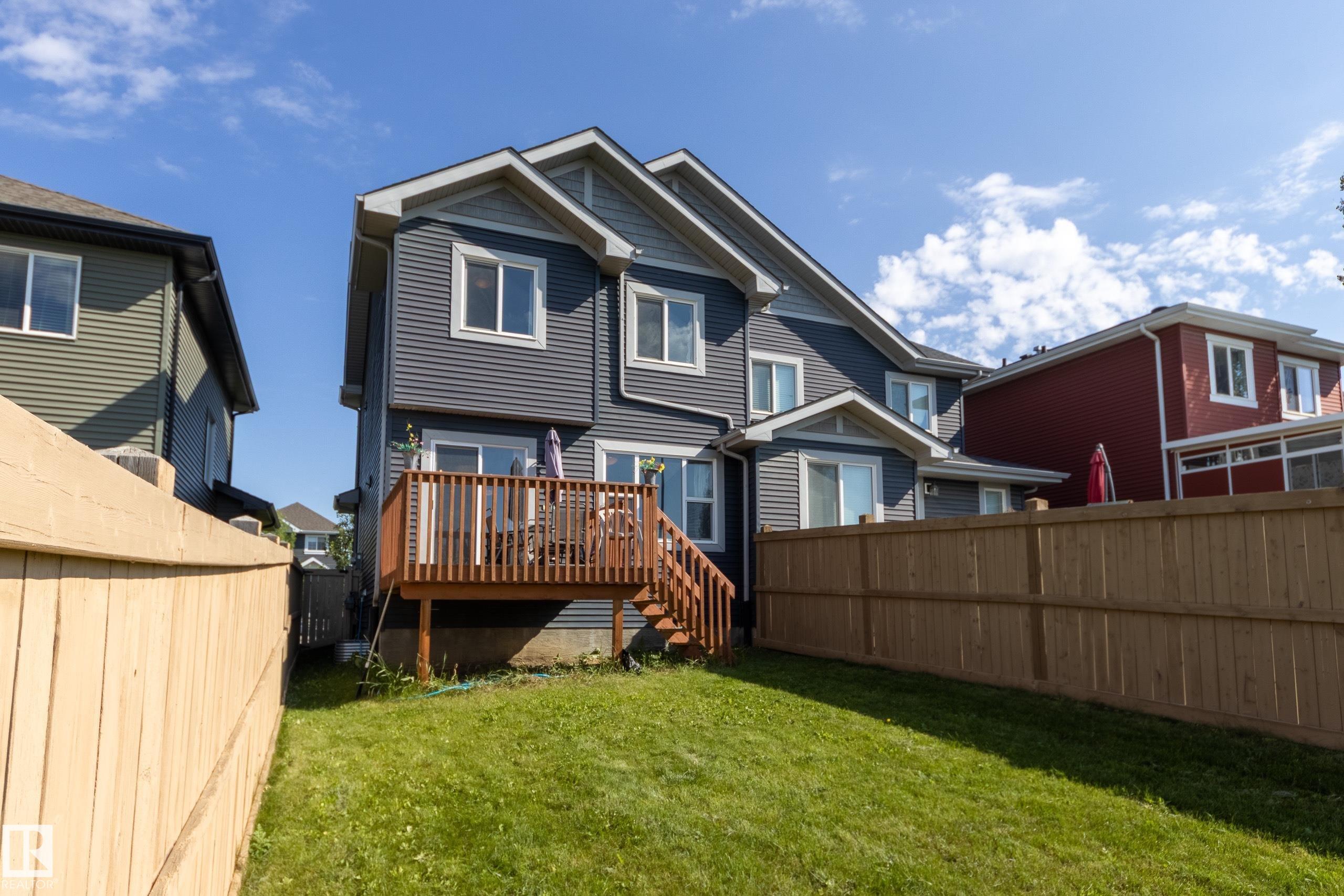 Welcome to Southwest Edmonton and the desirable community of Walker. A bright and spacious front entrance leads you past the 2-piece powder room into a large, open-concept kitchen, living/dining room. The kitchen boasts everything that the chef of the family is looking for including a huge island, plenty of cabinets and storage, gleaming quartz counters, and stainless steel appliances. Off the kitchen you'll find a deck for meals outside or your morning coffee, in addition to an ample fenced yard for the kids to run around. The upstairs has 3 generous-sized bedrooms and two bathrooms, including a spacious ensuite off the primary bedroom. With schools nearby, plenty of shopping, and access to the Henday and QE2, this half-duplex has everything you and your family is looking for with room to grow.