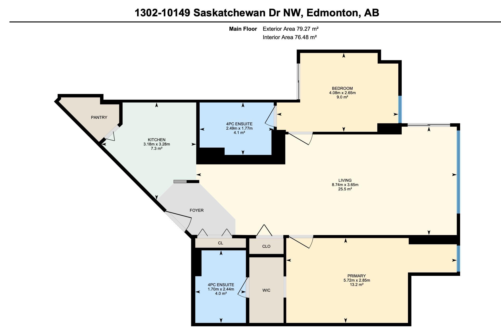 Experience urban living at its finest in this spacious condo at Water?s Edge, located in the heart of Strathcona. The open-concept living room is expansive and bright, featuring a large window with impressive city views. The kitchen offers a warm and inviting feel, complete with plenty of counter space, wooden cabinetry, and a handy pantry. The layout is ideal for privacy and comfort, with two generously sized bedrooms?each with its own 4-piece ensuite. The primary suite also includes a walk-in closet for added convenience. This condo offers the perfect blend of comfort, style, and location.