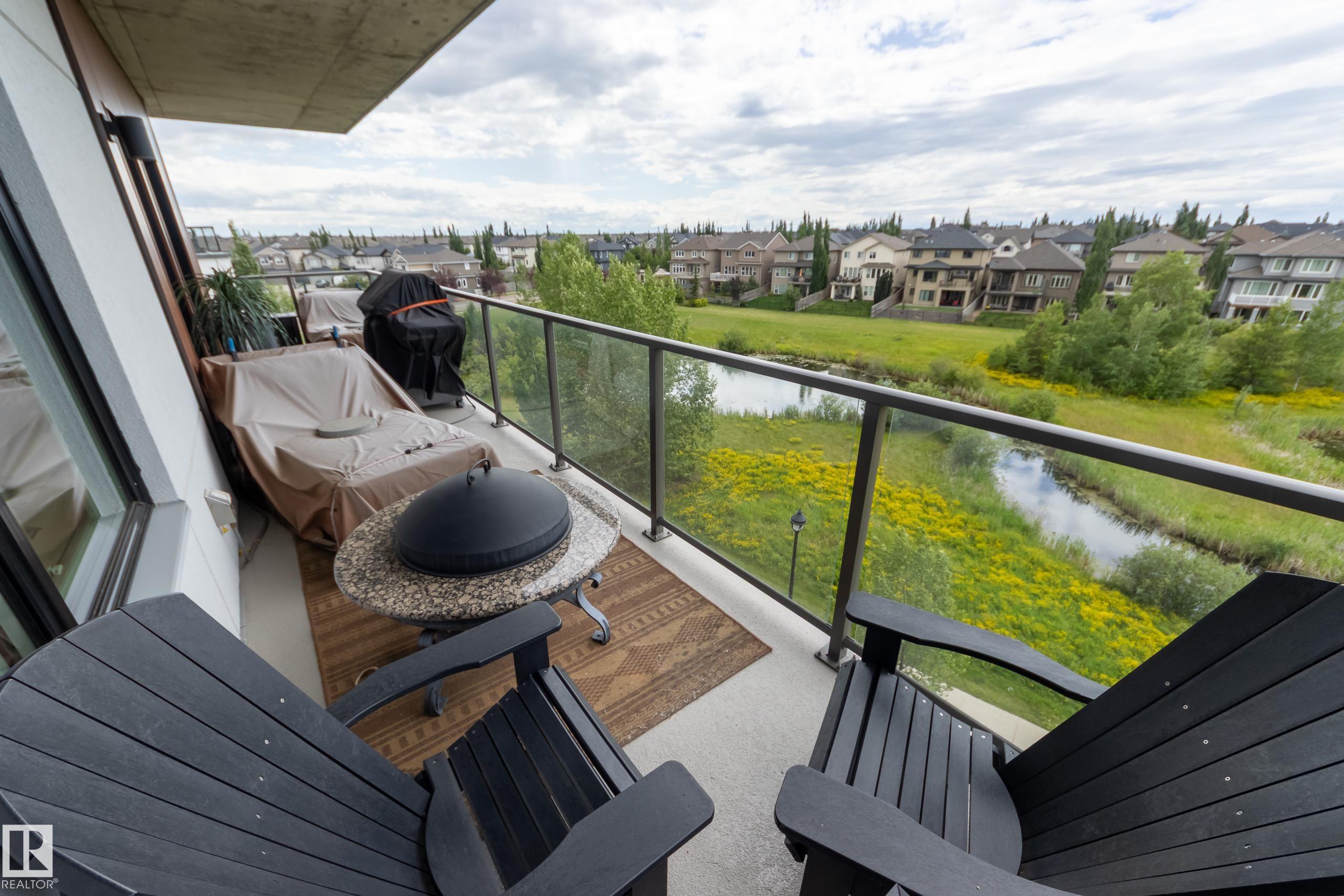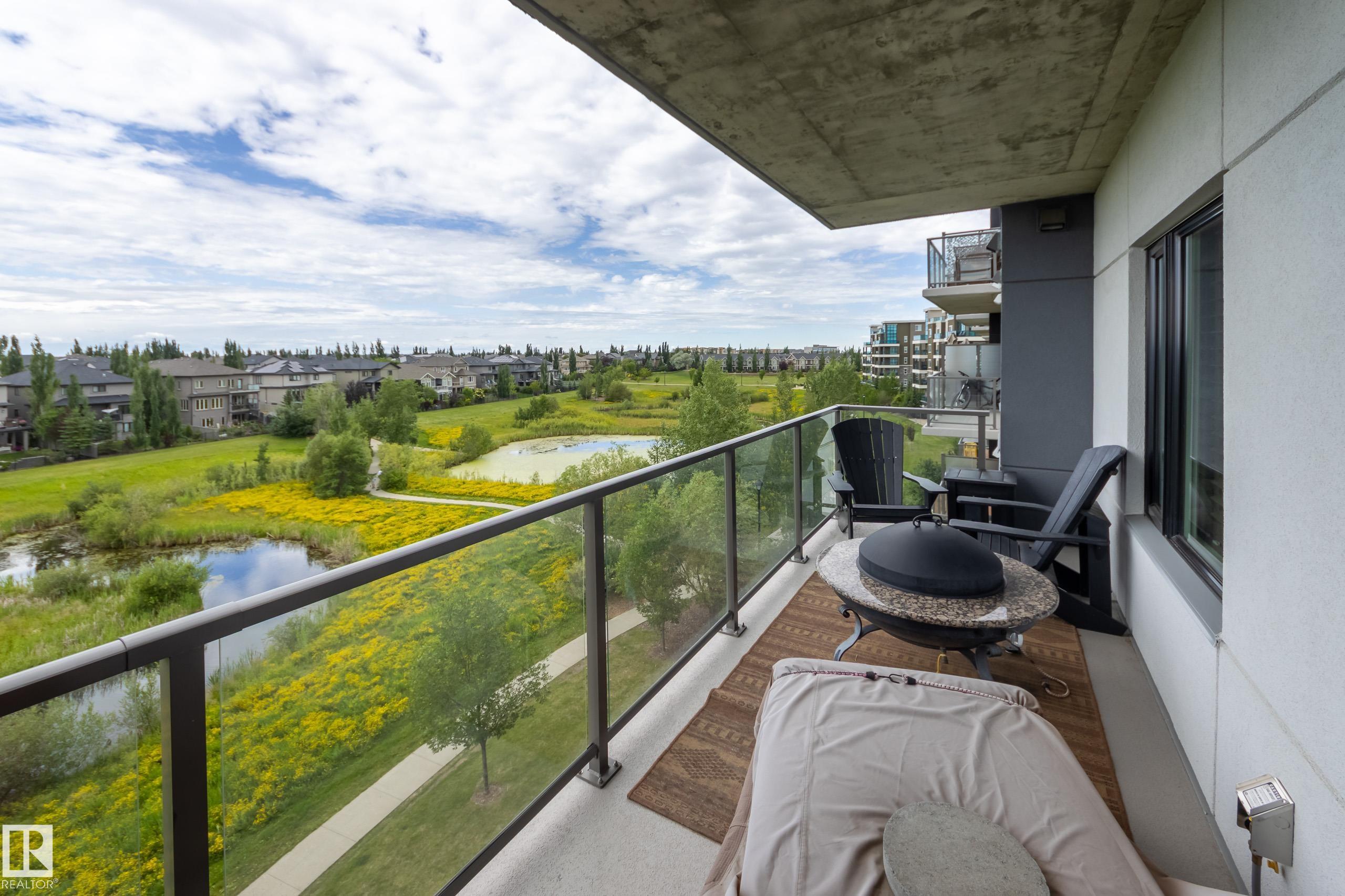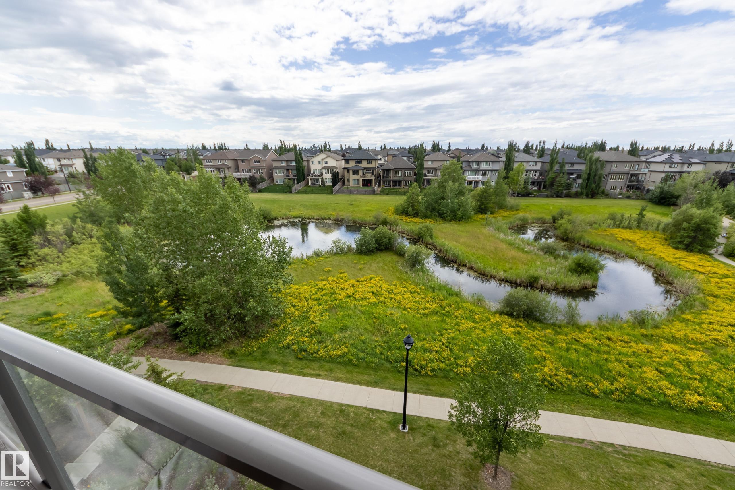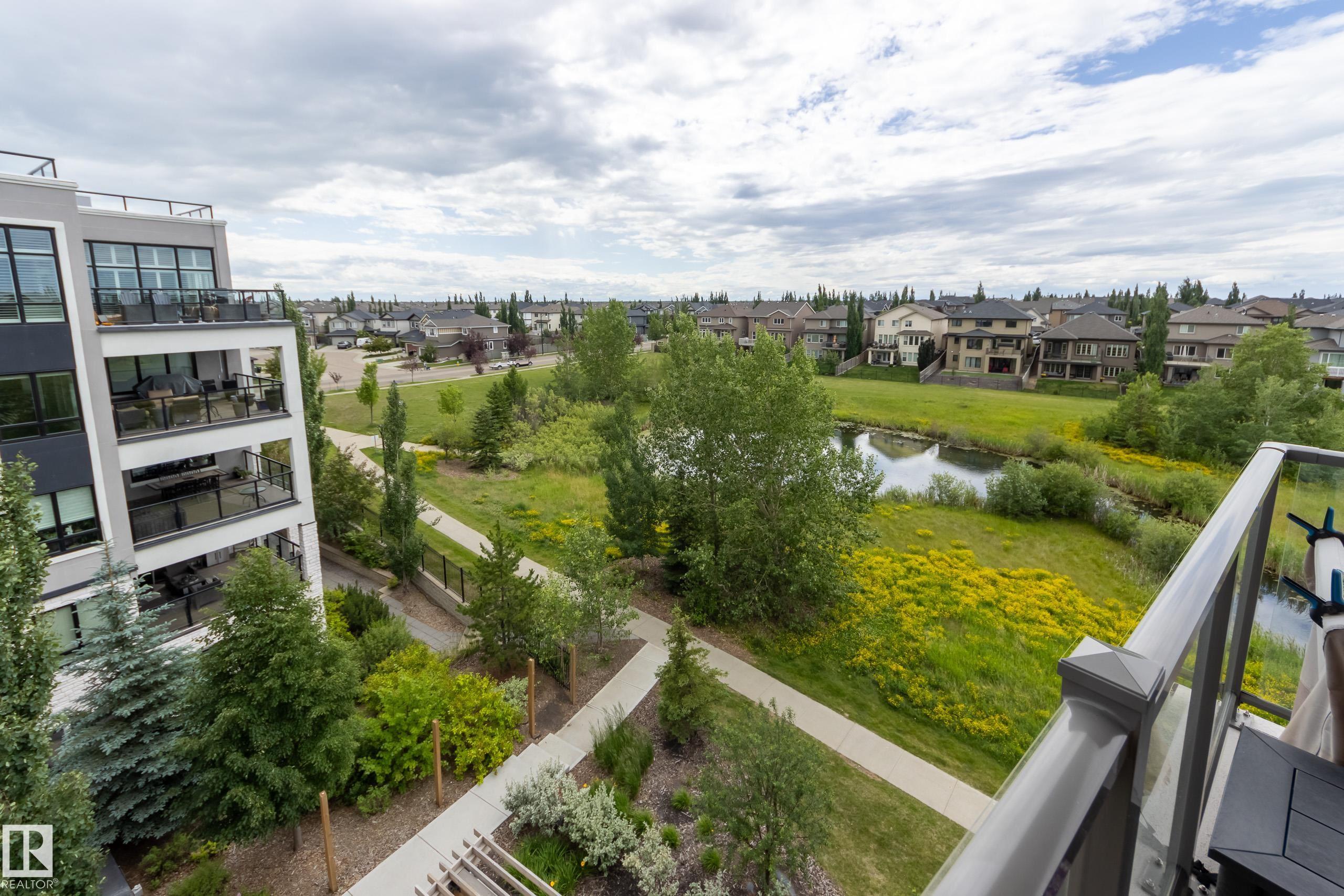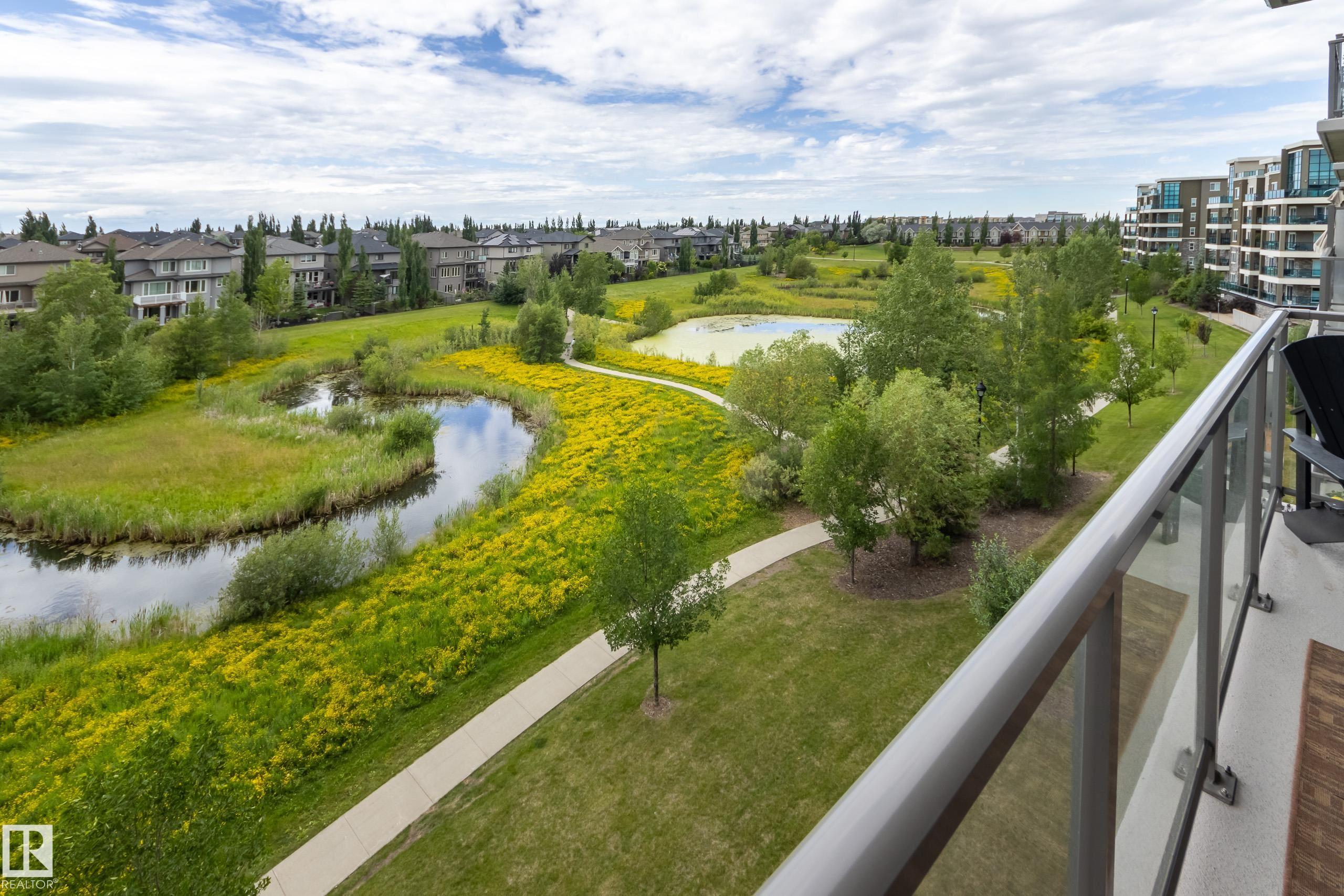 Offering 1595 Sq. Ft.of total living space! Are you looking for an executive style condo home in a secure, exclusive location? Look no further than this exquisite home with top quality finishing & upgrades plus it is a corner unit with South West exposure so you have a view of the pond & green space! Spacious foyer welcomes you home, & you will appreciate the many special touches here. A half bath is conveniently located for guests, & the open main living area offers wonderful south west views. The dining area has patio doors opening to the wrap around balcony so you can enjoy your outdoor living space with gas lines for BBQ & fire table! Kitchen is perfect for the family chef! Pantry, granite counter tops, Upgraded cabinets and appliances, including a 5 burner gas stove. Two large bedrooms, each with a walk-in closet & full ensuite bath. The den is perfect for home office, exercise space or whatever suits your life style. Comes with two underground parking stalls, storage cabinets & cage storage