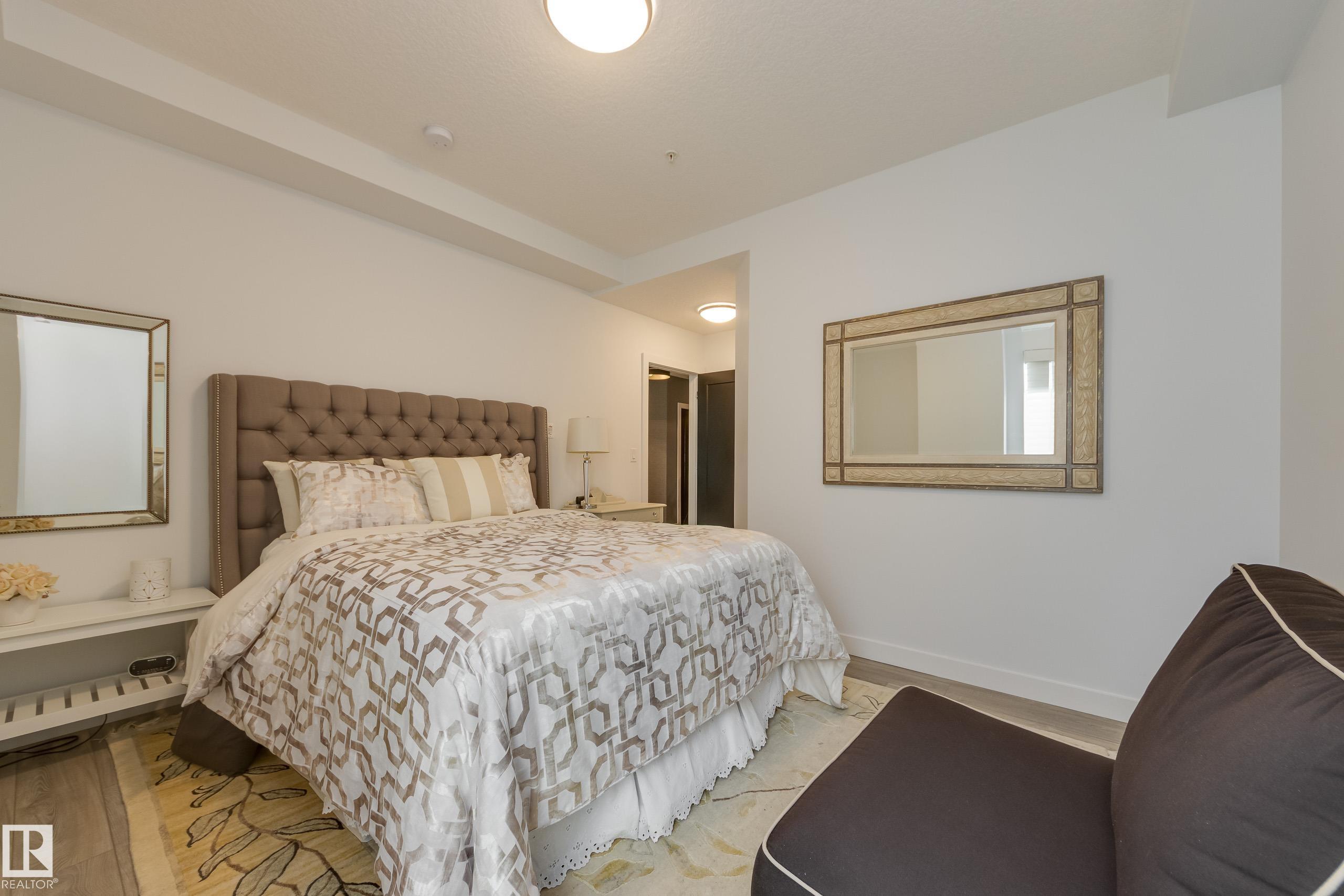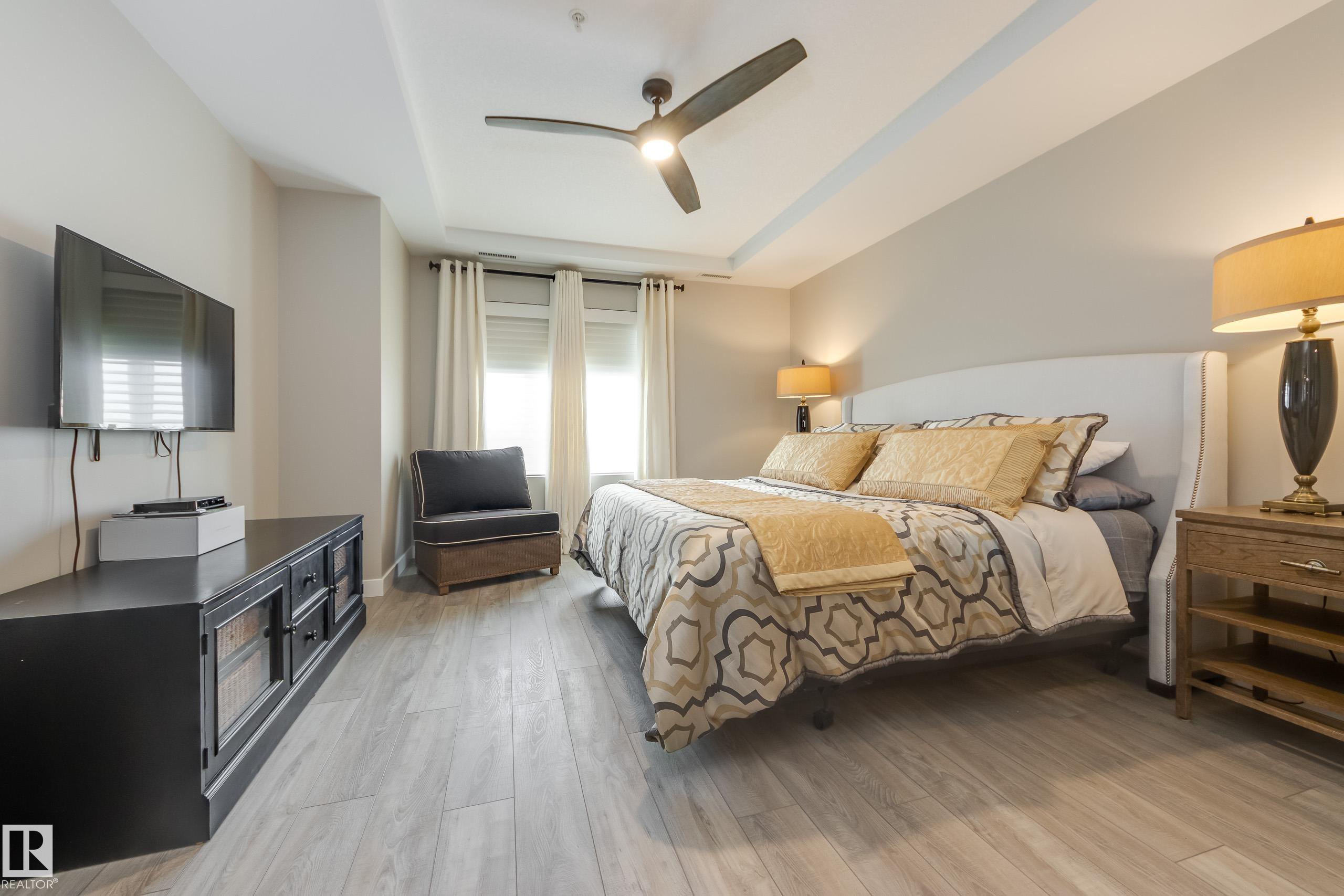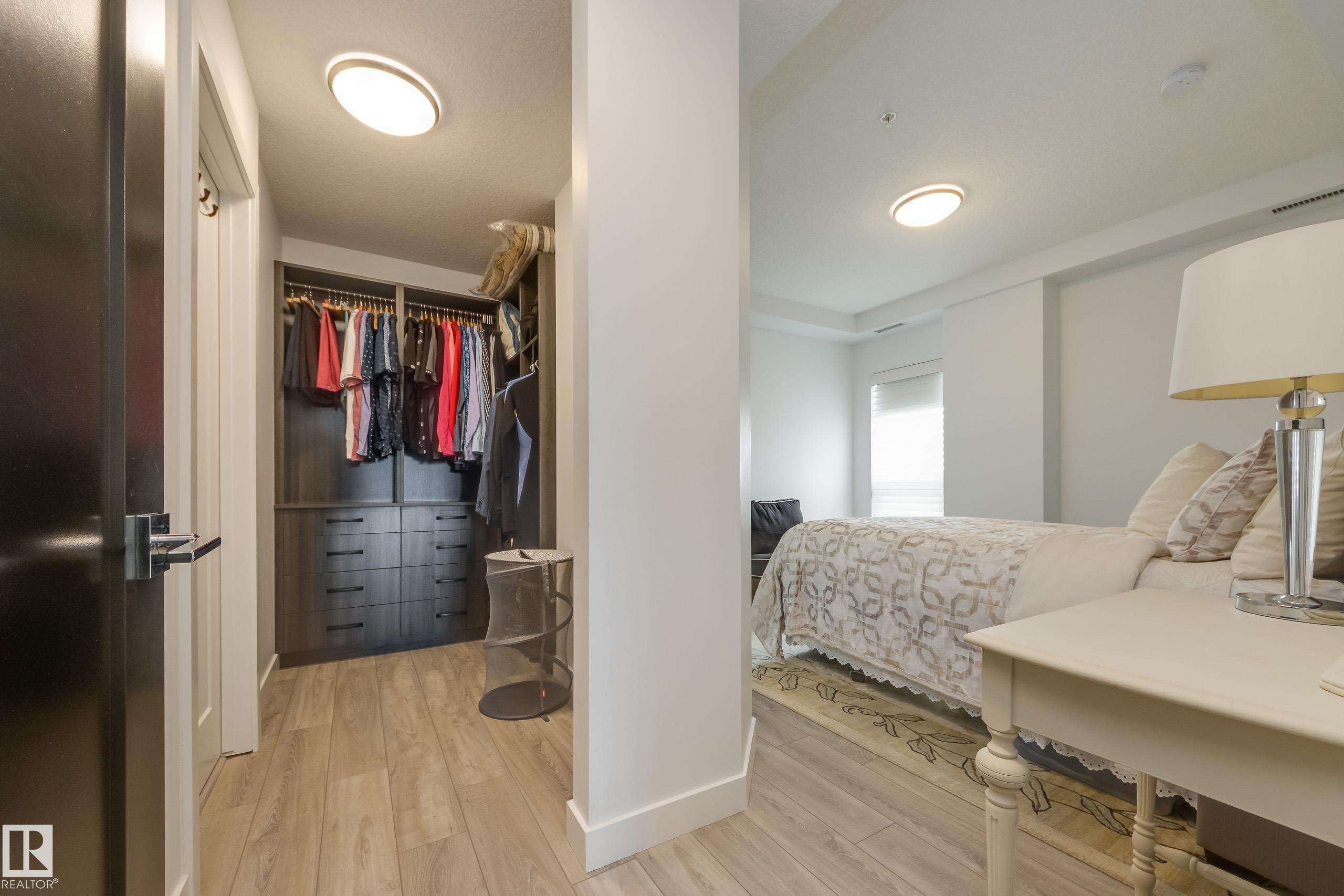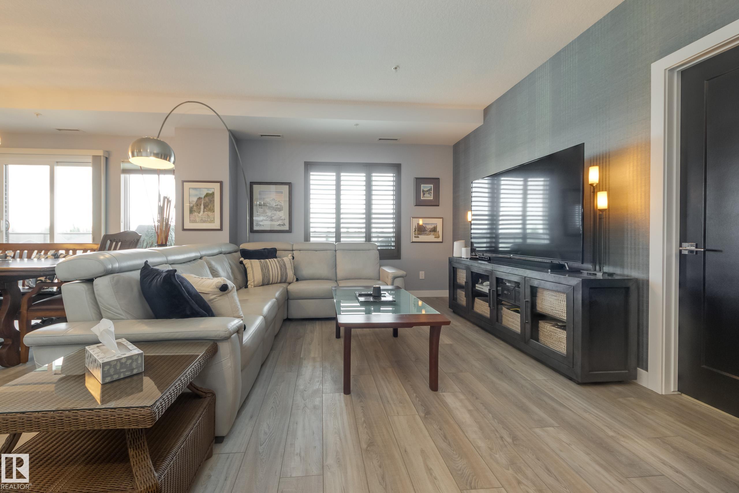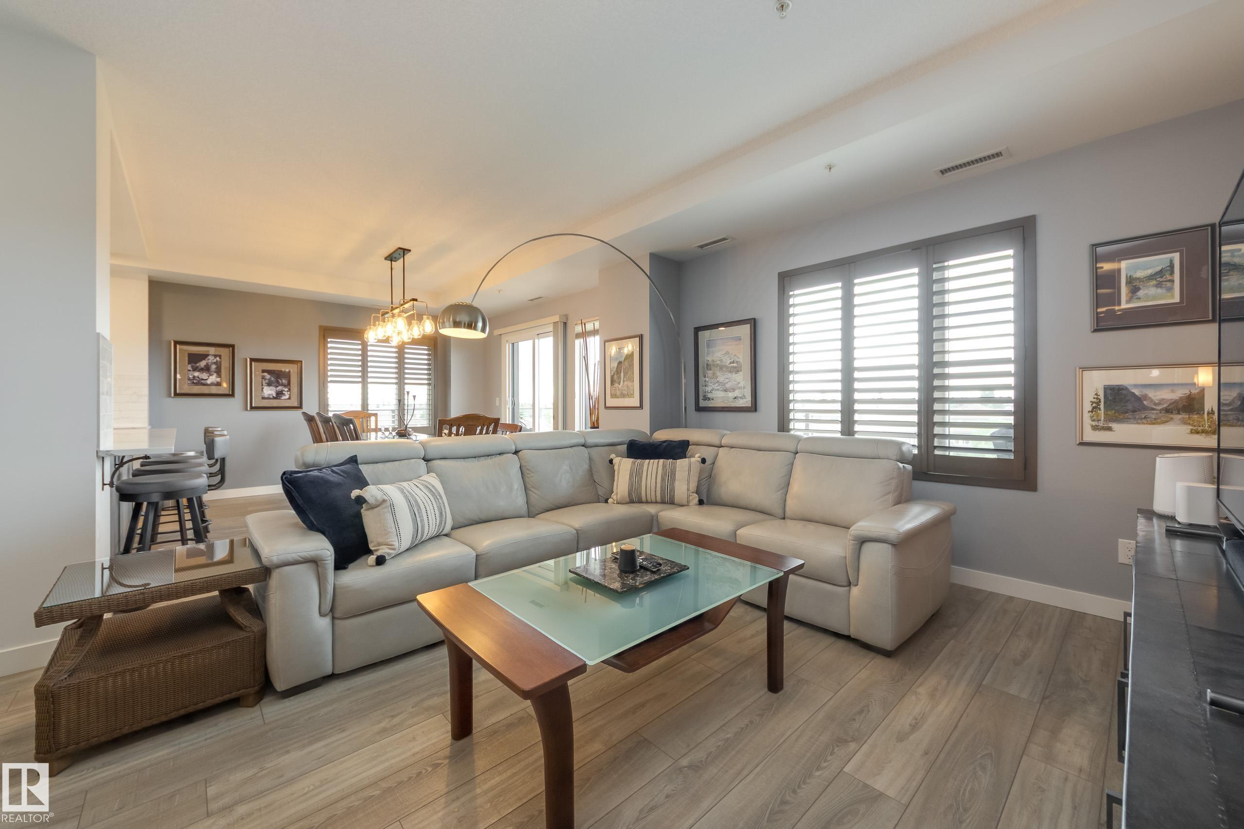 Offering 1595 Sq. Ft.of total living space! Are you looking for an executive style condo home in a secure, exclusive location? Look no further than this exquisite home with top quality finishing & upgrades plus it is a corner unit with South West exposure so you have a view of the pond & green space! Spacious foyer welcomes you home, & you will appreciate the many special touches here. A half bath is conveniently located for guests, & the open main living area offers wonderful south west views. The dining area has patio doors opening to the wrap around balcony so you can enjoy your outdoor living space with gas lines for BBQ & fire table! Kitchen is perfect for the family chef! Pantry, granite counter tops, Upgraded cabinets and appliances, including a 5 burner gas stove. Two large bedrooms, each with a walk-in closet & full ensuite bath. The den is perfect for home office, exercise space or whatever suits your life style. Comes with two underground parking stalls, storage cabinets & cage storage