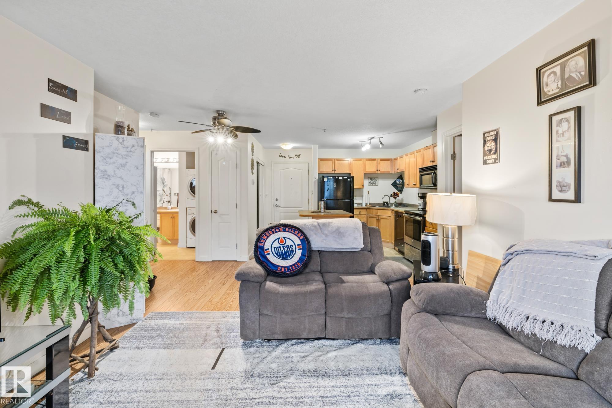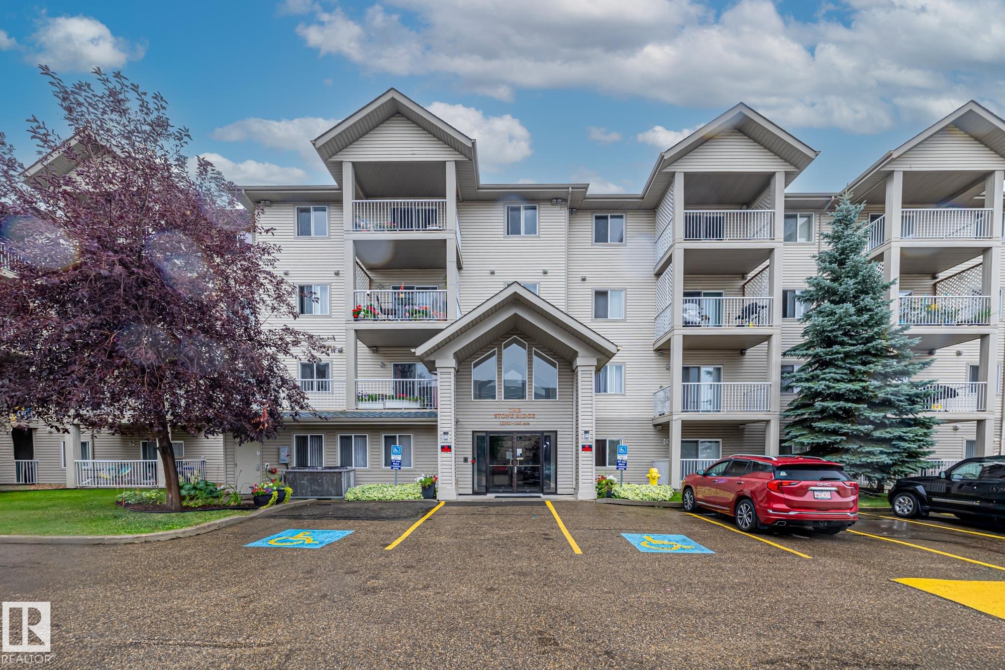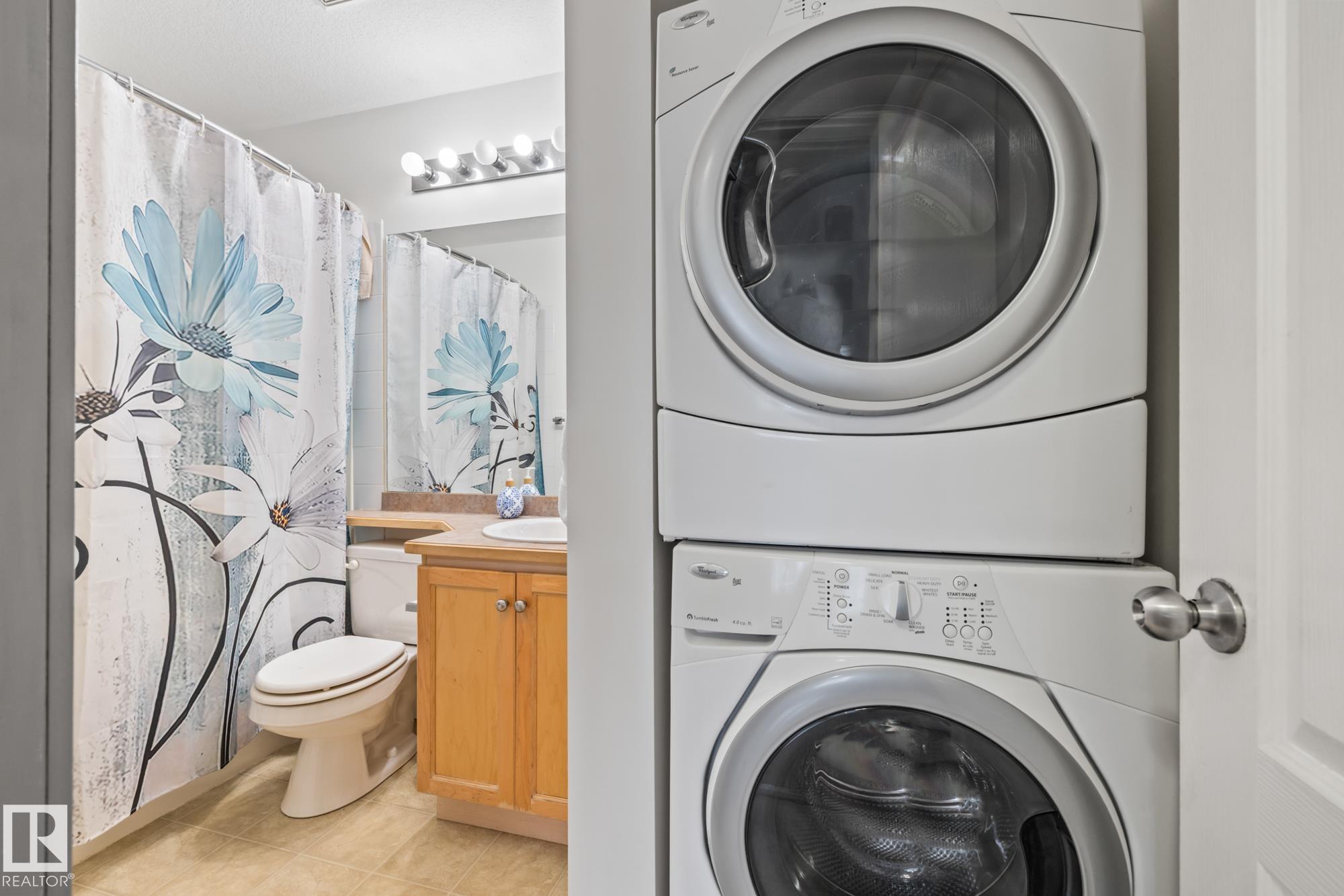 SPACIOUS 2 Bed 2 Bath with in suite laundry, storage, and 2 PARKING STALLS including one underground heated stall! PET FRIENDLY, family friendly building with a great location, steps from SUPERSTORE, Home Depot, and plenty of other great amenities. Located in a quiet building, with a large deck, a nice open concept kitchen with wood cabinets, and NEWER laminate floors. This is a great starter home opportunity, with low condo fees, and a fantastic location! A MUST SEE!