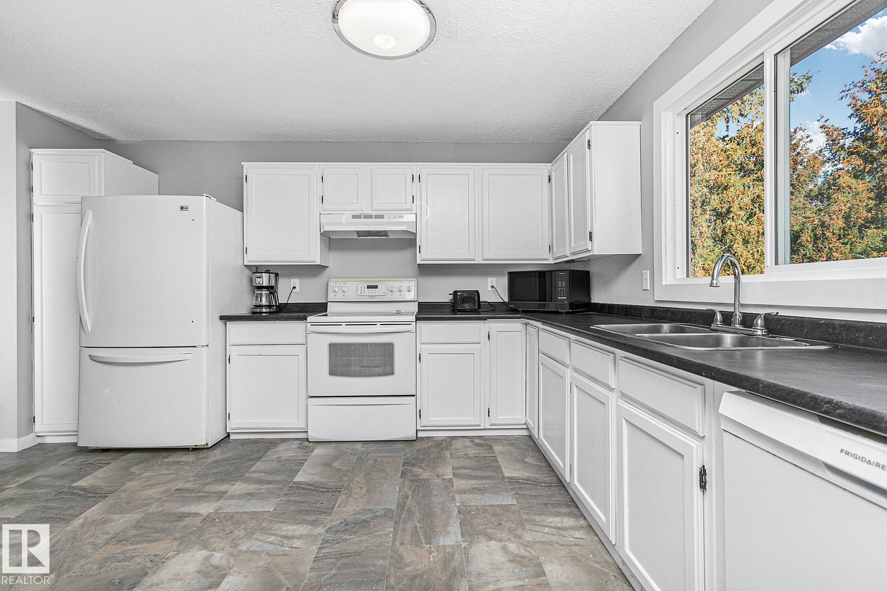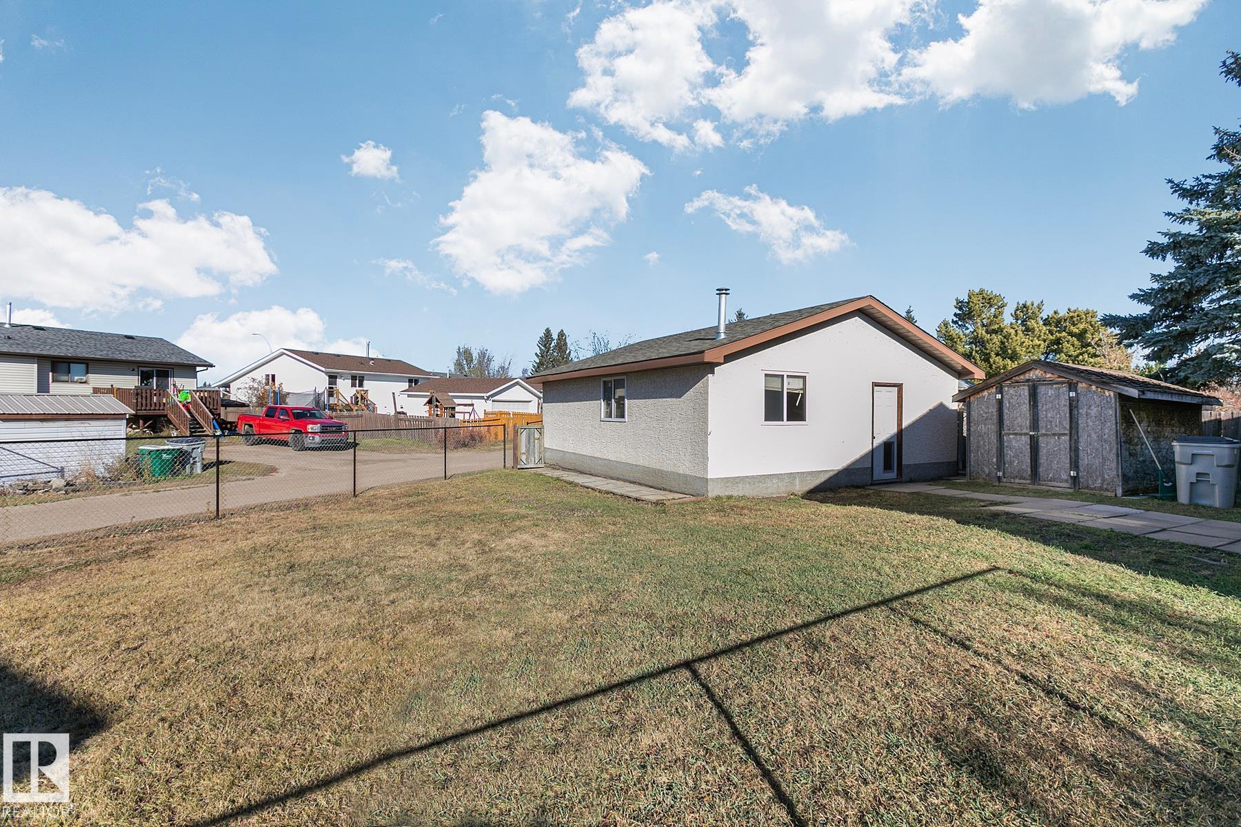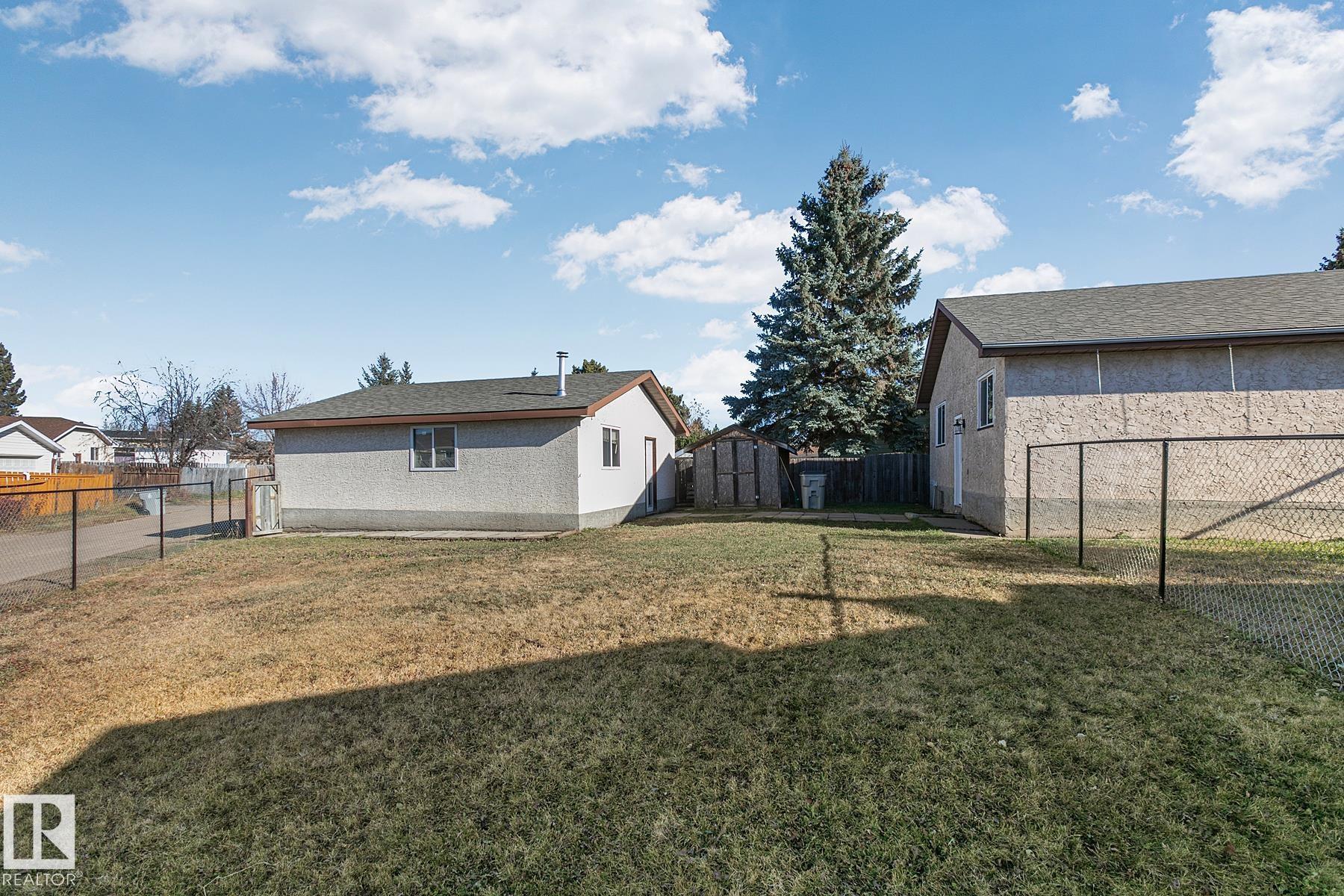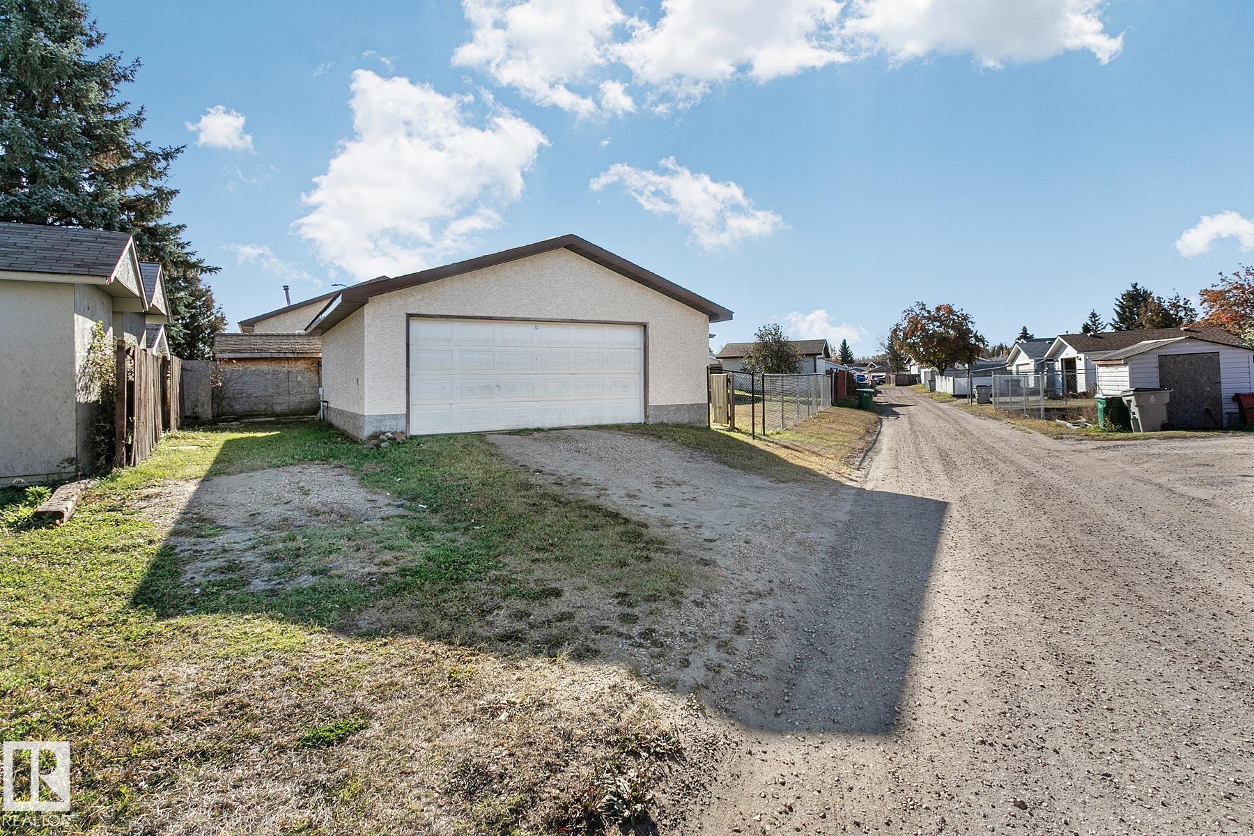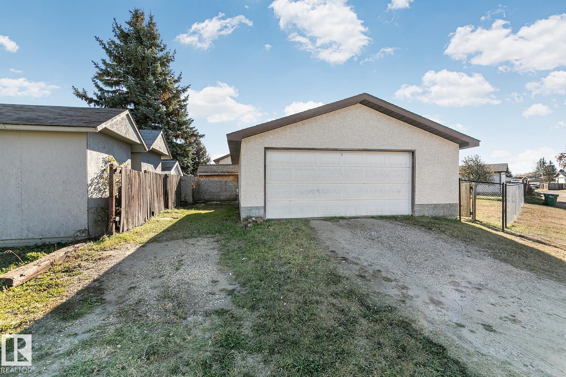 Substantially upgraded bungalow in the beautiful family community of Gibbons! Fantastic home with numerous upgrades including NEW: laminate hardwood flooring, tile flooring, baseboards, casings, steel exterior doors, several vinyl windows & professional paint. Spacious living room featuring oversize windows for ample natural lighting & a stone-faced wood burning fireplace with mantle. White kitchen cabinets with new countertop & brand new dishwasher. Eating nook in kitchen & formal DR as well. 3 bedroom up including large primary bedroom with walk-in closet. Main bath has a deep soaker tub with tile surround & granite top vanity. New black doorknobs & hardware on colonial doors. Many new fixtures as well. Basement is partially finished with FR & 2 bds framed & ready to finish. New 4 pc bath & laundry room down with brand new appliances. Oversized 26x24 heated double garage with new door opener & RV parking next to it. Huge 9100 sq ft lot backs west for great sun exposure and is fully fenced in chain link.