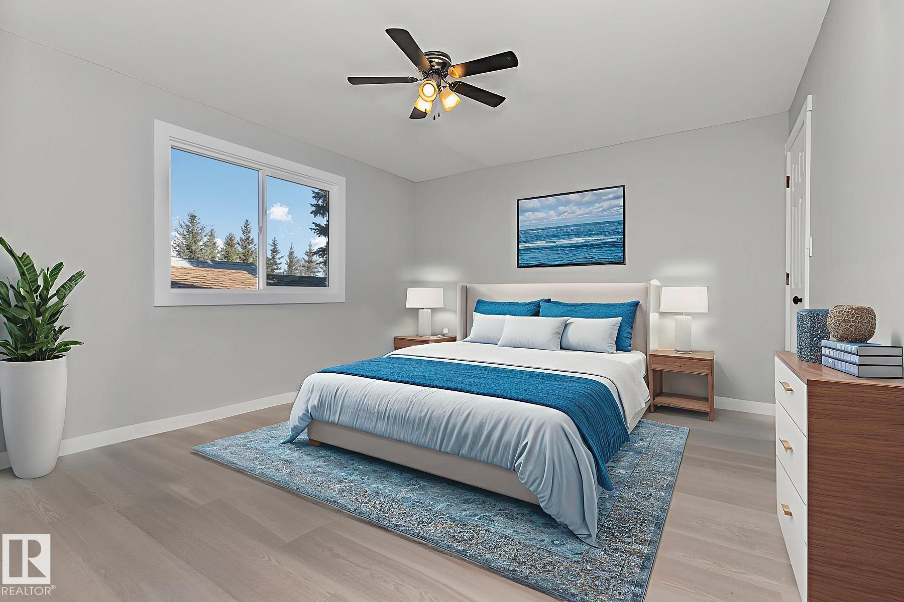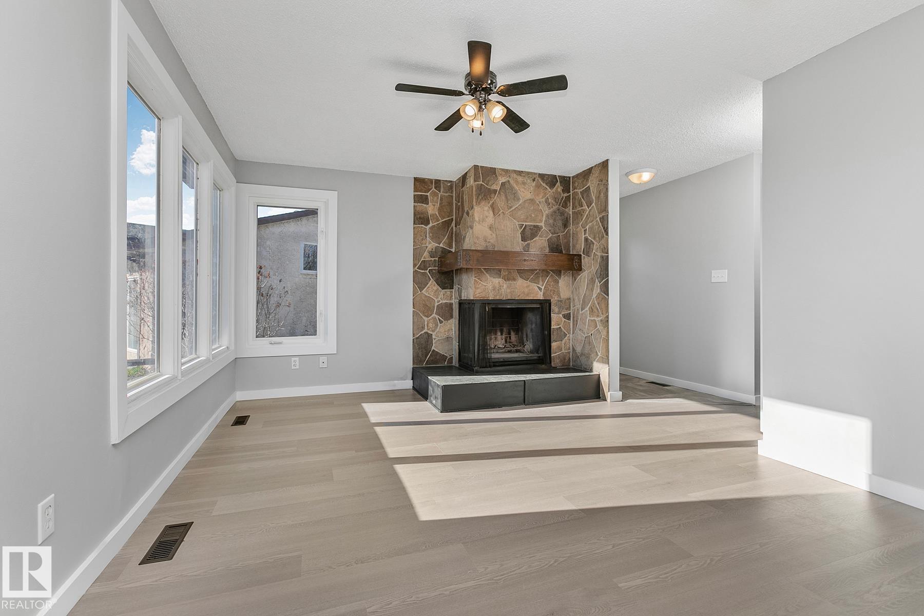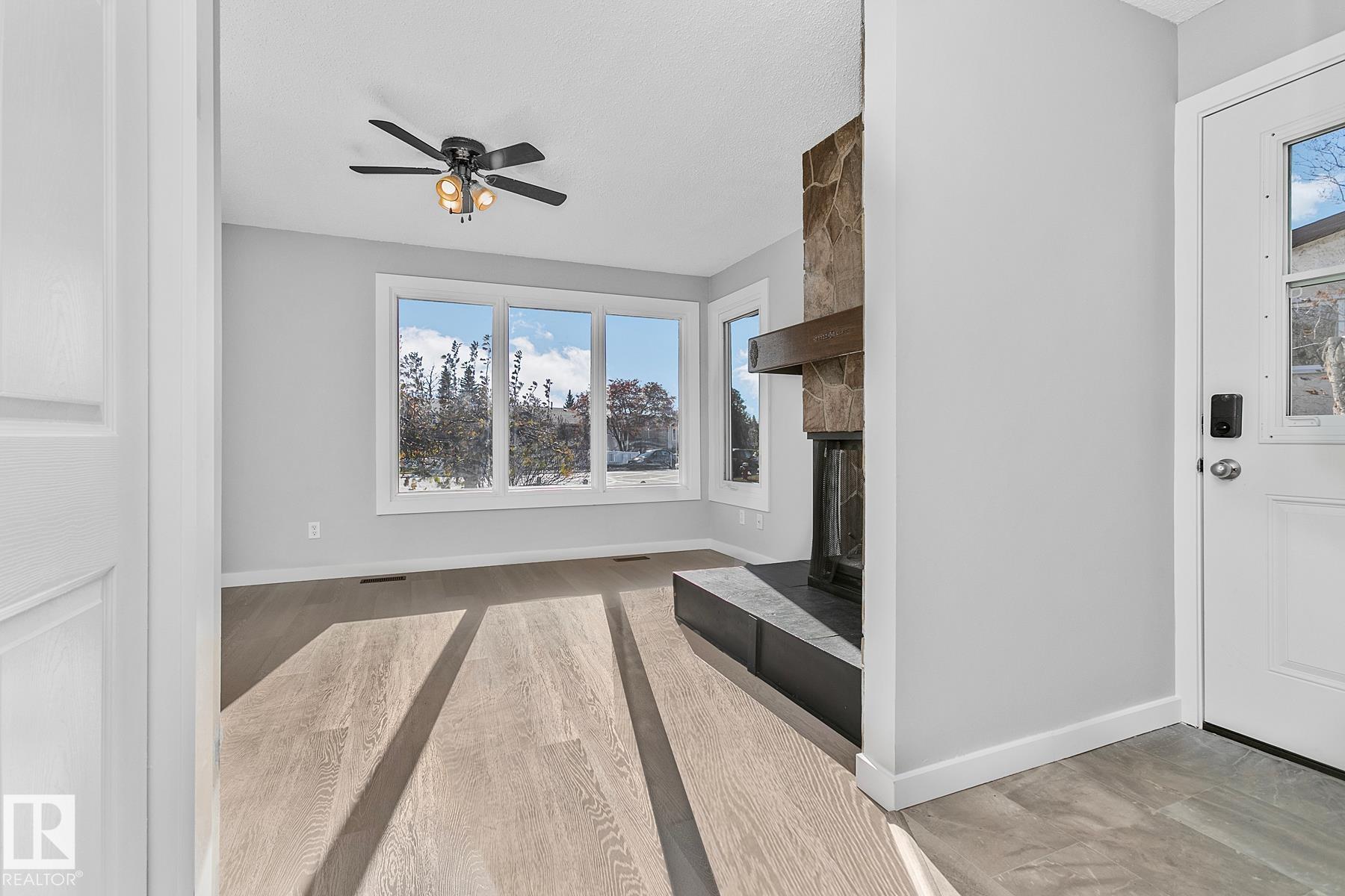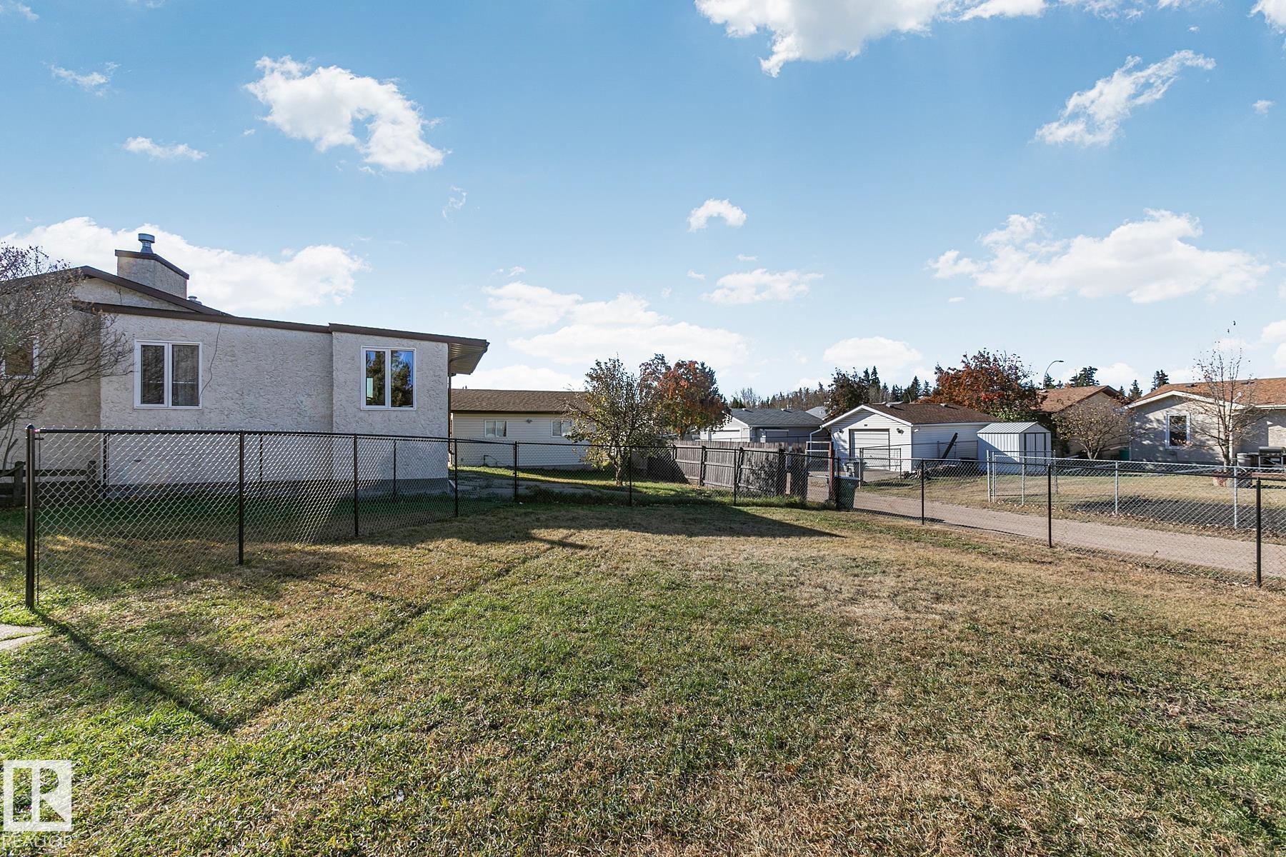 Substantially upgraded bungalow in the beautiful family community of Gibbons! Fantastic home with numerous upgrades including NEW: laminate hardwood flooring, tile flooring, baseboards, casings, steel exterior doors, several vinyl windows & professional paint. Spacious living room featuring oversize windows for ample natural lighting & a stone-faced wood burning fireplace with mantle. White kitchen cabinets with new countertop & brand new dishwasher. Eating nook in kitchen & formal DR as well. 3 bedroom up including large primary bedroom with walk-in closet. Main bath has a deep soaker tub with tile surround & granite top vanity. New black doorknobs & hardware on colonial doors. Many new fixtures as well. Basement is partially finished with FR & 2 bds framed & ready to finish. New 4 pc bath & laundry room down with brand new appliances. Oversized 26x24 heated double garage with new door opener & RV parking next to it. Huge 9100 sq ft lot backs west for great sun exposure and is fully fenced in chain link.