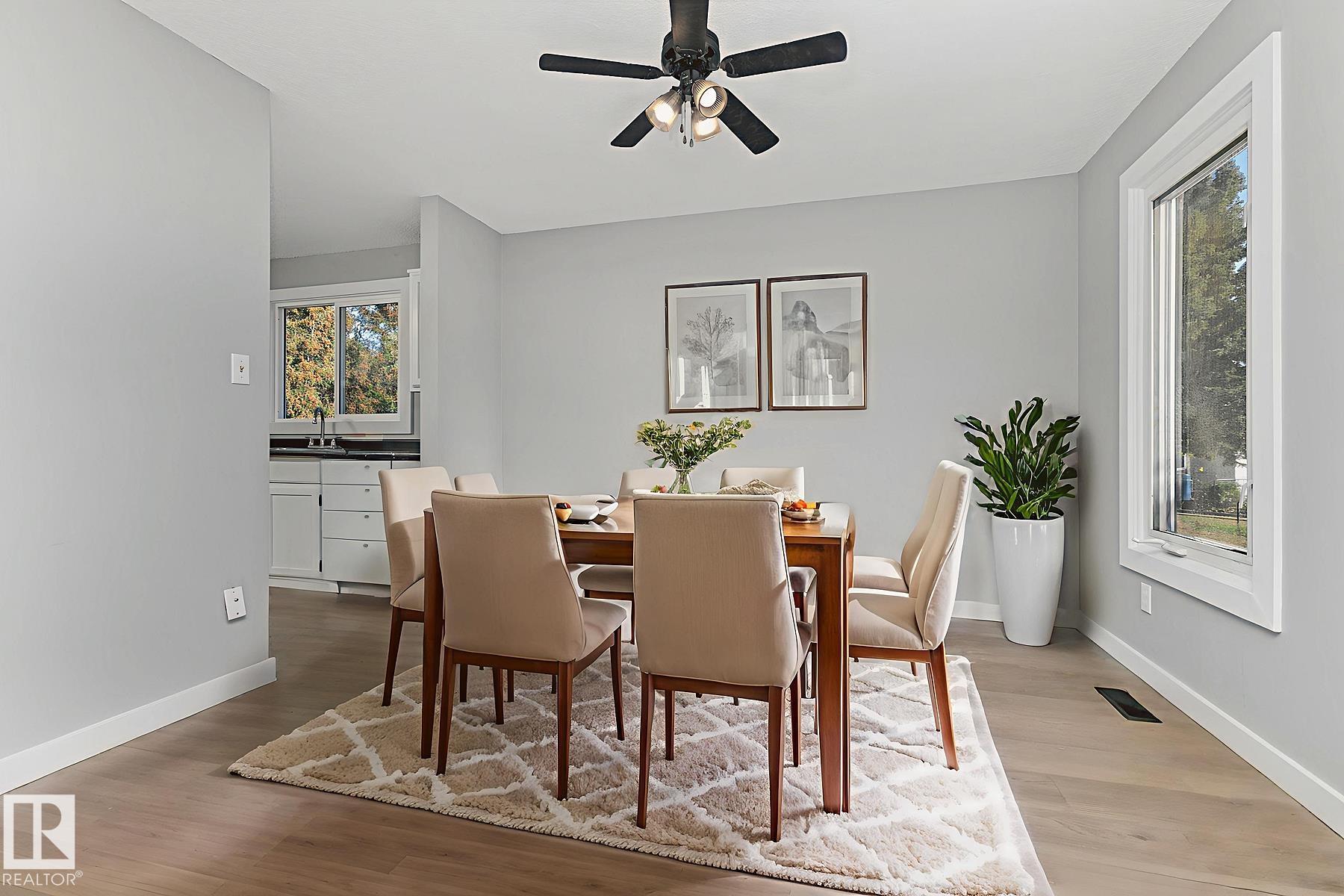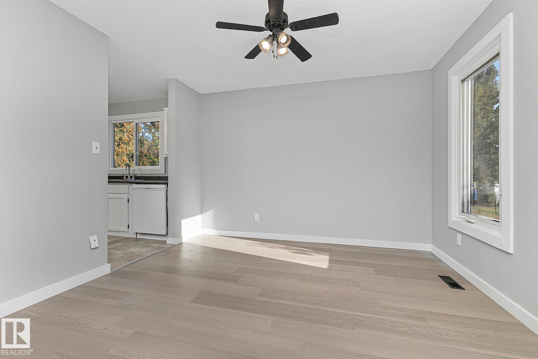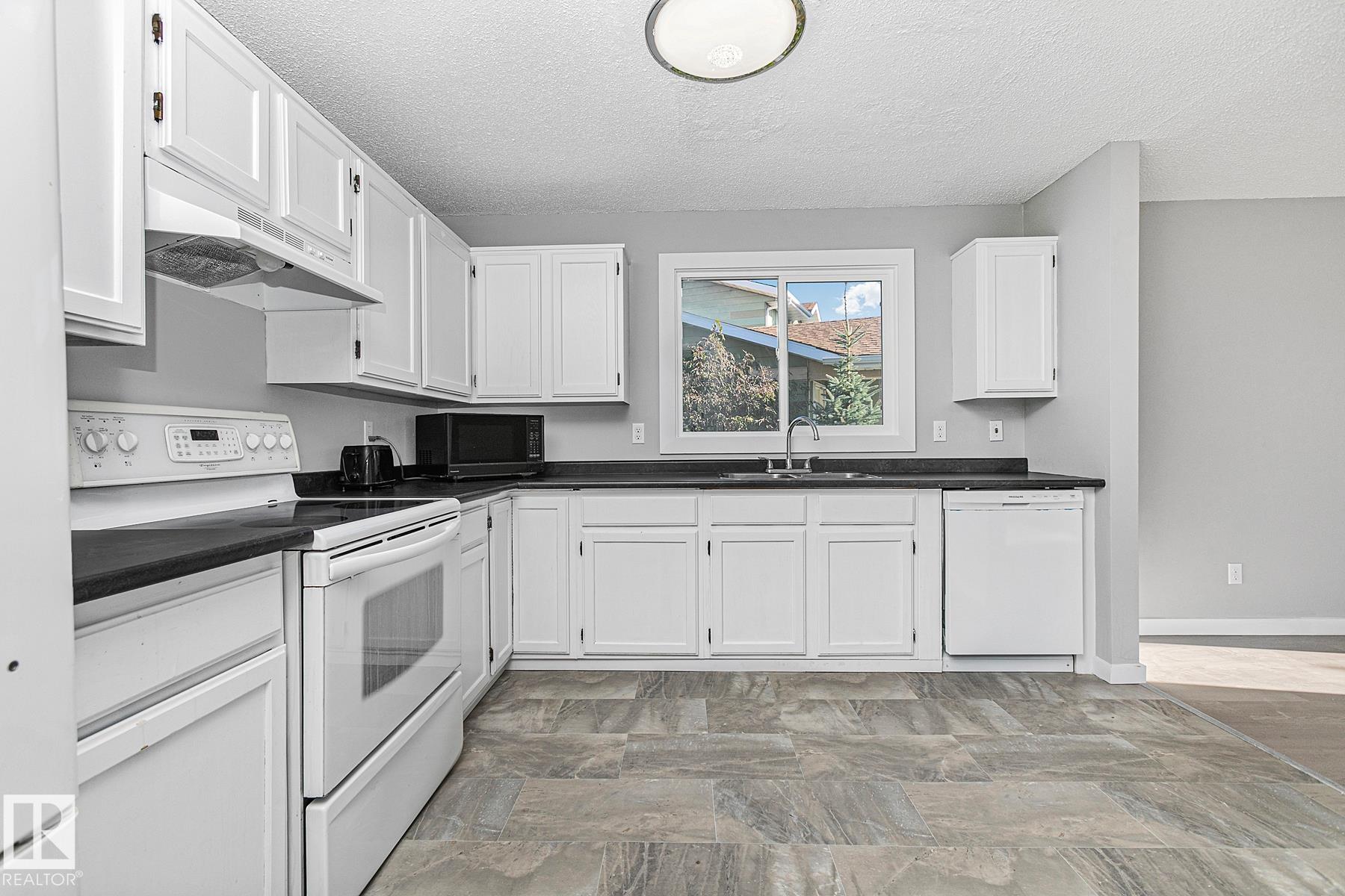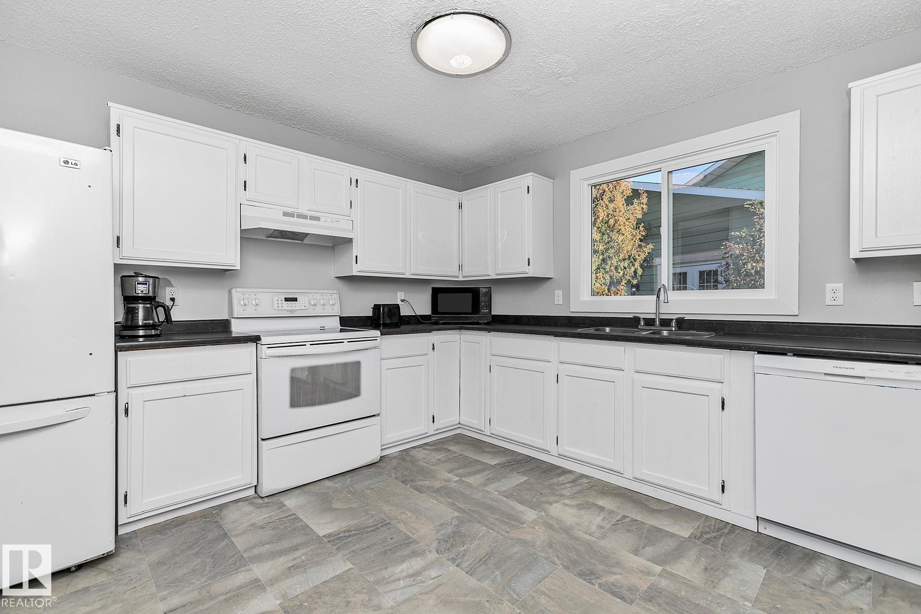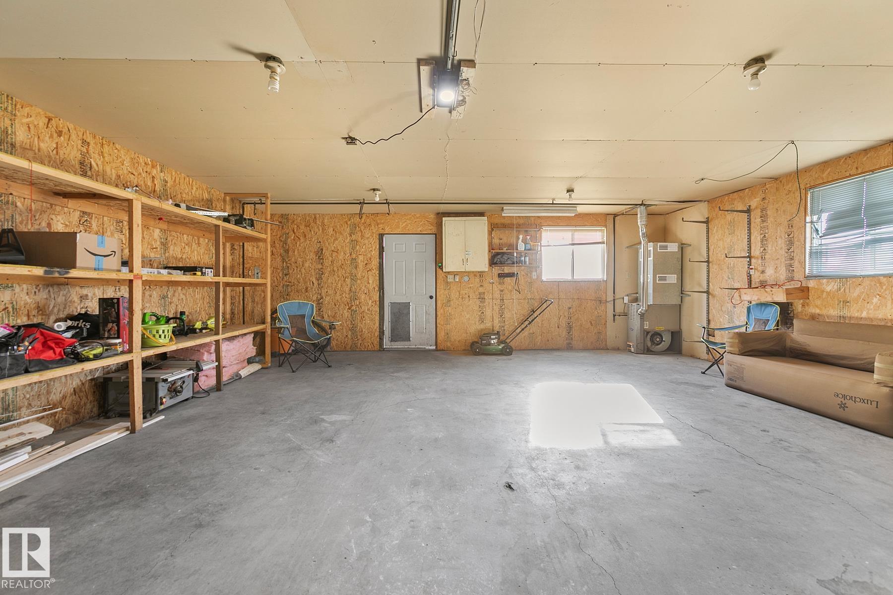 Substantially upgraded bungalow in the beautiful family community of Gibbons! Fantastic home with numerous upgrades including NEW: laminate hardwood flooring, tile flooring, baseboards, casings, steel exterior doors, several vinyl windows & professional paint. Spacious living room featuring oversize windows for ample natural lighting & a stone-faced wood burning fireplace with mantle. White kitchen cabinets with new countertop & brand new dishwasher. Eating nook in kitchen & formal DR as well. 3 bedroom up including large primary bedroom with walk-in closet. Main bath has a deep soaker tub with tile surround & granite top vanity. New black doorknobs & hardware on colonial doors. Many new fixtures as well. Basement is partially finished with FR & 2 bds framed & ready to finish. New 4 pc bath & laundry room down with brand new appliances. Oversized 26x24 heated double garage with new door opener & RV parking next to it. Huge 9100 sq ft lot backs west for great sun exposure and is fully fenced in chain link.