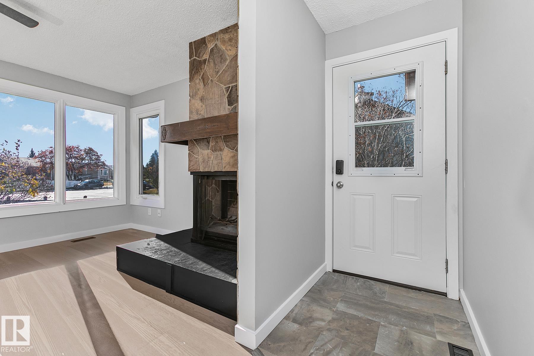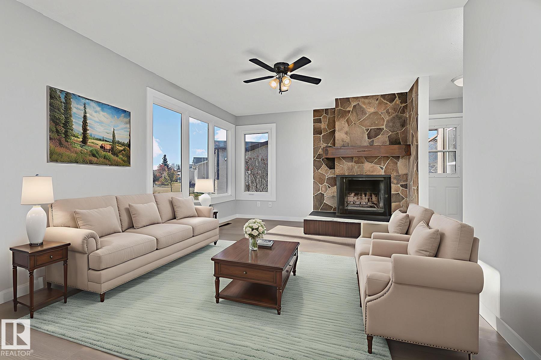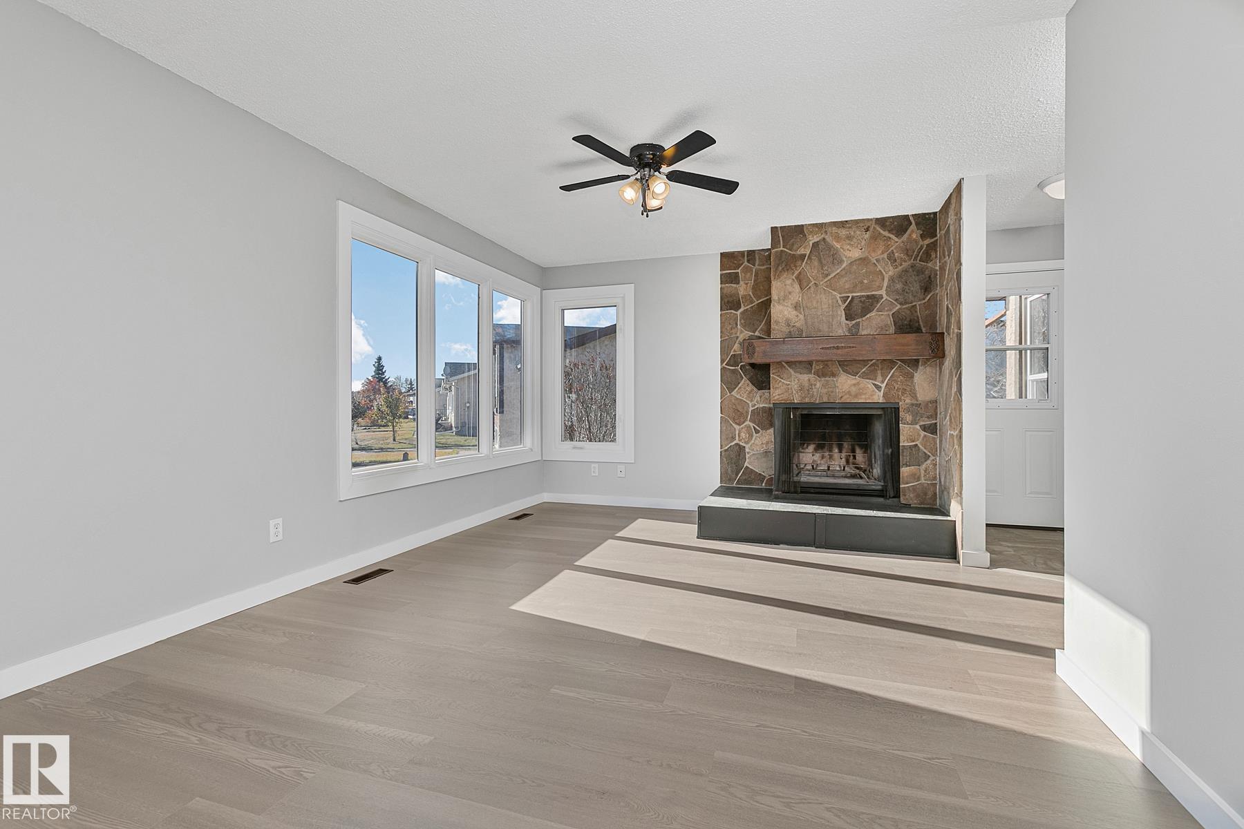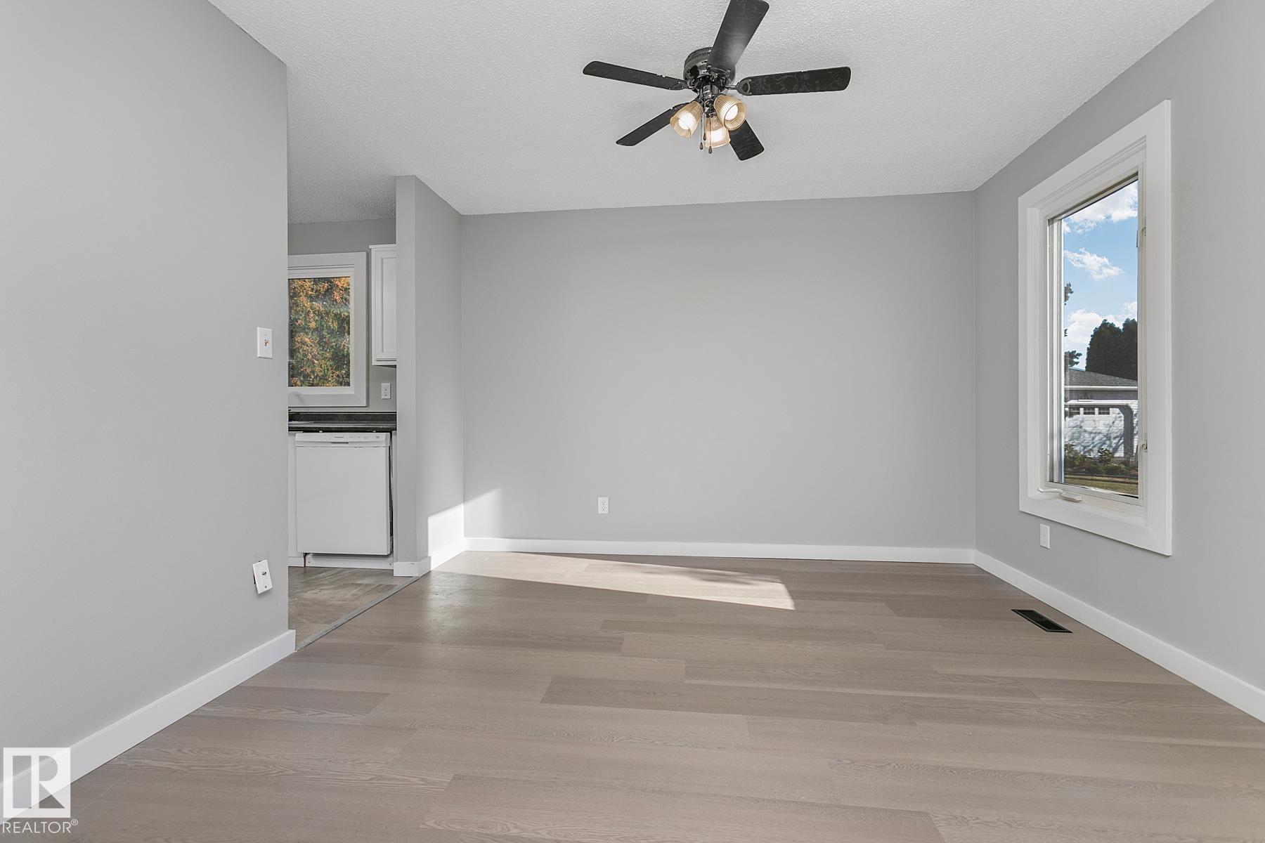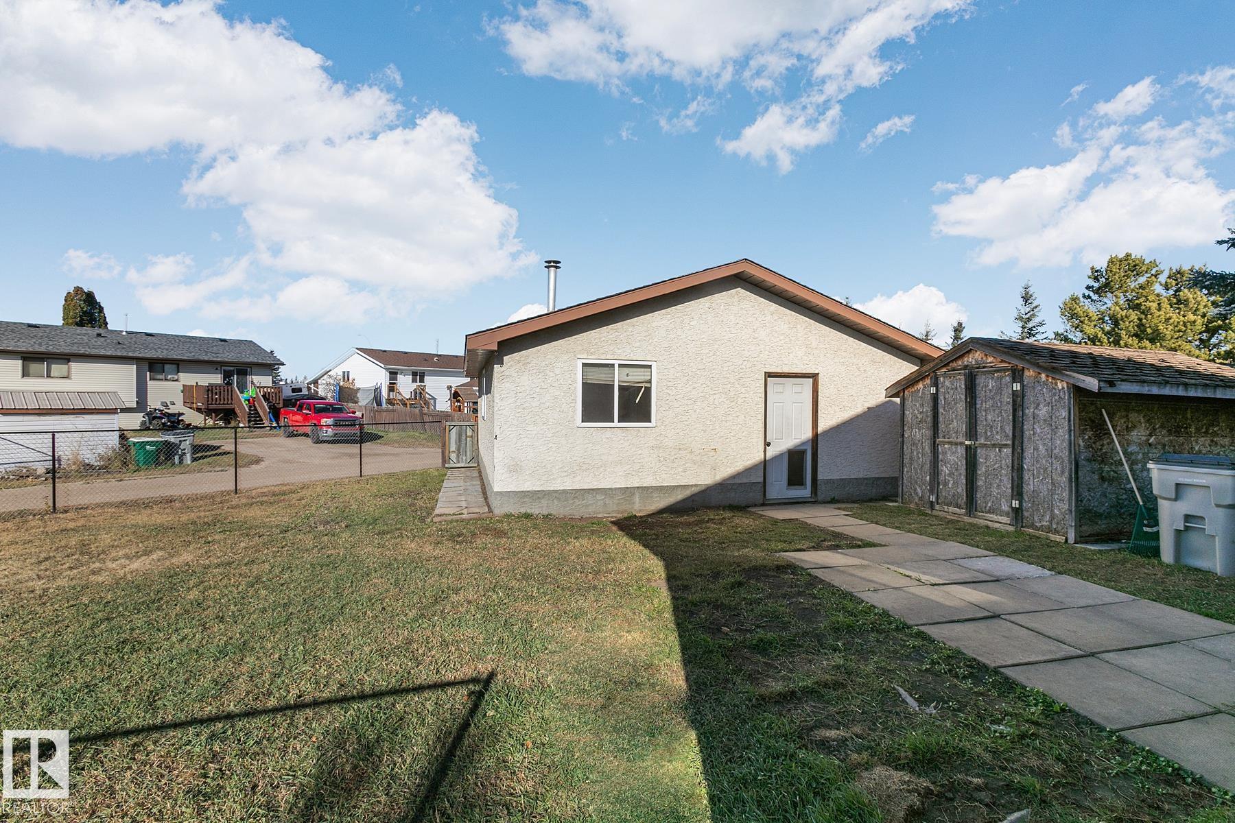 Substantially upgraded bungalow in the beautiful family community of Gibbons! Fantastic home with numerous upgrades including NEW: laminate hardwood flooring, tile flooring, baseboards, casings, steel exterior doors, several vinyl windows & professional paint. Spacious living room featuring oversize windows for ample natural lighting & a stone-faced wood burning fireplace with mantle. White kitchen cabinets with new countertop & brand new dishwasher. Eating nook in kitchen & formal DR as well. 3 bedroom up including large primary bedroom with walk-in closet. Main bath has a deep soaker tub with tile surround & granite top vanity. New black doorknobs & hardware on colonial doors. Many new fixtures as well. Basement is partially finished with FR & 2 bds framed & ready to finish. New 4 pc bath & laundry room down with brand new appliances. Oversized 26x24 heated double garage with new door opener & RV parking next to it. Huge 9100 sq ft lot backs west for great sun exposure and is fully fenced in chain link.