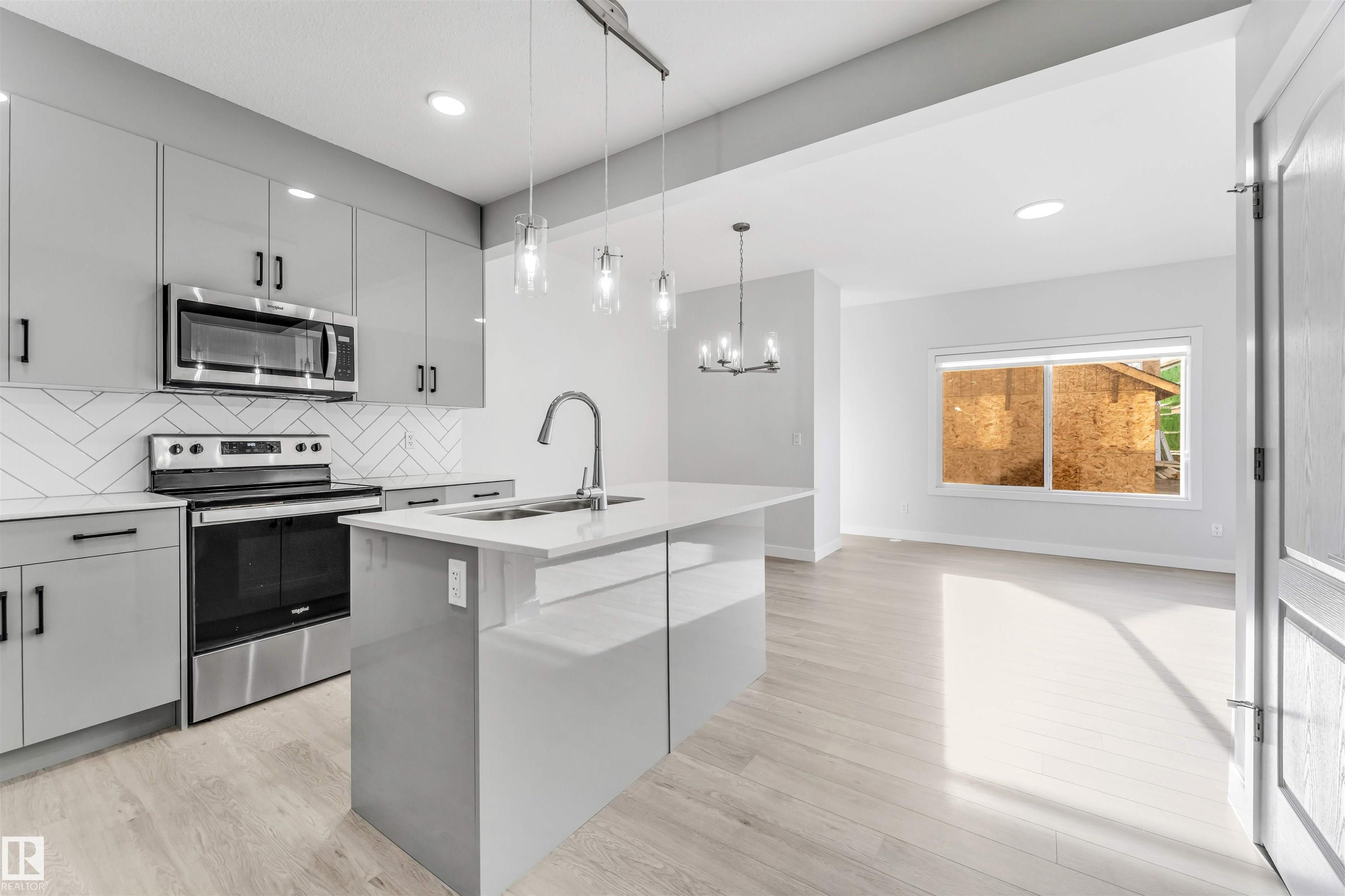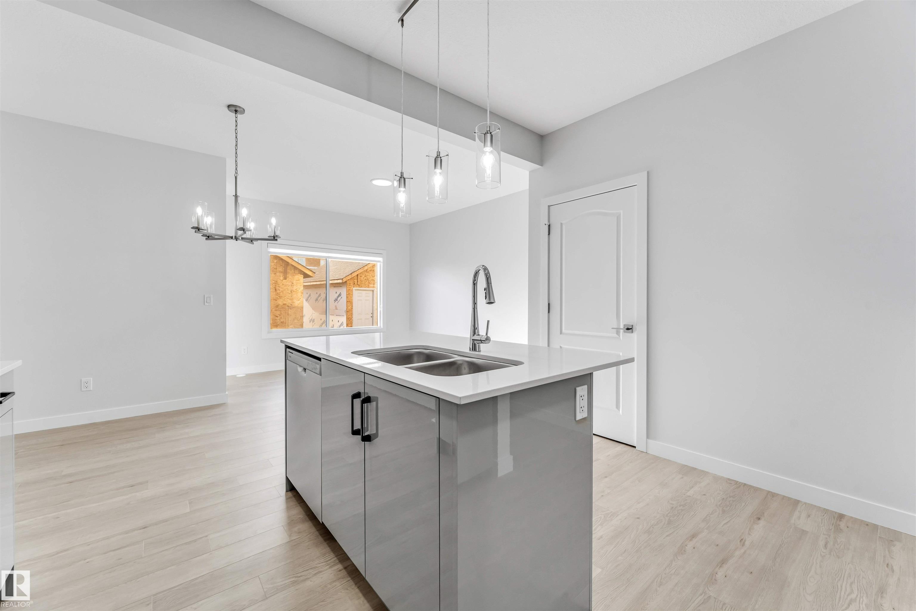 **ASTER**, where modern comfort meets functional elegance. This charming duplex offers a thoughtful layout perfect for growing families or those seeking a stylish and convenient lifestyle. Step inside to a spacious open-concept main floor that connects the living, dining, and kitchen areas seamlessly, creating the ideal space for everyday living and entertaining. Large windows invite plenty of natural light, highlighting the warmth and sophistication of every detail. The kitchen is designed with ample cabinetry, a convenient layout, and a welcoming flow that makes it the heart of the home. The main floor also features a comfortable bedroom and a full bathroom, perfect for guests or multigenerational living. Upstairs, the primary suite provides a peaceful retreat with a luxurious ensuite and a generous walk-in closet. Additional bedrooms are well-sized, offering versatility for family, work, or relaxation. Located in a family-friendly neighbourhood with access to parks, schools, and walking trails.