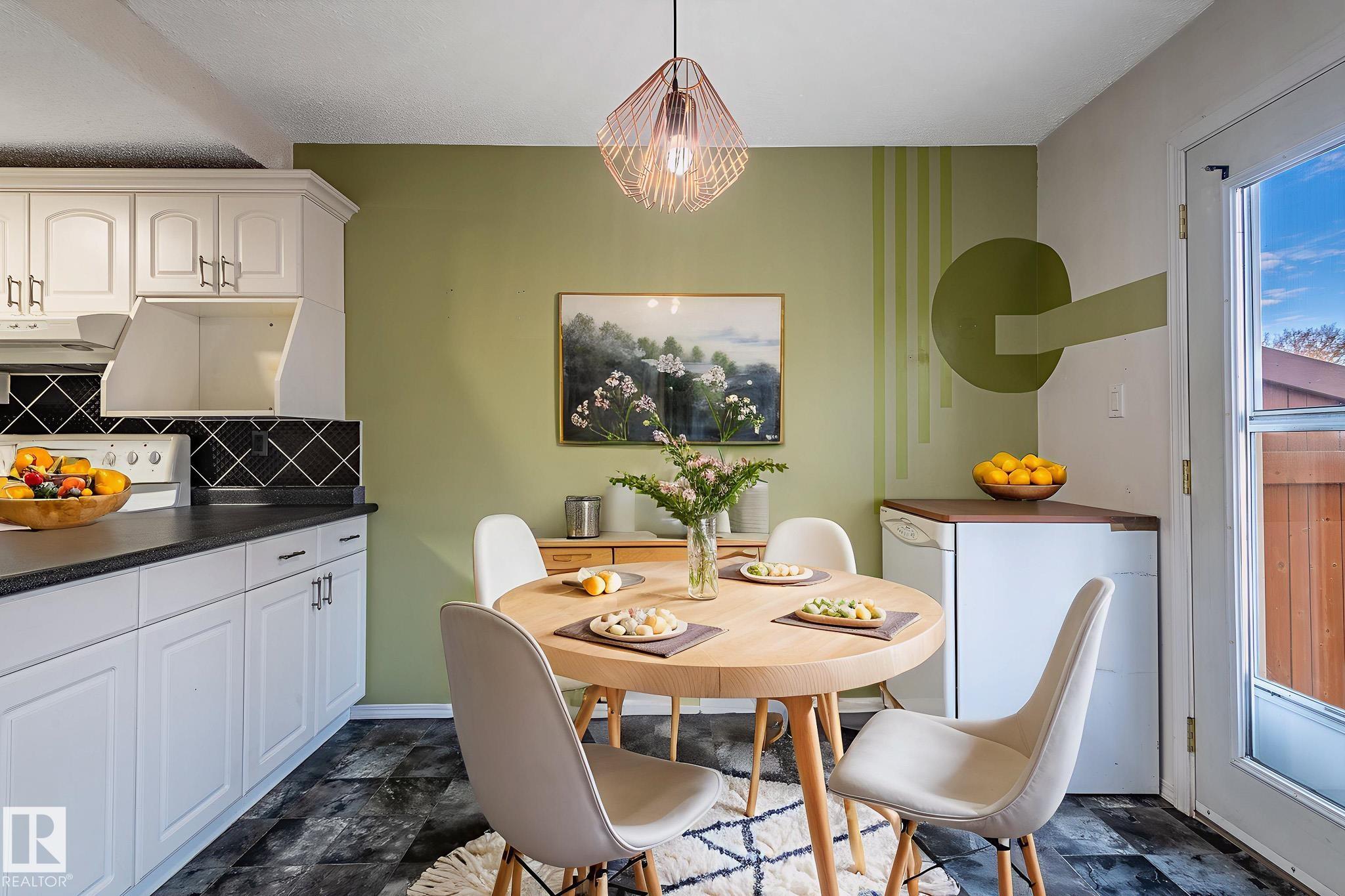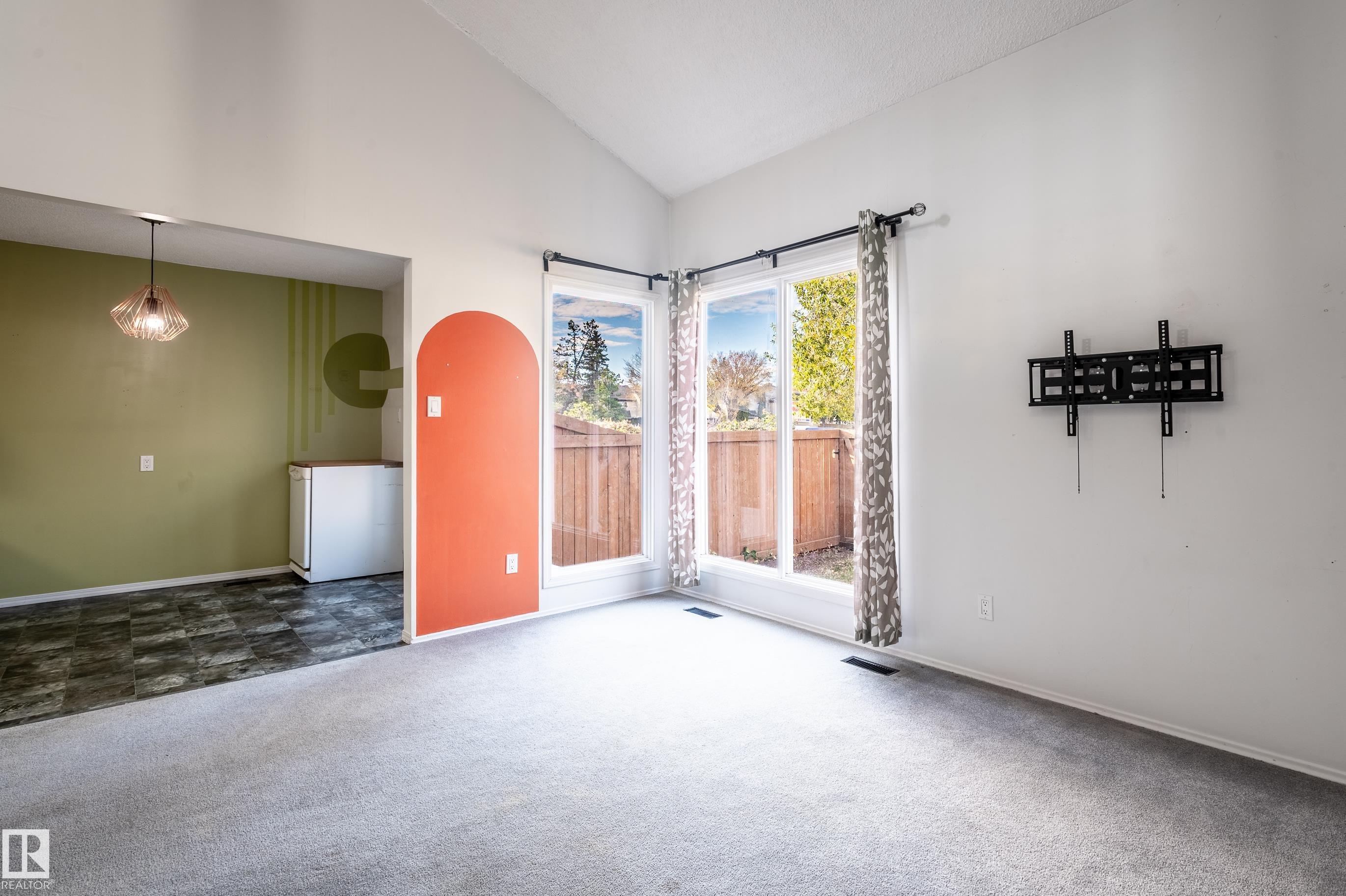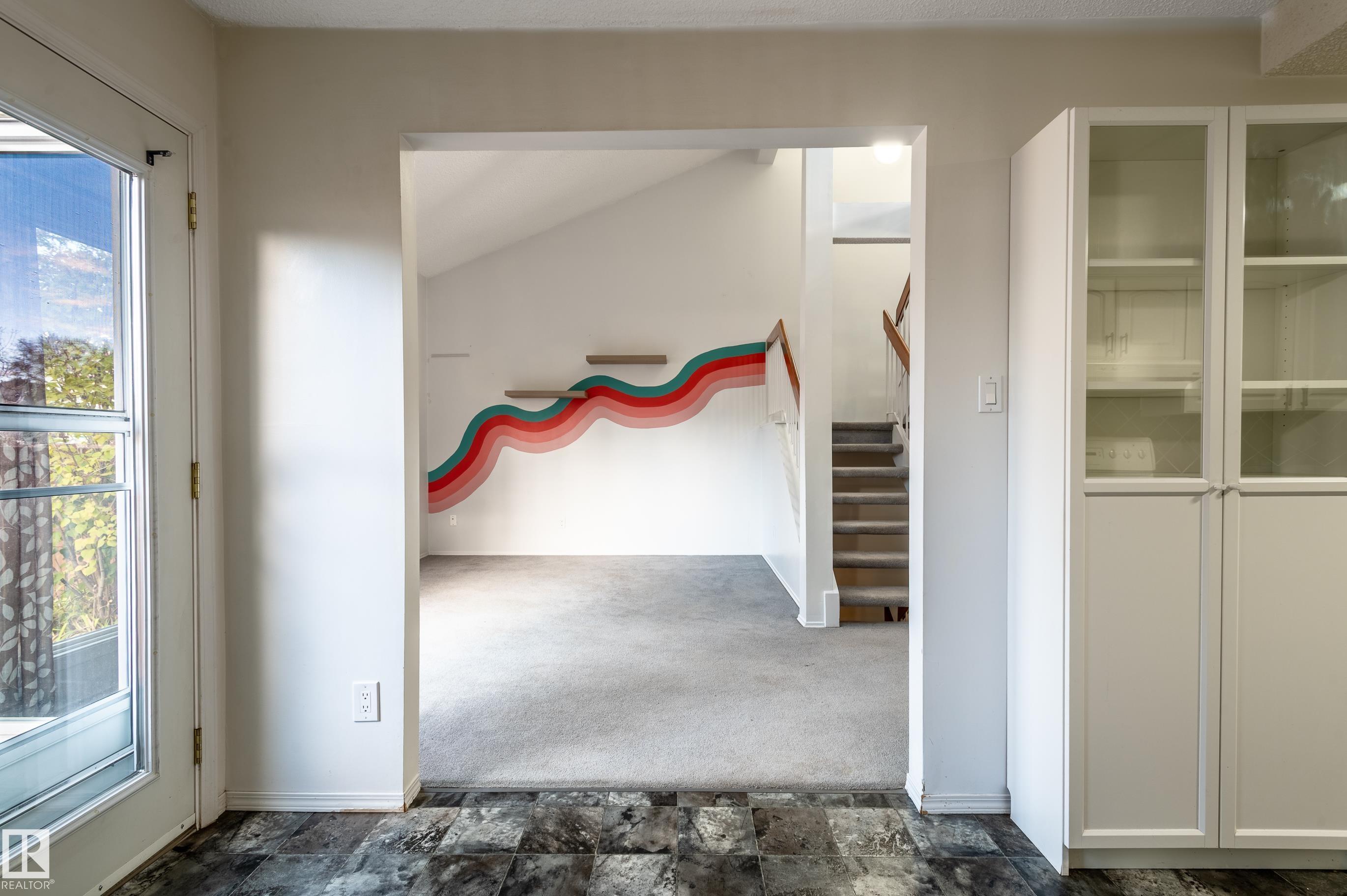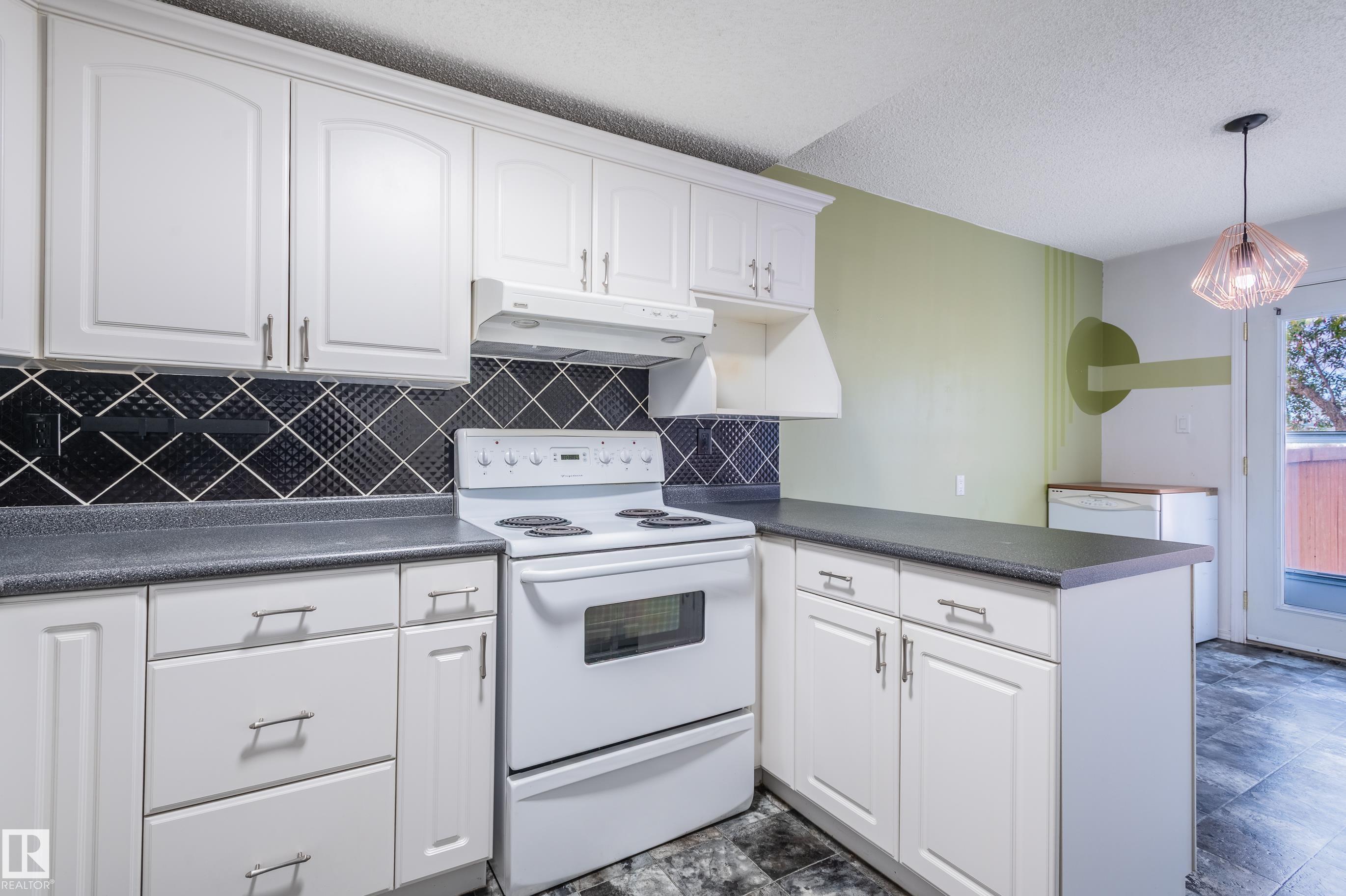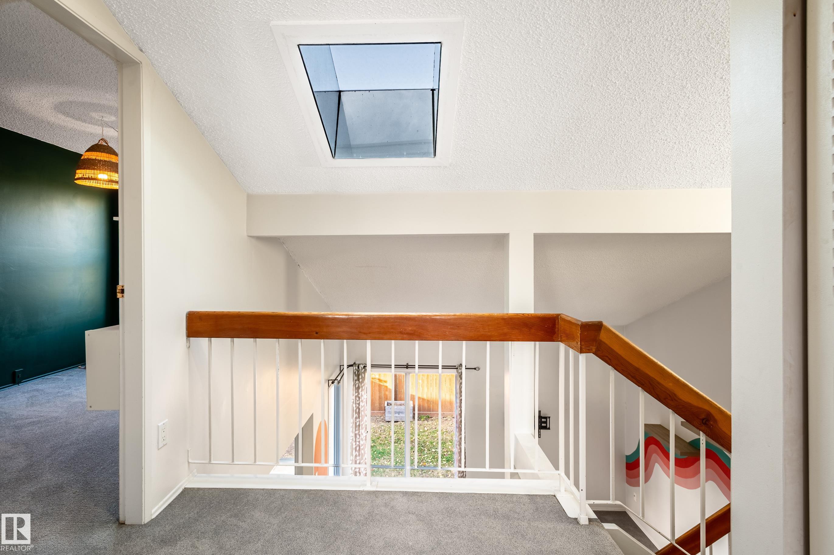 Excellent LOCATION and great VALUE for this 3 bed/1.5 bath townhouse with a single attached garage and partially finished basement. Ideally situated near West Edmonton Mall, School/playground, Belmead professional building/shopping with quick and easy access to Anthony Henday, new LRT, Whitemud and 170St. Main floor features spacious front entry, half bath, kitchen, dining room with French doors to a private/fenced back yard, living room with 14' vaulted ceiling and skylight. Open staircase takes you upstairs to 3 generously sized bedrooms, full 4pc bathroom and private balcony from primary bedroom. Other features/upgrades include: A/C, NEWER FURNACE, HWT, WINDOWS, DOORS, ROOF and SIDING within last 10 yrs. Less than a block away to schools, playgrounds and greenspace. Great neighborhood!
