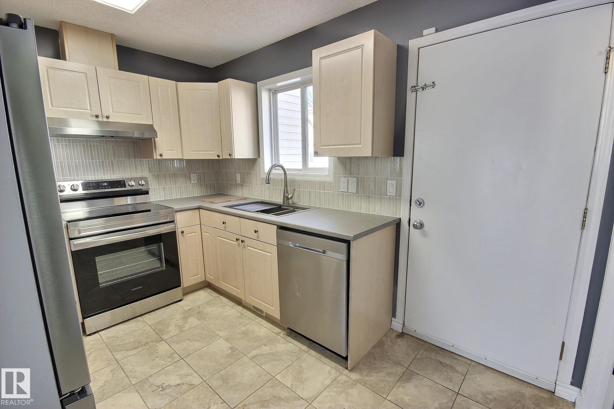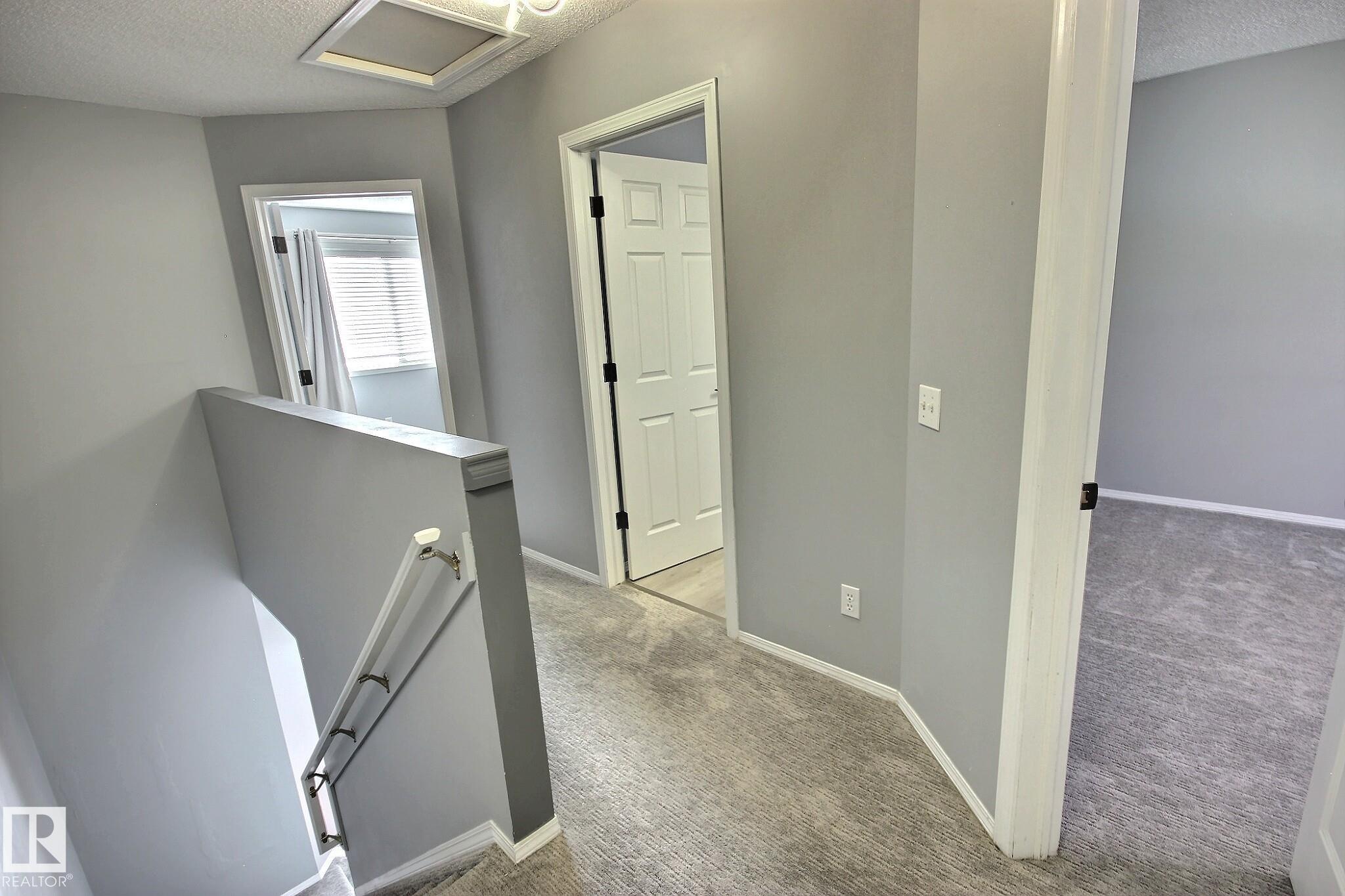 Upgraded townhouse in a convenient location! Walk to Grant MacEwan University, NAIT, downtown, the ice district, the Royal Alex Hospital, walk to the LRT and take the train all over the place even the U of A. The unit itself is in great shape with a great layout and shares only 1 wall with a neighbor (end unit). Upgrades include Paint, Carpet, Light fixtures, fully finished basement, appliances, sink, counters, backsplash, Furnace, dura-deck patio, stylish barn doors, and More! Large South facing windows cascade natural light into the living room and master bedroom. Single attached garage with a long pad for ample parking and storage. Two huge bedrooms upstairs with another bedroom (den) in the finished basement. There is also a bathroom on each floor and laundry connections on the main floor for flexibility. Immediate possession is available. Act Now!