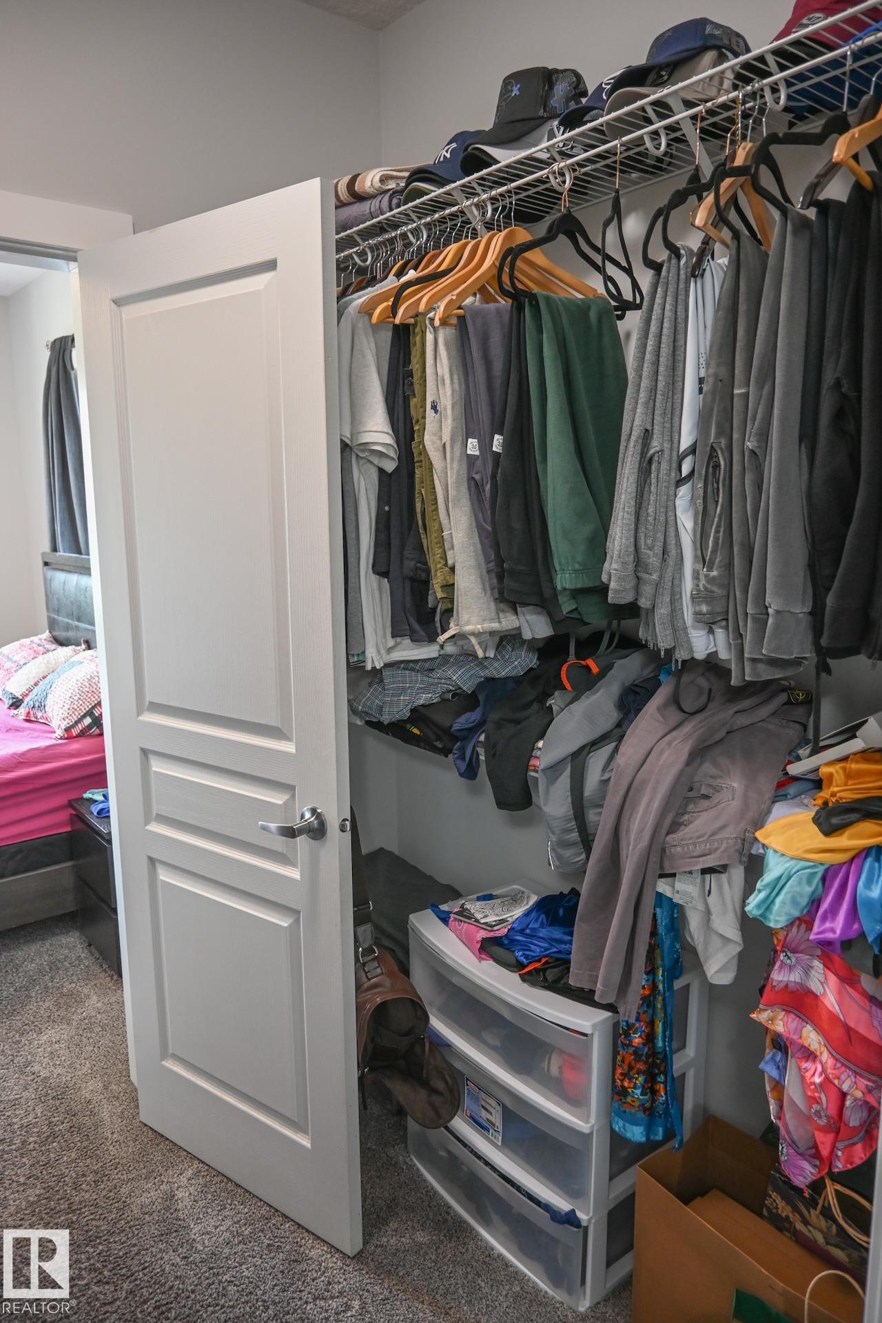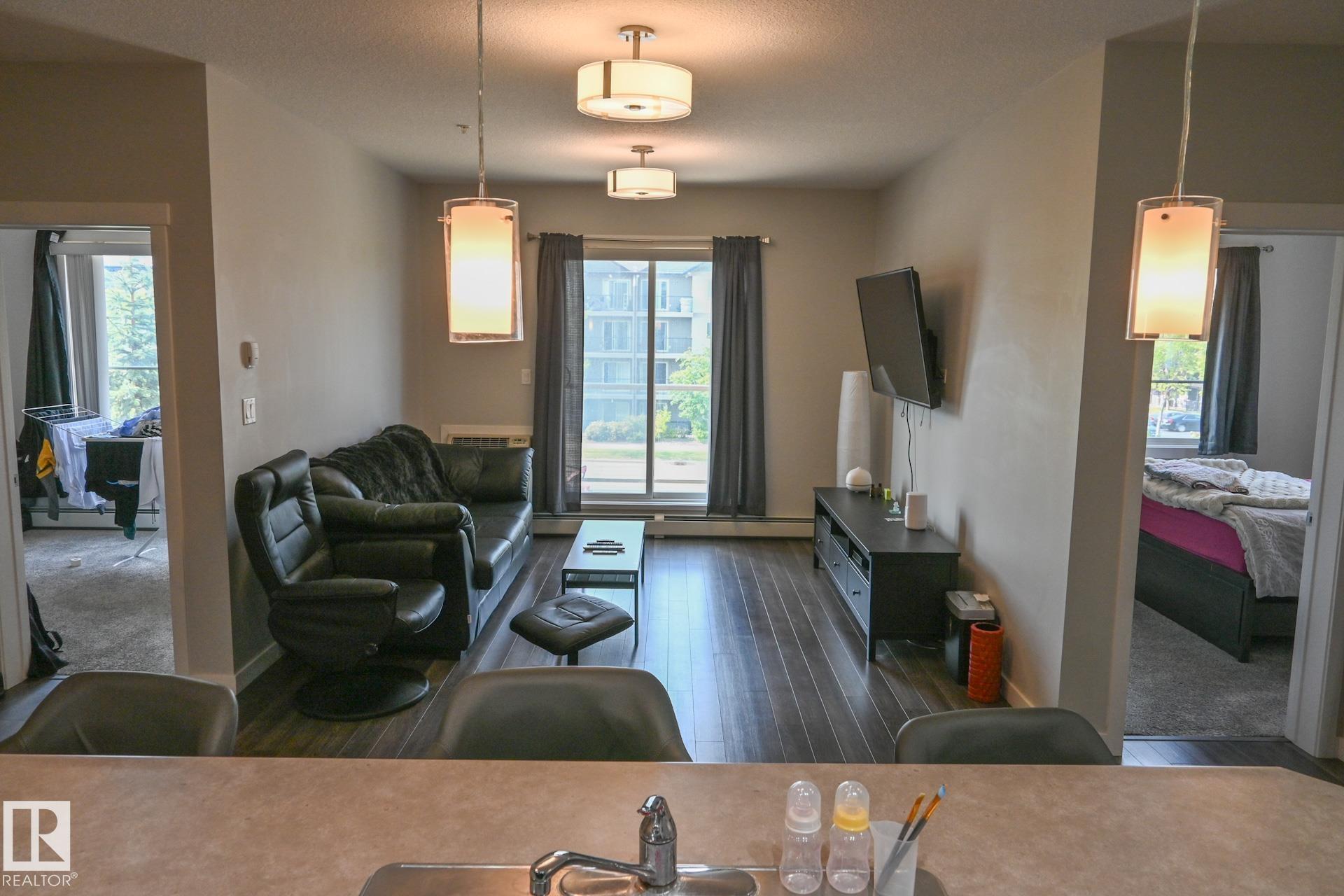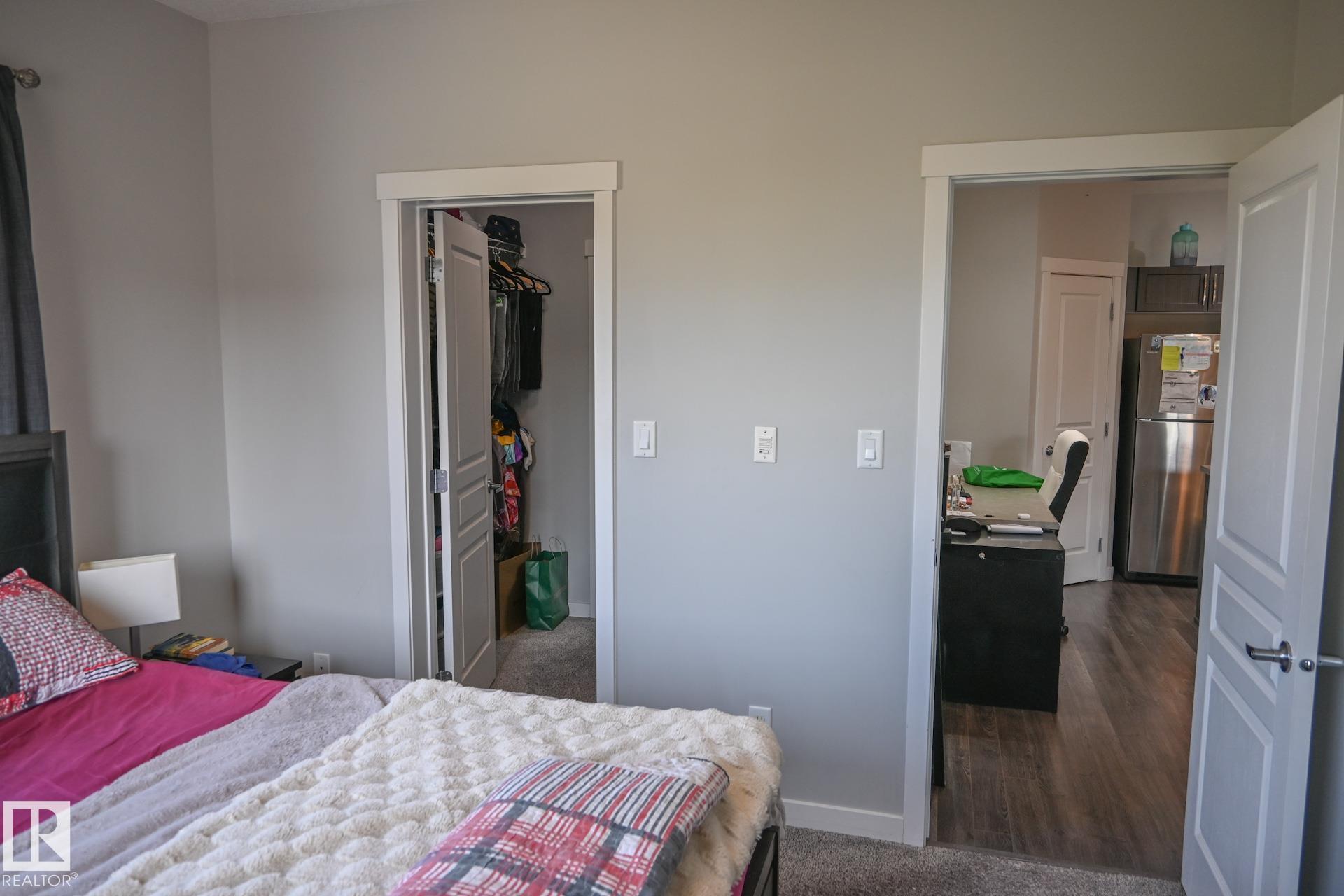 Welcome to this air conditioned bright corner unit in a prime Southeast Edmonton location! Boasting extra windows that flood the home with natural light. Enjoy your own private balcony, perfect for morning coffee or evening sunsets. Step inside to a fantastic open-concept layout featuring a spacious kitchen with an oversized walk-in pantry, plenty of cabinet space, and a handy desk area for work or study. The large living and dining areas are framed by 9' ceilings, giving the space an expansive, airy feel. There are two generous-sized bedrooms, including a master suite with a walk-through closet and a luxurious en-suite bathroom with dual counters and plenty of storage. Comes with a 2nd full bathroom, in-suite laundry, and additional storage, underground parking (#54) for year-round convenience, and a prime location with easy access to public transit, schools, shopping, and grocery stores. With a huge floorplan of 959 square feet! Don?t miss the chance to make this beautiful condo your new home!