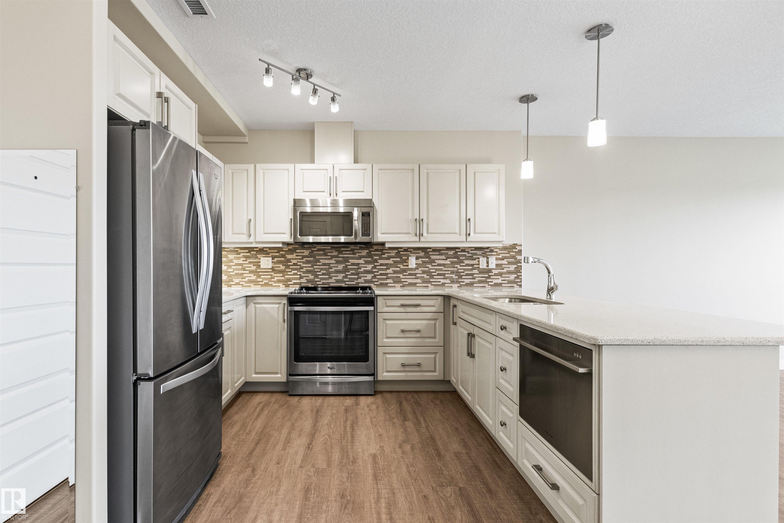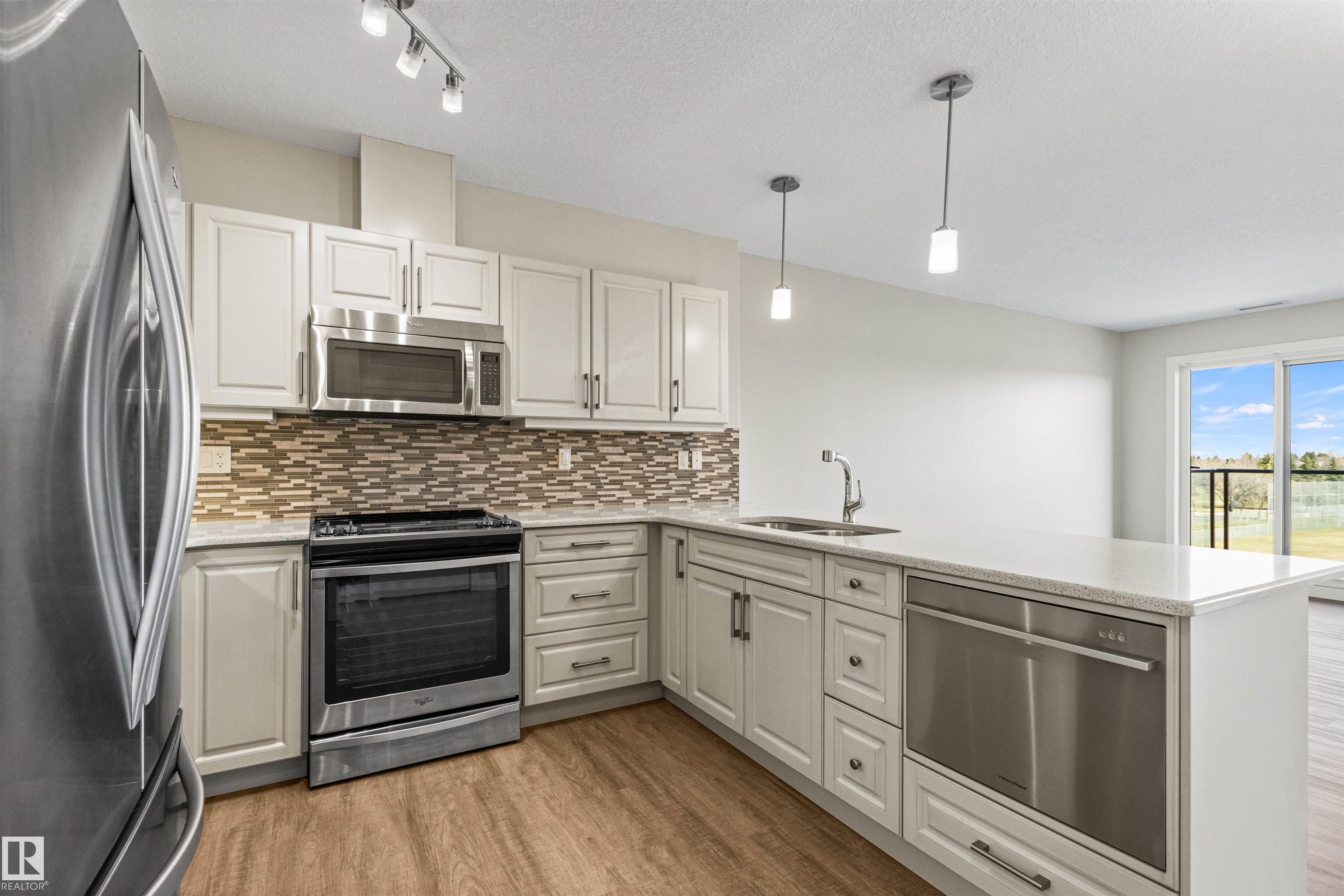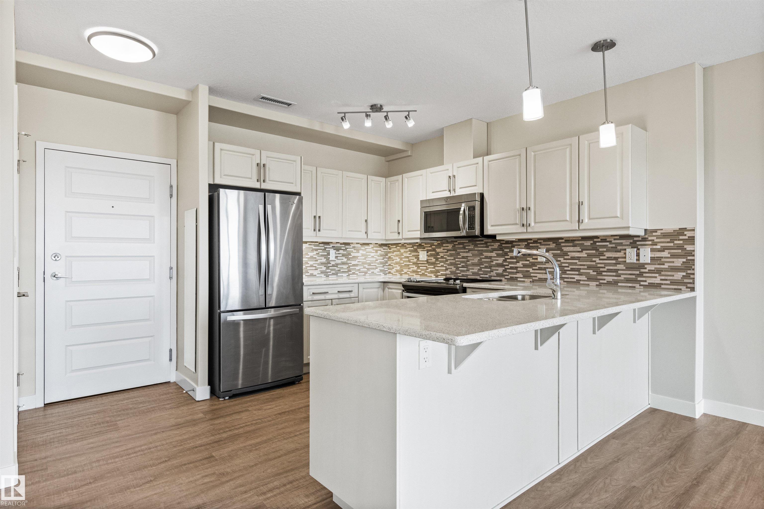 This attractive East facing one bed, one bath has amazing features inside & out. With brand new vinyl flooring & fresh paint throughout, quartz counters, stainless steel appliances, under-cabinet lighting, eat up bar & balcony w/ natural gas connection. Open concept layout provides natural light through the whole unit & offers plenty of space for your furniture. Bedroom has large windows that look out onto Ermineskin Park & can accommodate a full bed set. The 3 pc bathroom has a large easy access walk-in shower plus heated tile floors. Full size washer & dryer are in the mechanical room w/ extra built in storage space. Other added features are the central A/C & underground parking stall. This building has so many unique amenities such as the ?Mosaic Cove? social room that hosts movie nights, many games & activities throughout the week, exercise classes & coffee socials. Heritage Market Grill" is another special feature for easy dining. The building also has a guest suite, hair salon, car wash & workshop.