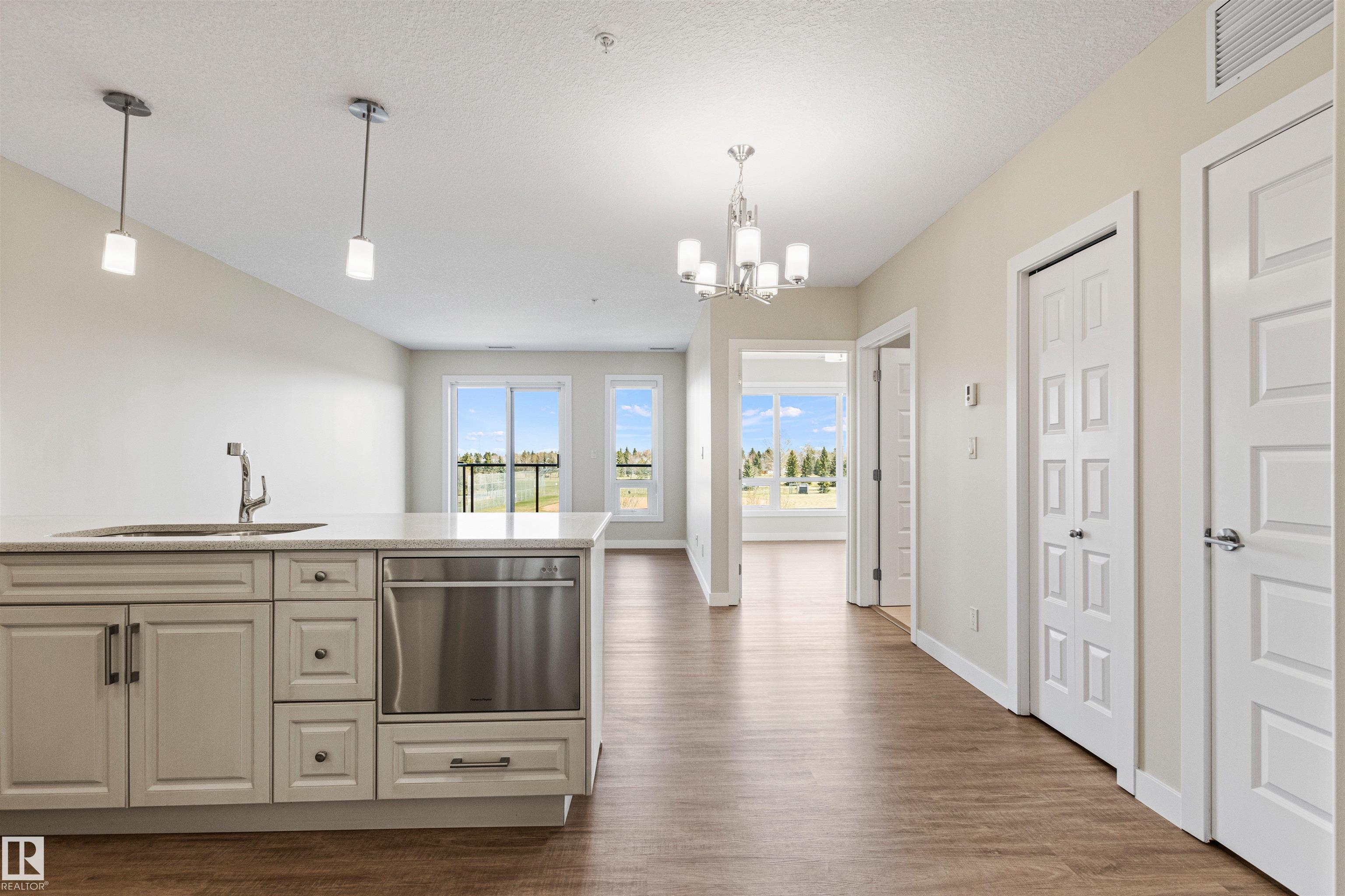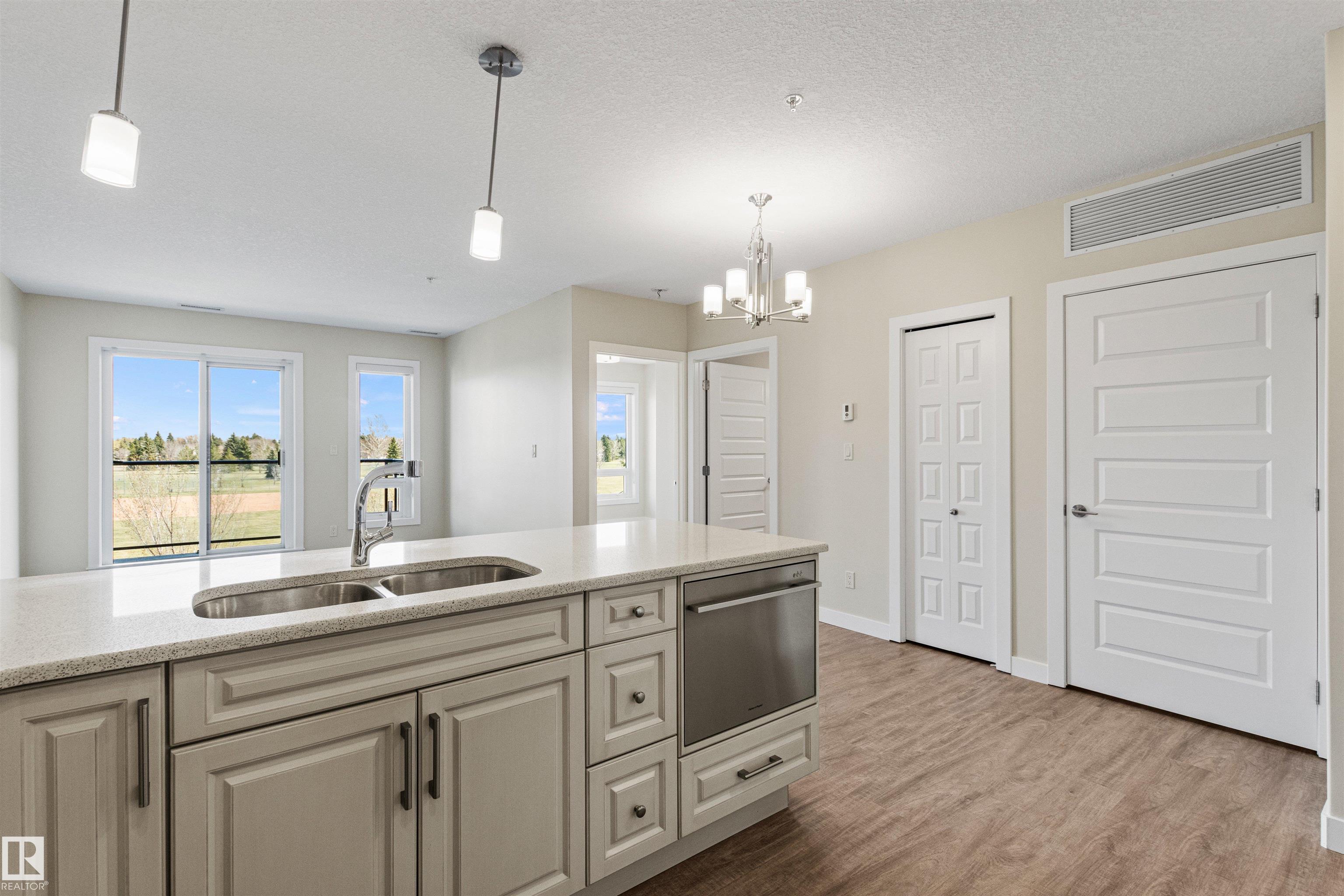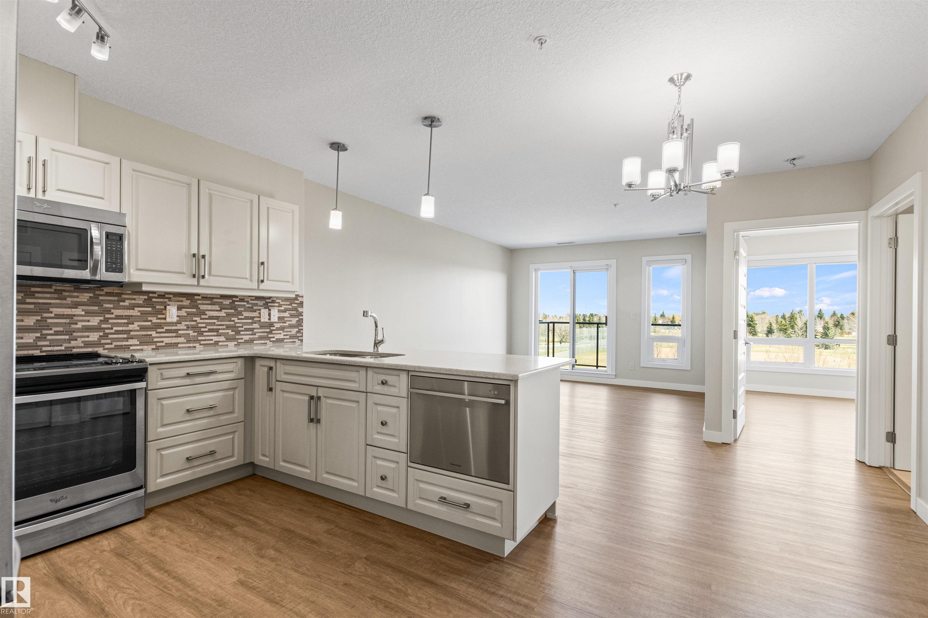 This attractive East facing one bed, one bath has amazing features inside & out. With brand new vinyl flooring & fresh paint throughout, quartz counters, stainless steel appliances, under-cabinet lighting, eat up bar & balcony w/ natural gas connection. Open concept layout provides natural light through the whole unit & offers plenty of space for your furniture. Bedroom has large windows that look out onto Ermineskin Park & can accommodate a full bed set. The 3 pc bathroom has a large easy access walk-in shower plus heated tile floors. Full size washer & dryer are in the mechanical room w/ extra built in storage space. Other added features are the central A/C & underground parking stall. This building has so many unique amenities such as the ?Mosaic Cove? social room that hosts movie nights, many games & activities throughout the week, exercise classes & coffee socials. Heritage Market Grill" is another special feature for easy dining. The building also has a guest suite, hair salon, car wash & workshop.