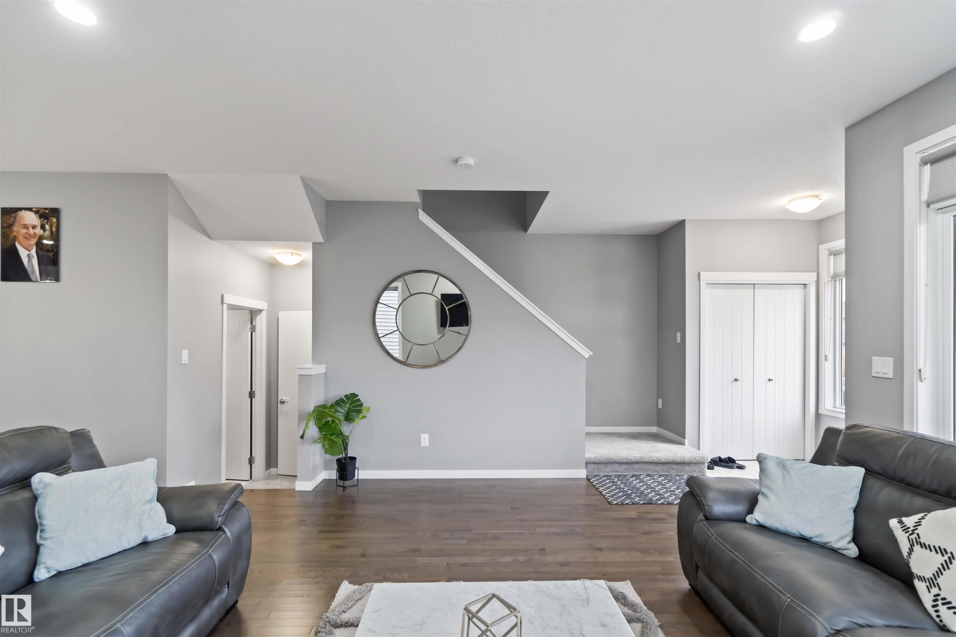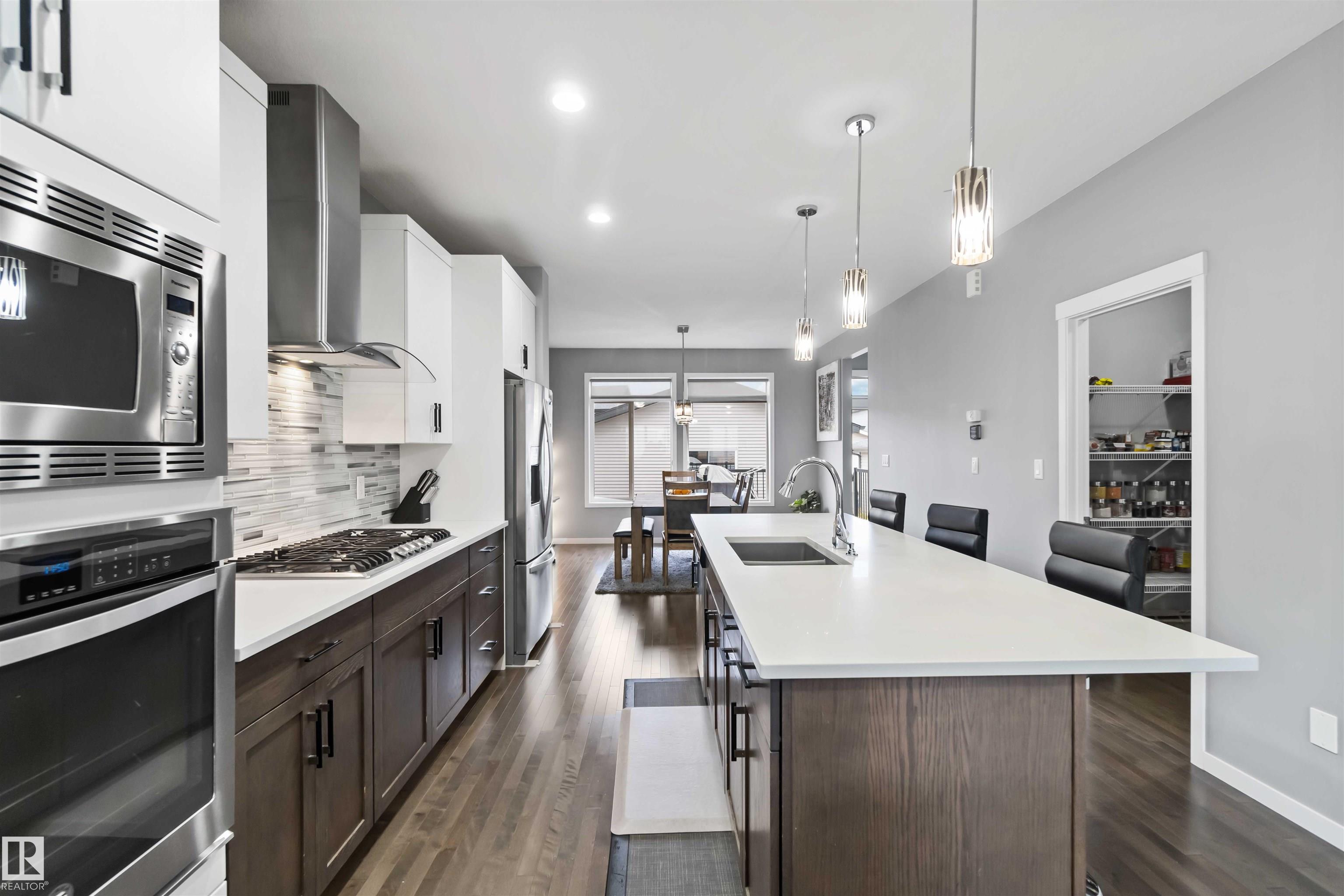 Step into over 1,800 sq. ft. of refined family living in this custom-built Morrison home, perfectly located in the heart of McConachie ? one of northeast Edmonton?s most family-friendly communities. With 9-ft ceilings, hardwood floors, and beautiful natural light, the open main level feels bright and inviting. The chef-inspired kitchen offers quartz counters, a massive island, gas cooktop, built-in oven, and an XL walk-in pantry ? perfect for busy families and entertaining. Cozy up by the fireplace in the living room, or unwind upstairs in the spacious primary suite with a 4-pc ensuite and walk-in closet. Two additional bedrooms and a versatile bonus room complete the upper level. Added comforts include central A/C and a soundproof laundry room. Surrounded by walking trails, parks, and great schools ? this home blends elegance, comfort, and community.