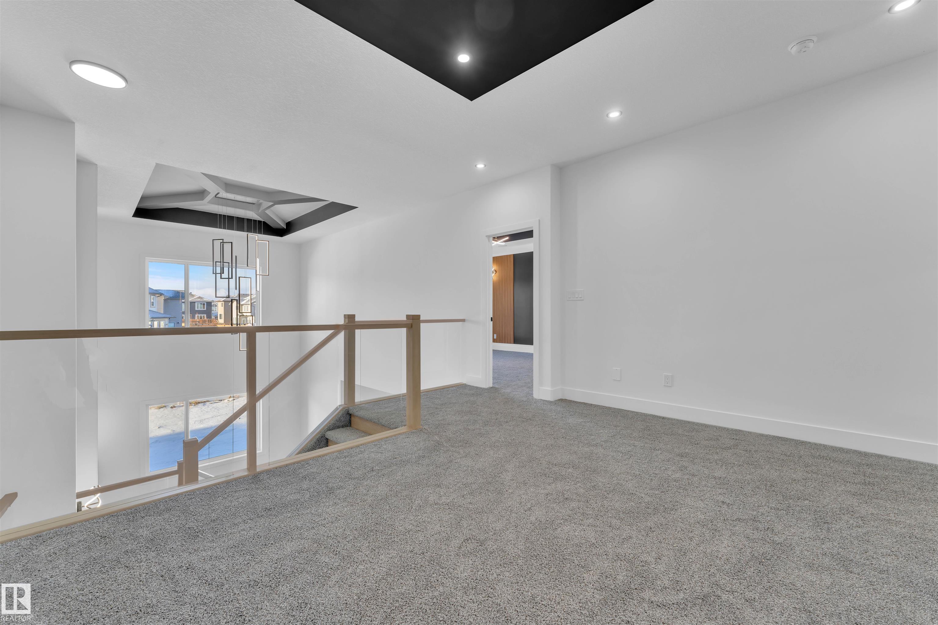 TRIPLE-CAR GARAGE | FULLY UPGRADED | CUSTOM-BUILT SHOWSTOPPER. Step into a home that actually delivers. This stunning, fully upgraded custom residence features a versatile main-floor den/office that easily doubles as an extra bedroom, paired with a convenient half bath. The kitchen? Absolute art. A chef?s dream with premium finishes, a sleek design, and a walk-in pantry for serious storage. The living room features a custom statement wall that anchors the entire space, while the dining area opens directly onto the deck?perfect for hosting or just vibing on a calm evening. Head upstairs to a bright bonus room, ideal for family hangouts or a cozy entertainment zone. The primary bedroom is massive, highlighted by a designer feature wall, a truly luxurious 5-piece custom ensuite, and a walk-in closet made for someone who loves organization. Two additional generous bedrooms share a well-appointed full bath, and the second-floor laundry adds next-level convenience.The basement is untouched and ready for you