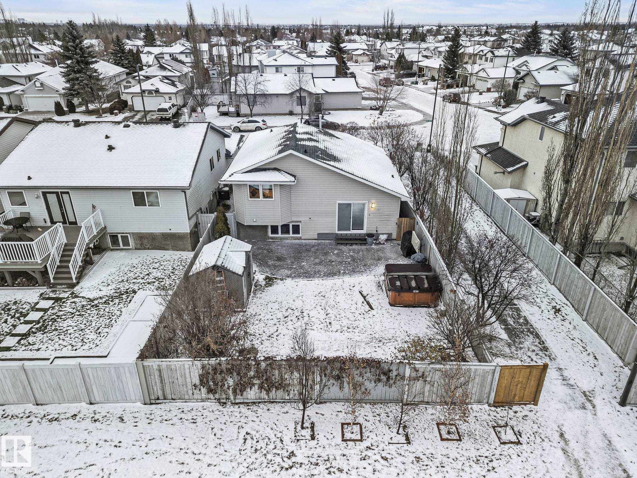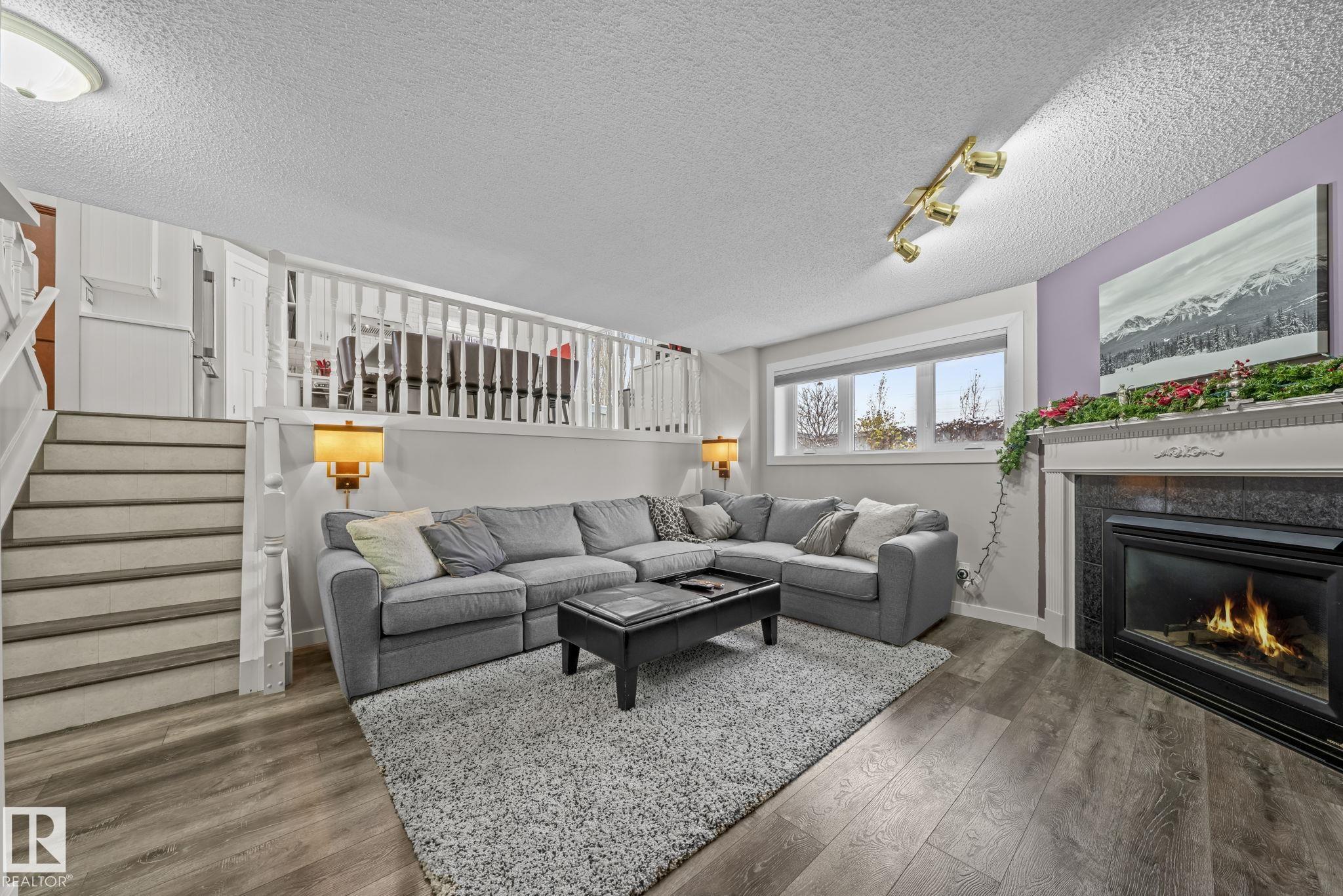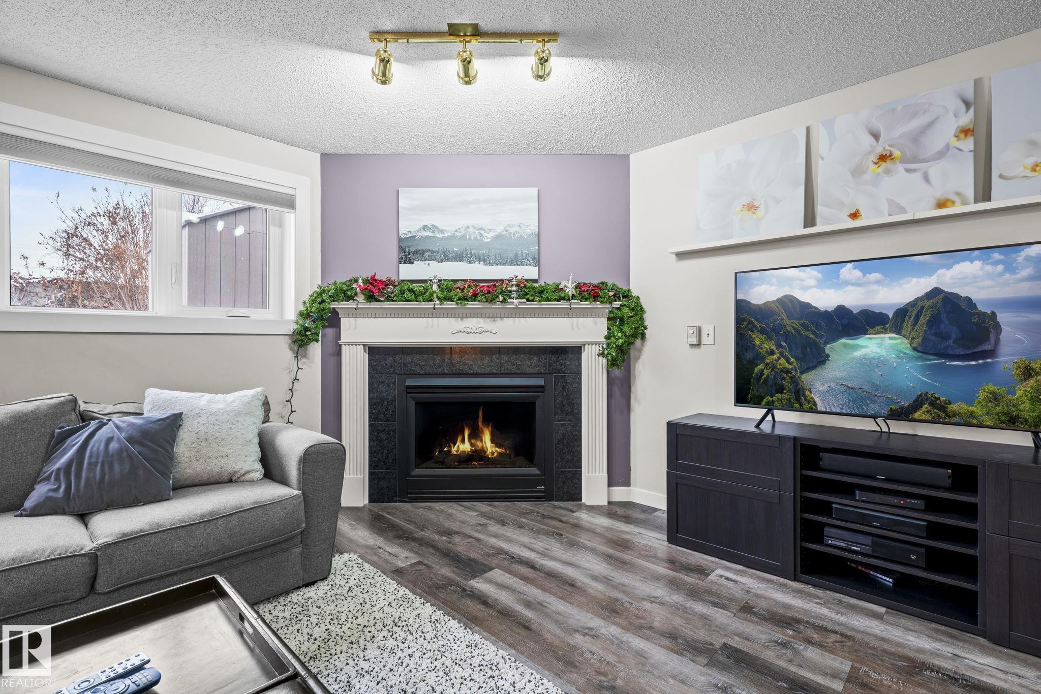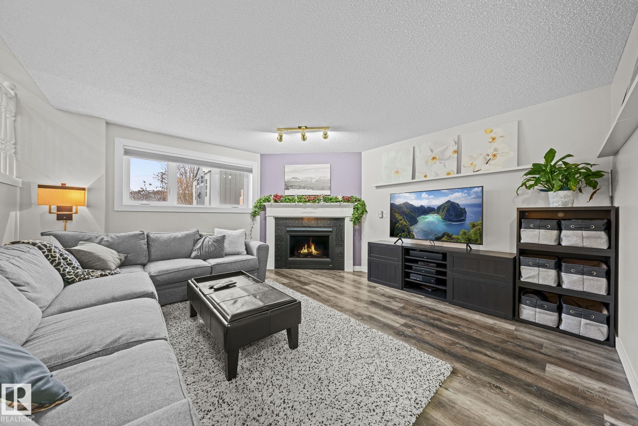 Prepare to be delighted by this beautiful 4 level split tucked into family friendly Jamieson Place. You are welcomed into a bright foyer and airy living/dining room with vaulted ceilings and updated flooring. Step into the gorgeous updated chefs kitchen with stainless steel appliances including a new gas stove, massive island and loads of cupboard space. Step down into the spacious family room with cozy gas fireplace, the perfect spot to relax. A large 3pc bathroom and bedroom/office complete this level. Upstairs is home to three more bedrooms including a primary with 3pc ensuite, and another 4pc bathroom. The basement hosts another fully finished living area for games and movies. Enjoy privacy in your west facing backyard, backing directly on to a massive greenspace - no rear neighbors and stunning sunsets. Upgrades include: A/C, newer appliances, 50-year shingles, finished heated garage and new triple pane windows. Minutes from schools, amenities, and very quick access to Henday. Welcome home!