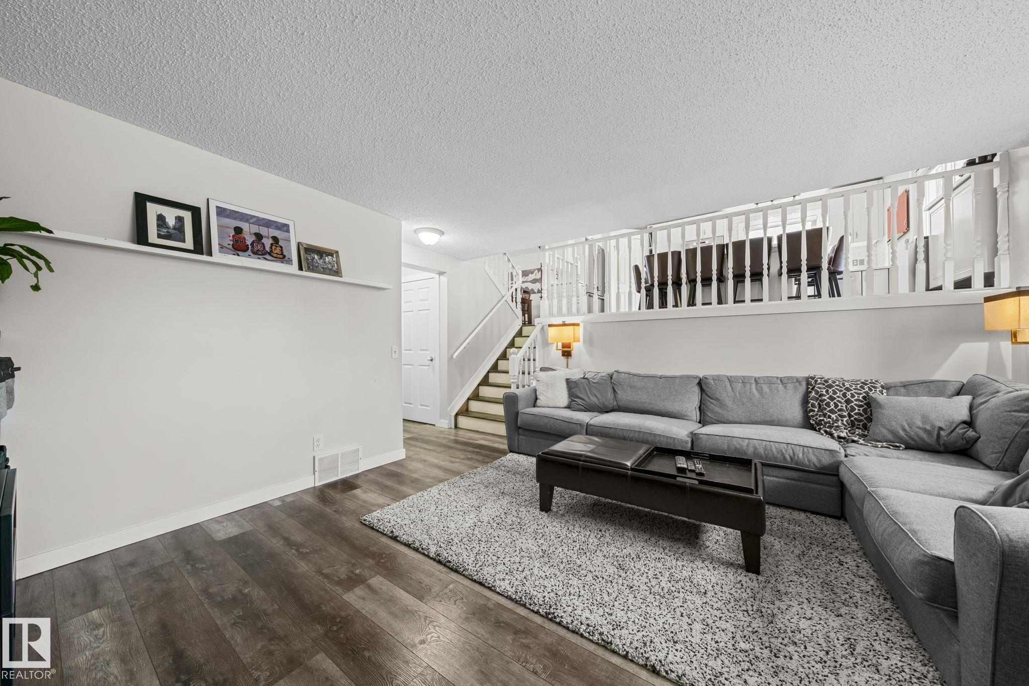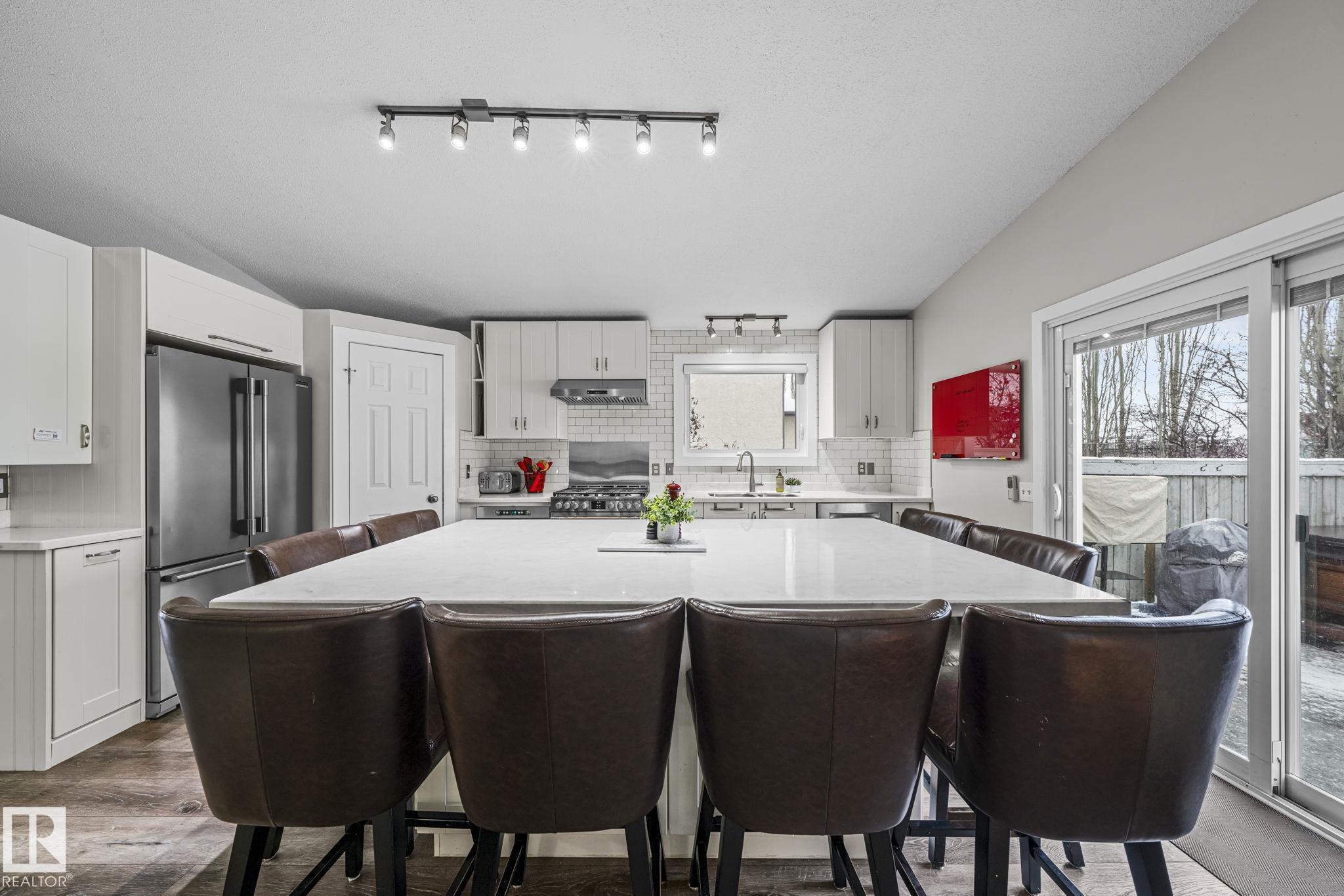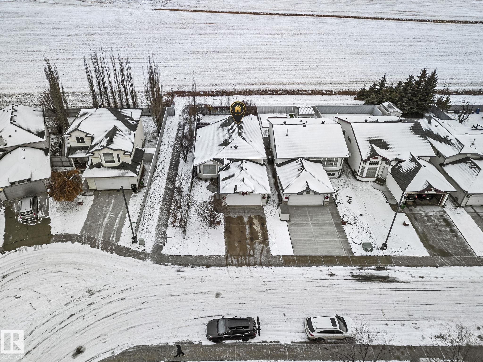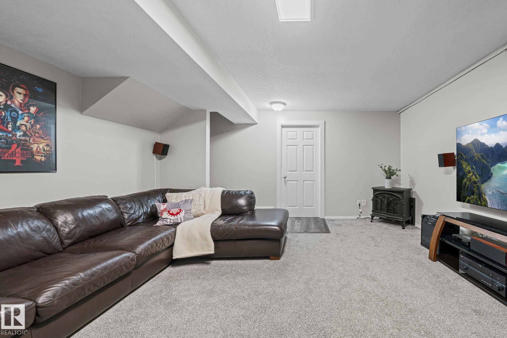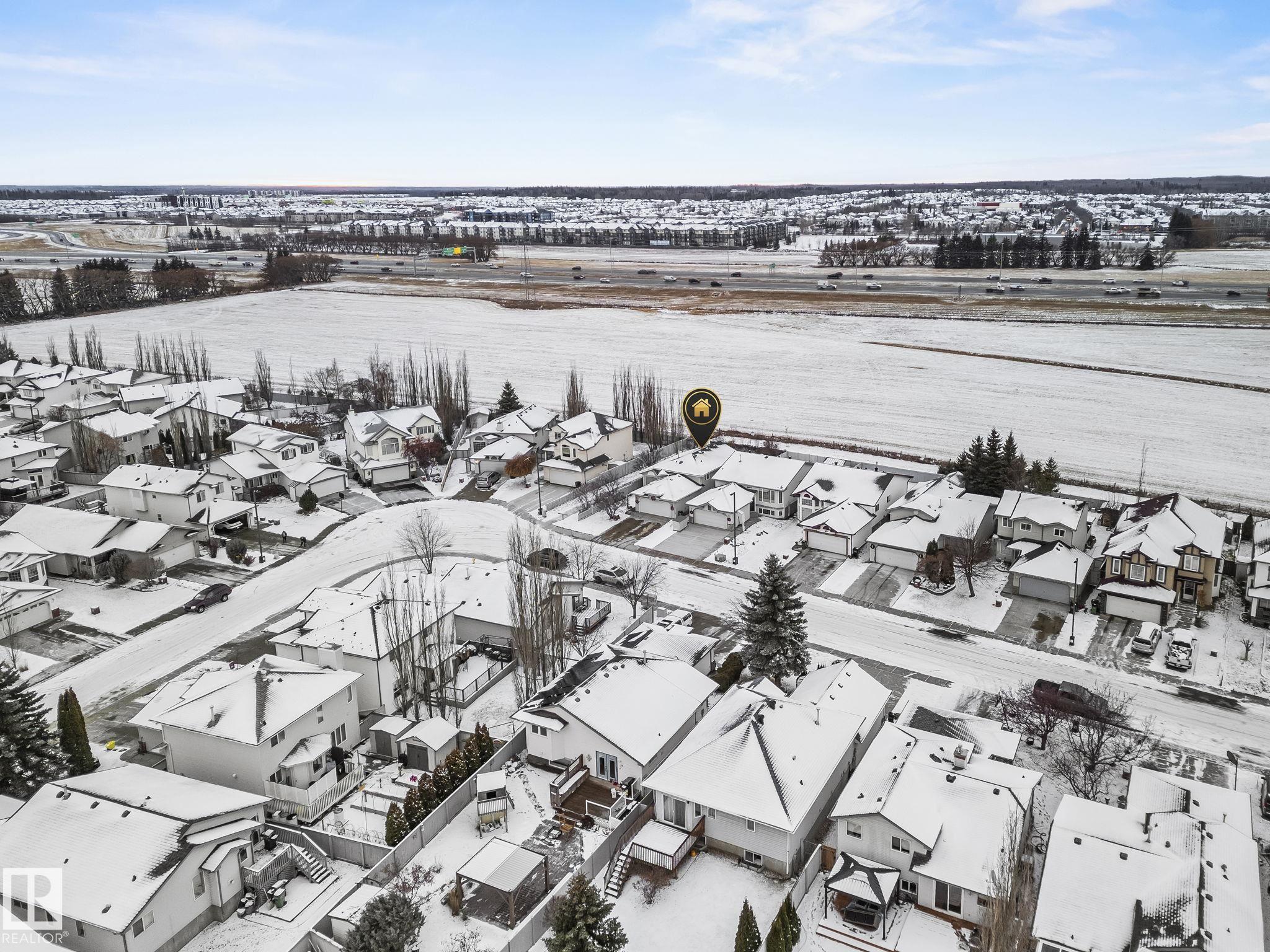 Prepare to be delighted by this beautiful 4 level split tucked into family friendly Jamieson Place. You are welcomed into a bright foyer and airy living/dining room with vaulted ceilings and updated flooring. Step into the gorgeous updated chefs kitchen with stainless steel appliances including a new gas stove, massive island and loads of cupboard space. Step down into the spacious family room with cozy gas fireplace, the perfect spot to relax. A large 3pc bathroom and bedroom/office complete this level. Upstairs is home to three more bedrooms including a primary with 3pc ensuite, and another 4pc bathroom. The basement hosts another fully finished living area for games and movies. Enjoy privacy in your west facing backyard, backing directly on to a massive greenspace - no rear neighbors and stunning sunsets. Upgrades include: A/C, newer appliances, 50-year shingles, finished heated garage and new triple pane windows. Minutes from schools, amenities, and very quick access to Henday. Welcome home!