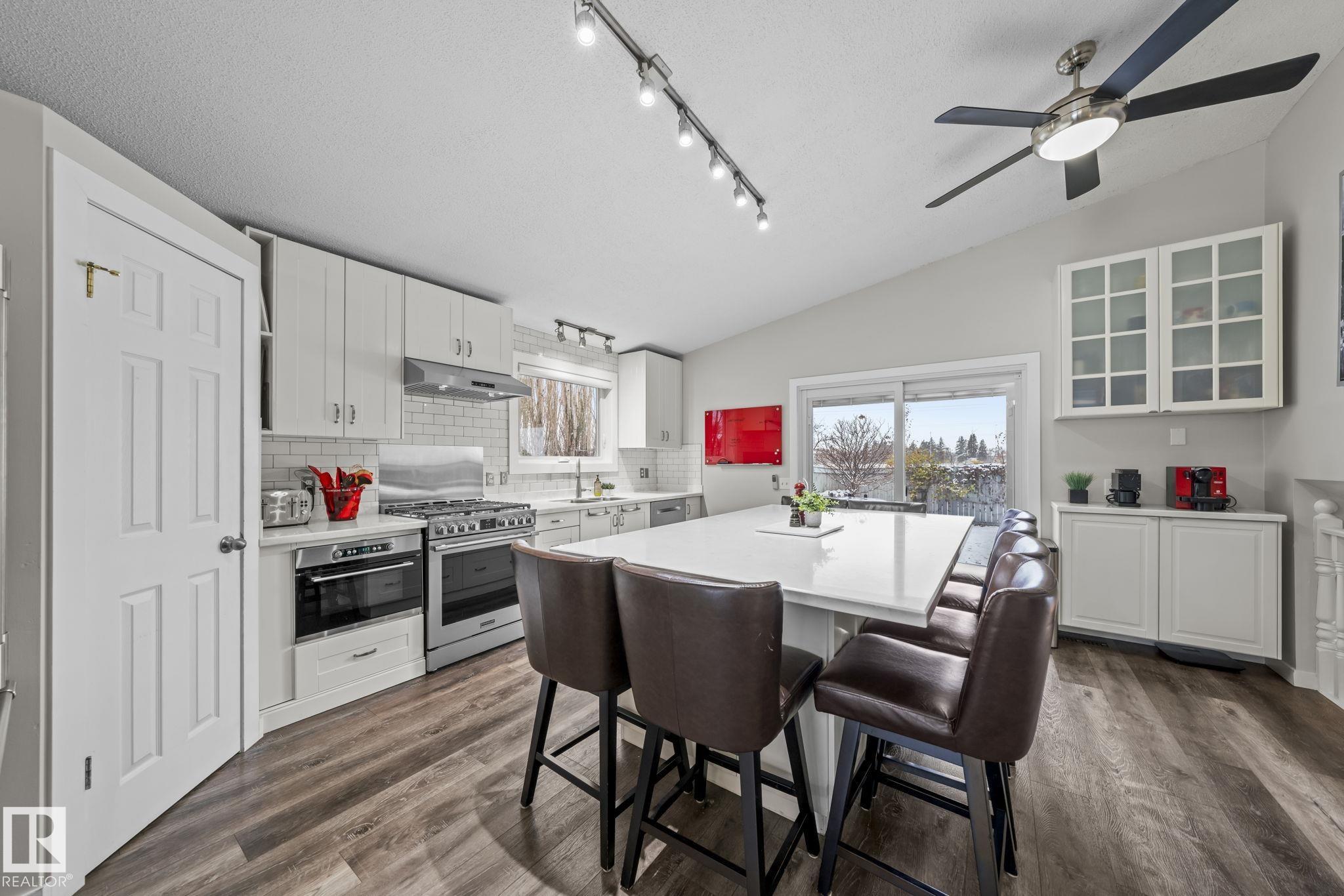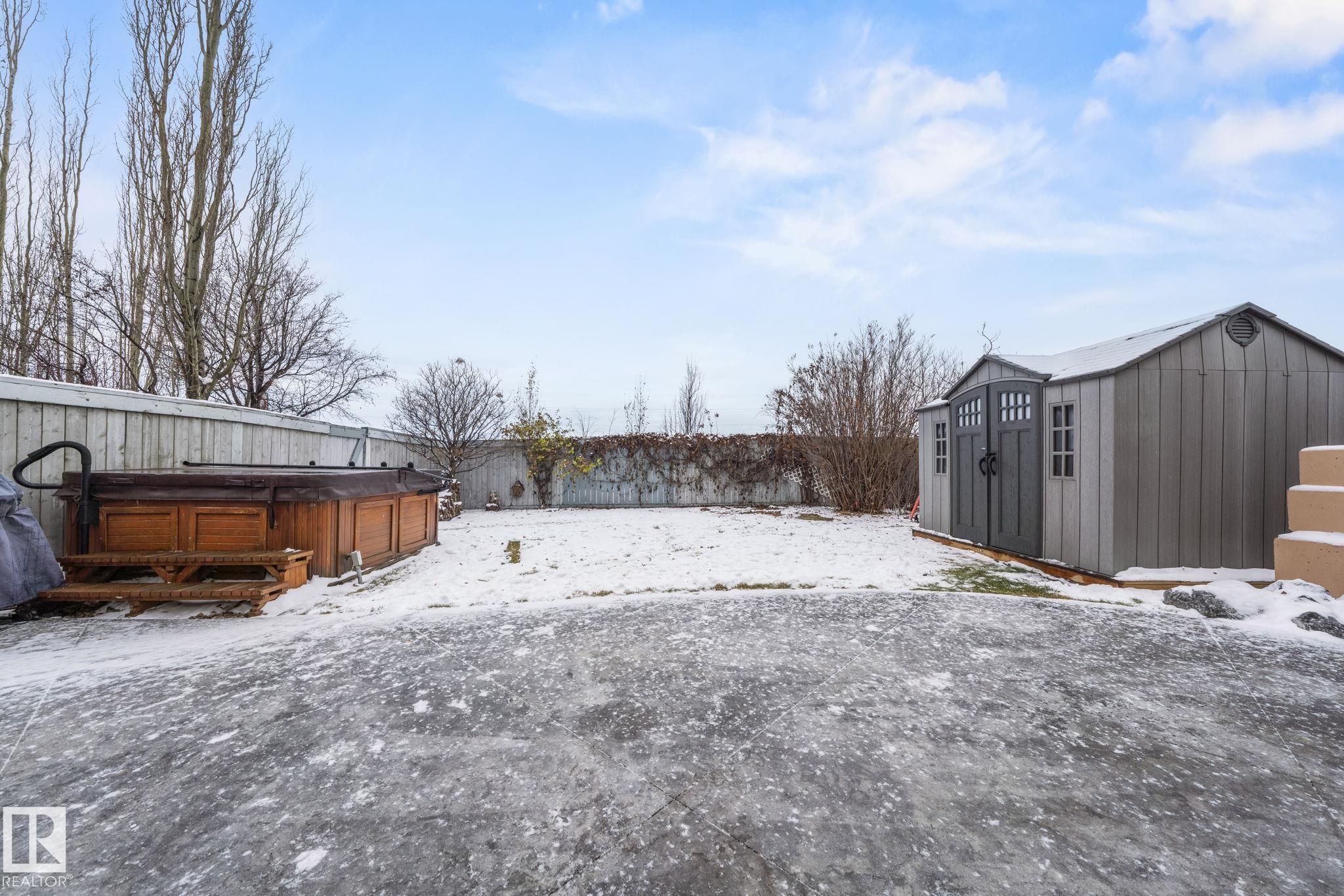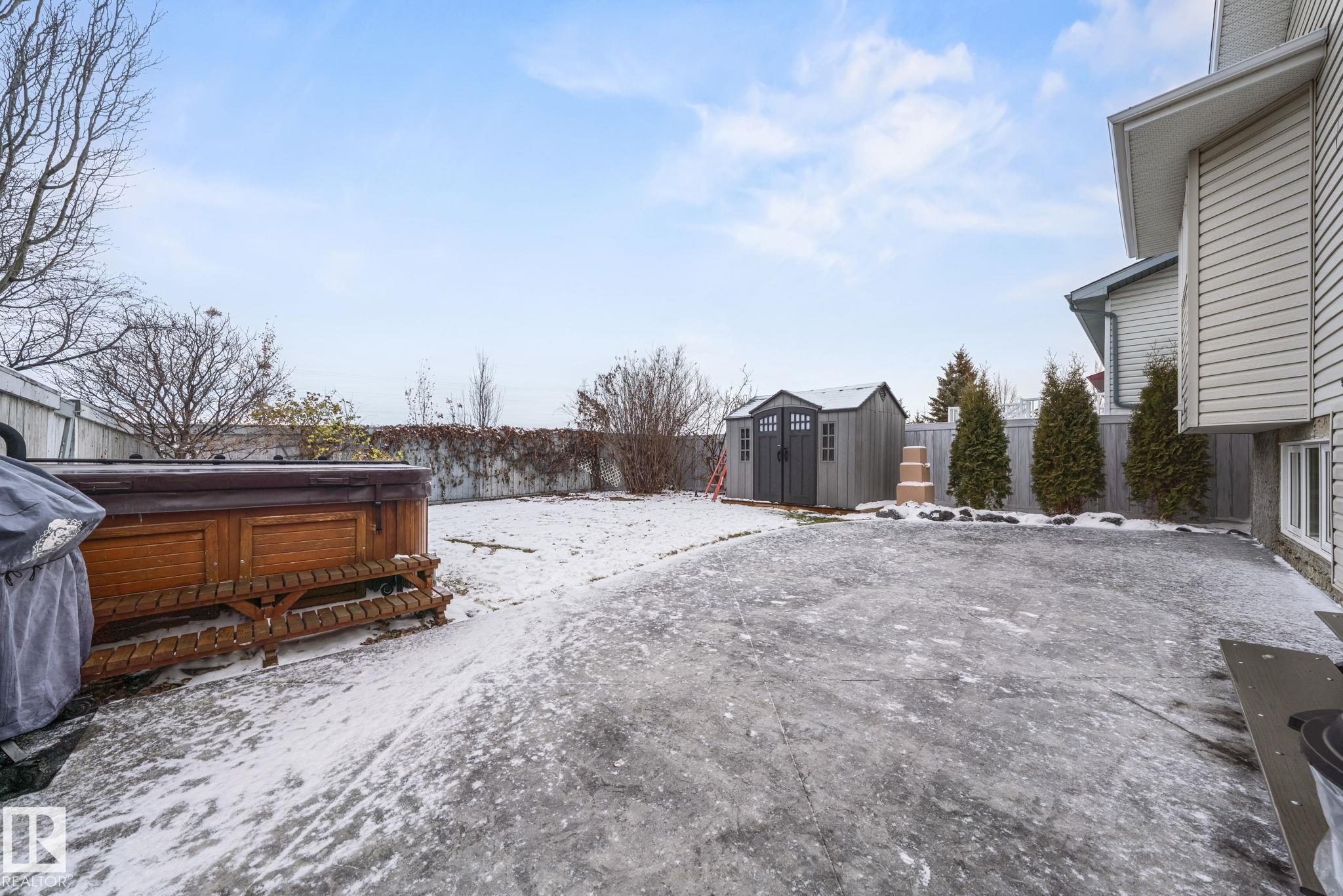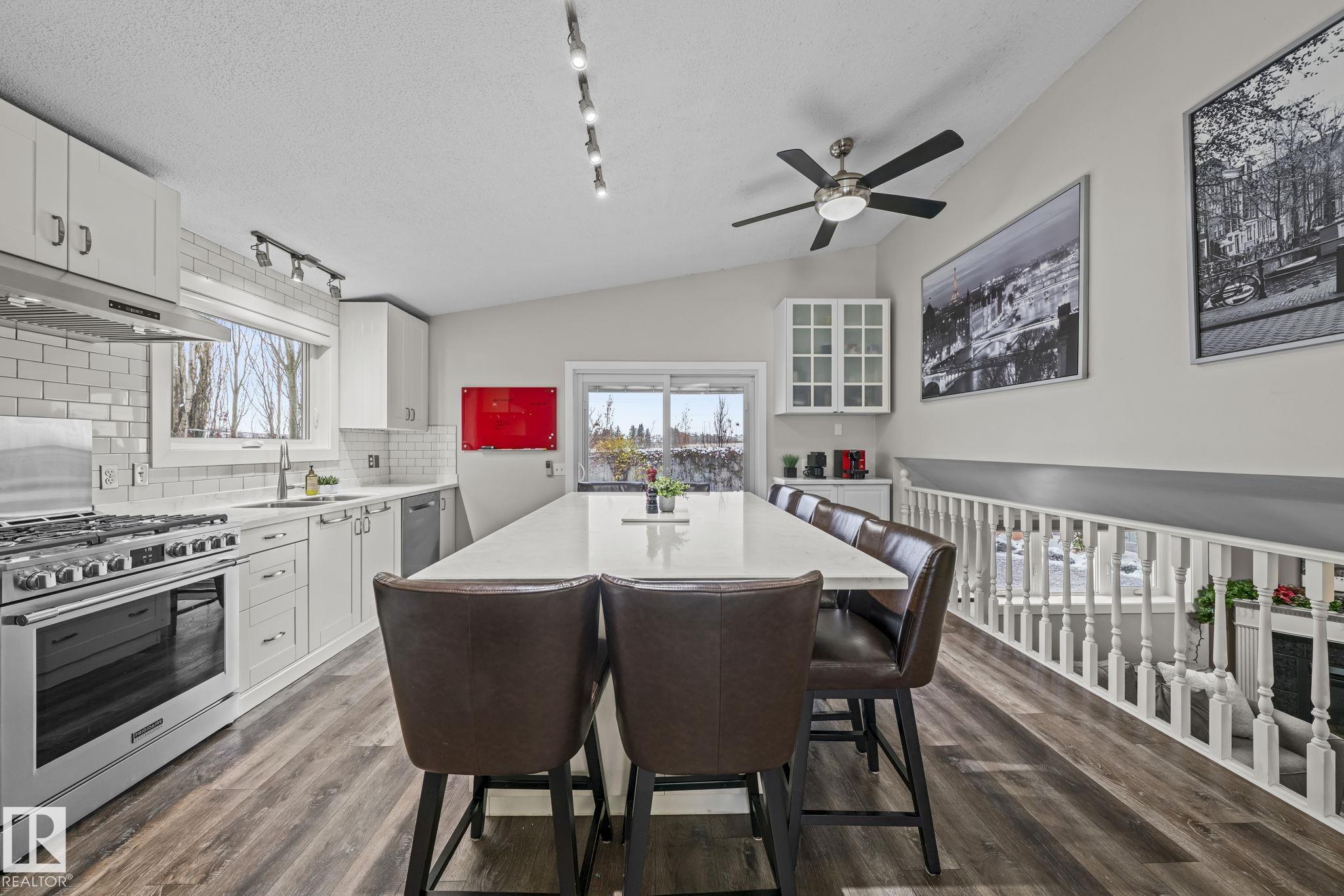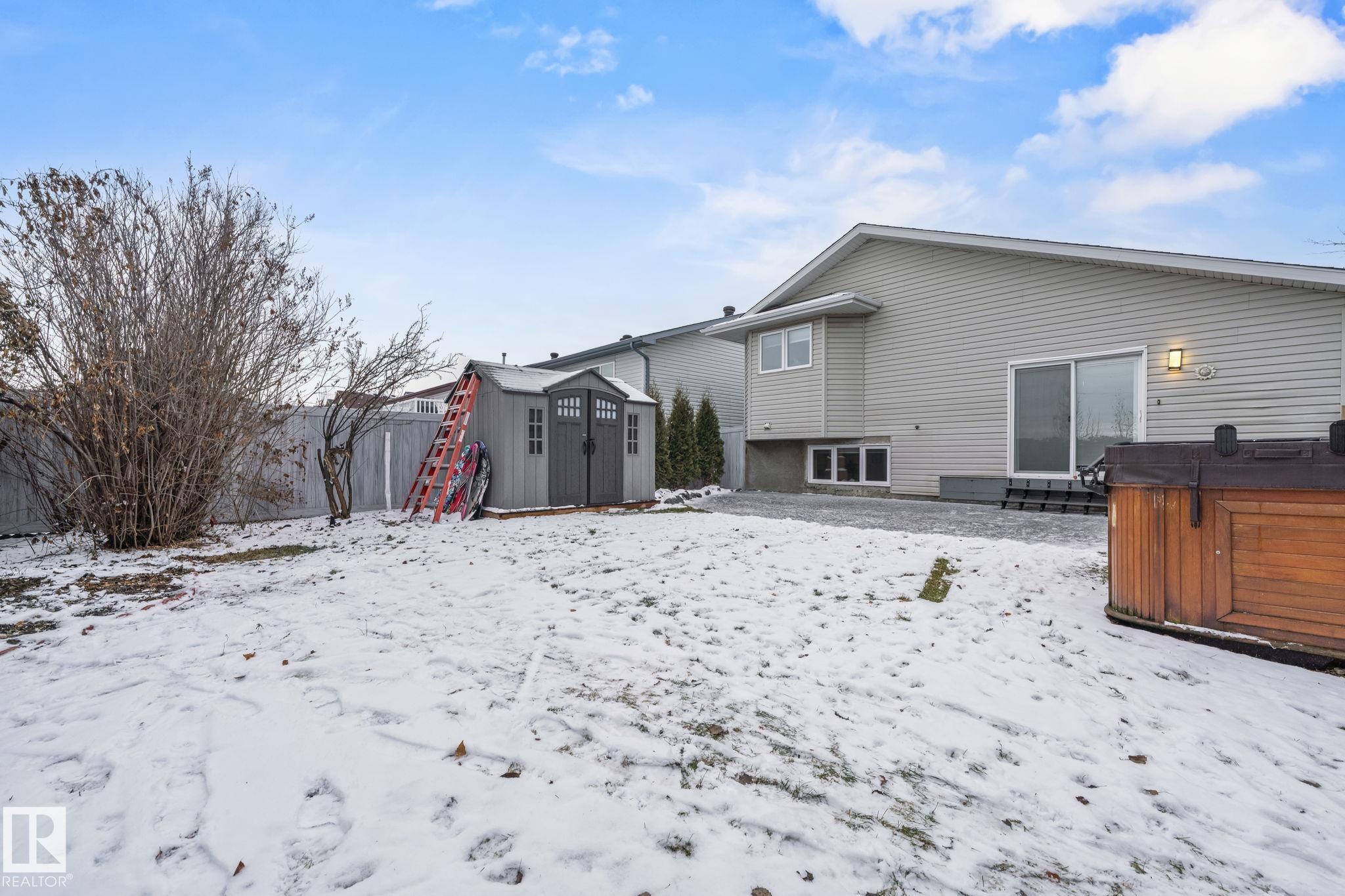Prepare to be delighted by this beautiful 4 level split tucked into family friendly Jamieson Place. You are welcomed into a bright foyer and airy living/dining room with vaulted ceilings and updated flooring. Step into the gorgeous updated chefs kitchen with stainless steel appliances including a new gas stove, massive island and loads of cupboard space. Step down into the spacious family room with cozy gas fireplace, the perfect spot to relax. A large 3pc bathroom and bedroom/office complete this level. Upstairs is home to three more bedrooms including a primary with 3pc ensuite, and another 4pc bathroom. The basement hosts another fully finished living area for games and movies. Enjoy privacy in your west facing backyard, backing directly on to a massive greenspace - no rear neighbors and stunning sunsets. Upgrades include: A/C, newer appliances, 50-year shingles, finished heated garage and new triple pane windows. Minutes from schools, amenities, and very quick access to Henday. Welcome home!
