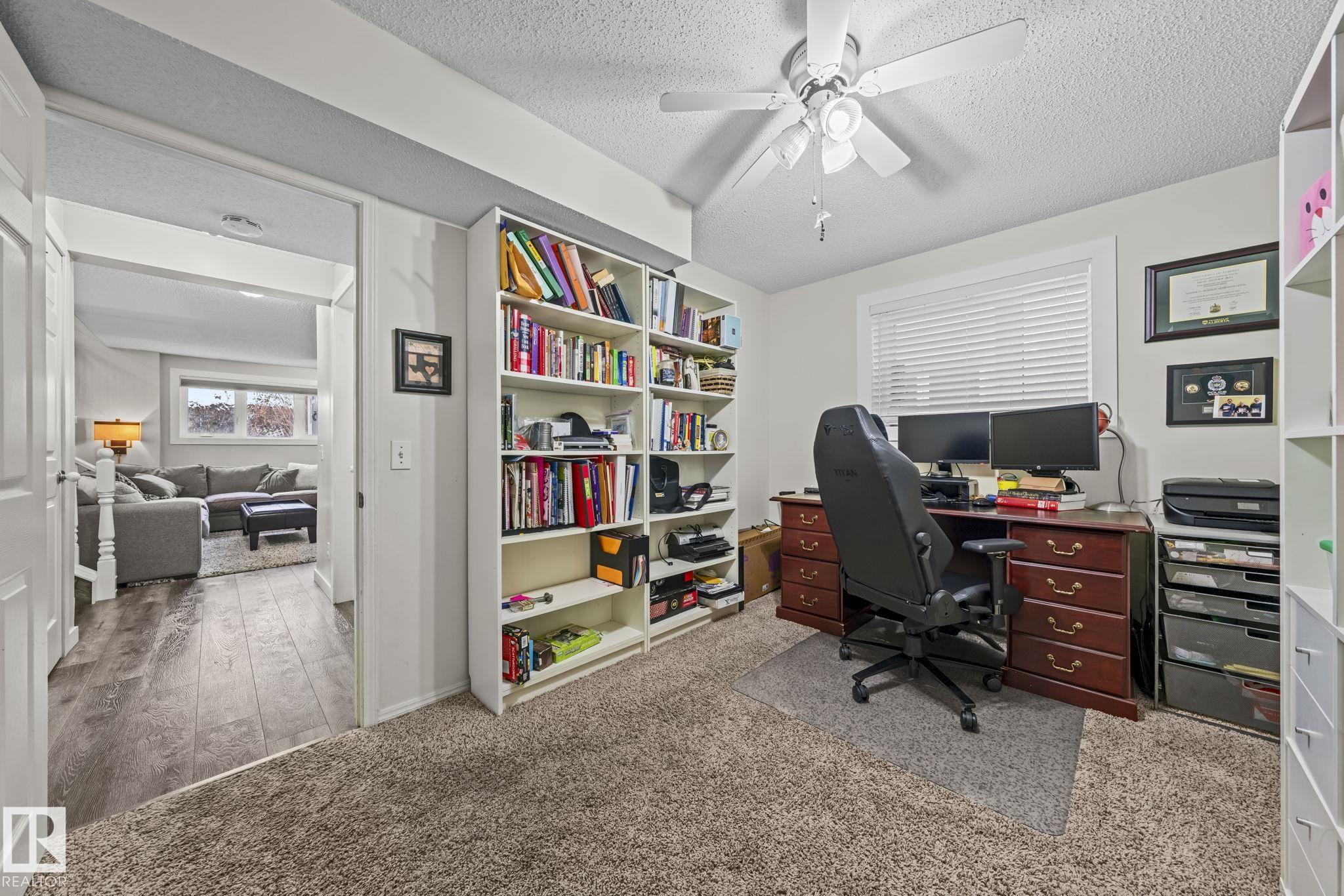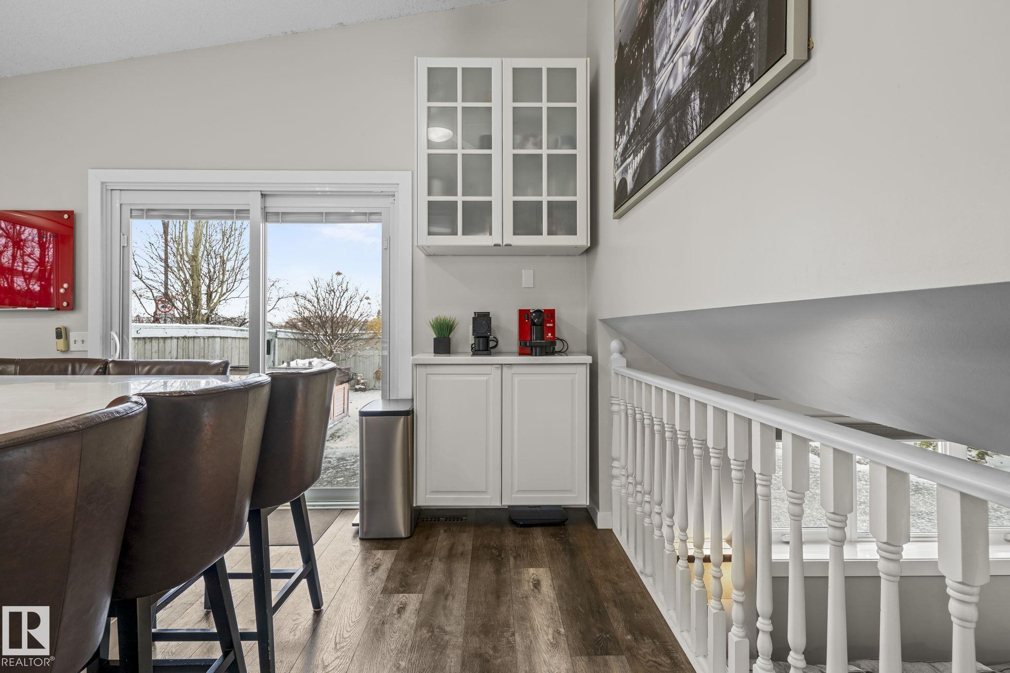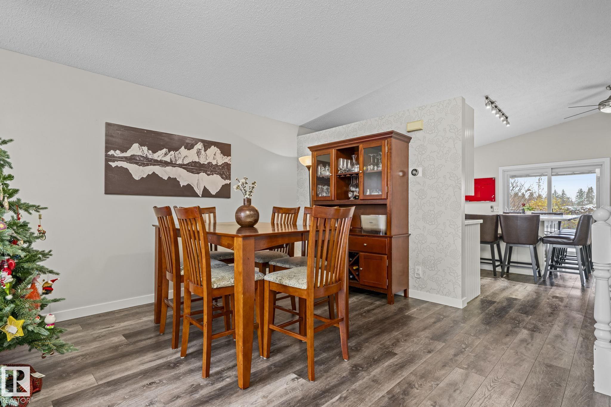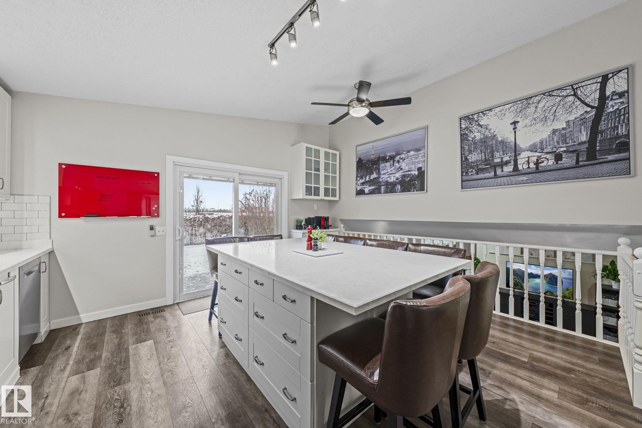 Prepare to be delighted by this beautiful 4 level split tucked into family friendly Jamieson Place. You are welcomed into a bright foyer and airy living/dining room with vaulted ceilings and updated flooring. Step into the gorgeous updated chefs kitchen with stainless steel appliances including a new gas stove, massive island and loads of cupboard space. Step down into the spacious family room with cozy gas fireplace, the perfect spot to relax. A large 3pc bathroom and bedroom/office complete this level. Upstairs is home to three more bedrooms including a primary with 3pc ensuite, and another 4pc bathroom. The basement hosts another fully finished living area for games and movies. Enjoy privacy in your west facing backyard, backing directly on to a massive greenspace - no rear neighbors and stunning sunsets. Upgrades include: A/C, newer appliances, 50-year shingles, finished heated garage and new triple pane windows. Minutes from schools, amenities, and very quick access to Henday. Welcome home!
