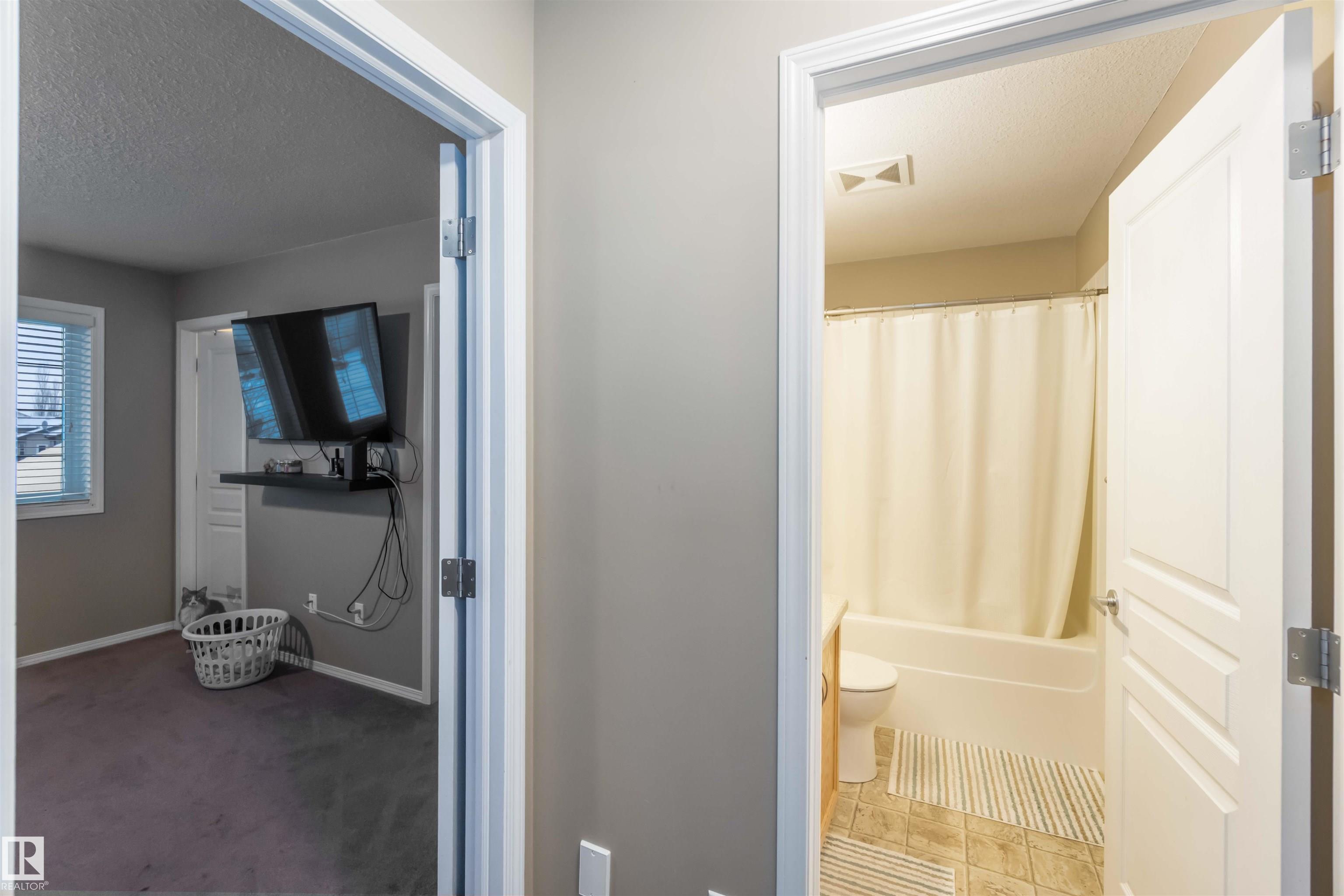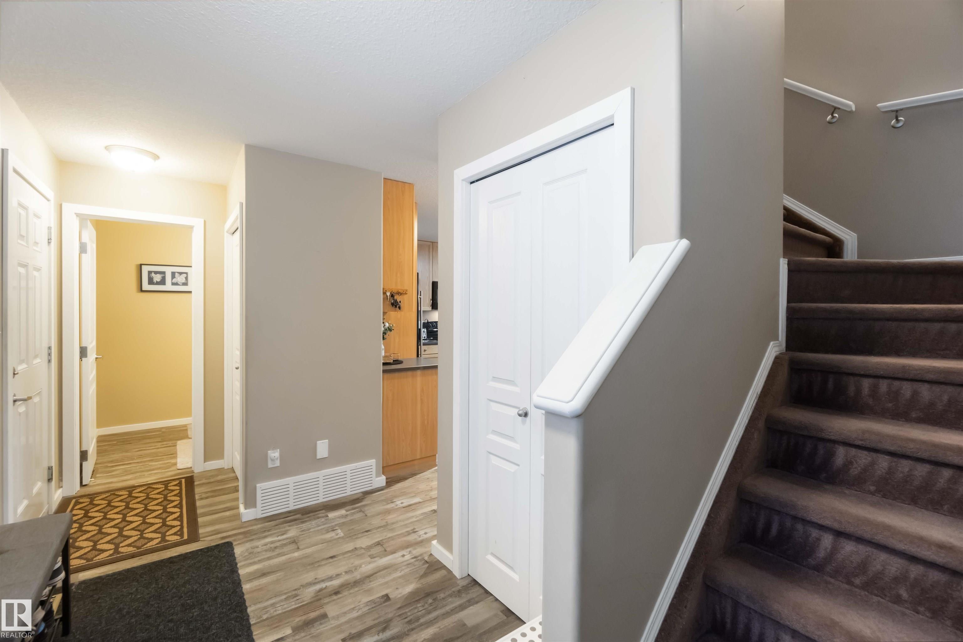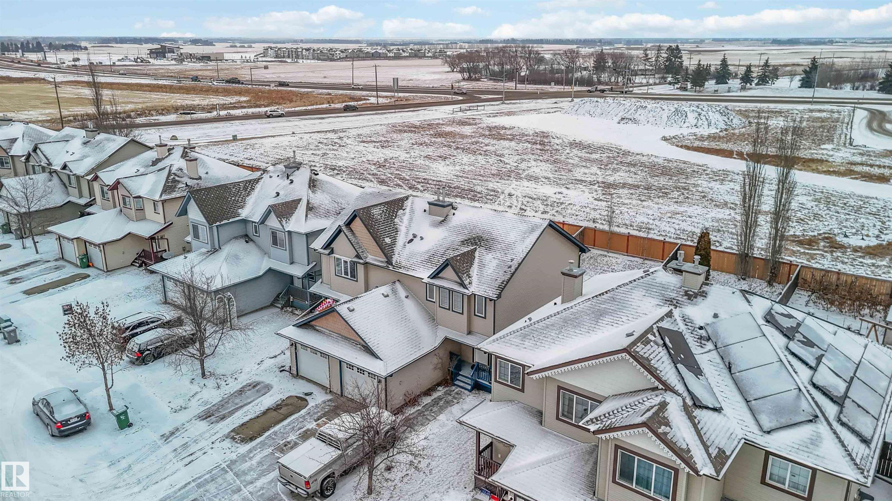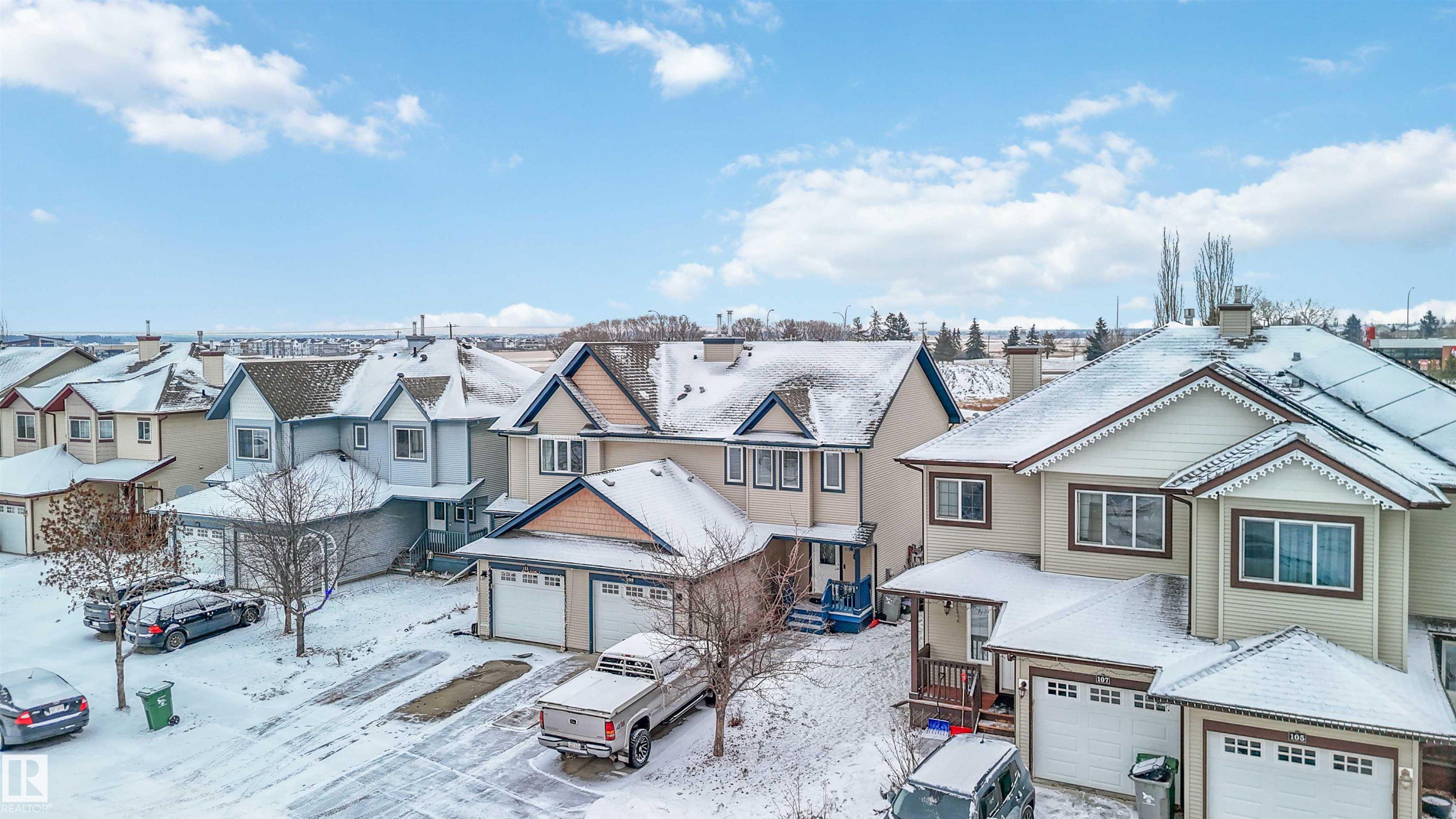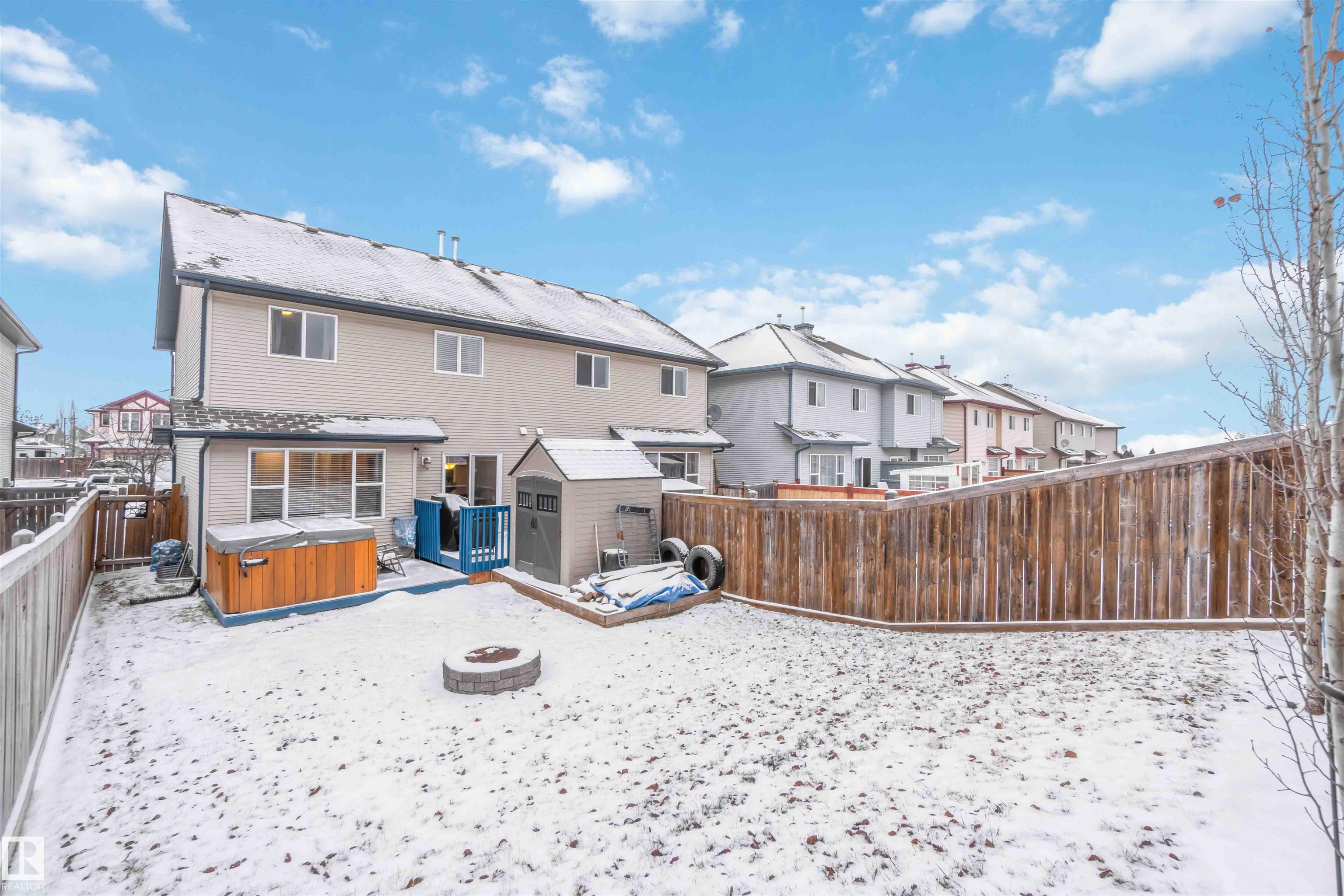 Welcome to this charming 3-bed, 2.5-bath half duplex offering 1291 sqft of bright, functional living in a peaceful location near the edge of town. The open-concept main floor features beautiful laminate flooring, a spacious living area, an eating island perfect for casual meals, and a walk-in pantry that adds exceptional storage. A convenient main floor powder room completes the level. Upstairs, you?ll find three inviting bedrooms, including a comfortable primary suite with its own ensuite. This home has several valuable updates, including newer windows and a newer hot water tank for peace of mind. The single attached garage adds year-round convenience, while the basement is ready for your personal touch. Outside, enjoy a private yard with a shed for extra storage & a relaxing hot tub?ideal for unwinding after a long day. Located just minutes from Harvest Pointe and offering quick access to the airport, this home blends comfort, updates and convenience in a welcoming community. All this home needs is YOU!