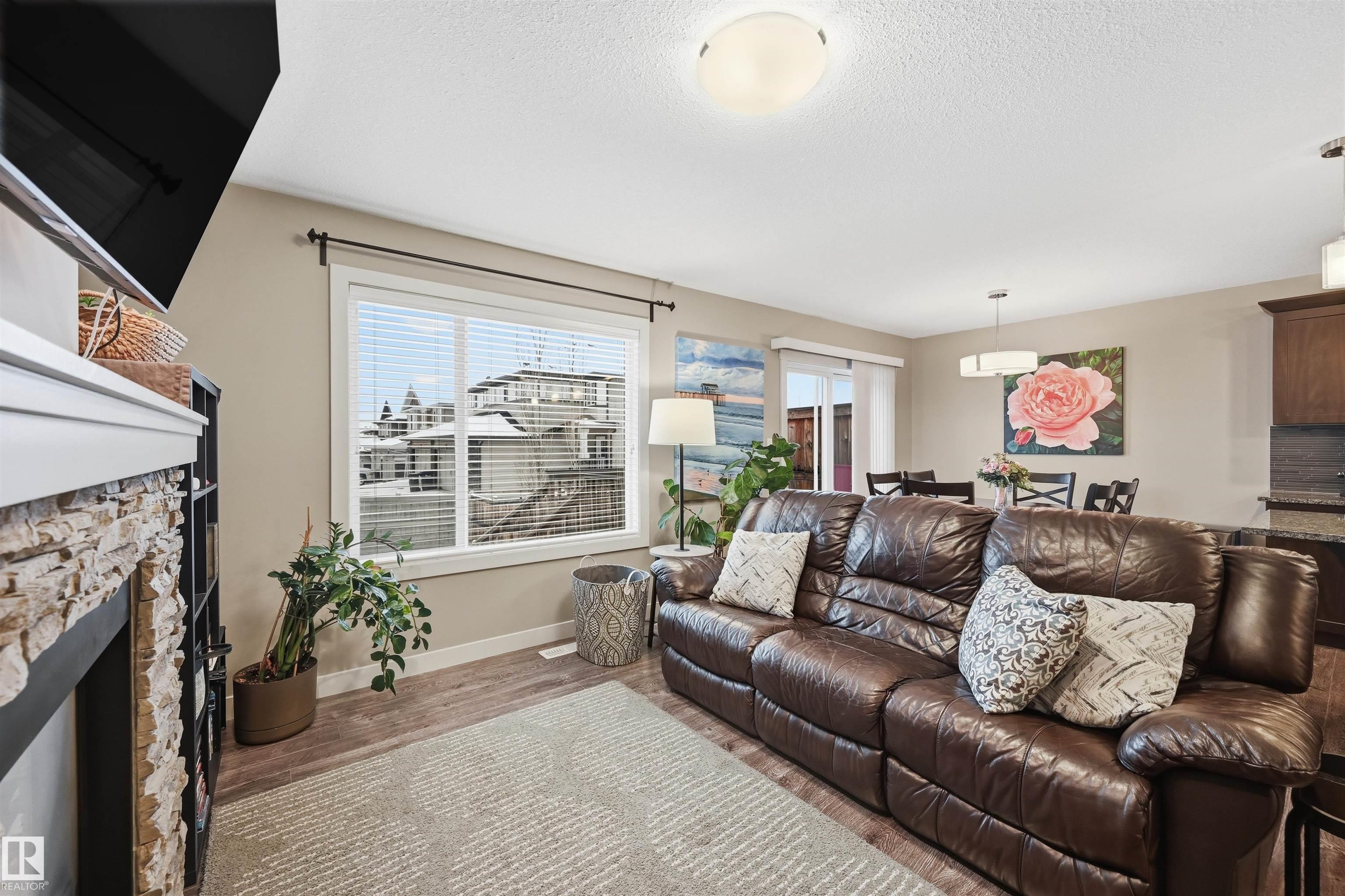 Well-maintained duplex boasting 1,500sf above grade PLUS a fully finished basement in a desirable Sherwood Park community! Nicely situated across from green space w/ a walking trail leading to park/pond. Upon entry find a cozy entrance w/ access to garage & 2pc bathroom. Open-concept main floor is the perfect family space w/ a sizeable kitchen (including granite counters, extended pantry, stainless steel appliances), dining nook & living room w/ gas fireplace. Upstairs find bonus/flex space, large primary bedroom w/ ensuite, 2 spare bedrooms, shared 4pc bathroom & laundry. Basement finished w/ recreation space, bedroom & 3pc bathroom. Double attached garage. Large west back yard (no neighbours directly facing behind either). Features include AC, 9' ceilings, Hunter Douglas blinds, extended driveway & more. Perfect starter home, or "move-up" single family home! Close proximity to Leisure Centre/Sports Pavillion, restaurants, shopping/retail, schools. Easy access to major arteries. A must see!