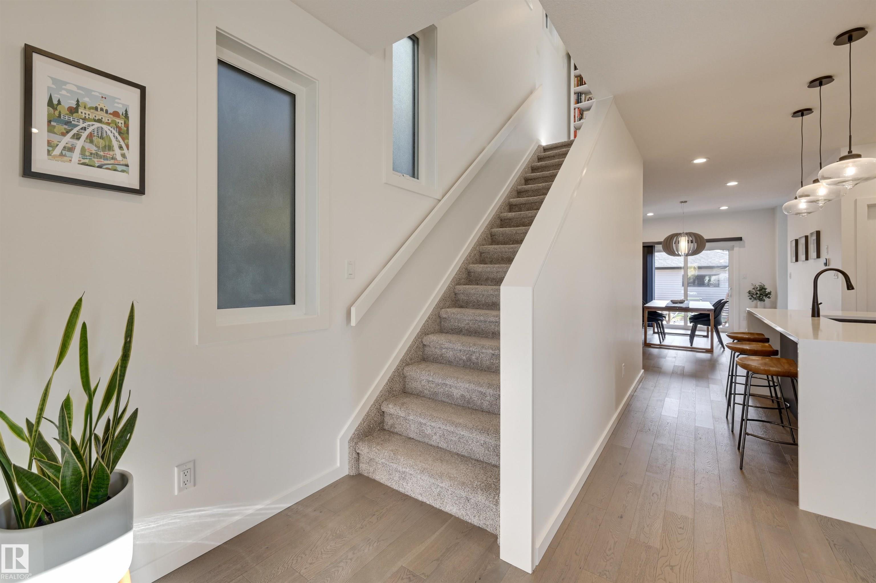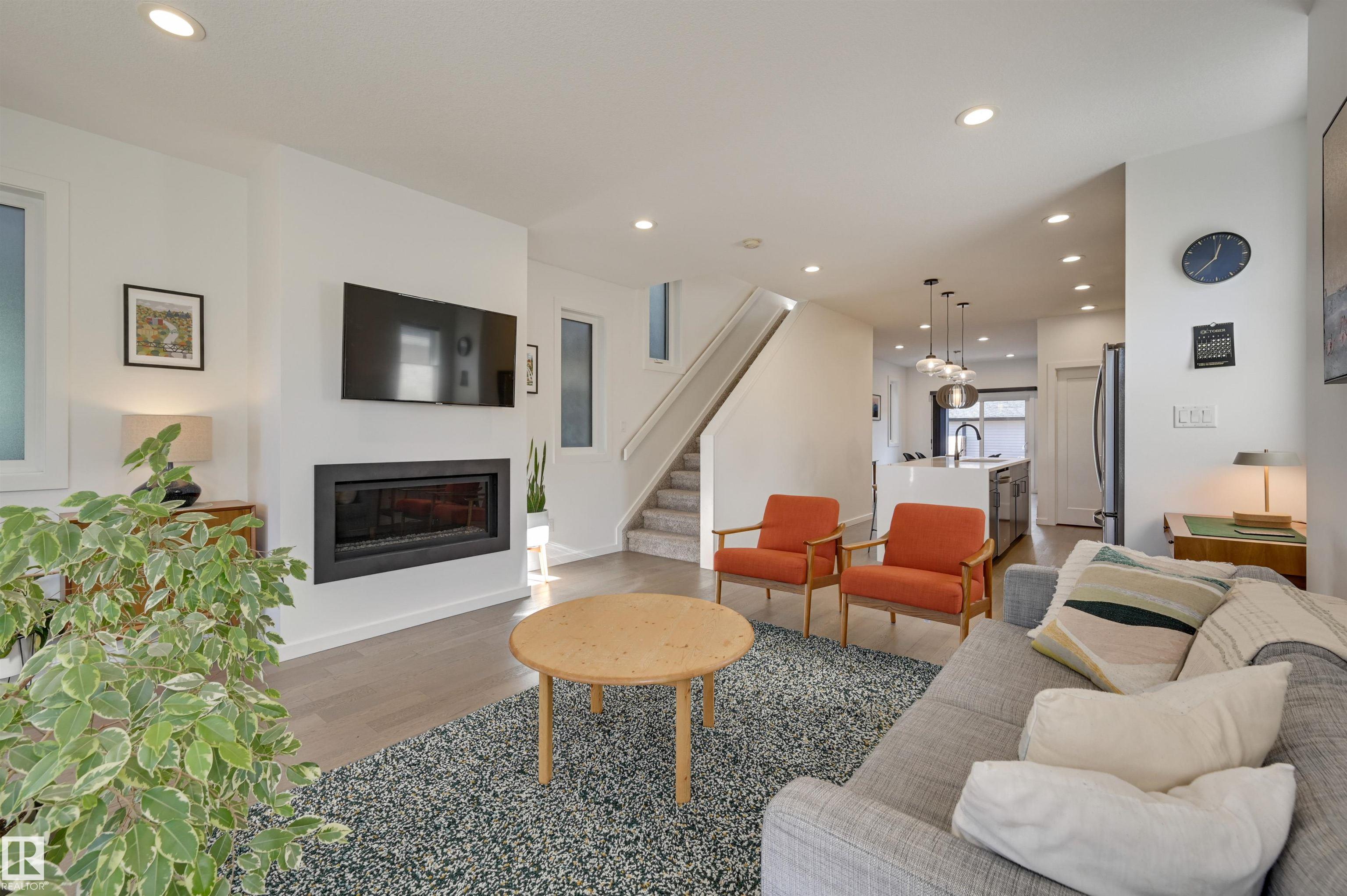 Welcome to this stunning two-storey home in the heart of Grovenor, perfectly positioned on a picturesque, tree-lined street. Step inside to an inviting open-concept main floor, where a bright living room with a cozy fireplace is framed by large windows that fill the space with natural light. The chef-inspired kitchen is sure to impress, featuring quartz countertops, a stylish tile backsplash, gas cooktop, built-in oven, and a striking waterfall island with seating?ideal for cooking and gathering. A spacious dining room and a well-designed mudroom offer seamless access to the large deck, fully fenced backyard, & double detached garage. Upstairs, the show-stopping primary suite offers vaulted ceilings, a walk-in closet, & a luxurious spa-like ensuite complete with dual sinks and an oversized walk-in shower. Two additional bedrooms, a 4 pc bath, & a laundry room complete the upper level. The fully finished basement provides even more living space, featuring a generous family room, 4th Bedroom, & 4pc bath.