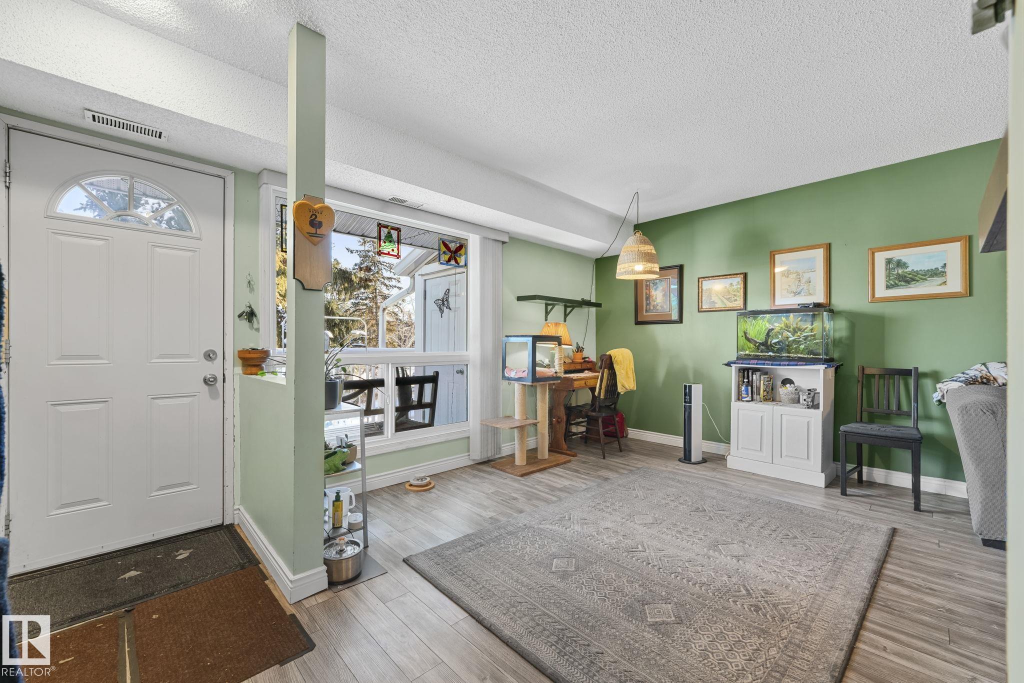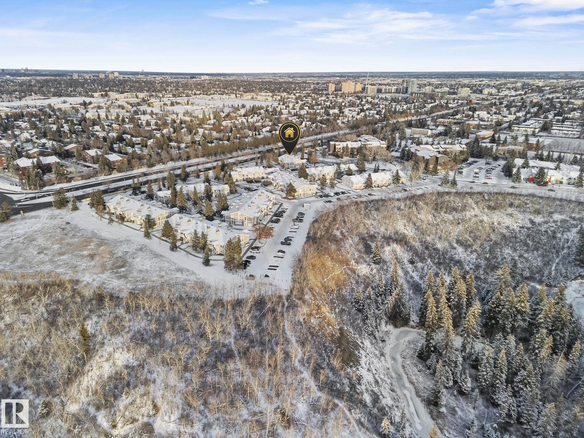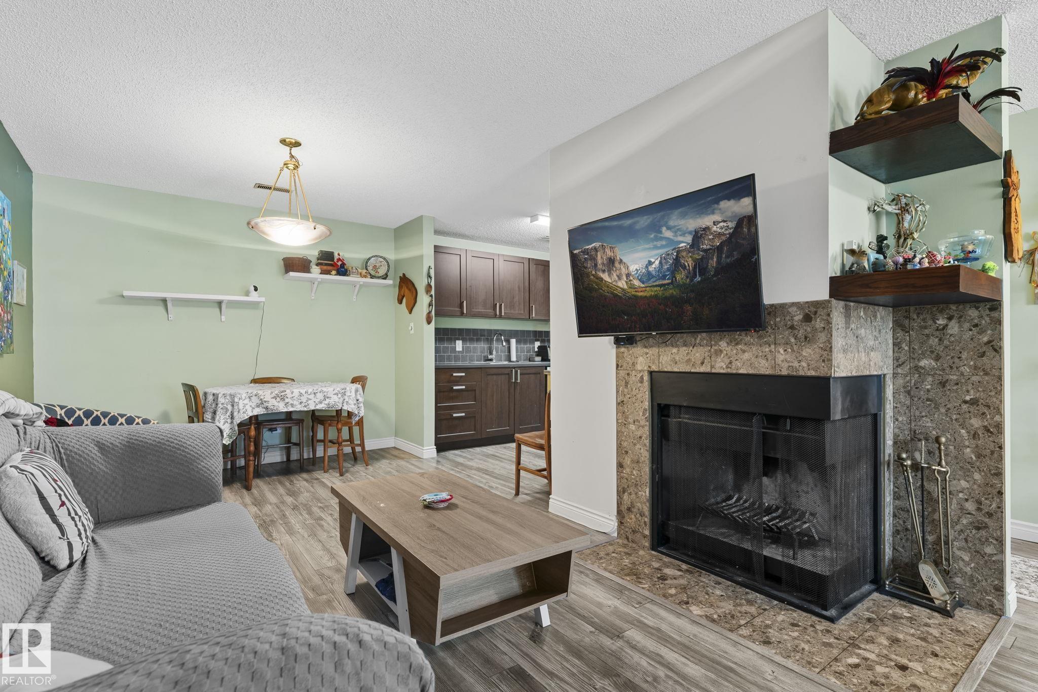 A rare find for first-time buyers, families, or savvy investors, with a tenant open to staying. This move-in ready three-bedroom upper end unit in Quail Ridge offers one of the best locations in South Edmonton, just steps from the picturesque Whitemud Creek Ravine. Enjoy new flooring throughout, a bright living room with a two-sided wood-burning fireplace, and a kitchen with updated cabinets, tile backsplash, stainless steel appliances (2013), and a walk-in pantry. The spacious primary bedroom includes a walk-in closet with direct access to the updated four-piece bath. Additional highlights include a 10' x 6' balcony storage room, low condo fees, and a new furnace (2025), and a huge exterior update to the complex in 2016, including roof, stairs, windows, and doors. An energized parking stall and ample visitor parking add convenience. Close to schools, playgrounds, the LRT, shopping, restaurants, the YMCA, and scenic walking trails, an ideal place to call home or a smart investment.