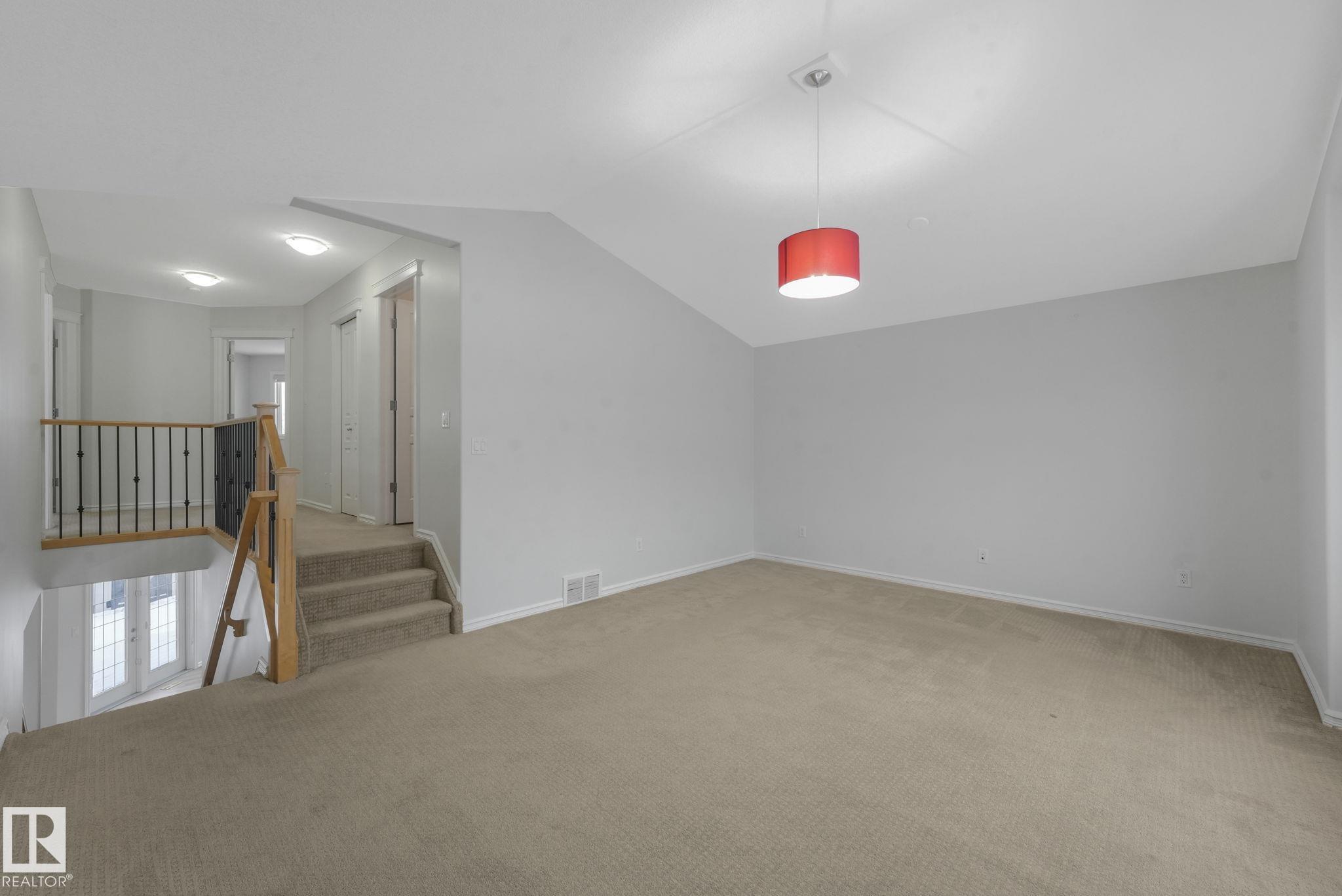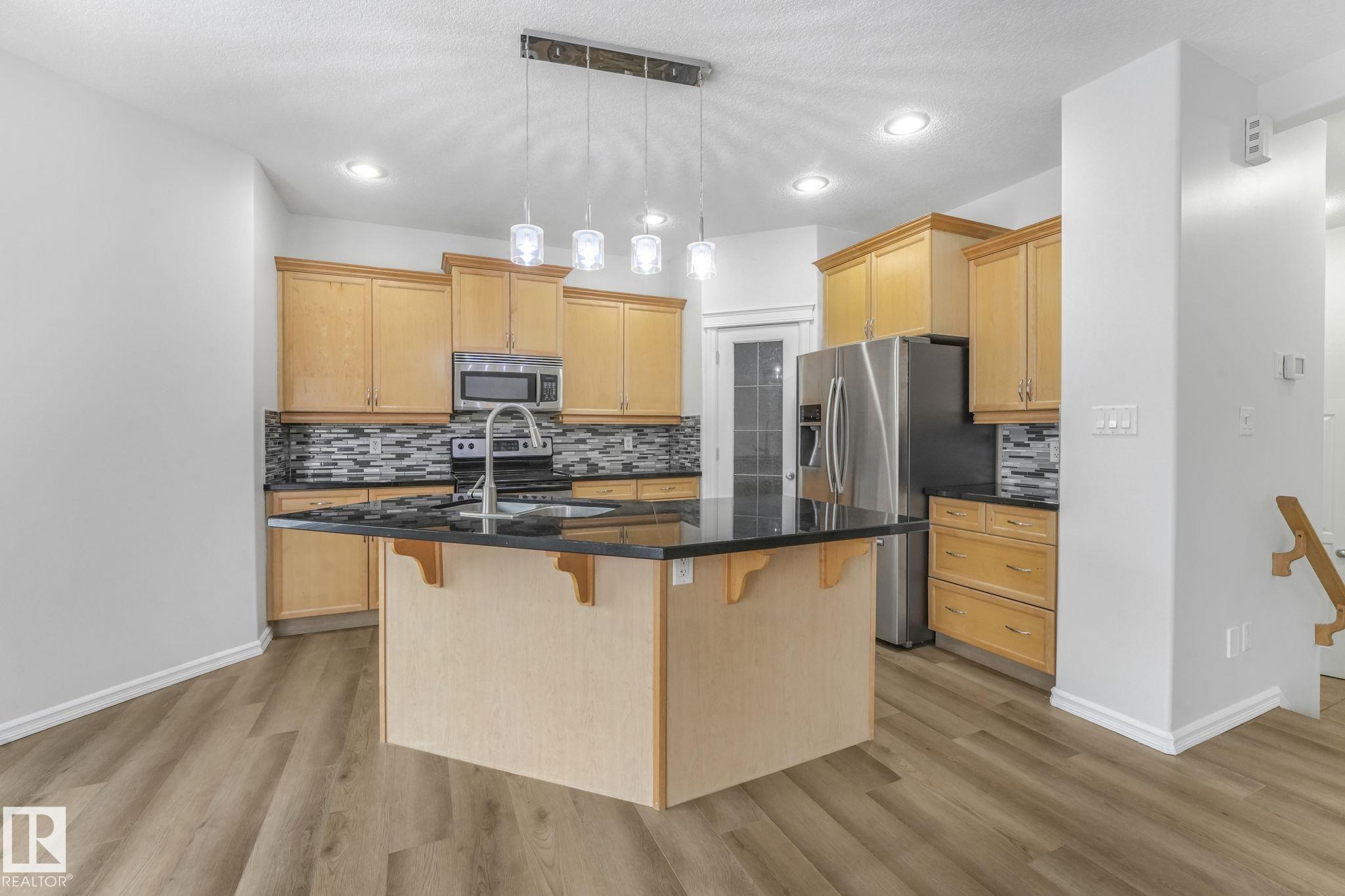 EXECUTIVE LUXURY IN KLARVATTEN! This stunning 2-storey sits on a large pie lot in a quiet cul-de-sac?offering style, comfort and exceptional value with major 2025 updates including new roof, HWT, flooring, designer lighting and fresh paint. The main floor features 9? ceilings, a sun-filled living room with a cozy gas fireplace, and a beautiful island kitchen with premium maple cabinetry, tall crown mouldings, under-cabinet lighting, granite counters, ceramic backsplash, corner pantry and upgraded raised cabinets. Double French doors off the bright dining area open to a spacious deck?perfect for summer living. Upstairs, the vaulted bonus room is ideal for family movie nights, while the private primary suite offers a spa-inspired 4-pc ensuite with corner soaker tub and glass shower. Two additional large bedrooms complete the level. The finished basement has a large family room with bar and 2 pce bath. Steps to schools, parks, walking trails and the lake?this is the home you?ve been waiting for!