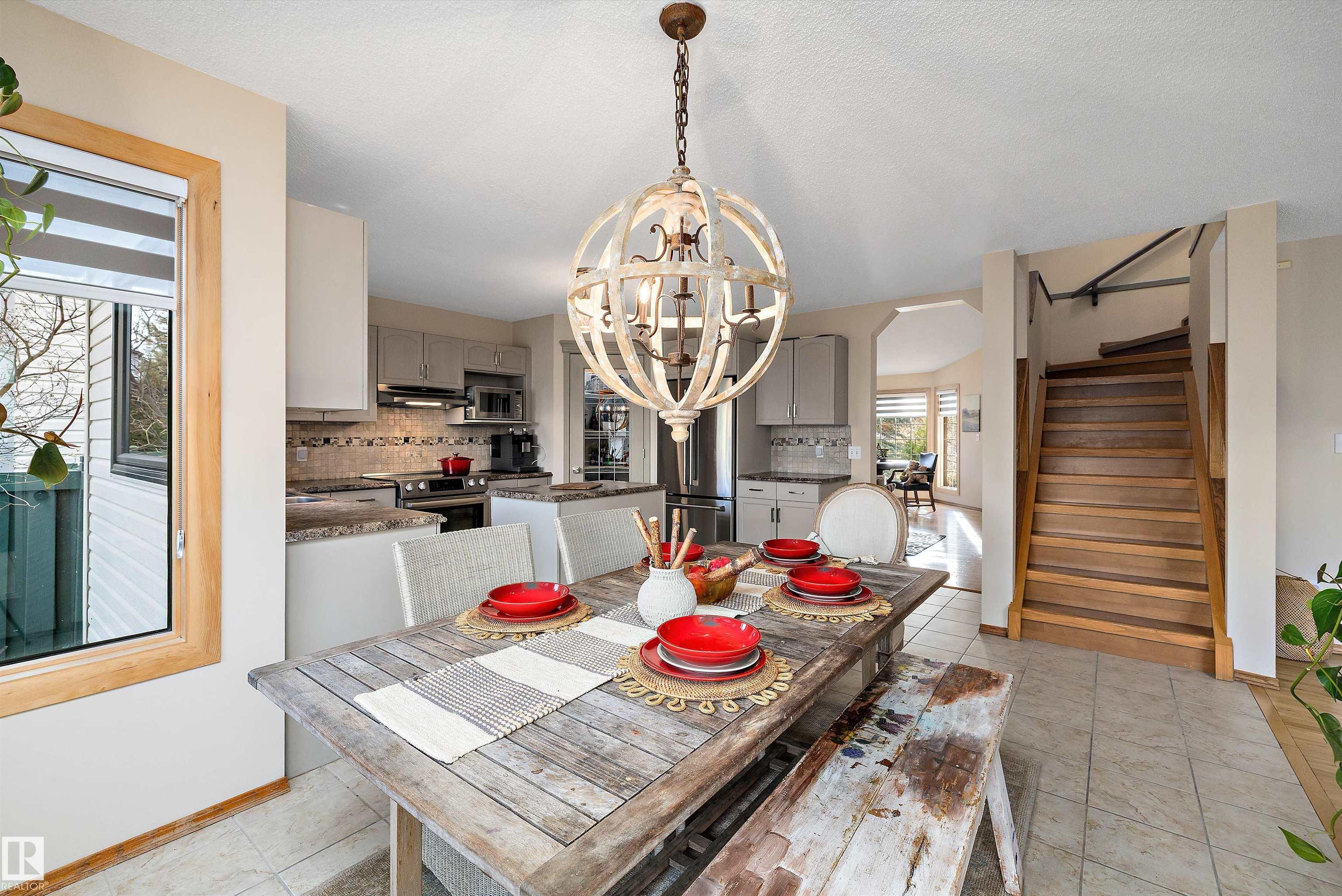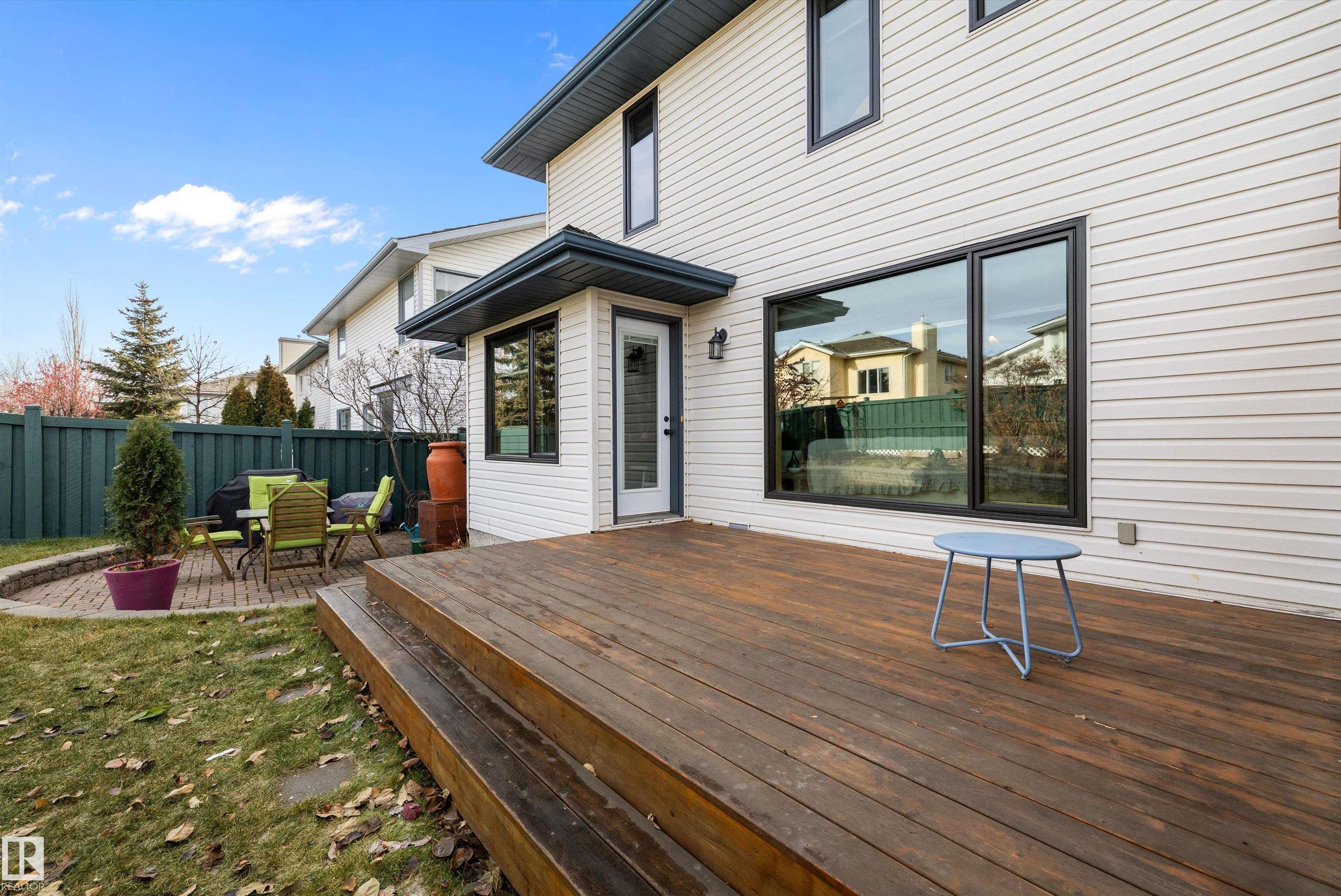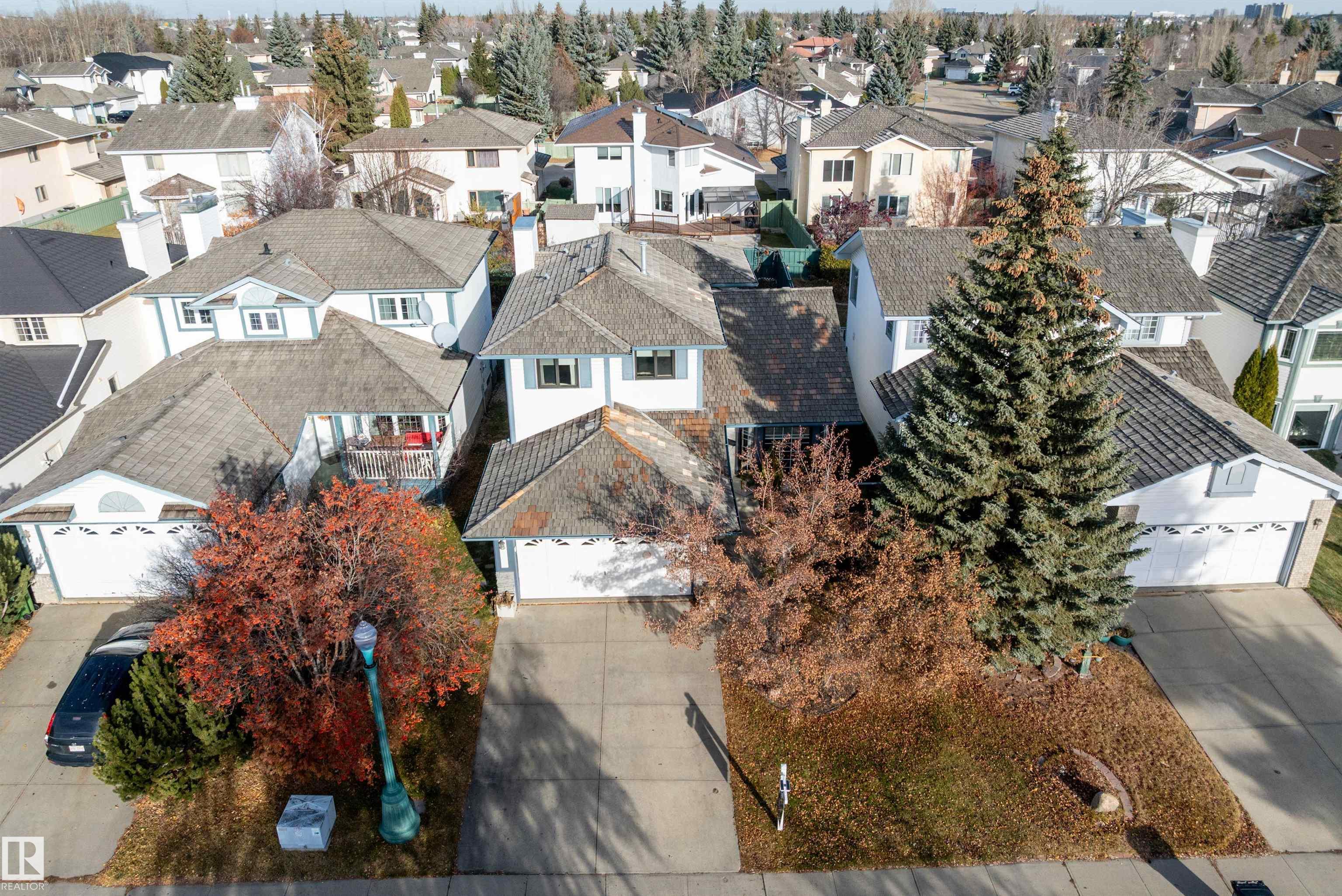 RARE OPPORTUNITY IN WEDGEWOOD! Elegant 2-storey, 4-bedroom home with timeless design, abundant natural light, a serene setting in a safe no-thru-traffic community near the Henday. Vaulted ceilings and new windows brighten living and dining areas; kitchen features updated cabinetry and SS appliances overlooking a cozy family room with a heart of the house gas fireplace. Upstairs: primary suite with his & hers walk-in closets and 4-pc ensuite, two bedrooms and full bath. Finished basement offers a large rec area, guest bedroom, and 3-pc bath. Outdoors: mature trees, newer cedar deck with pergola, cobblestone patio, and stone landscaping. Upgrades include Lux aluminum fir clad triple-pane windows (22k 2024), Fireplace Xtrordinair w/ cast-ironed doors (9k 2020), cedar deck (2022), granite countertops in bathrooms (2022), fridge (2024), and HWT (2017). Steps to Wedgewood Ravine and central park with courts, playgrounds, and trails?a well-cared-for home in one of SW Edmonton?s most desirable communities!