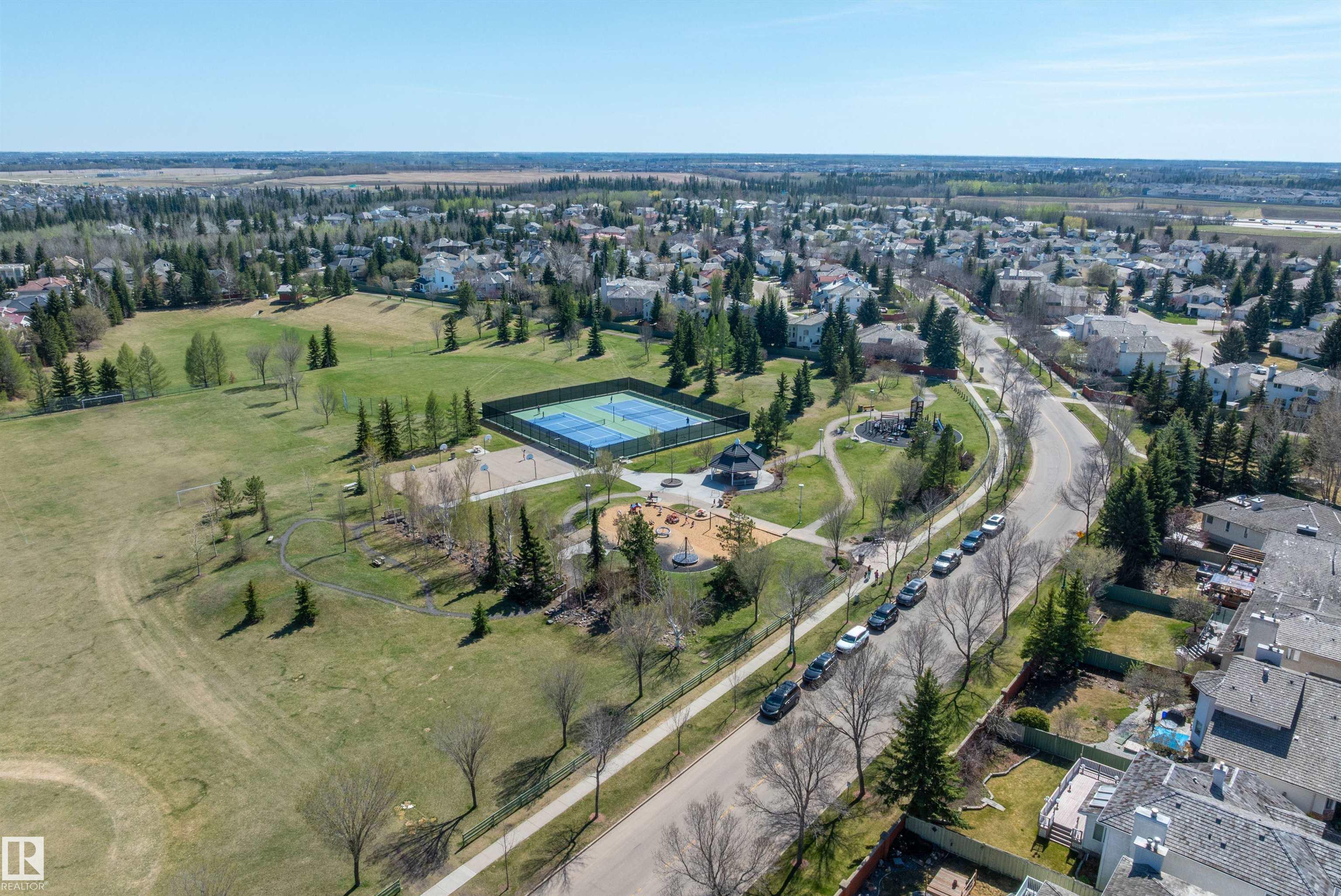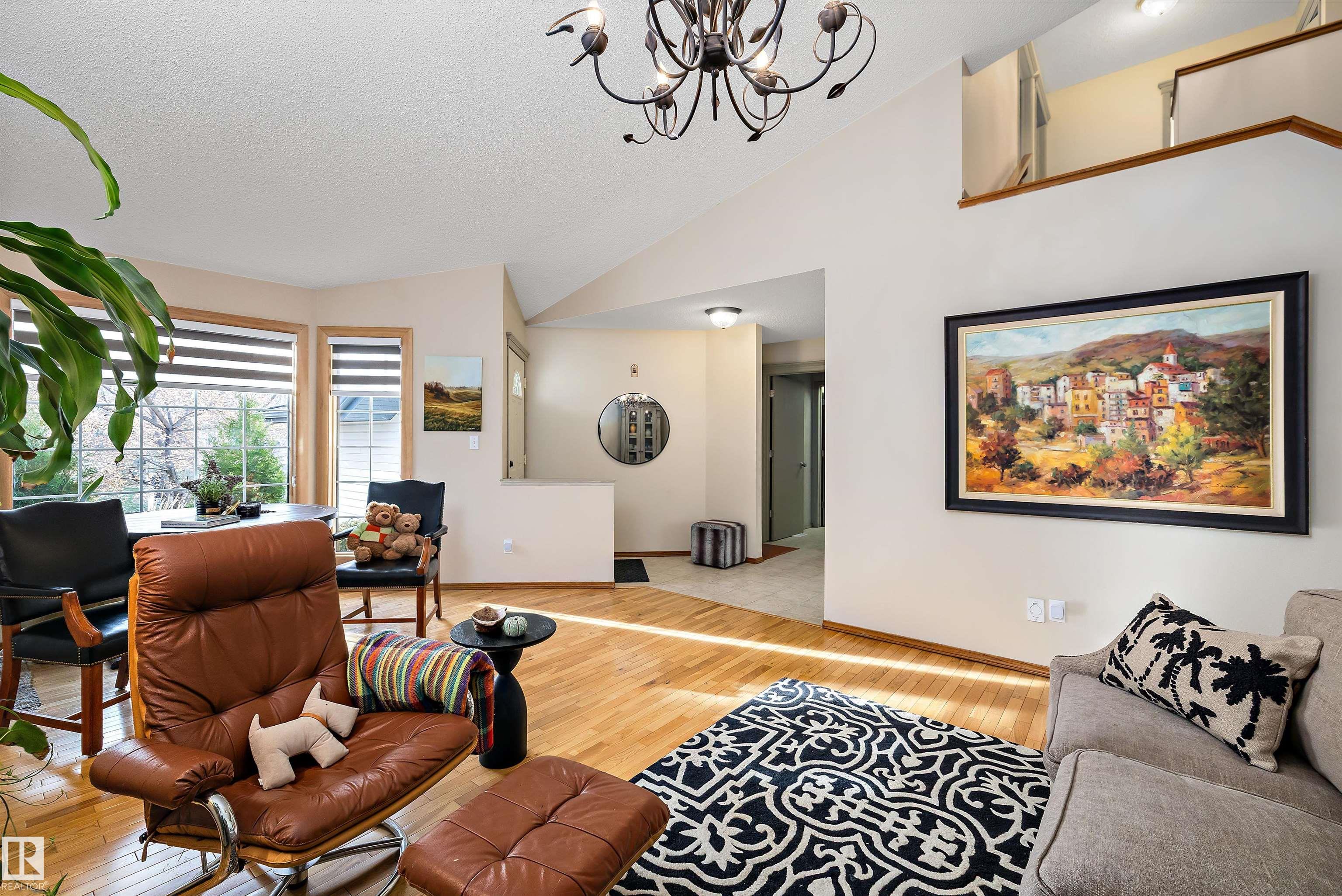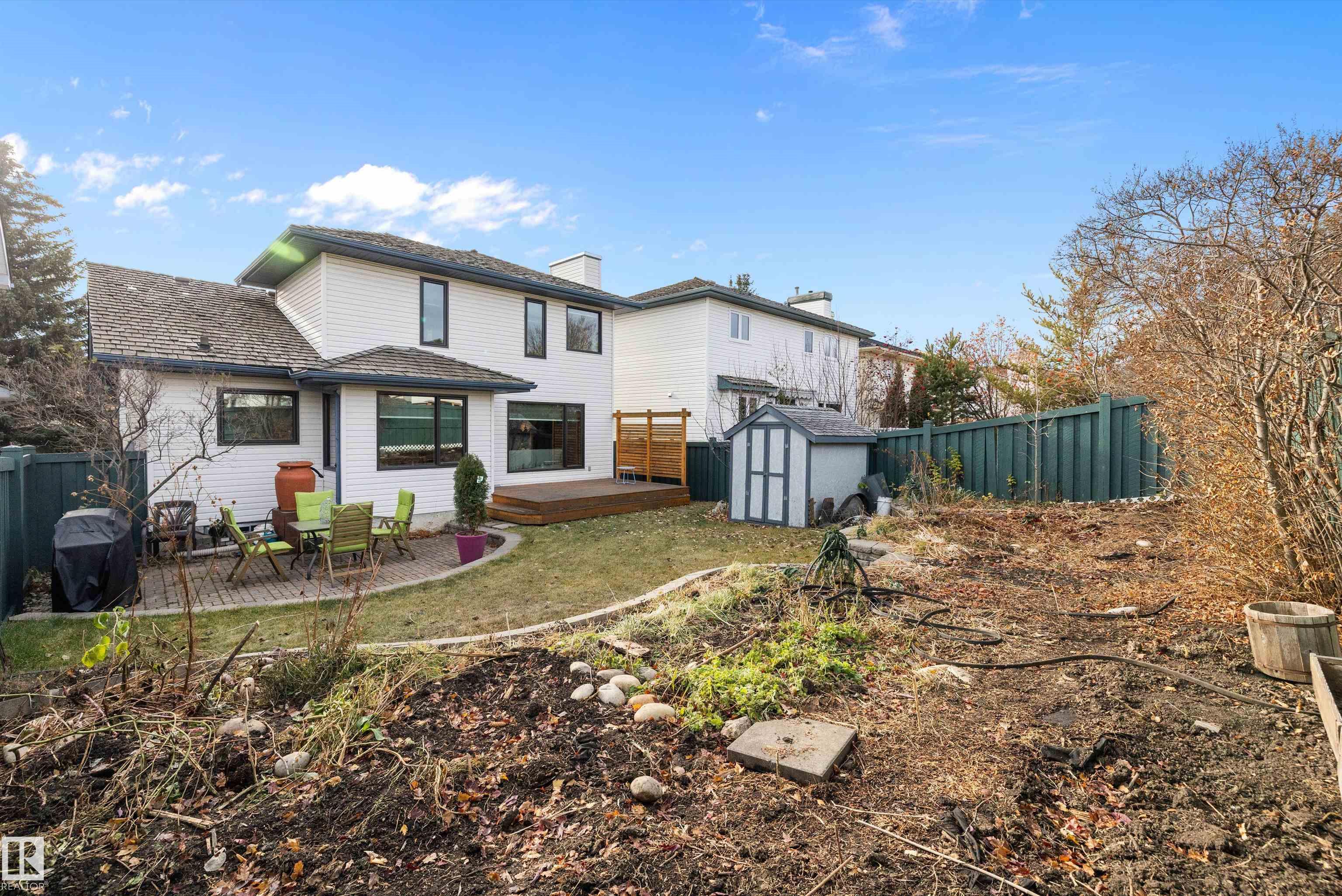 RARE OPPORTUNITY IN WEDGEWOOD! Elegant 2-storey, 4-bedroom home with timeless design, abundant natural light, a serene setting in a safe no-thru-traffic community near the Henday. Vaulted ceilings and new windows brighten living and dining areas; kitchen features updated cabinetry and SS appliances overlooking a cozy family room with a heart of the house gas fireplace. Upstairs: primary suite with his & hers walk-in closets and 4-pc ensuite, two bedrooms and full bath. Finished basement offers a large rec area, guest bedroom, and 3-pc bath. Outdoors: mature trees, newer cedar deck with pergola, cobblestone patio, and stone landscaping. Upgrades include Lux aluminum fir clad triple-pane windows (22k 2024), Fireplace Xtrordinair w/ cast-ironed doors (9k 2020), cedar deck (2022), granite countertops in bathrooms (2022), fridge (2024), and HWT (2017). Steps to Wedgewood Ravine and central park with courts, playgrounds, and trails?a well-cared-for home in one of SW Edmonton?s most desirable communities!