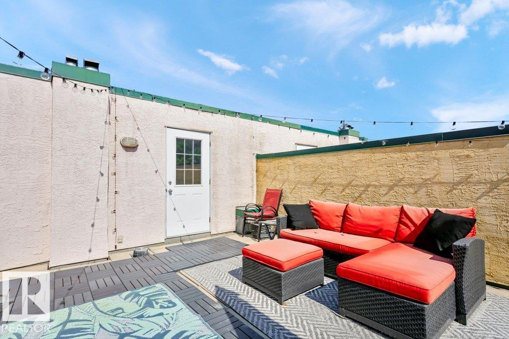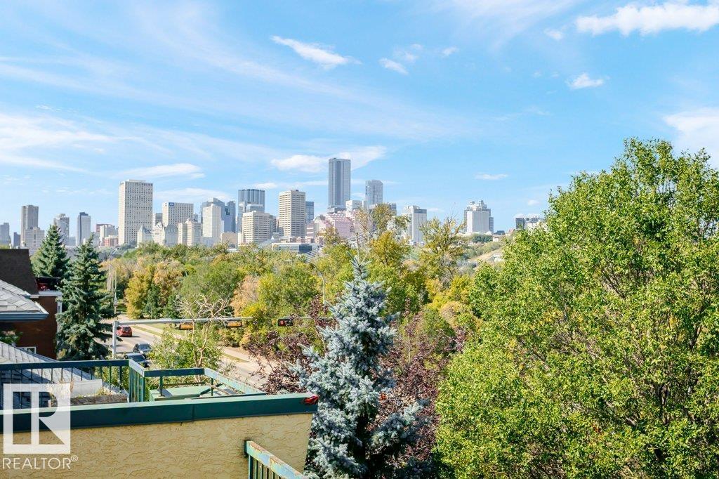 Welcome to Cloverdale, one of Edmonton?s most sought-after communities! This immaculate townhouse offers incredible value with lower condo fees and a lifestyle you?ll love. Imagine morning coffee on your kitchen deck surrounded by mature trees, or evenings on your private double sided rooftop patio with breathtaking north and south views of downtown and the river valley. With multiple outdoor living spaces, there?s no better spot to relax, entertain, or simply soak in the surroundings. Inside, you?ll find a stylish white kitchen with island and stainless steel appliances, 9? ceilings, beautiful hardwood floors, cozy gas fireplace and large windows. The finished basement adds flexibility for a gym, home office, or another bedroom. TWO parking stalls, a newer furnace and hot water tank, and the best location in the city make this home stand out. And as a bonus, Cloverdale community members enjoy free Folk Fest tickets every summer?steps from your door!