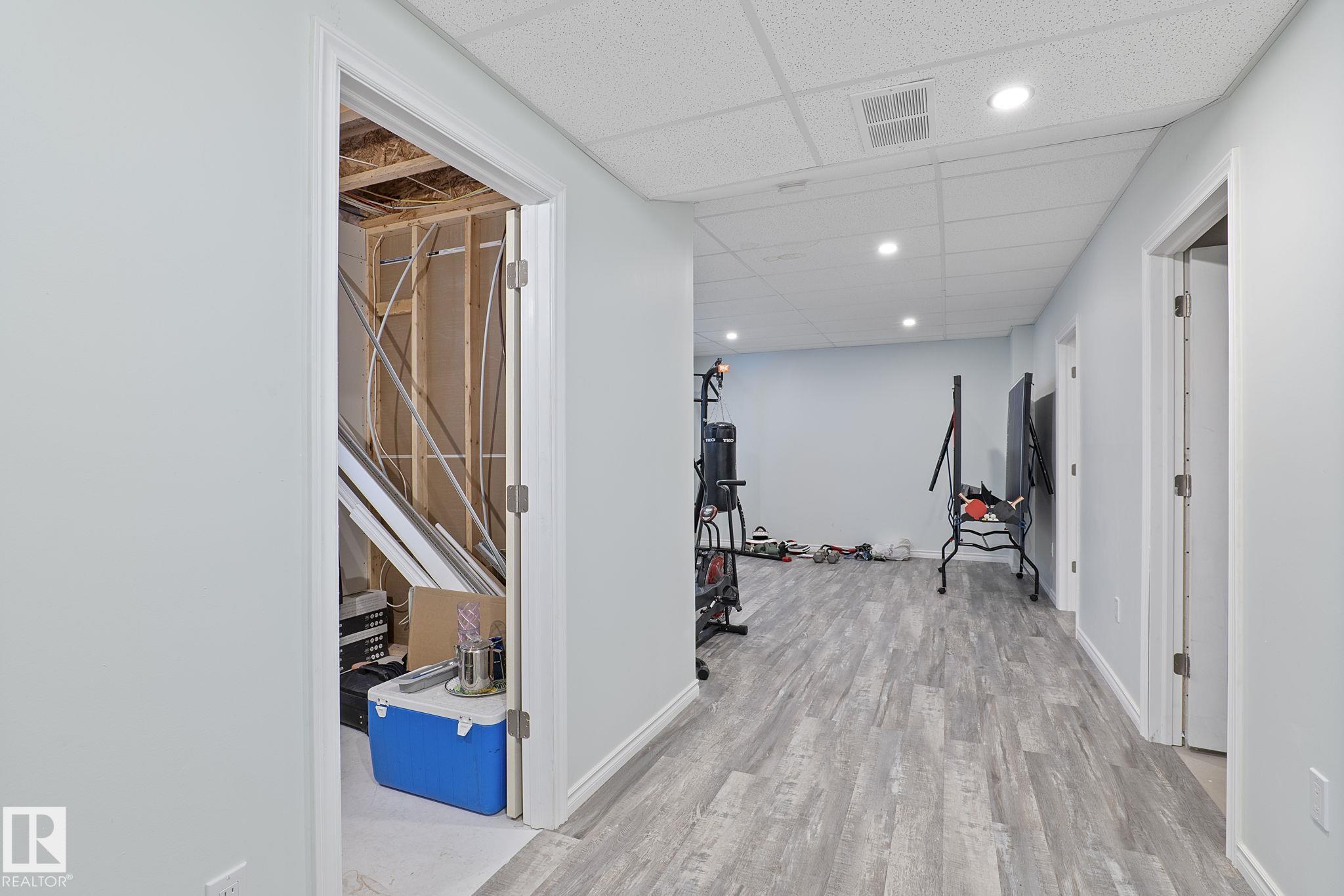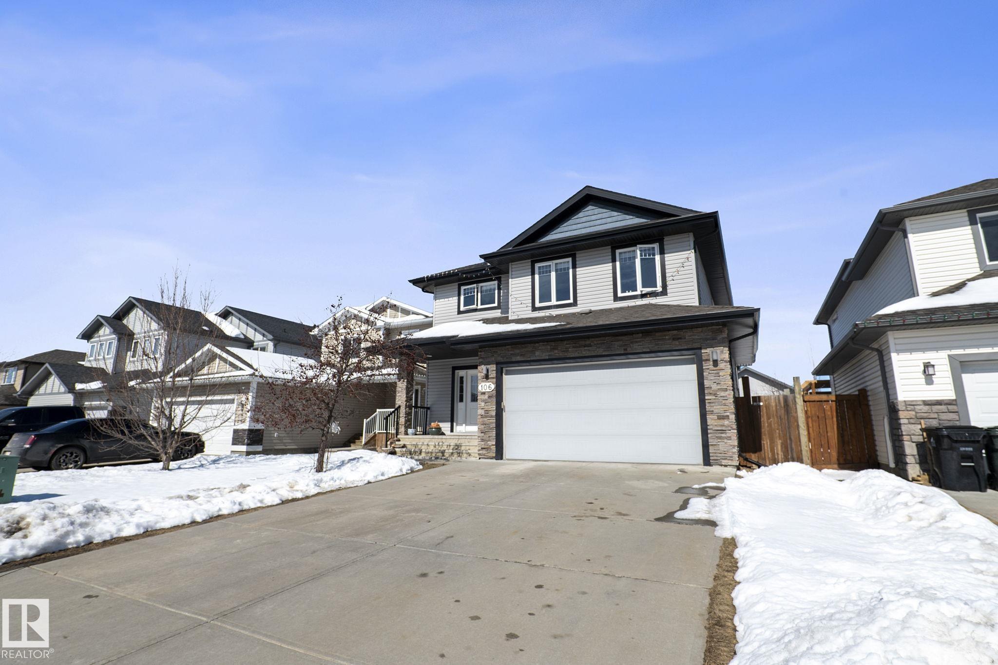 Welcome to this well cared for 4 bedroom, 2 story home in Hilldowns with central A/C! The large foyer and convenient 2 pc bath leads to the open concept main floor. Massive kitchen/dining area with dark wood cabinets, 2 toned island, walk-in pantry, stainless steel appliances and quartz countertops. The main floor also features a spacious living room with gas fireplace and the mudroom off the garage. Upstairs includes a second bright and spacious family room, 2 Bedrooms, 4 Piece bathroom along with huge primary bedroom, 4 Piece en-suite with soaker tub, stand up shower and his a hers walk-in closets. A nice sized laundry room completes this 2nd level. Downstairs has a den/flex room, spacious bedroom and family room. Other features include an over sized double car garage and wood deck with gas hookup for BBQ over looking the large backyard. All of the pilings are in place for a hottub off of the deck. Walking distance to schools, shopping, & The Links Golf Course, this 2-story is sure to impress! Act Fast!