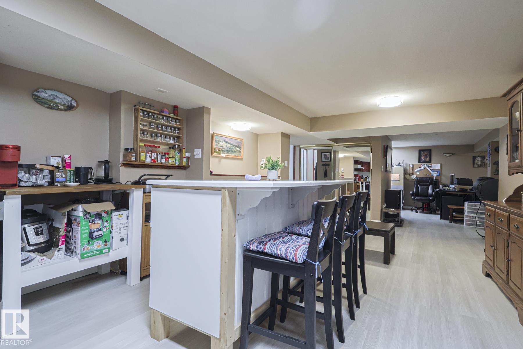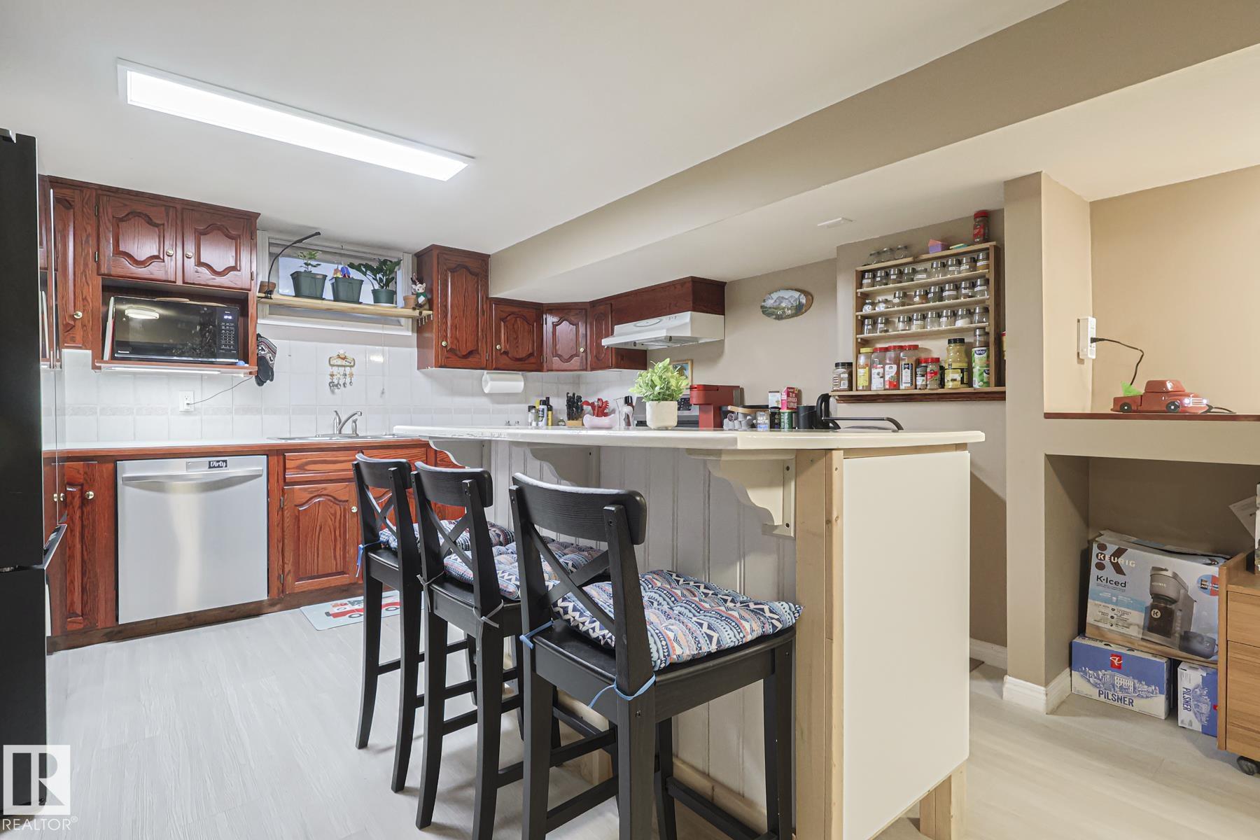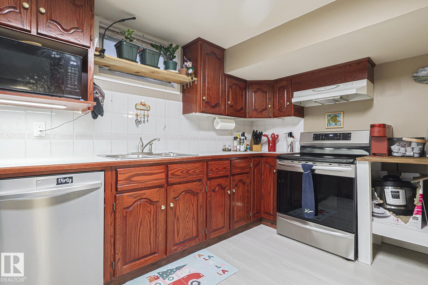 FANTASTIC LOCATION ? BACKING THE PARK! This beautifully updated 5 bedroom, 3 bath bungalow with a SEPARATE ENTRANCE in family-friendly Tweedle Place sits on a large lot with direct access to walking trails?privacy and convenience in one! Enjoy peace of mind with numerous upgrades: new lighting, garage heater (2022), stamped concrete patio (2022) and a stunning main bath renovation (2023). Inside, rich hardwood floors lead to a warm, inviting living room with a large picture window and cozy corner wood stove. The elegant dining area flows into the bright, modern kitchen featuring quality cabinetry, island, new refrigerator and loads of workspace. FOUR main-floor bedrooms, 2 FULL BATHS UP (one being the en-suite in the primary). The fully finished basement adds incredible value with a second kitchen, huge island, large living room and updated bath?ideal for extended family or guests. Outside, enjoy a sunny SOUTH-facing yard, gazebo, 2 sheds and an oversized heated garage. A perfect family home?WELCOME HOME!