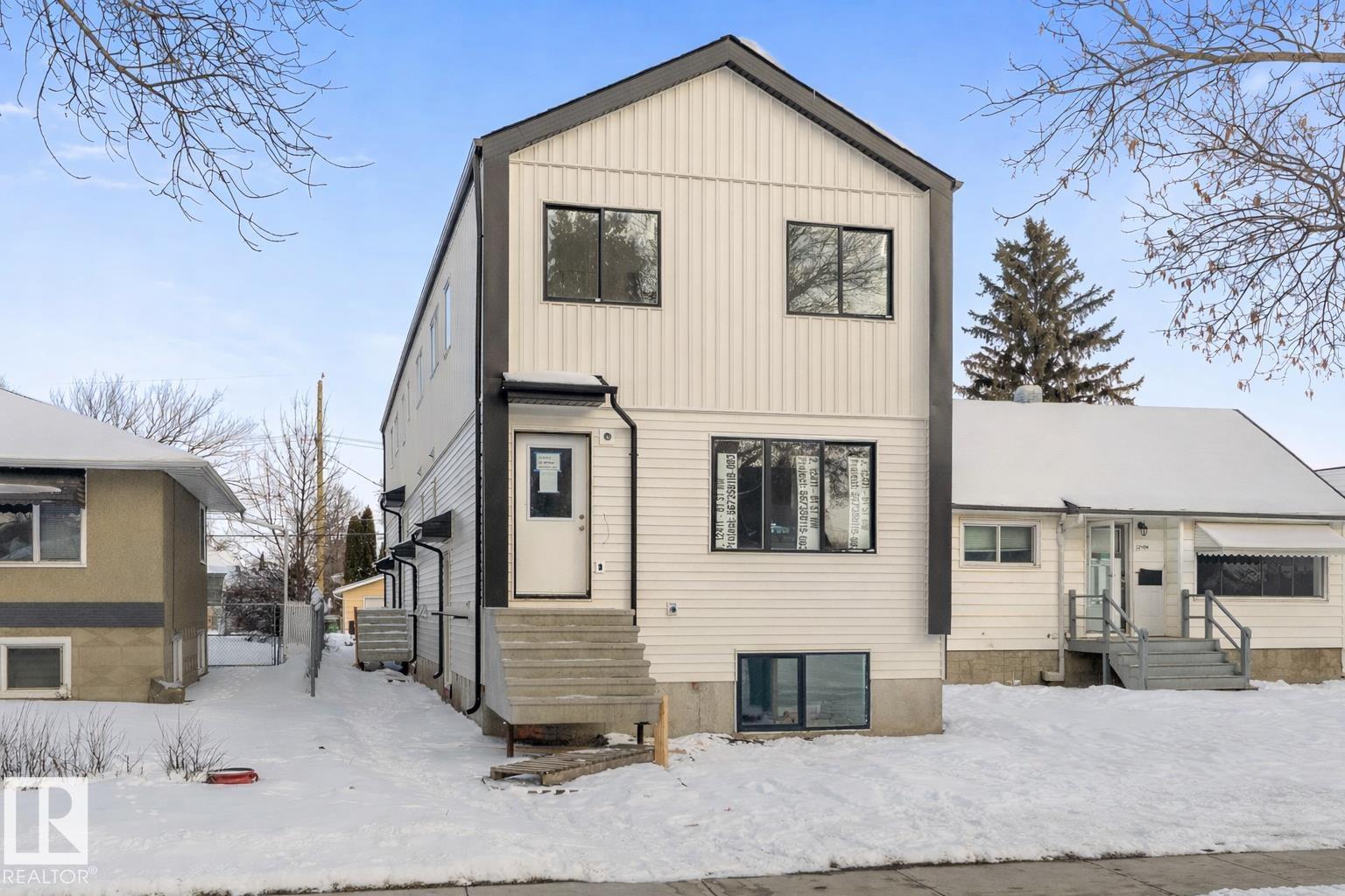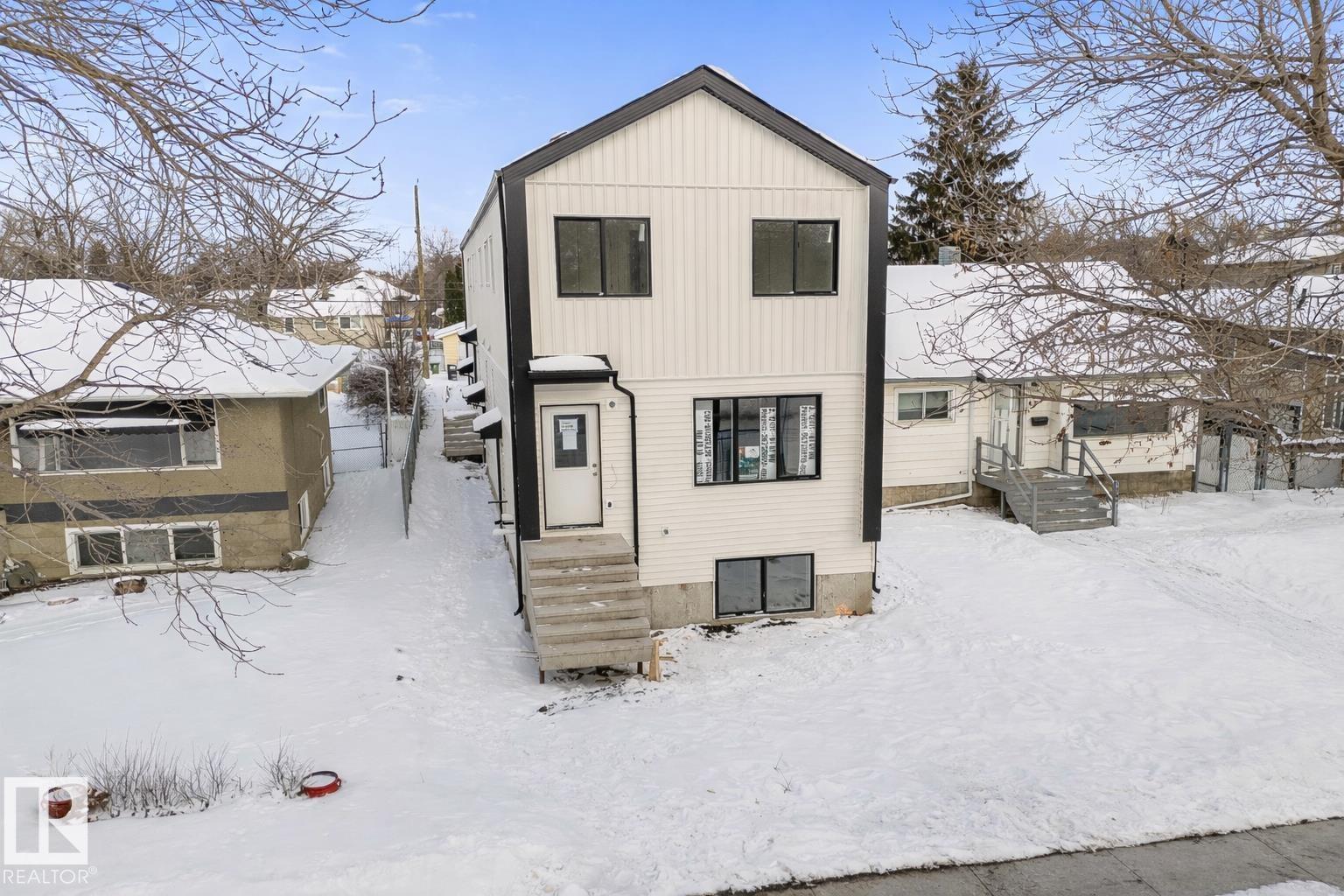 Ready MAY 2026. Brand New TRIPLEX with 3 LEGAL SUITES (6 RENTAL UNITS). Potential cap rate of 5.23%. Great addition to any portfolio with ability to cash flow immediately. Qualifies for CMHC MLI SELECT. Quick access to NAIT, Kingsway Mall & LRT (train) to Grant MacEwan, U of A, Downtown & ICE District. Three 2-Storey Suites with 3 bed/2.5 bath & Three 1 bed/bath BSMT SUITES. 3-bed plan with built in bench at entry & 5x5 storage room. Kitchen with pantry, quartz, vinyl plank & SS appliances. Tenants will enjoy 3 large bedrooms, 4pc bath, 4pc ensuite & upper laundry. RAISED FOUNDATION BASEMENT SUITES with large SOUTH facing windows. Effective Gross Income: $110,390. Operating Expenses: $26,692. Net Operating Income: $83,698. Be part of Edmonton?s downtown gentrification & realize the real estate APPRECIATION many Canadian Cities have seen. Interior photos not actual property (same plan). Completed building may vary from photos. Property Taxes to be reassessed by City.