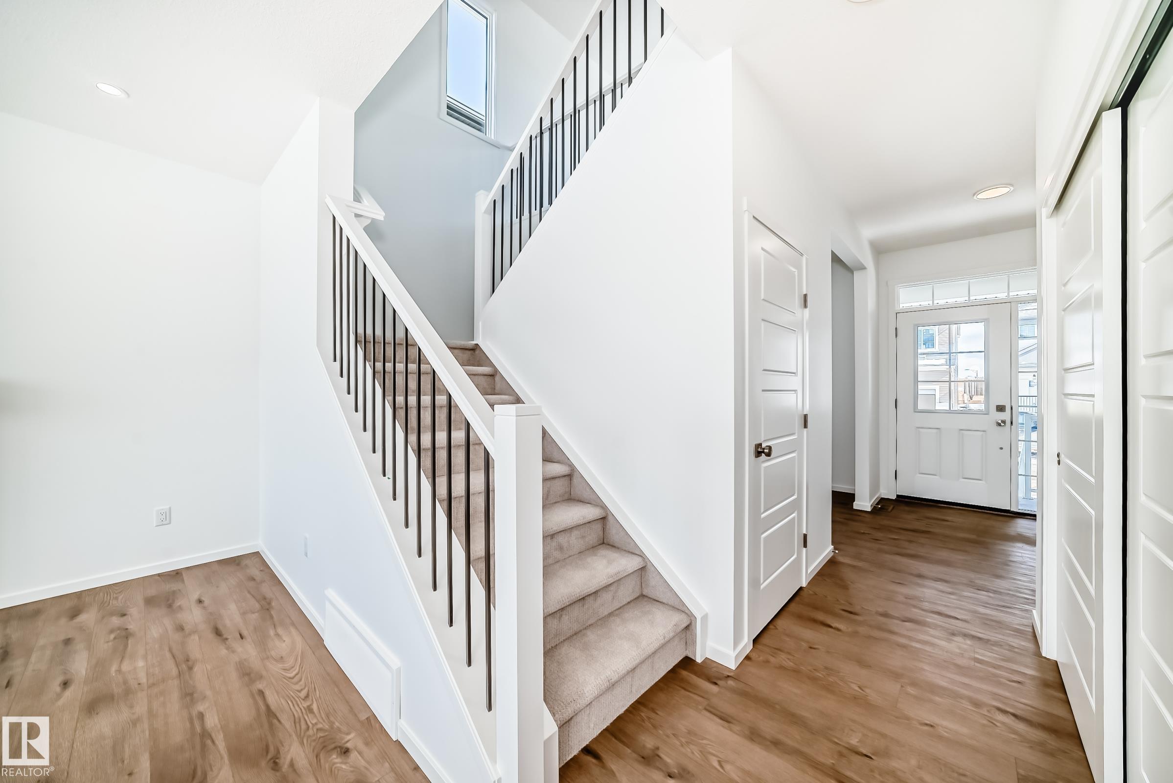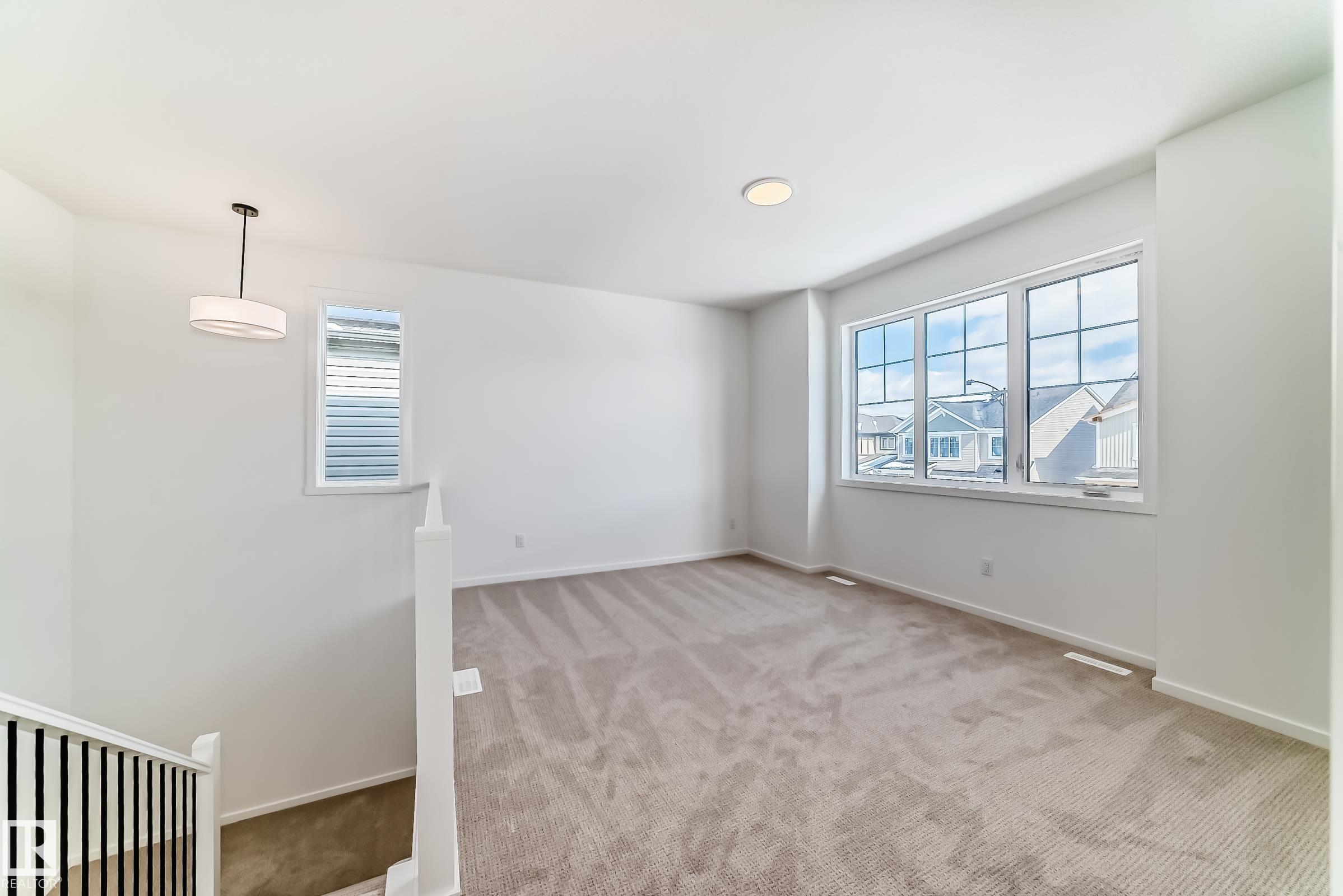 As part of Mattamy?s WideLotTM collection, the Maclaren amplifies living space through shorter hallways and brighter windows. Enter through a welcoming foyer and den/office space to find yourself in an open and inspiring living space including a fireplace. The kitchen wows with full height cabinetry, stainless-steel chimney hood fan, built-in microwave, stainless steel appliances with a gas stove. The oversized quartz island and charming breakfast bar will bring everyone together. Enjoy the convenience of a pantry, powder room and mudroom. Find ample storage space upstairs, with bedrooms 2 and 3 both including walk-in closets. Relax with a book in your upper loft. Escape to your primary bedroom, complete with a walk-in closet and ensuite. A separate side entrance and 9? foundation have been added to your benefit for any future basement development plans. Mattamy includes 8 solar panels on all homes as a standard inclusion!