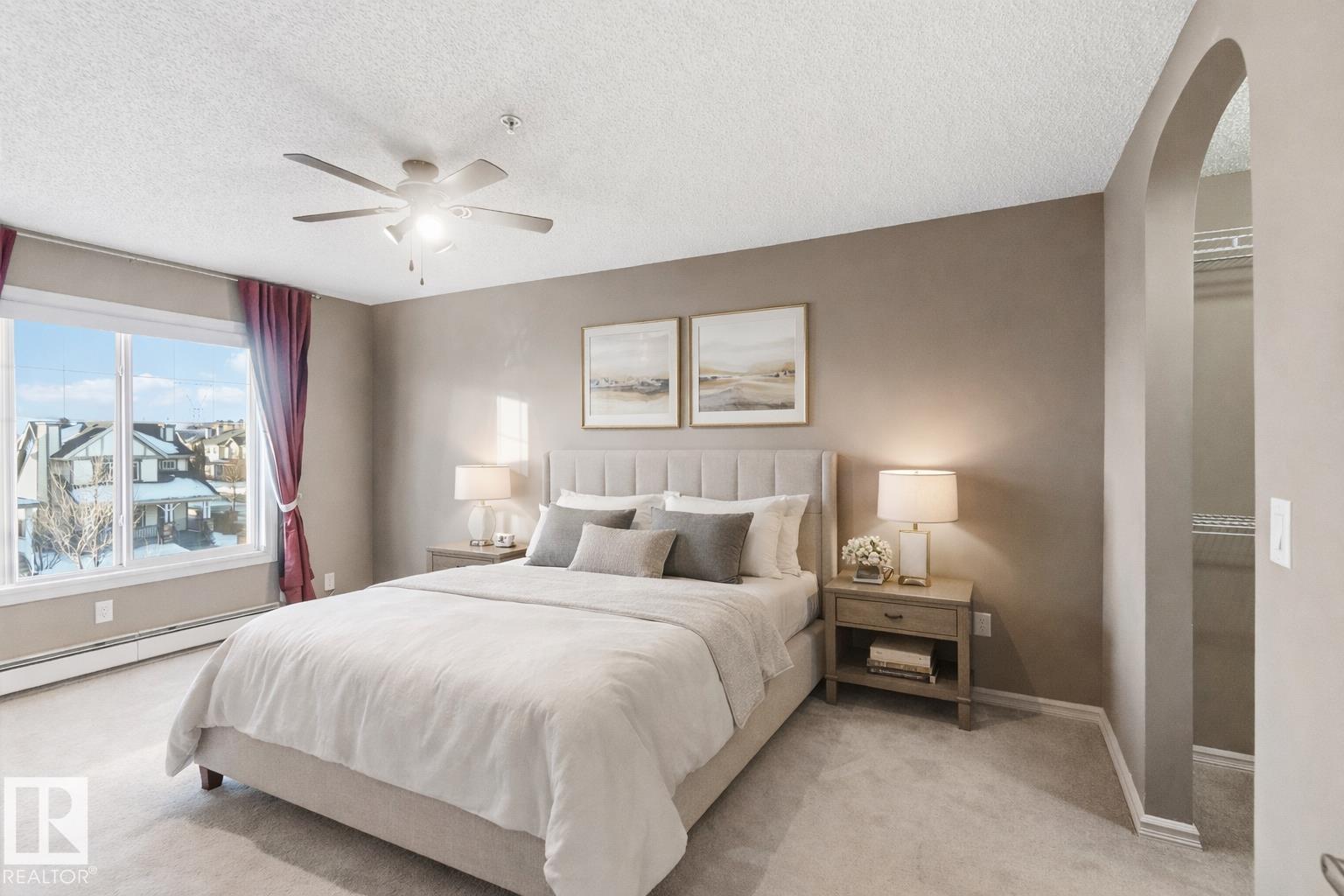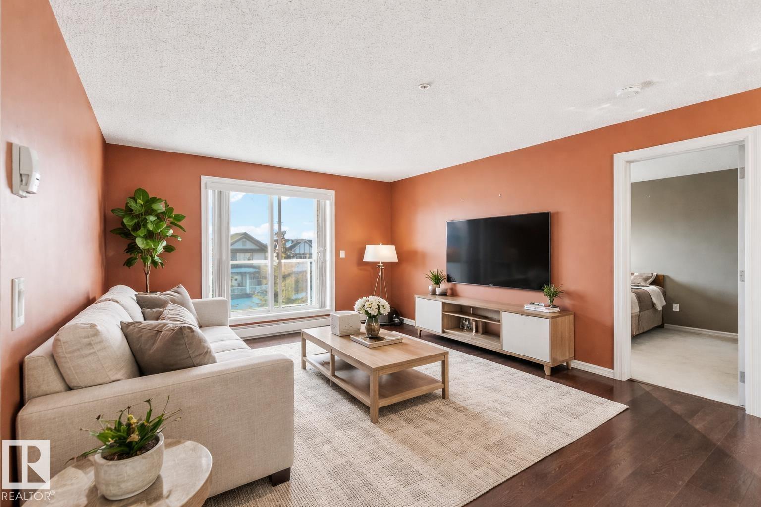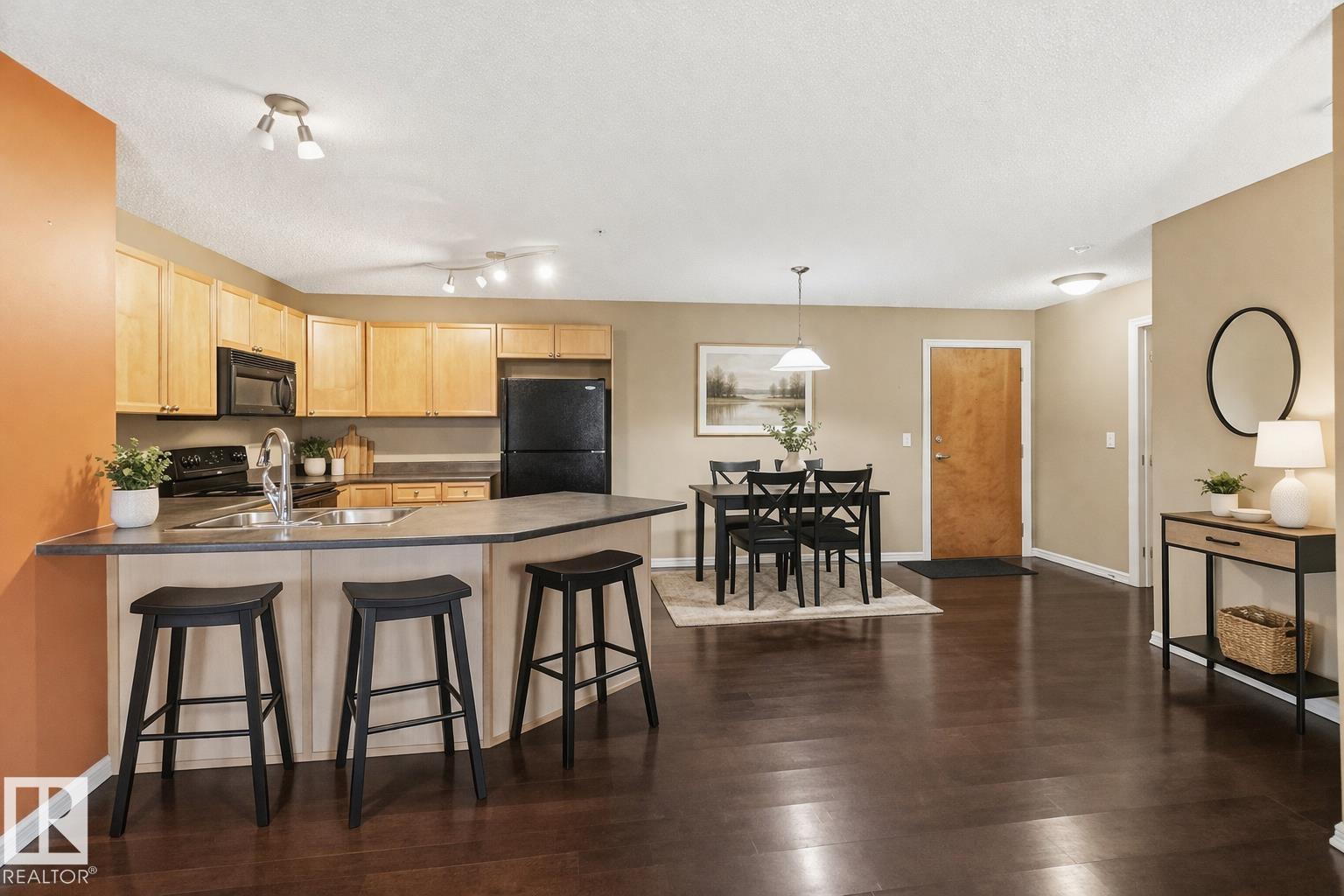 This move-in-ready 2 Bedroom, 2 Bathroom apartment offers a bright, open-concept layout with no hallways, creating a spacious and seamless flow throughout. The primary bedroom features a convenient walkthrough closet and private ensuite. The kitchen is both functional and inviting, complete with maple cabinets, matching appliances, and a peninsula eating bar ideal for casual dining or entertaining. Enjoy the ease of in-suite laundry and extra storage, along with two parking stalls?one securely located in the heated underground parkade. Step out onto the lovely west-facing balcony and take in sweeping views over neighboring rooftops, perfect for sunset watching and relaxing in the afternoons. The clean, modern building includes a fitness room, and just north of the property you?ll find beautiful green space with fantastic walking trails, making this home an ideal blend of comfort, convenience, and lifestyle. **Digitally staged by AI; may not reflect actual condition**