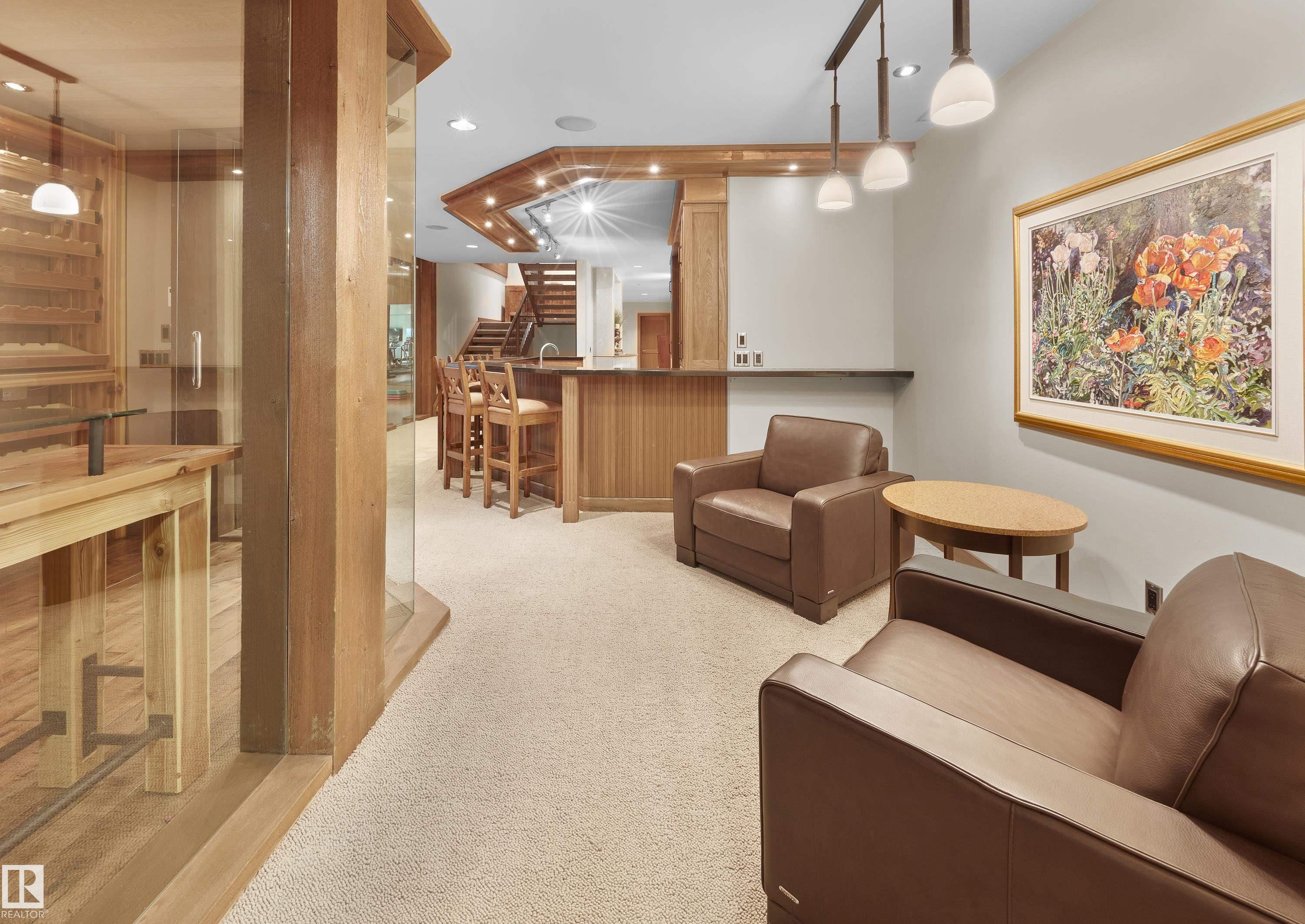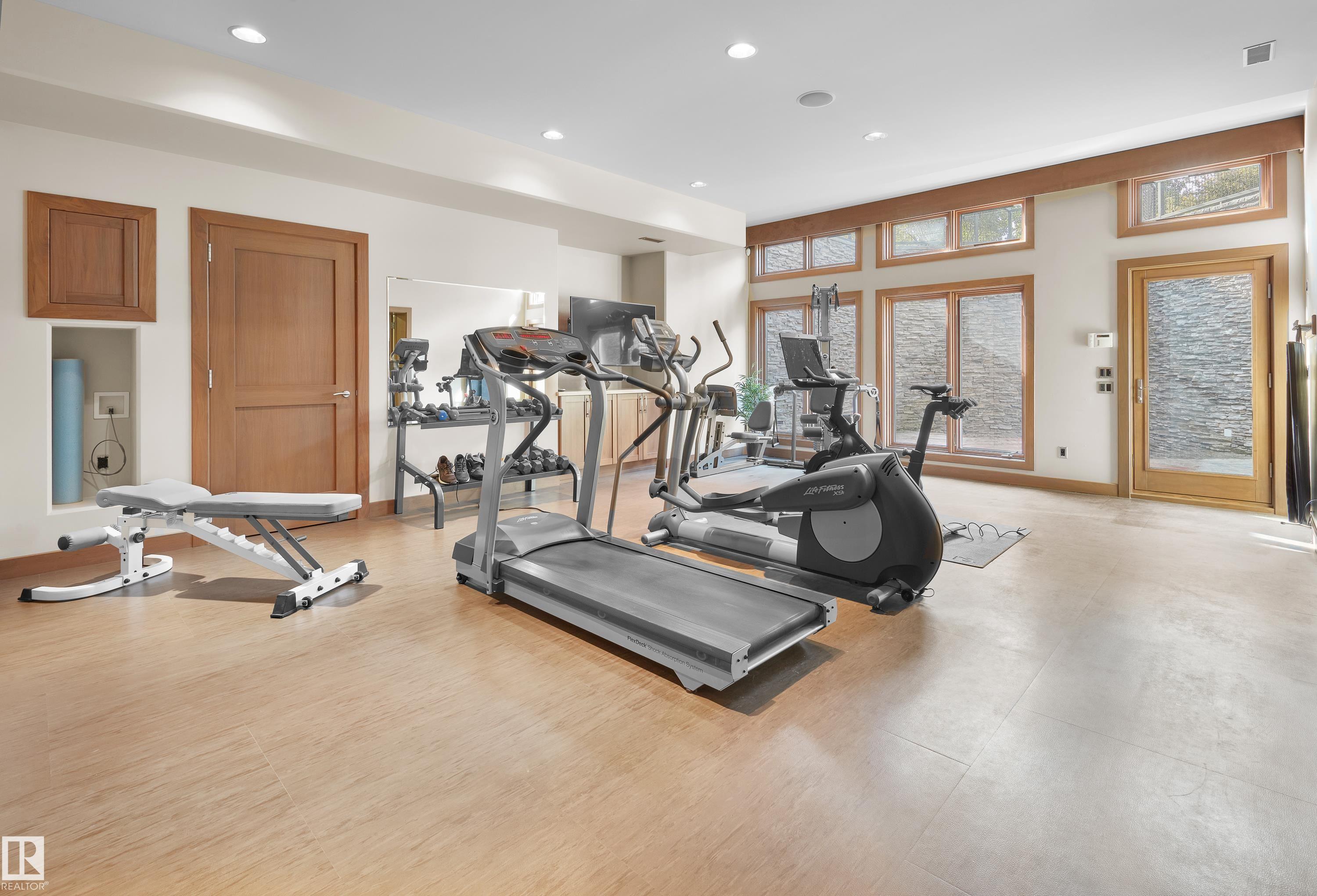 Windermere Ridge Estates, an extraordinary custom Cove Properties home nestled along the edge of the river valley with a 23,875sqftlot. This grand residence blends timeless architecture with resort-style amenities, breathtaking indoor-outdoor living & meticulous landscaping sets the tone for refined river valley living. Inside, the home is a showcase of artisan craftsmanship & luxury finishes -11,649sqft of total finished living space ? 4 beds plus 2 beds, 6 baths, Gourmet Chef?s Kitchen, Elegant Dining Room, Primary Suite with 2 ensuites ? Dressing room & private office, Gym with Spa area, Yoga Studio, wine room, Theatre Room ? 2 Triple Attached Garages & so much more. Stepping inside the elegance & quality is felt from the heated limestone floors to the living area boasting craftsmanship like no other with exposed beams, ambient lighting & a commanding metal fireplace. Whether hosting lavish dinner parties or savoring quiet mornings, this property is more than a home, it's a family estate.