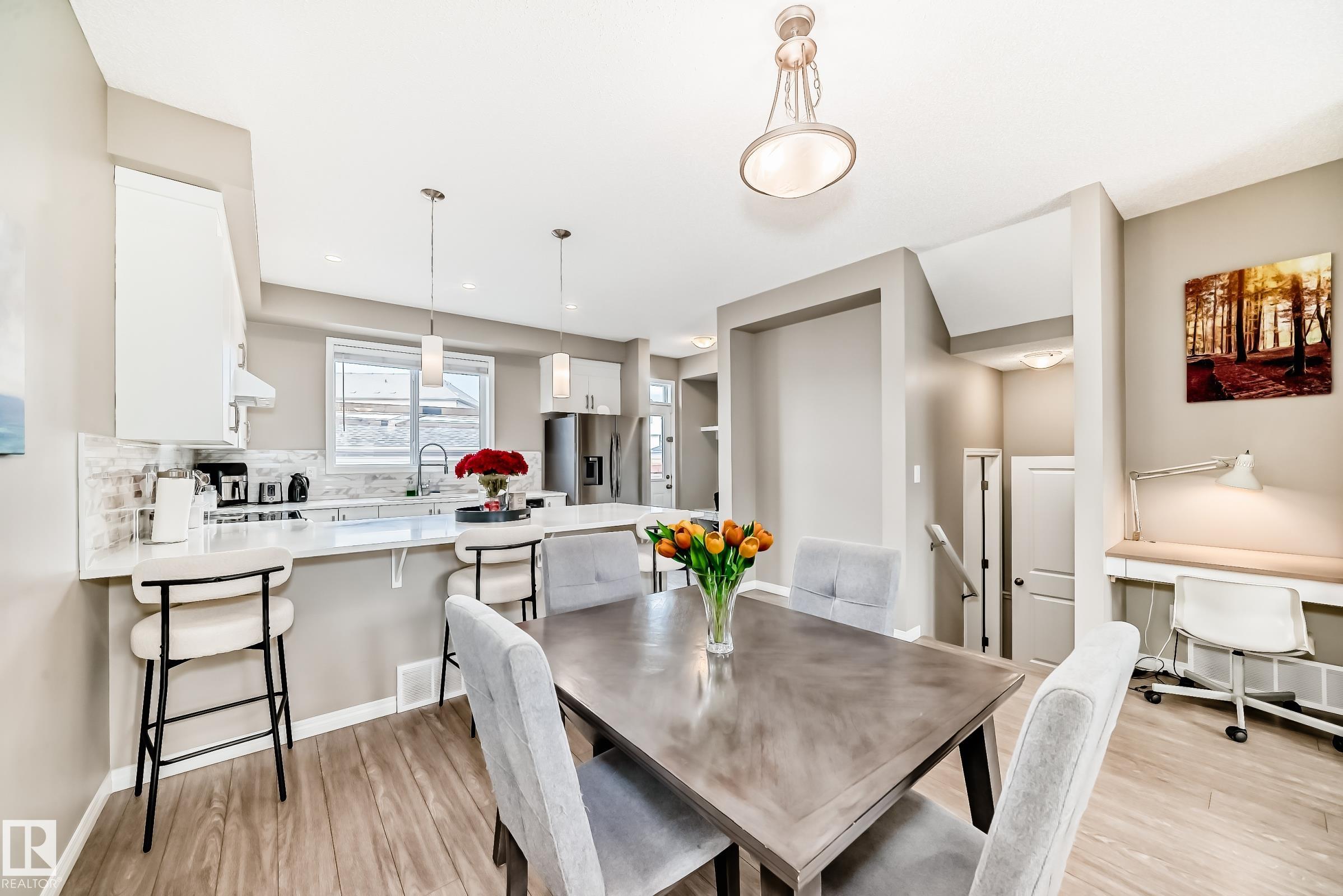 Step into style and value in one of Edmonton's hottest communities. This bright and beautifully finished 3 bedroom 2.5 bath home in Chappelle checks all the boxes with ZERO CONDO FEES. Enjoy an open concept main floor with 9 ft ceilings and a kitchen that is built to impress. You will find luxury vinyl plank flooring and quartz countertops throughout the home for a clean modern feel. Upstairs offers a spacious primary suite with walk in closet and private ensuite plus two more well sized bedrooms. Out back, relax under your retractable awning on a sunny deck and enjoy the convenience of a full double detached garage. Located near schools, shopping, parks, and everyday amenities. This stand out home is a must see.