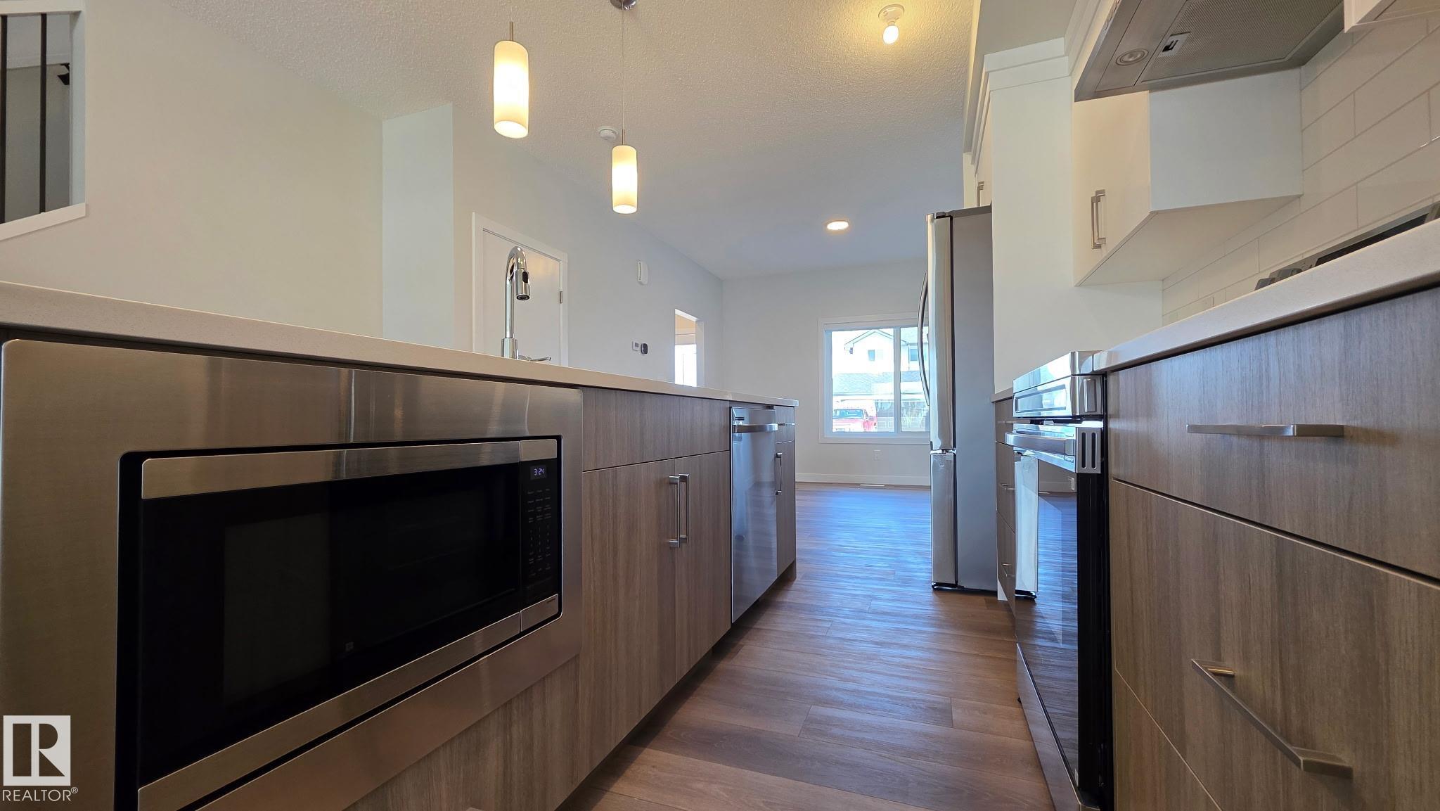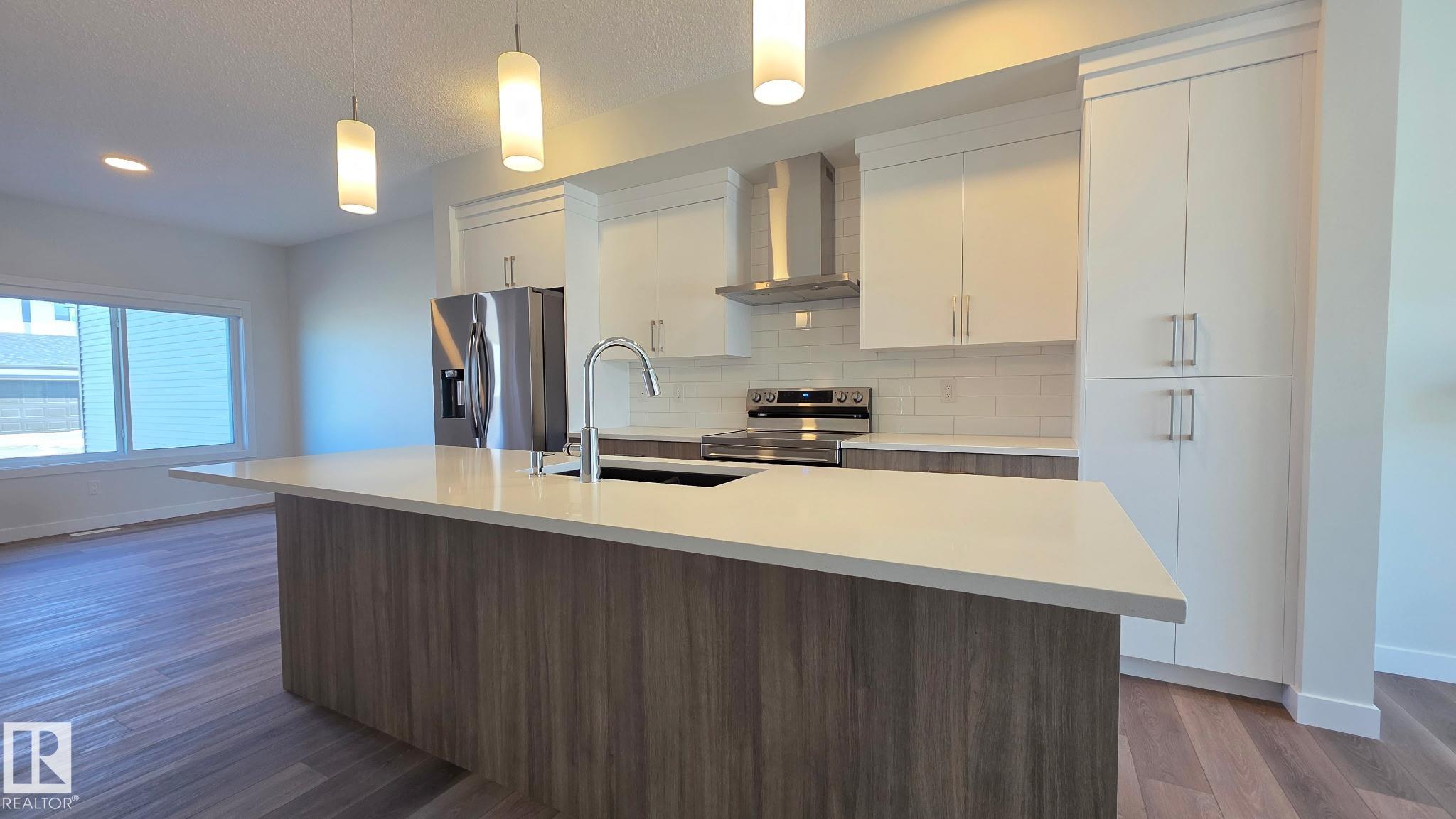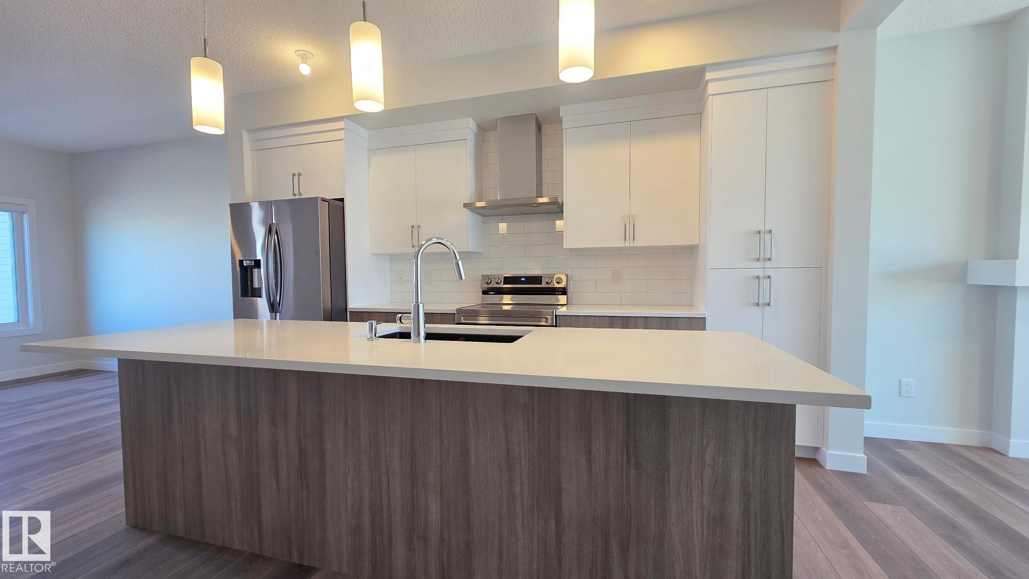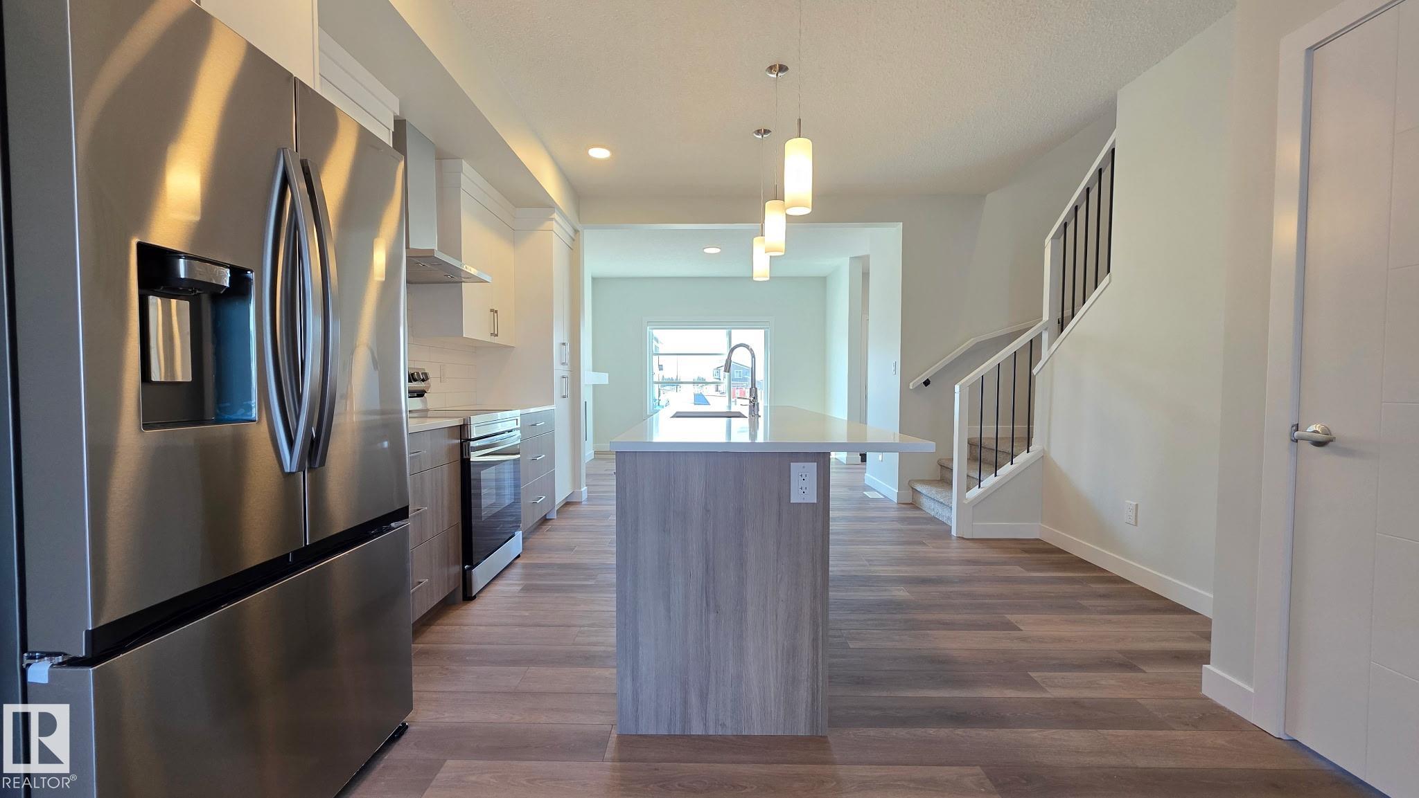 SINGLE FAMILY LIVING WITHOUT THE PRICE TAG....TONS OF PARKING.. yes we INSTALLED WINDOW COVERINGS...SIDE ENTRANCE/YUP WE HAVE IT ..COMES WITH CUSTOM APPLIANCE PACKAGE!... ..~!WELCOME HOME!~ With ALMOST 1500 Sq Ft, this amazing half duplex has main floor 9 ft ceilings, & you won't believe the GORGEOUS FINISHES! Open concept kitchen/living/dining, with LUXURY VINYL PLANK throughout. Kitchen boasts two-tone cabinetry, large island, stone countertops, tall pantry, and island with eating bar. Upstairs offers total three spacious bedrooms, CONVENIENT UPSTAIRS LAUNDRY, & 4 pce bath. Primary is a retreat on its own, w/walk in closet, & 4 pce ensuite. Out back, you will have a 13'x10' concrete patio and 20'x22' rear concrete parking pad (ADD VALUE FOR LATER:) Close to green space, walking trails, & playground. Amazing home - come see for yourself!